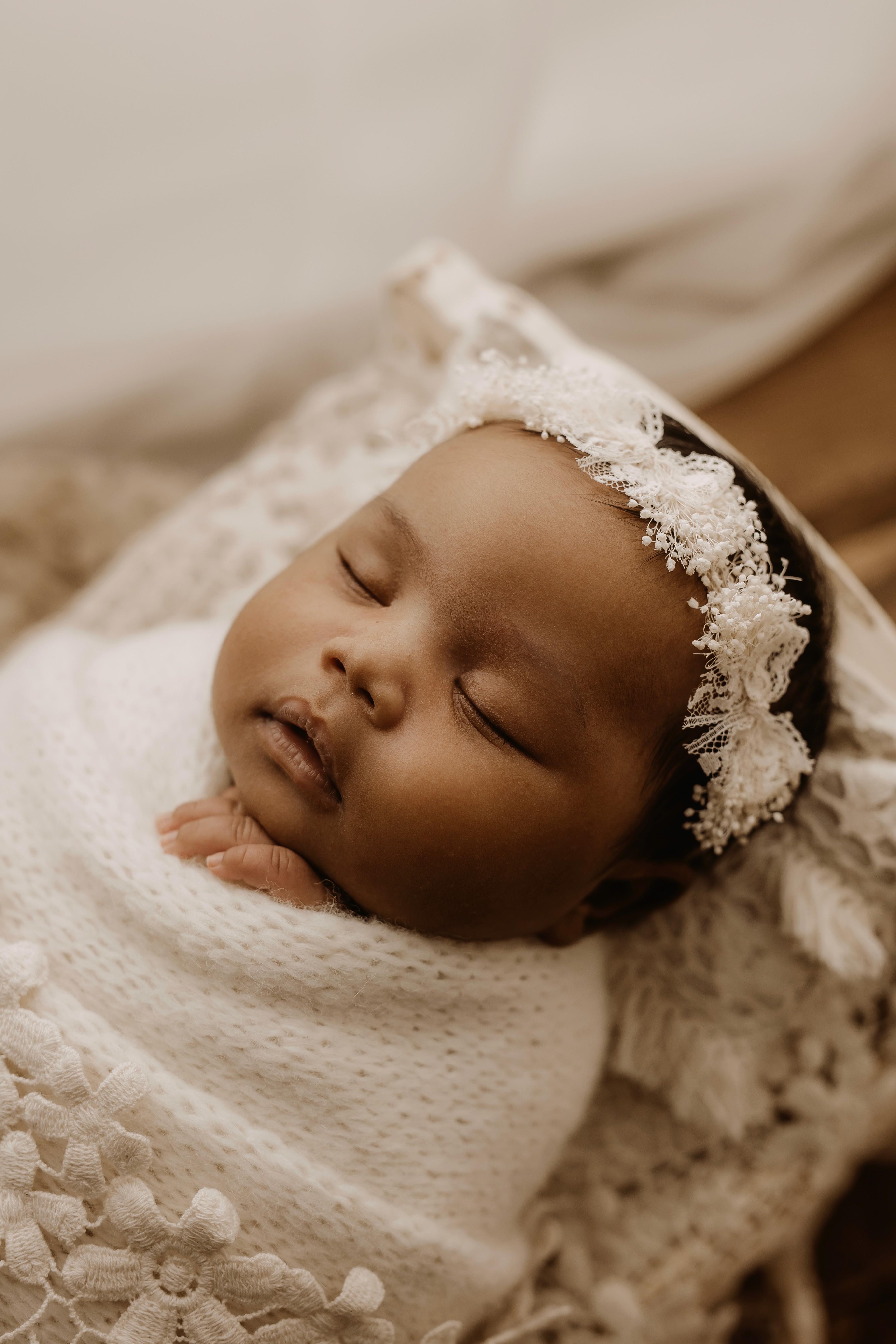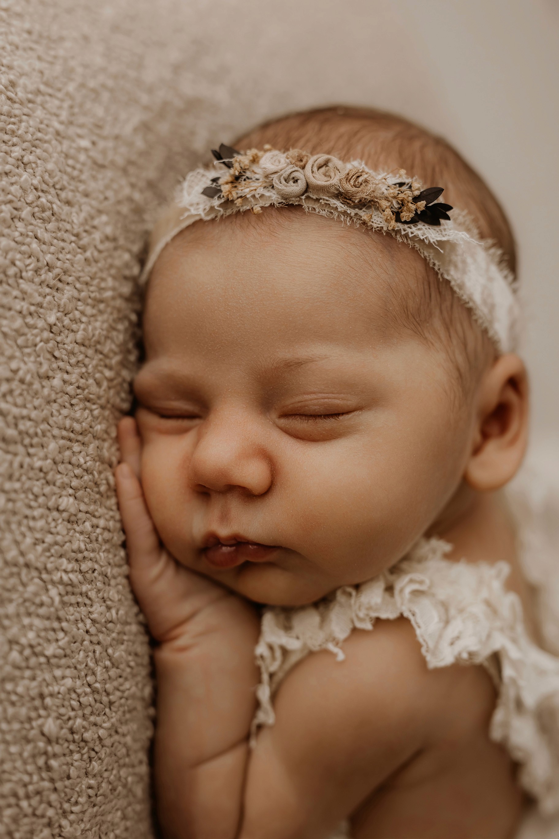 Newborn photography is best taken 5 to 14 days after birth. This is when newborns are extra sleepy and they love to be curled up in sweet newborn poses.