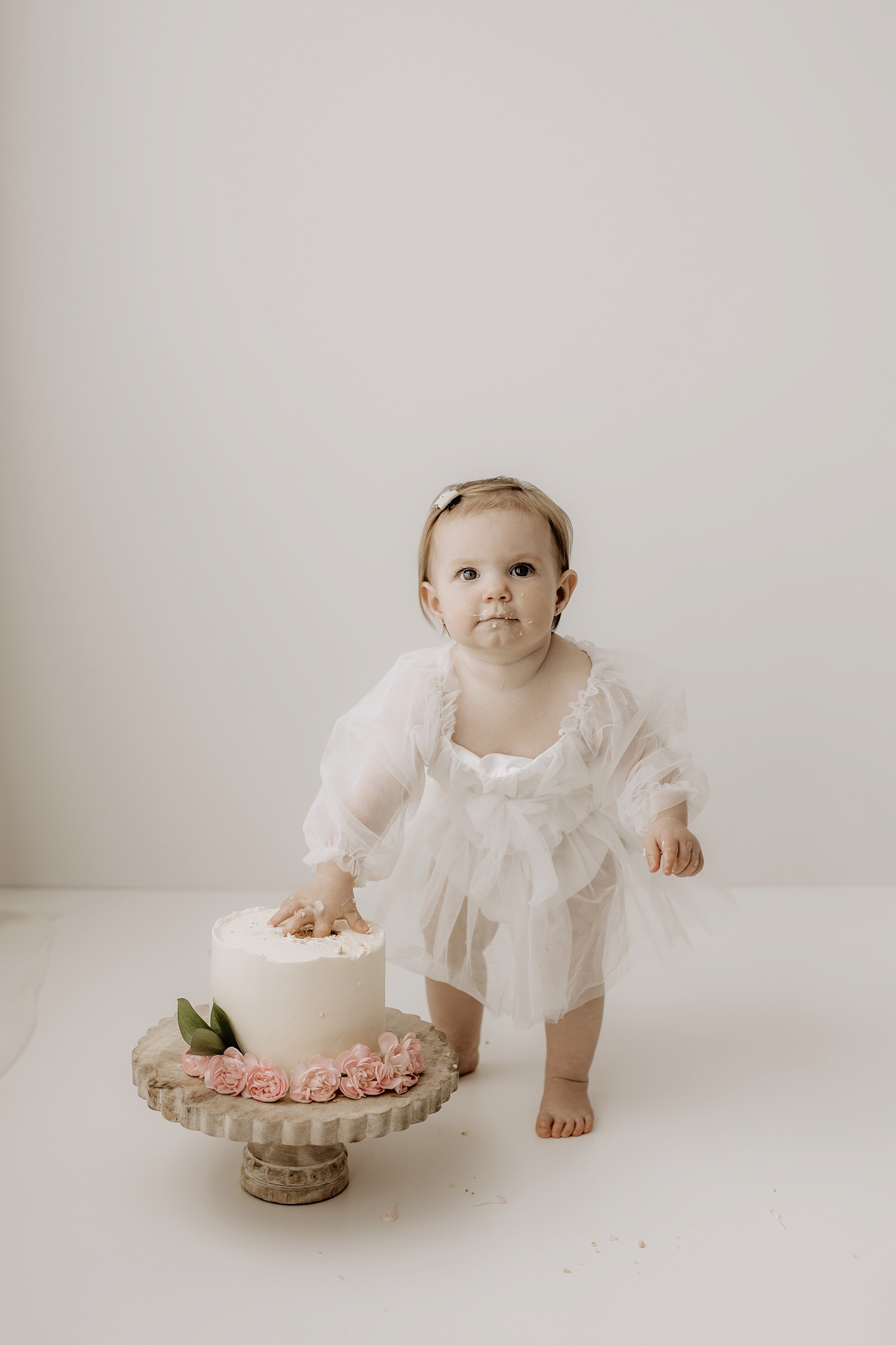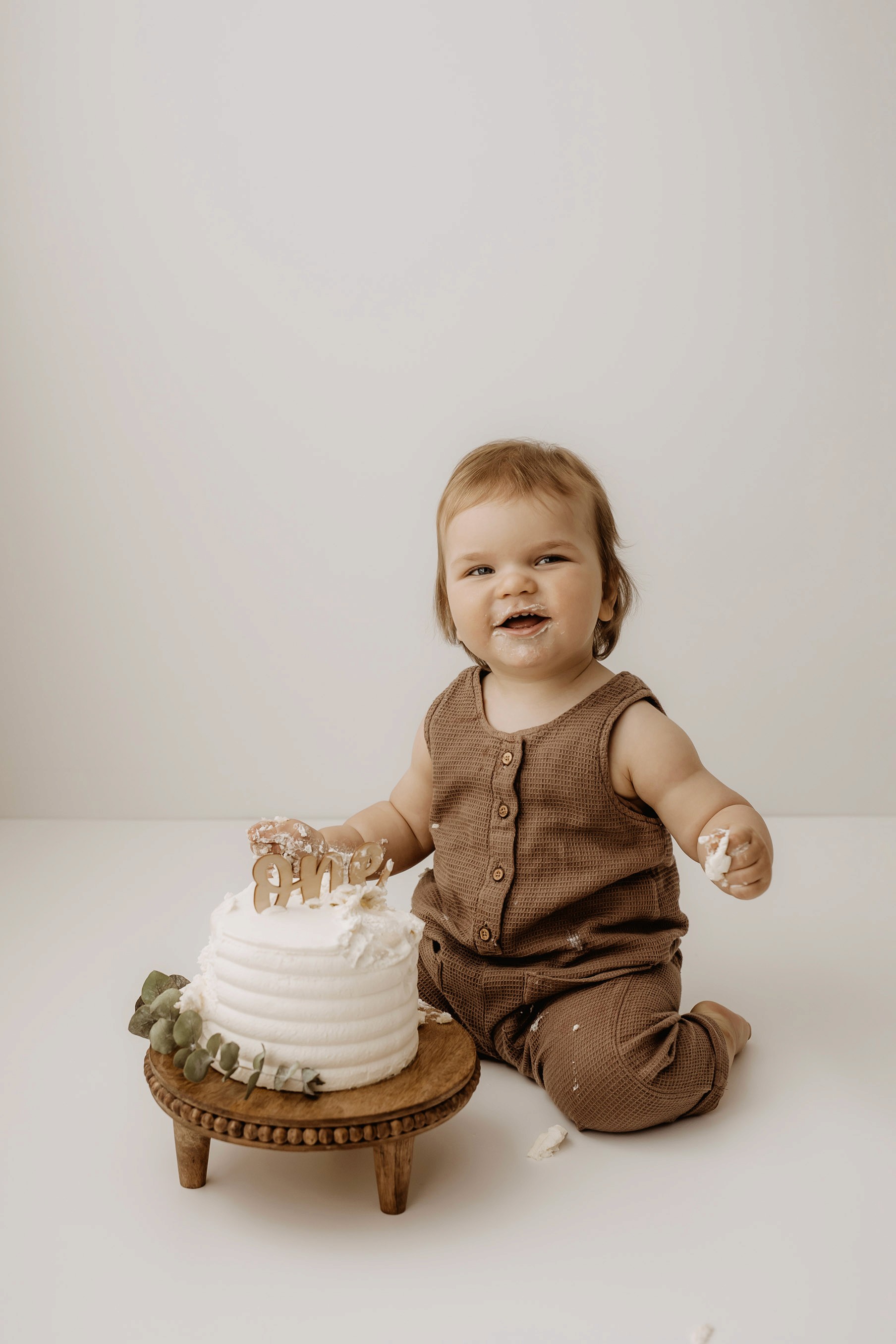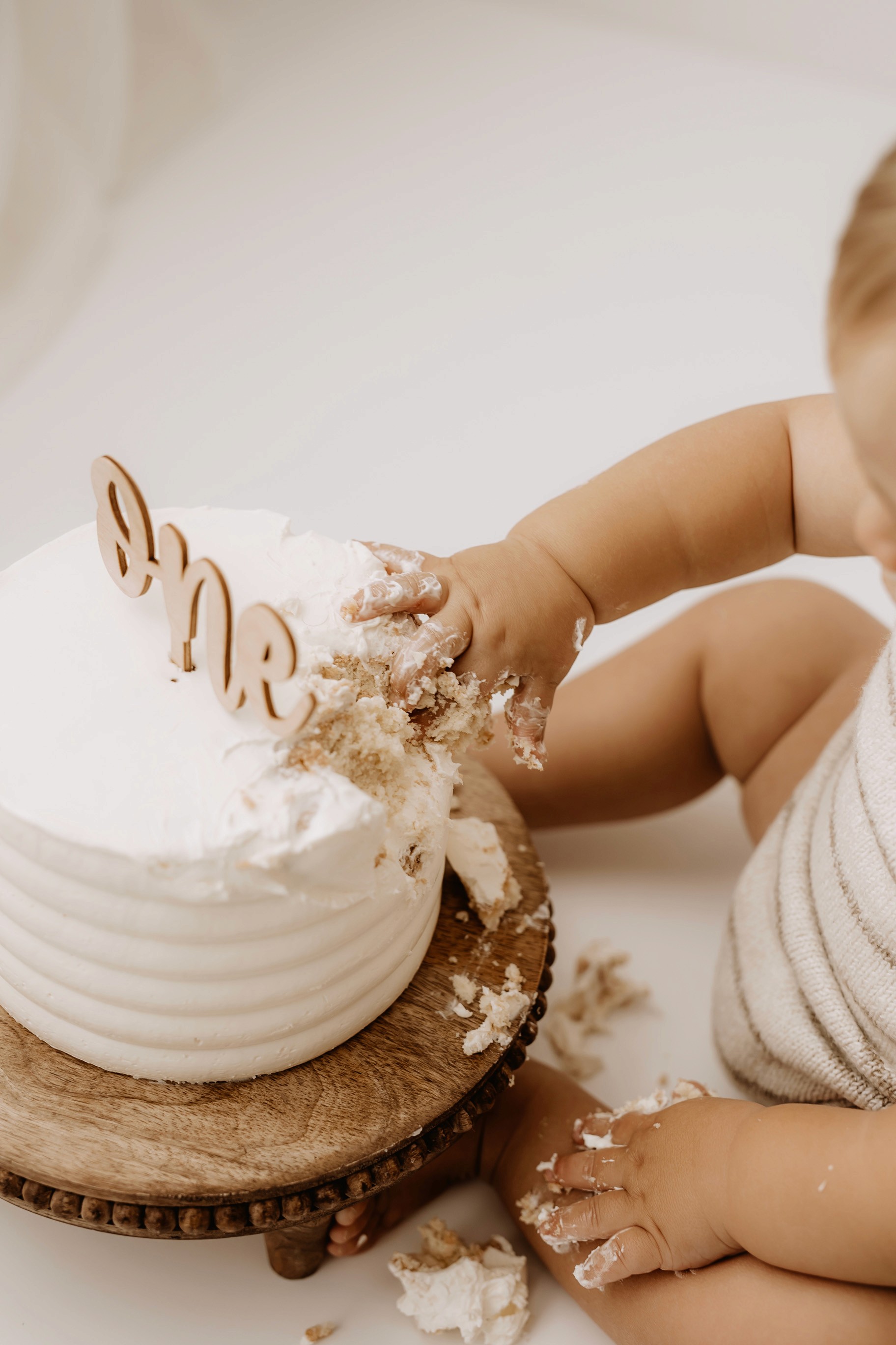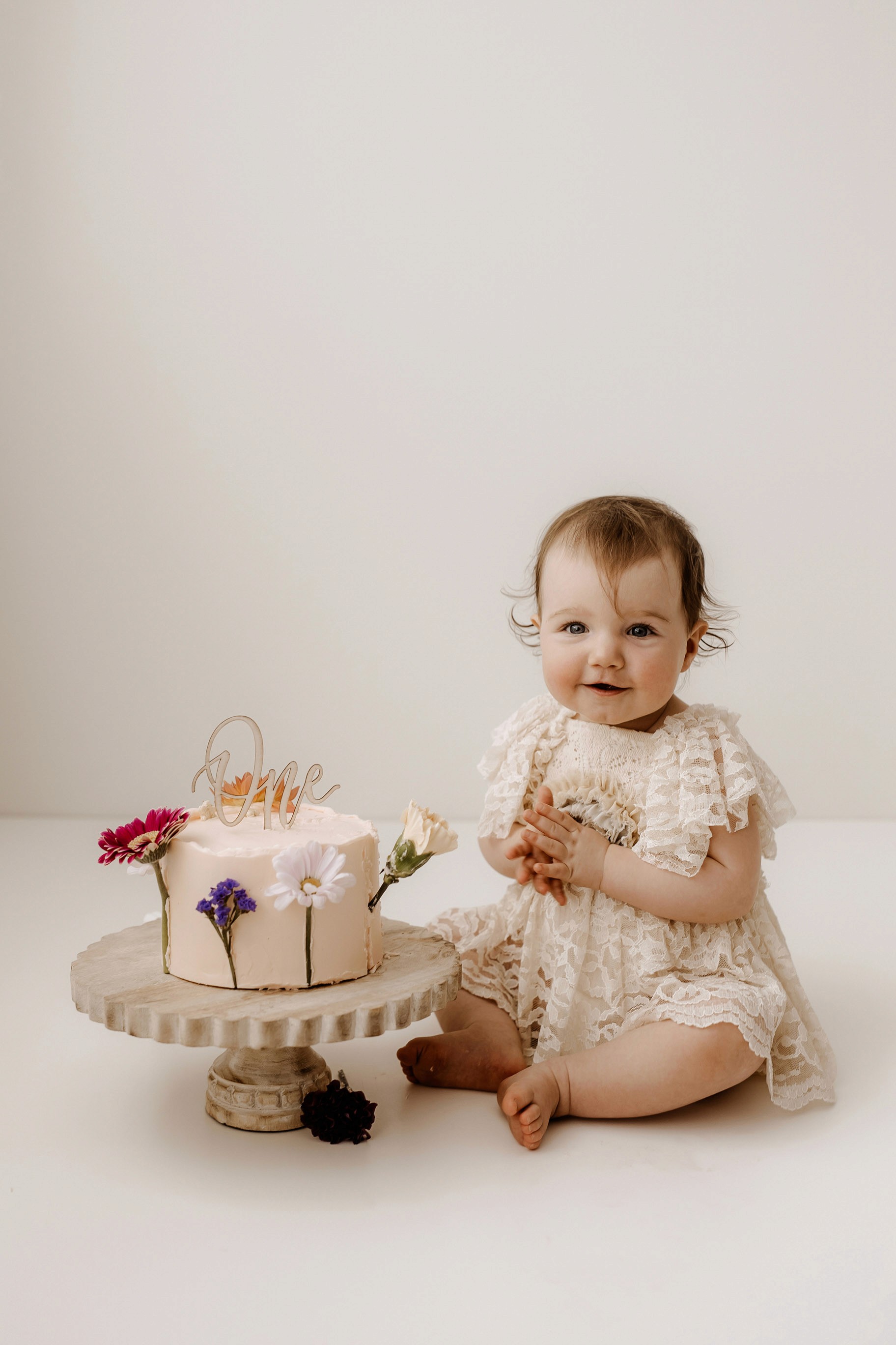 My style for cake smash sessions is very simple with minimal props that make your baby the focus. Cake, stands, toppers and client closet access for baby is provided. You can trust me to handle all the details, so you can simply enjoy the process!