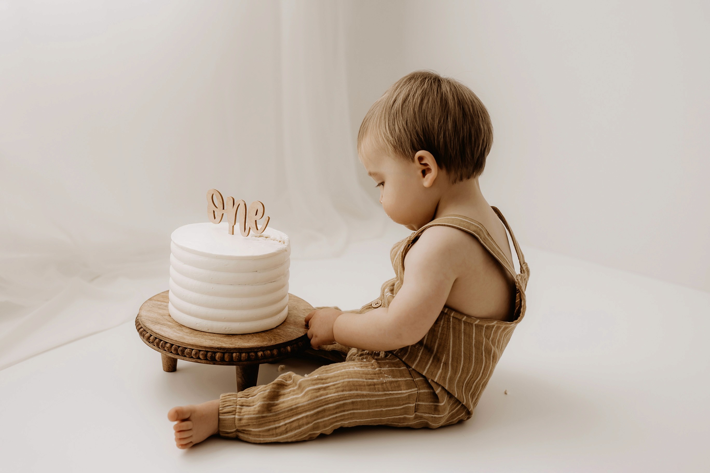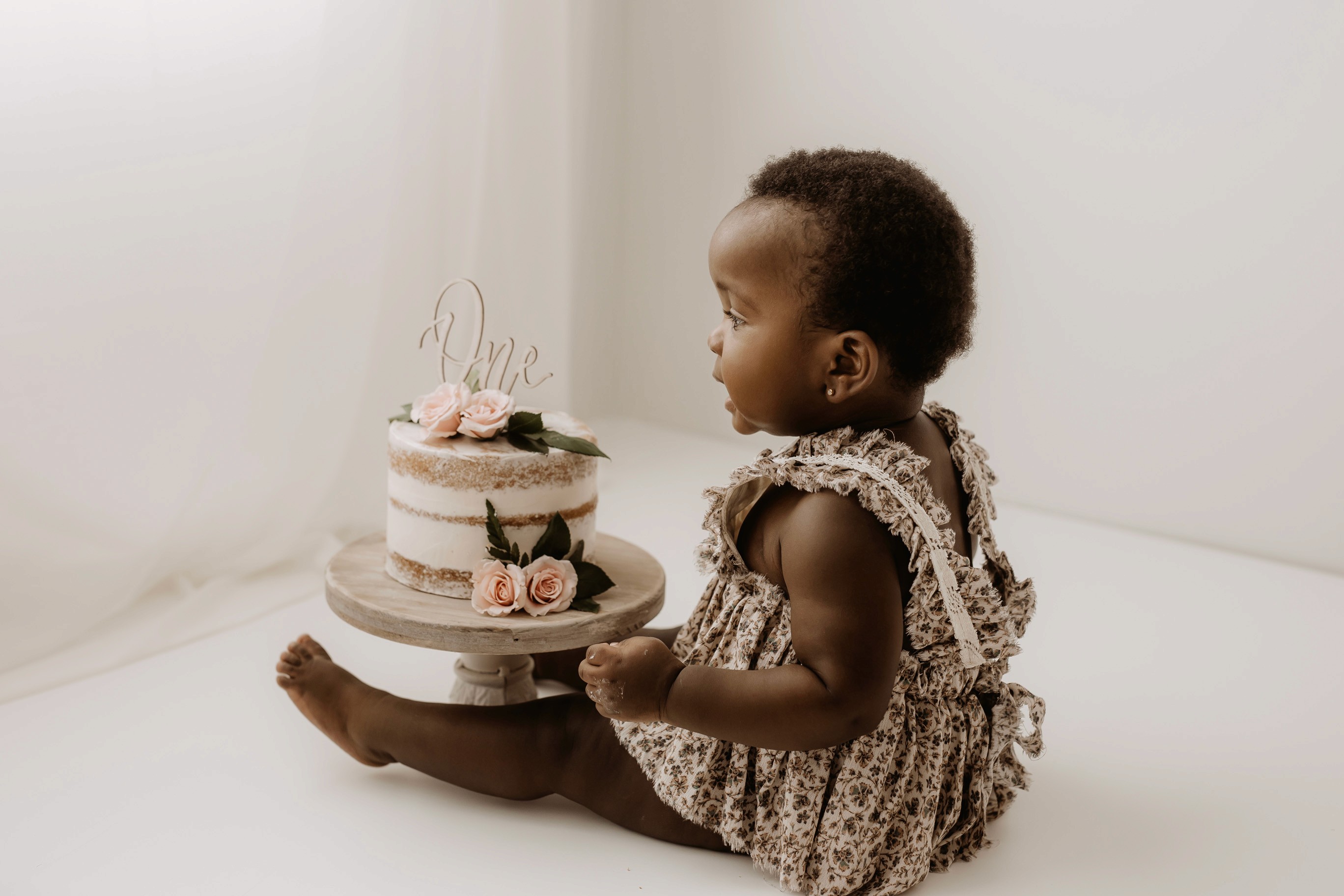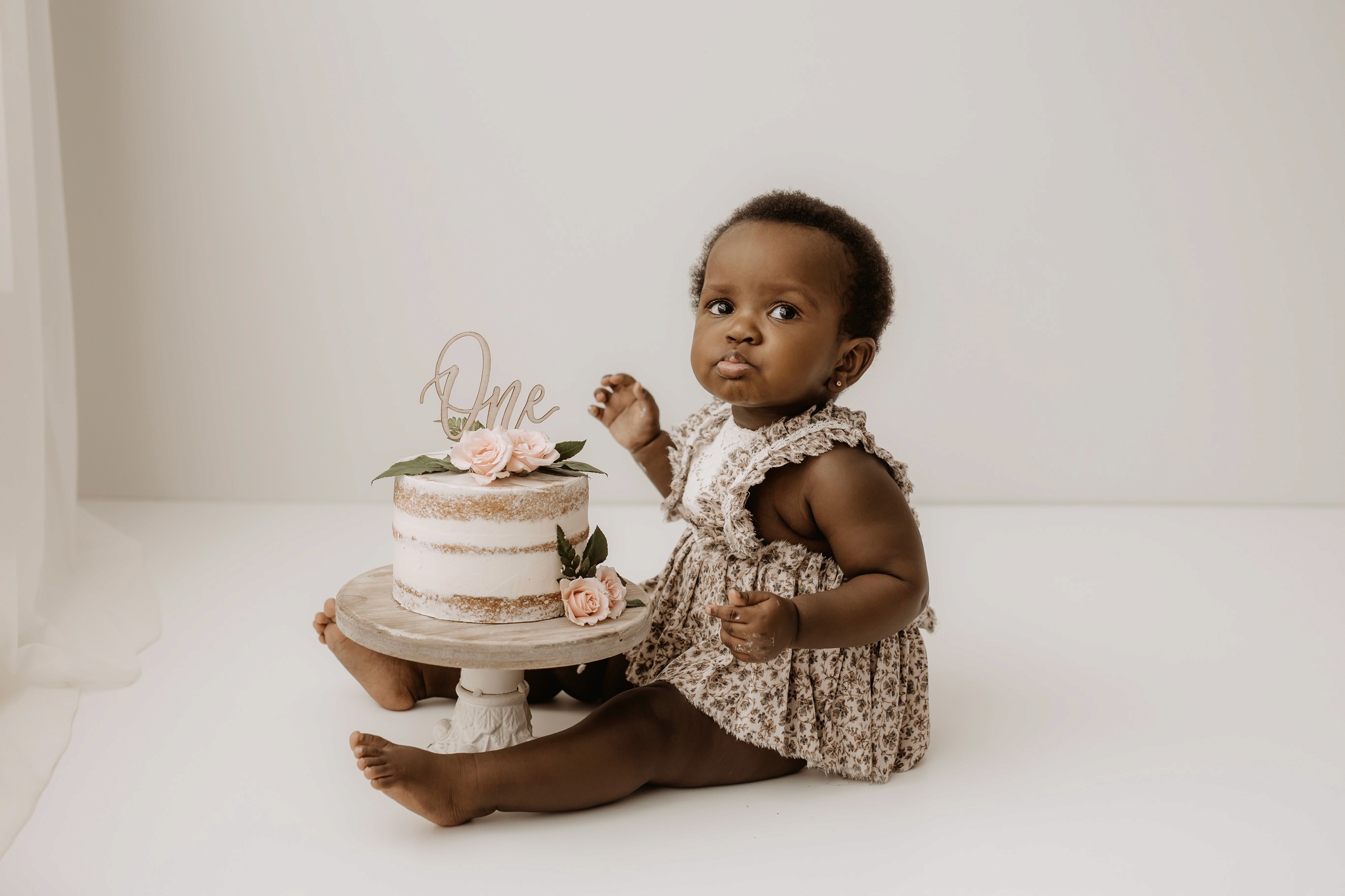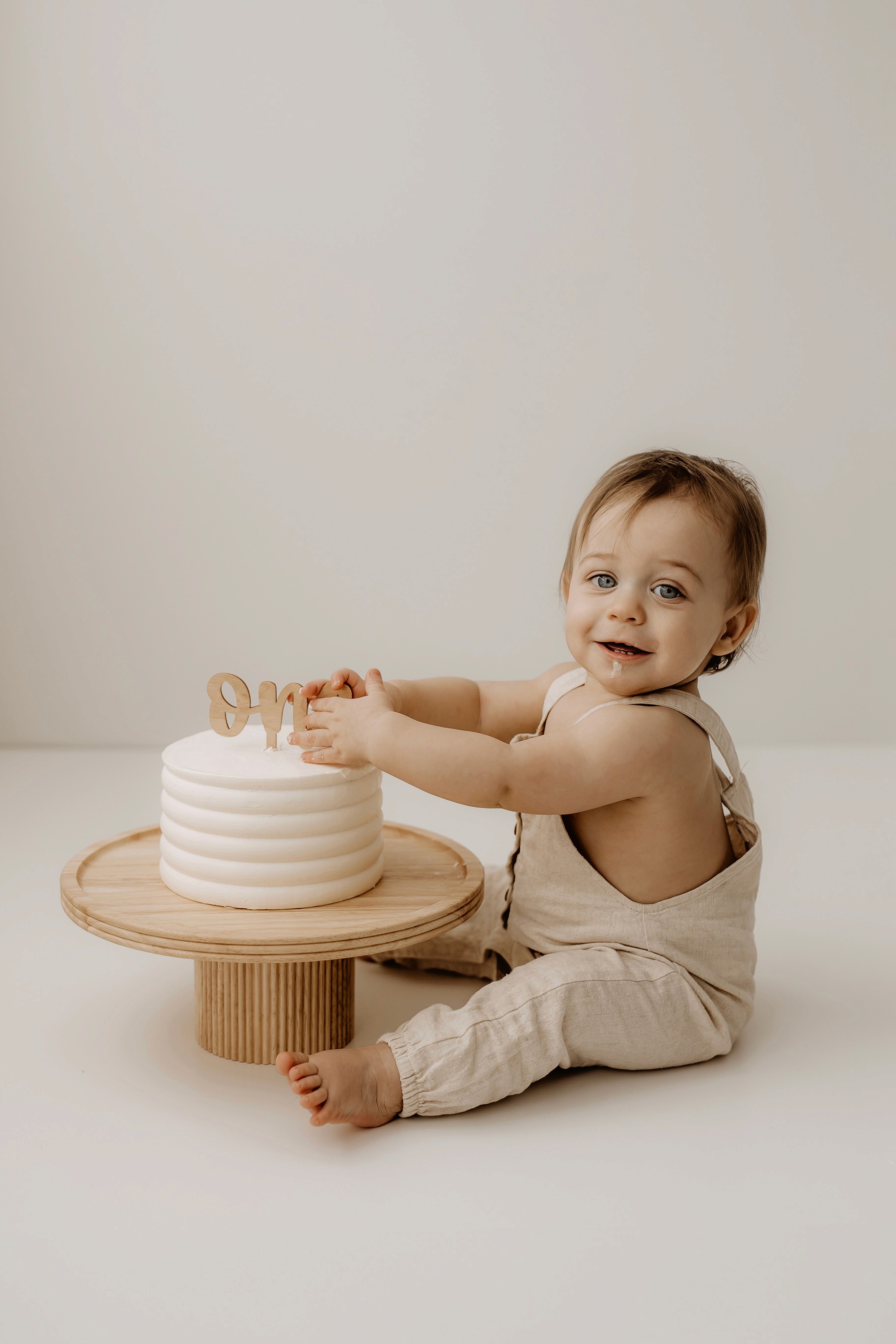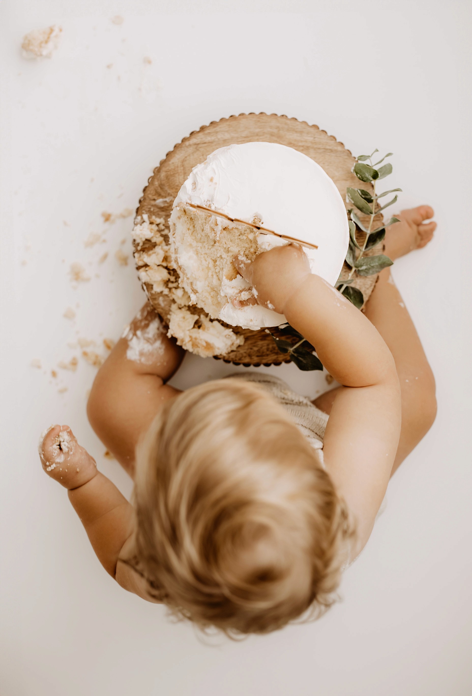 My style for cake smash sessions is very simple with minimal props that make your baby the focus. Cake, stands, toppers and client closet access for baby is provided. You can trust me to handle all the details, so you can simply enjoy the process!