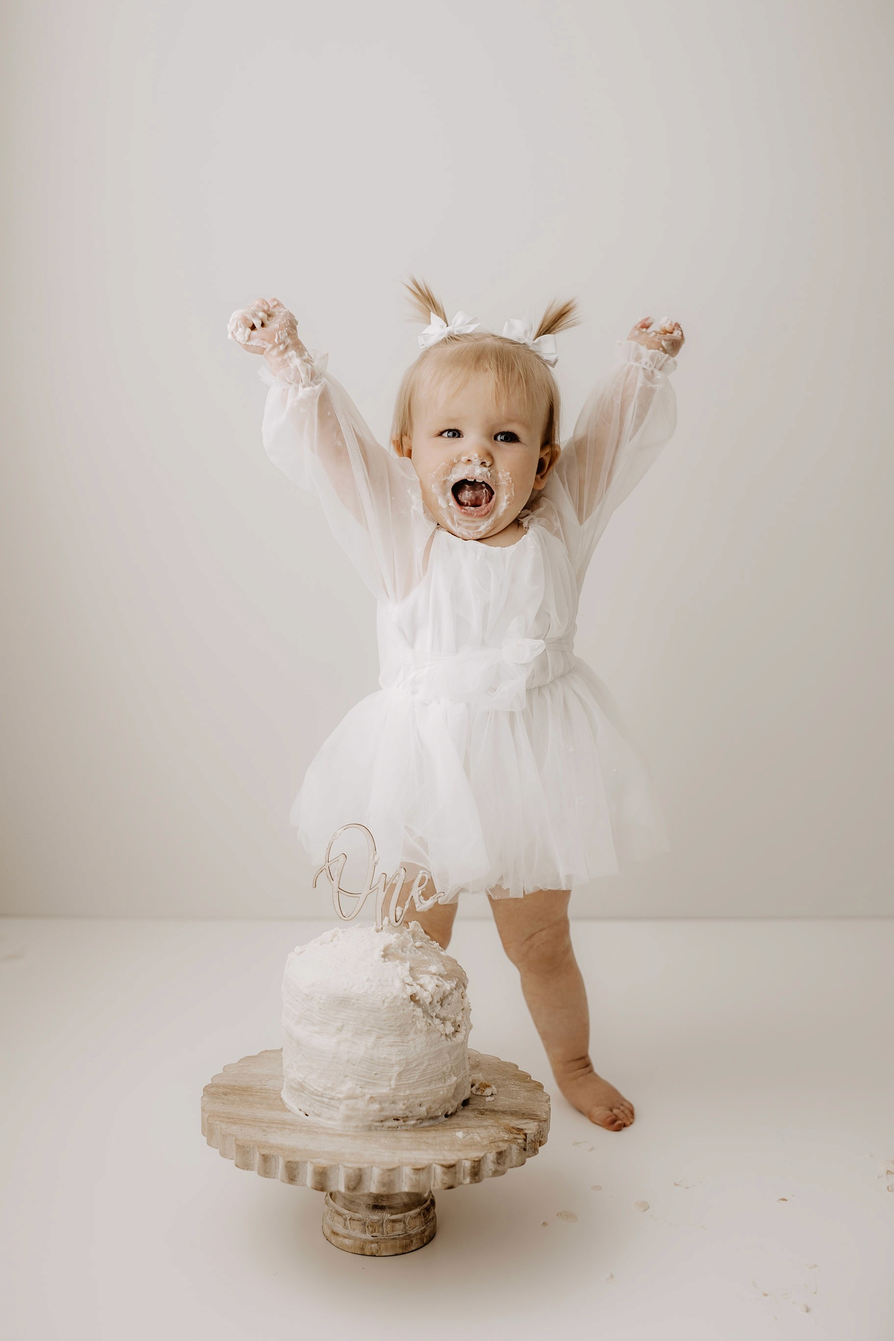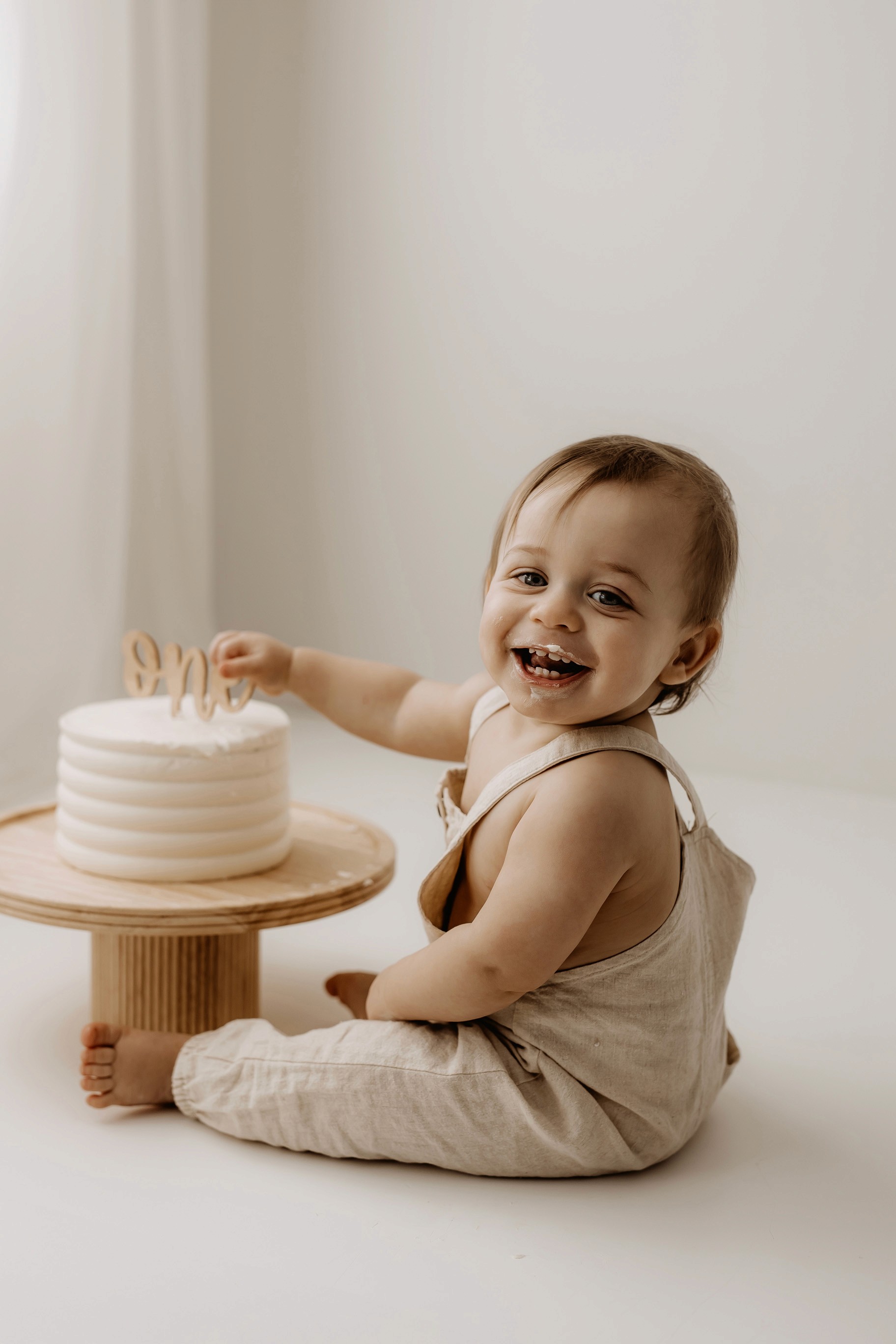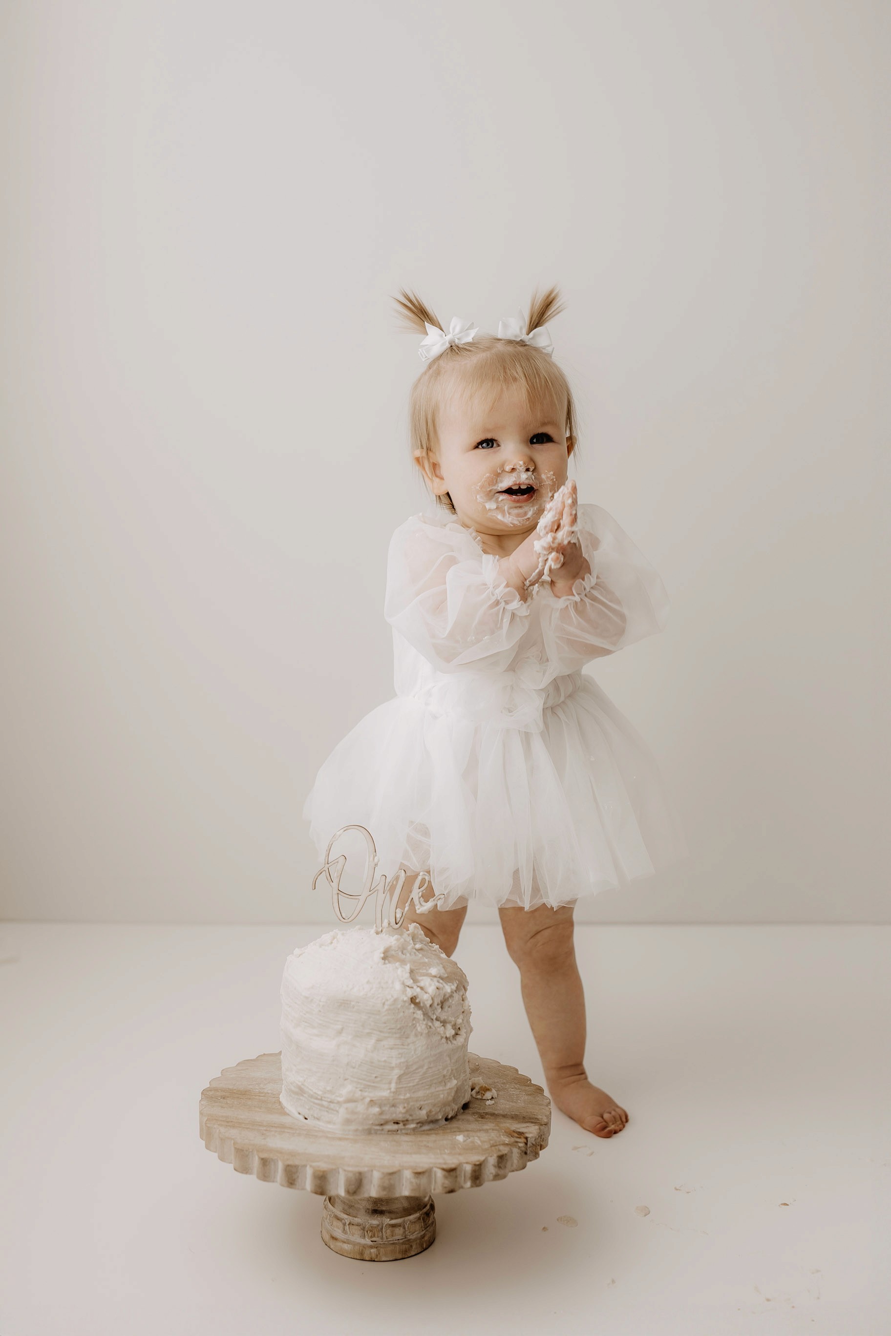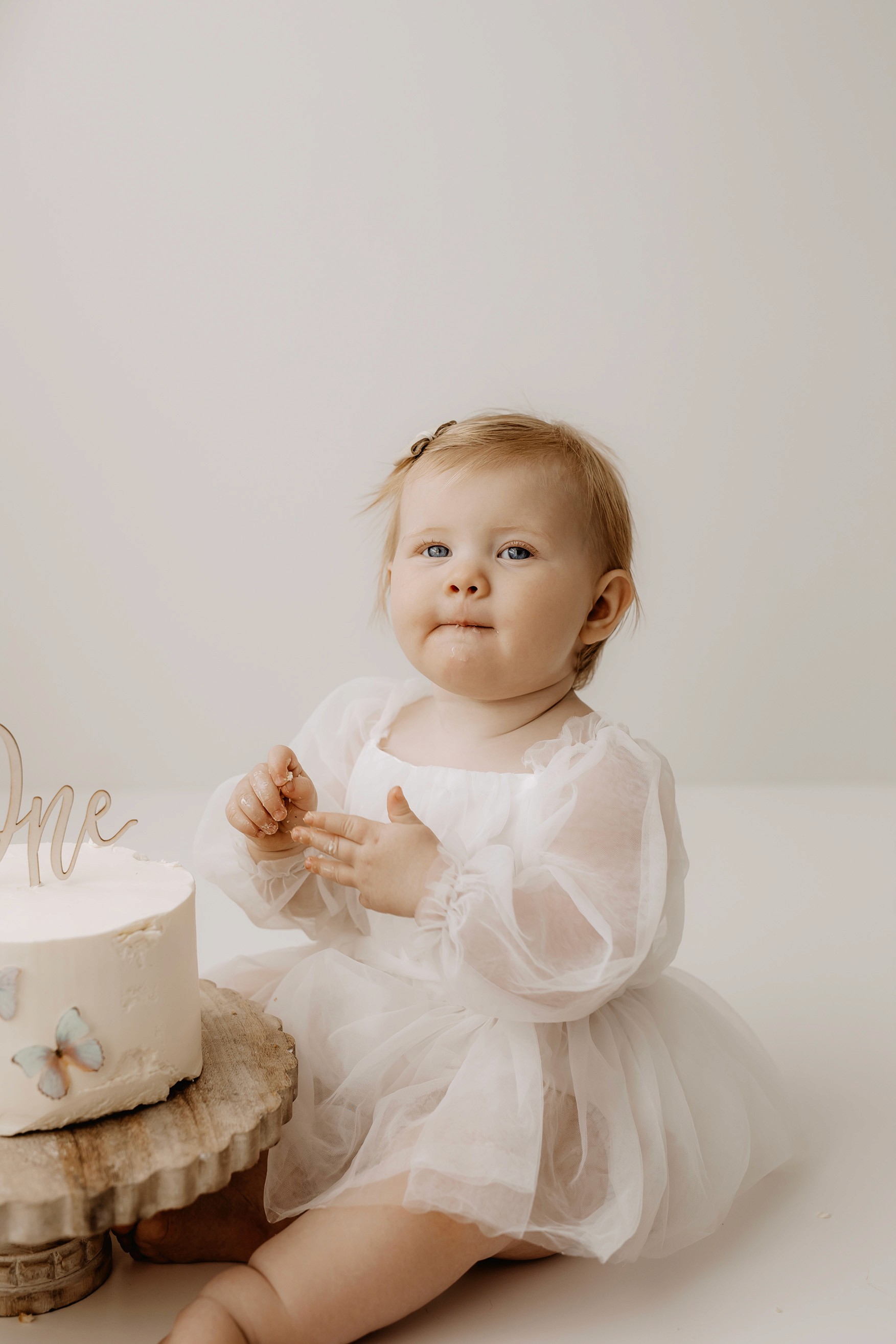 My style for cake smash sessions is very simple with minimal props that make your baby the focus. Cake, stands, toppers and client closet access for baby is provided. You can trust me to handle all the details, so you can simply enjoy the process!