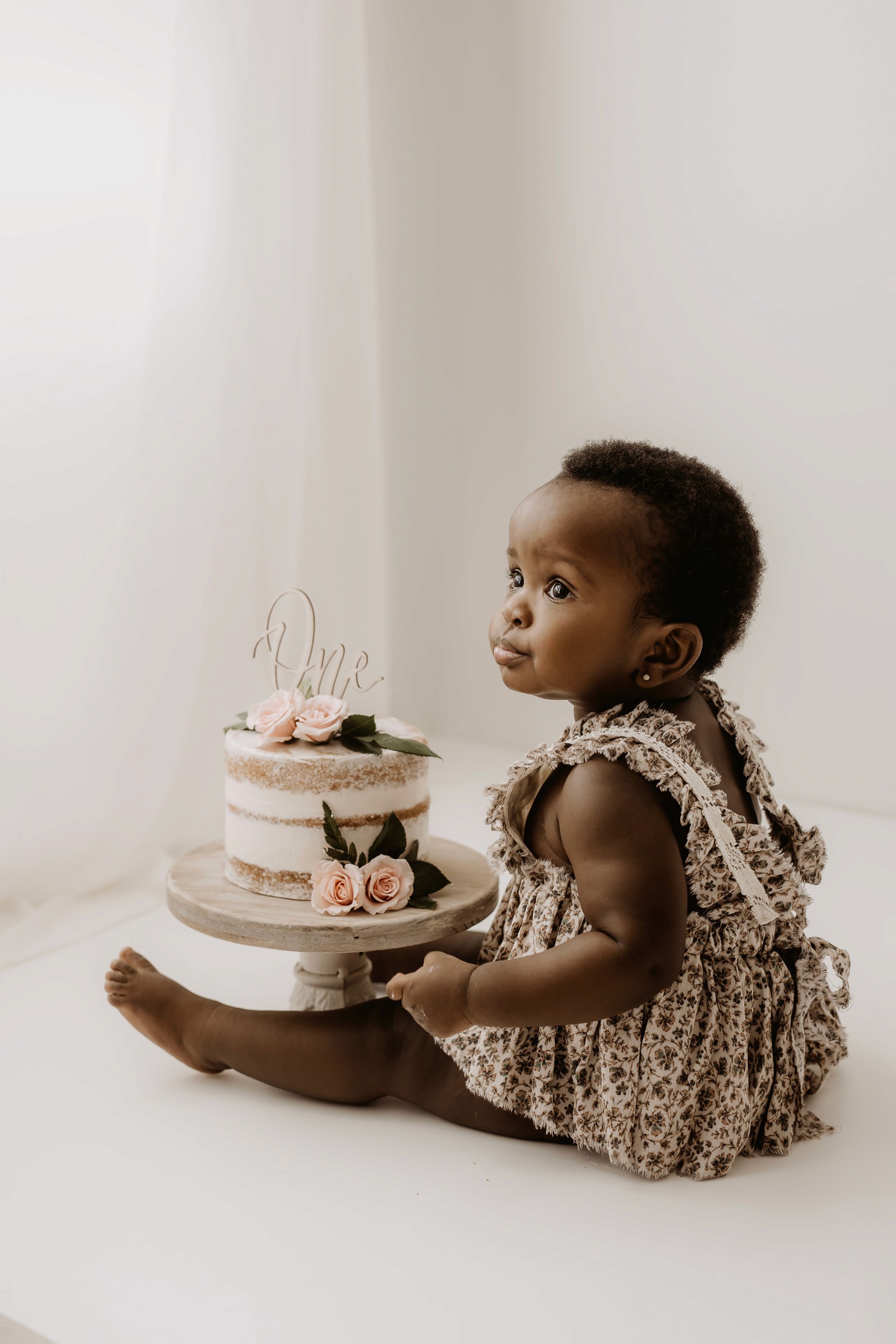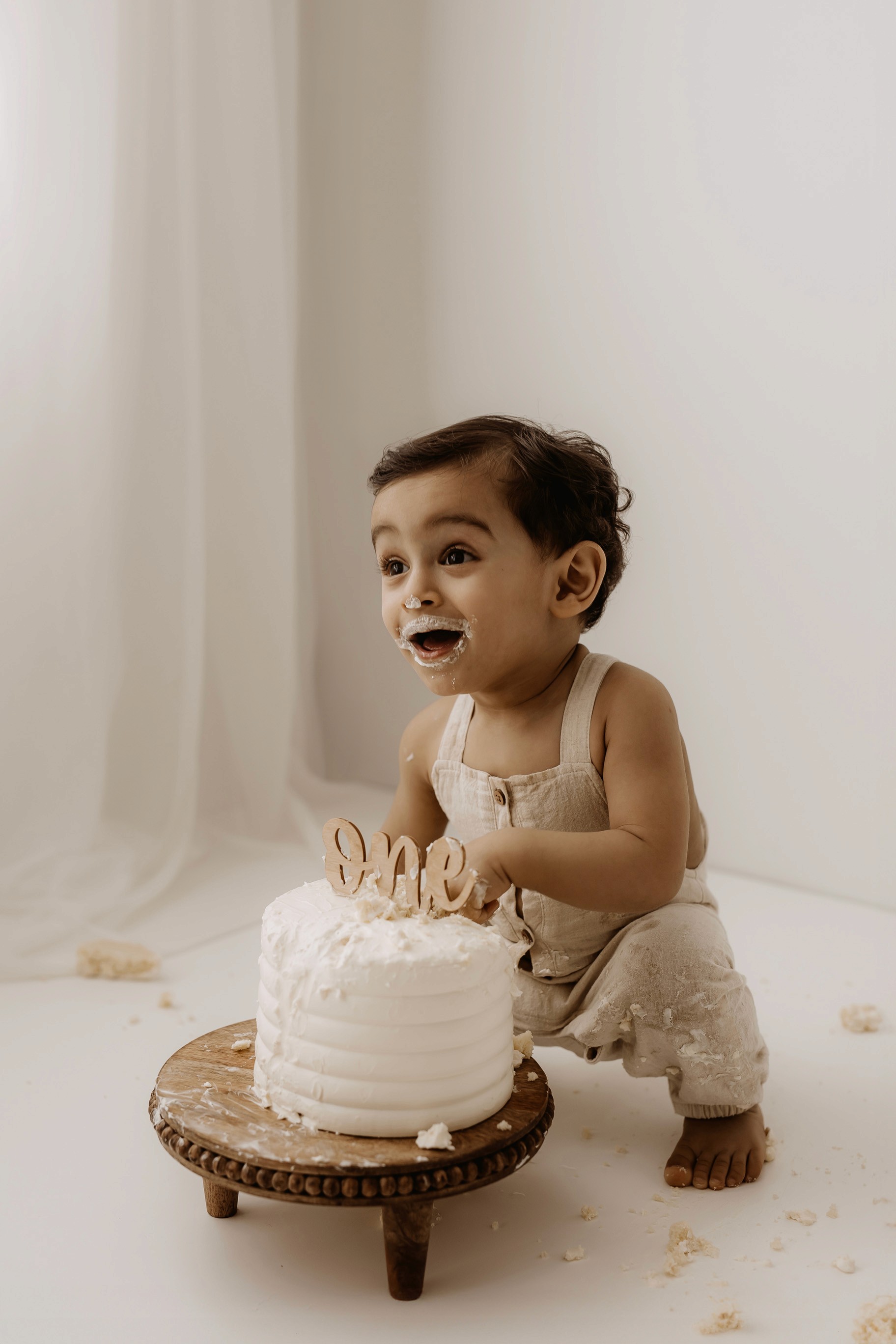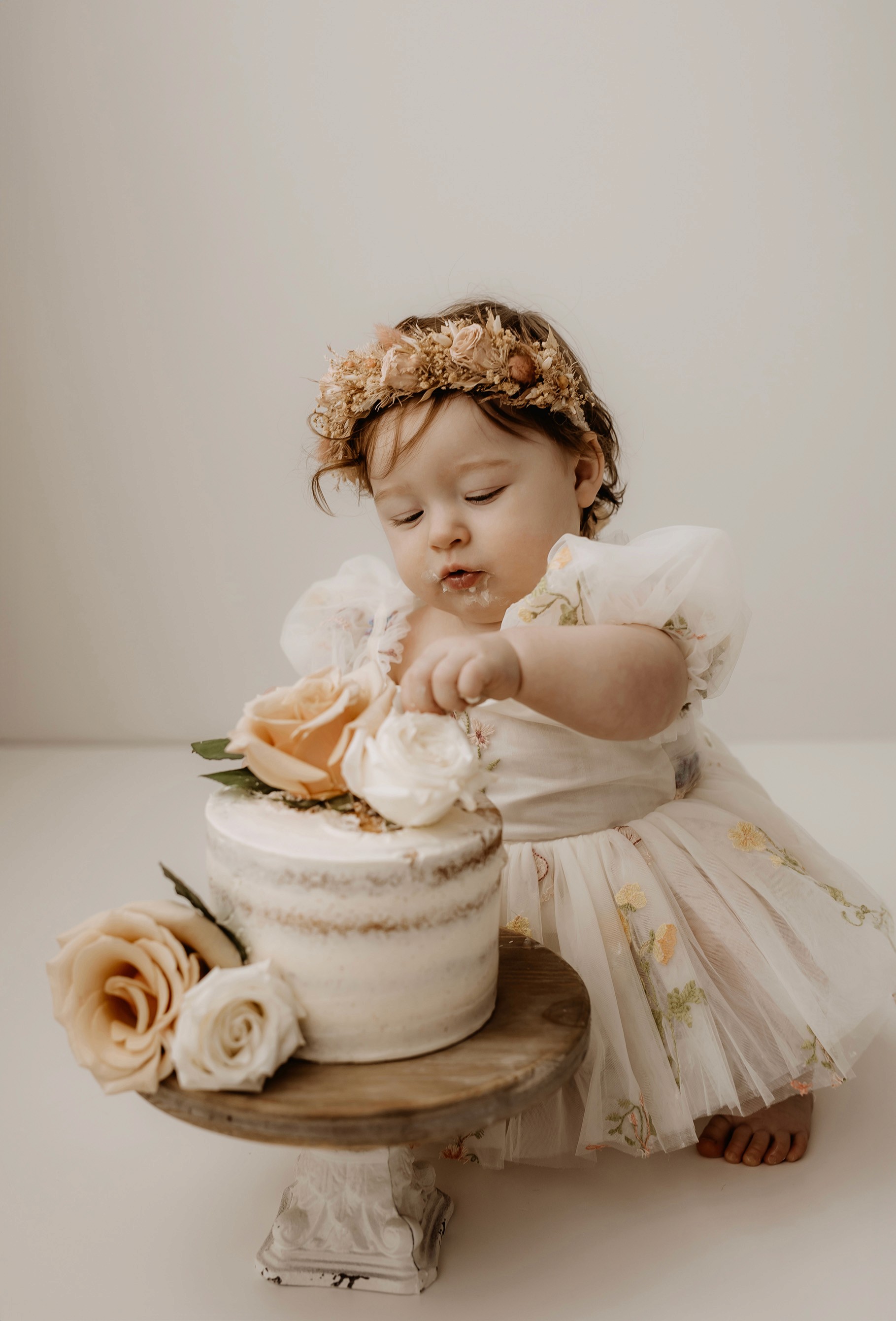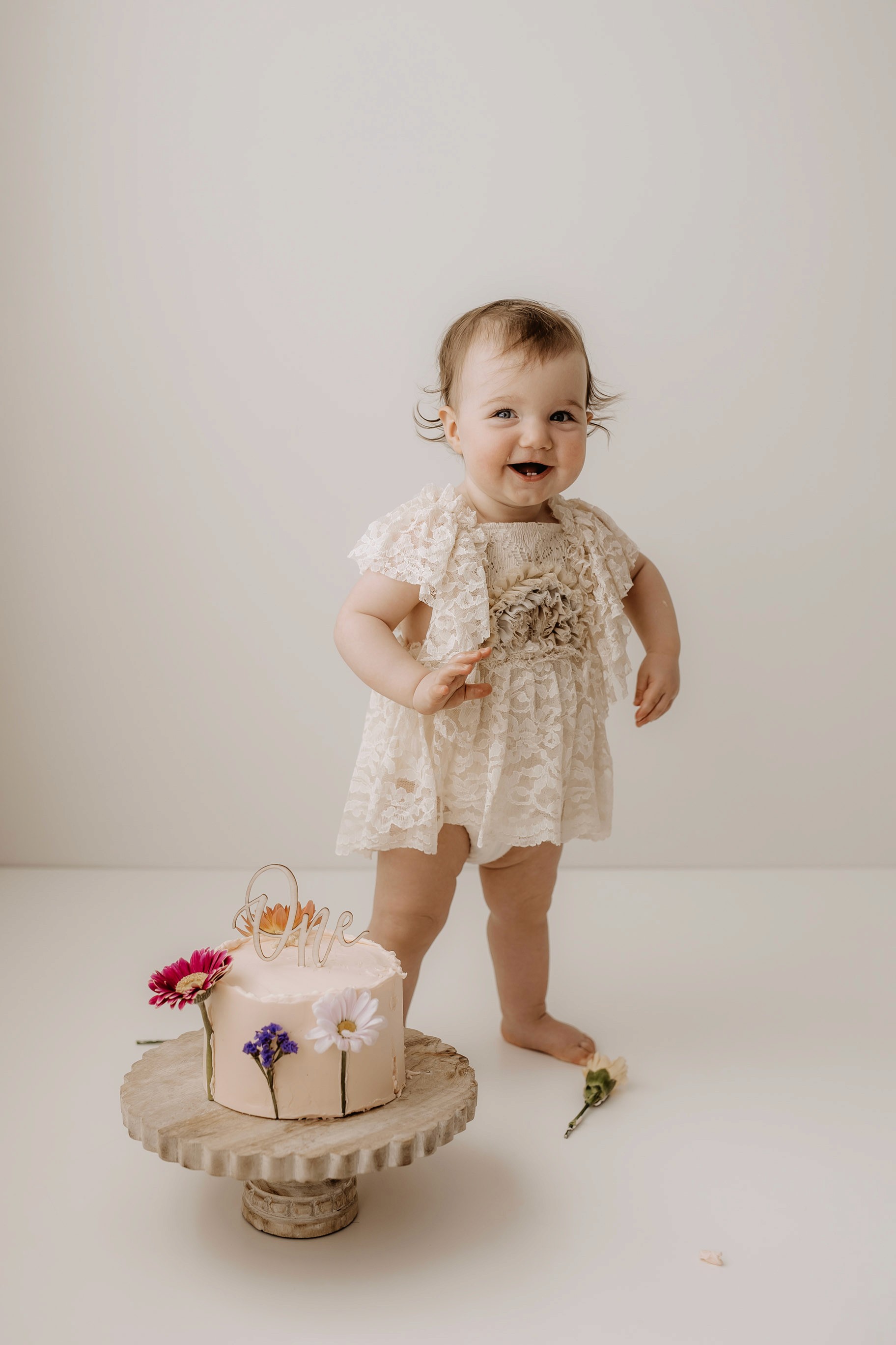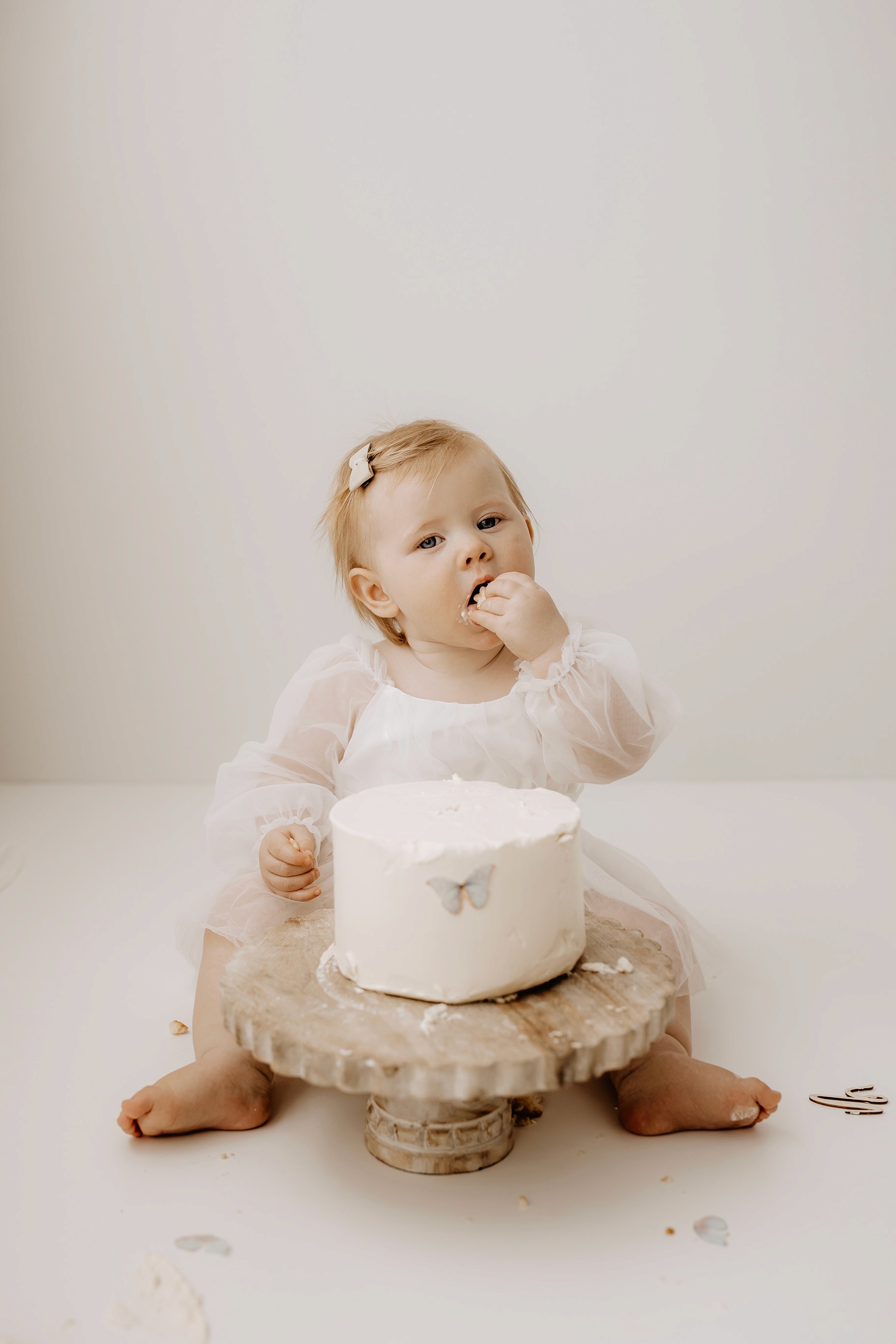 My style for cake smash sessions is very simple with minimal props that make your baby the focus. Cake, stands, toppers and client closet access for baby is provided. You can trust me to handle all the details, so you can simply enjoy the process!