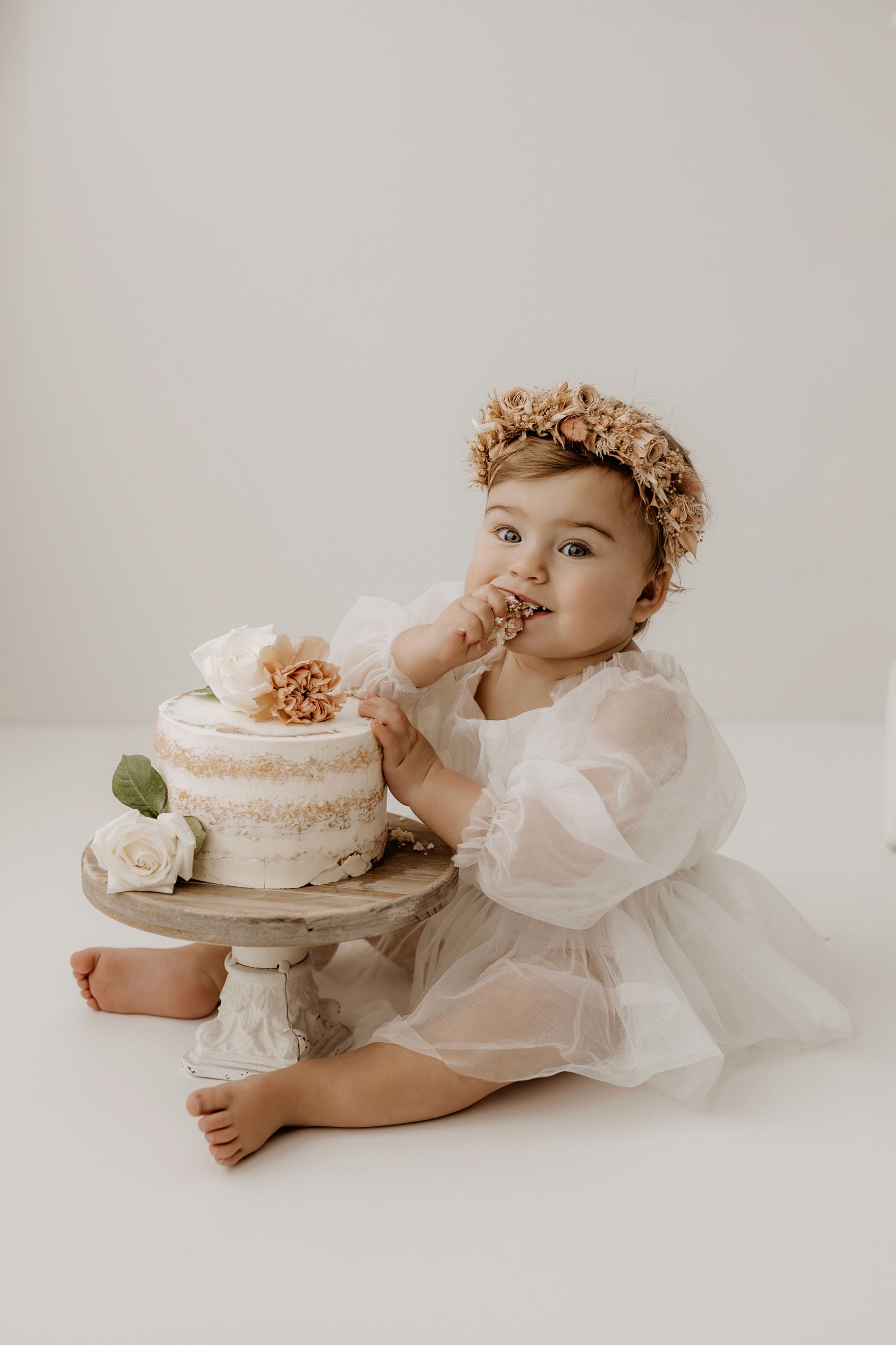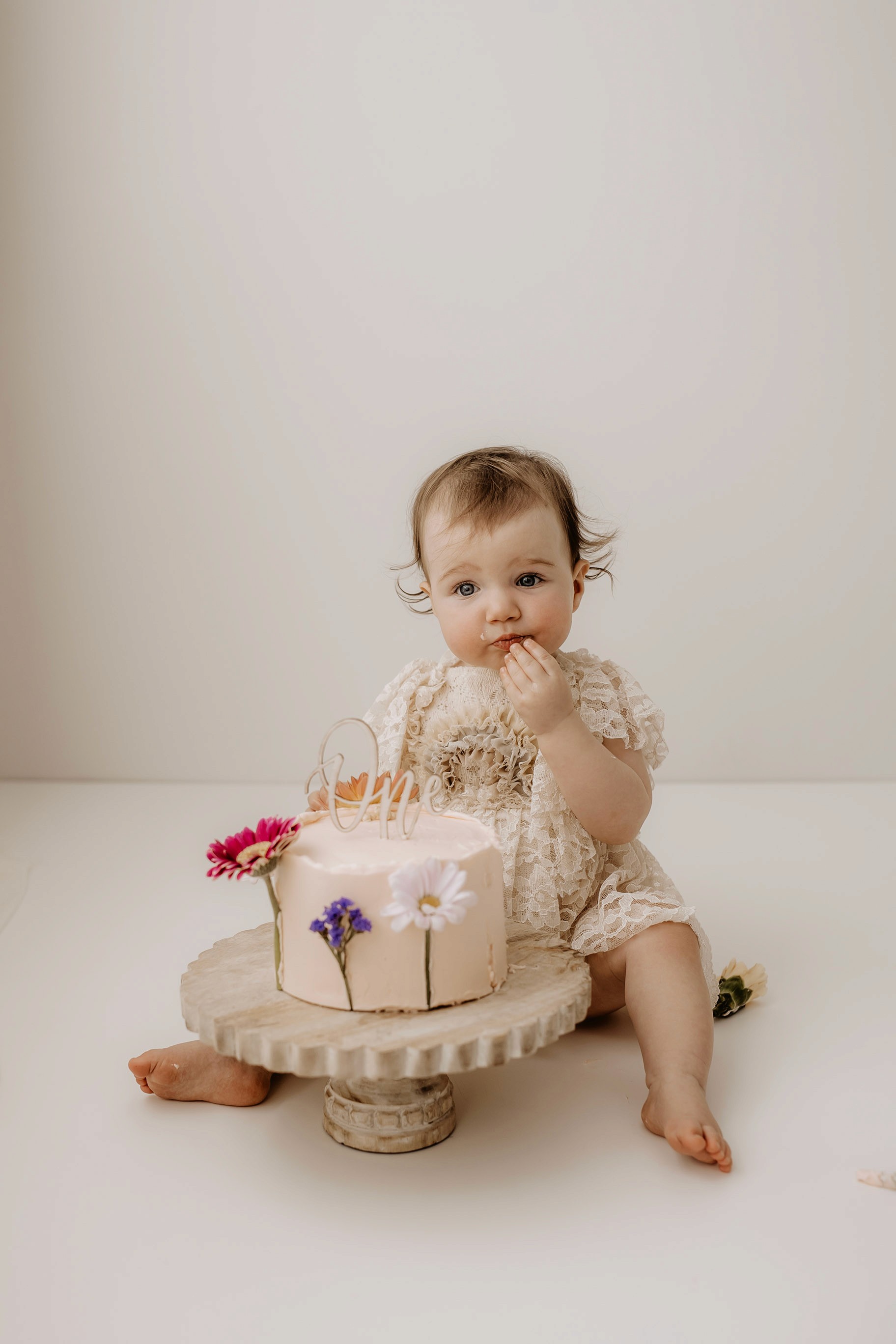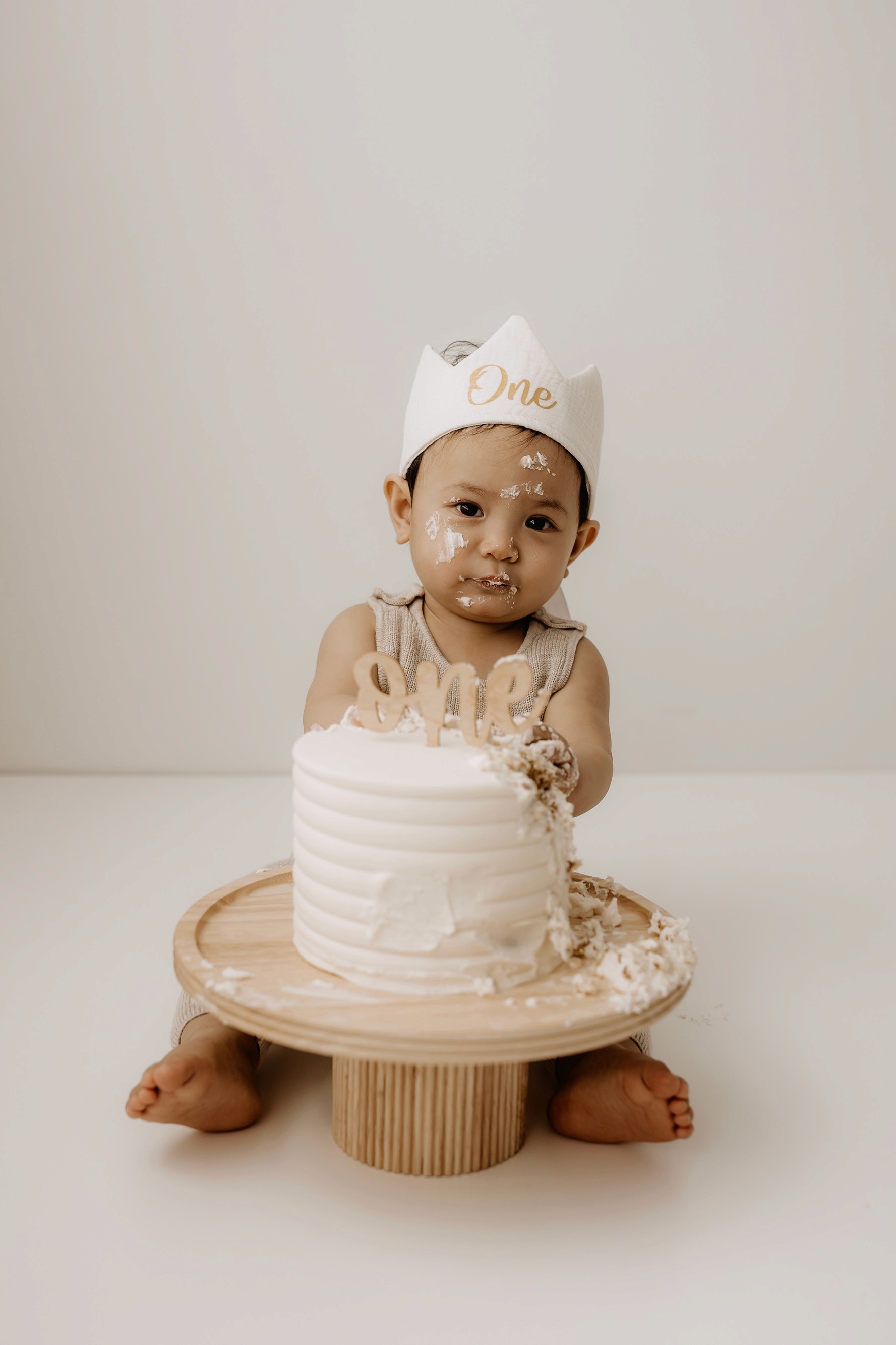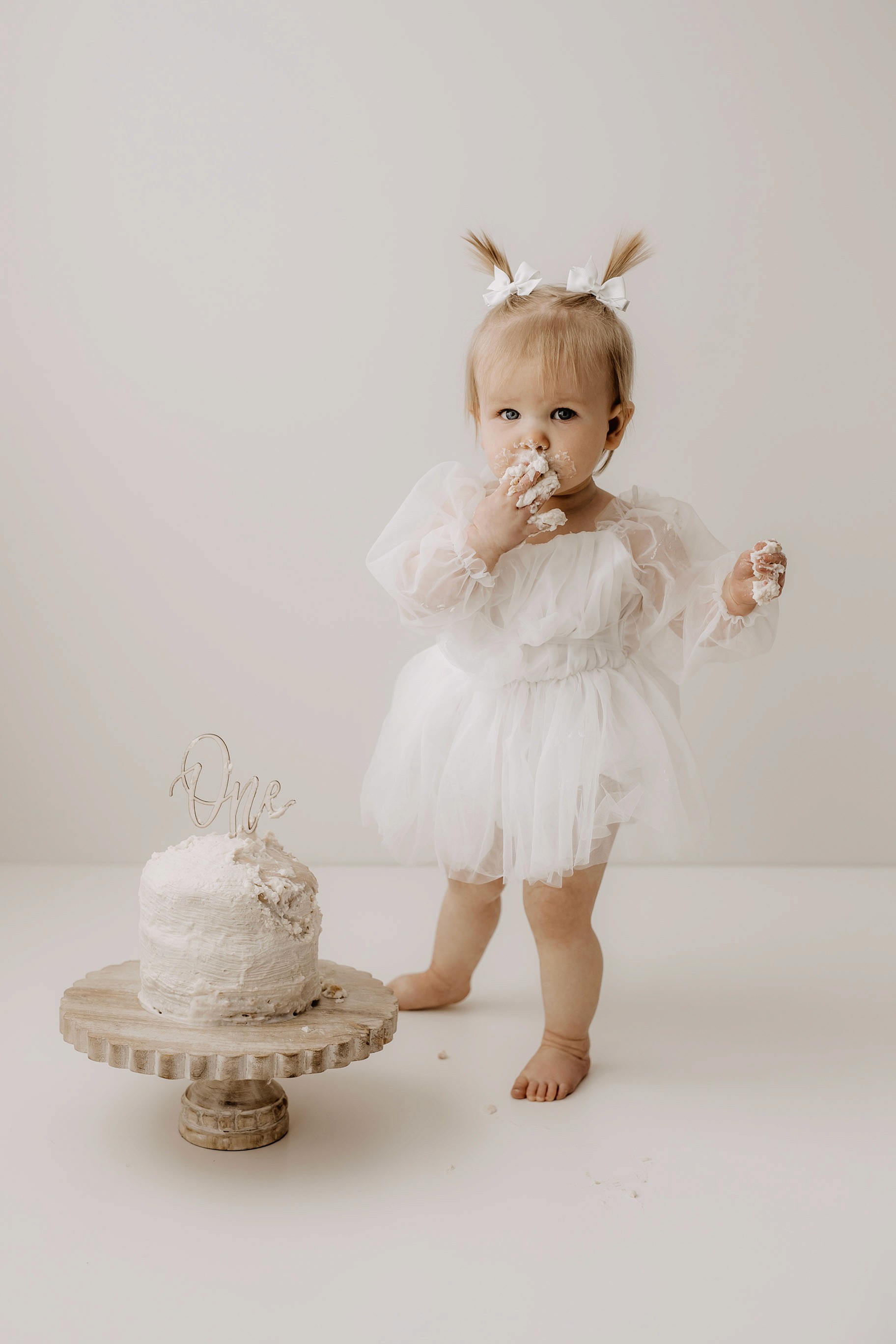 My style for cake smash sessions is very simple with minimal props that make your baby the focus. Cake, stands, toppers and client closet access for baby is provided. You can trust me to handle all the details, so you can simply enjoy the process!