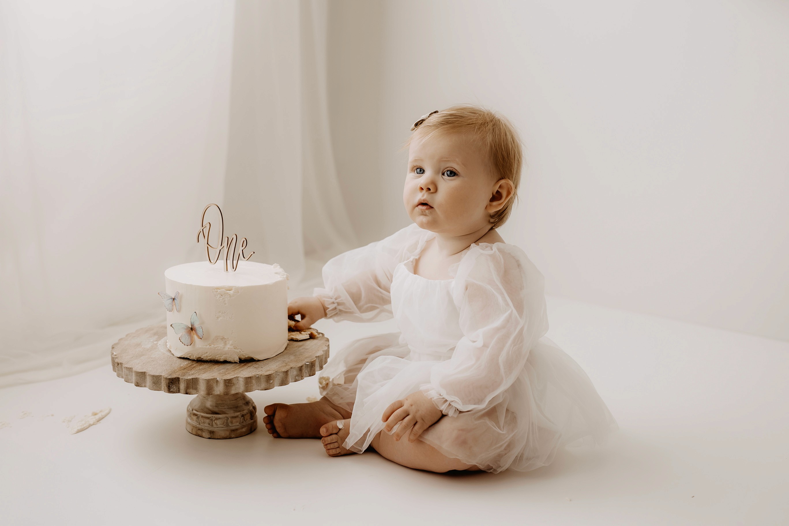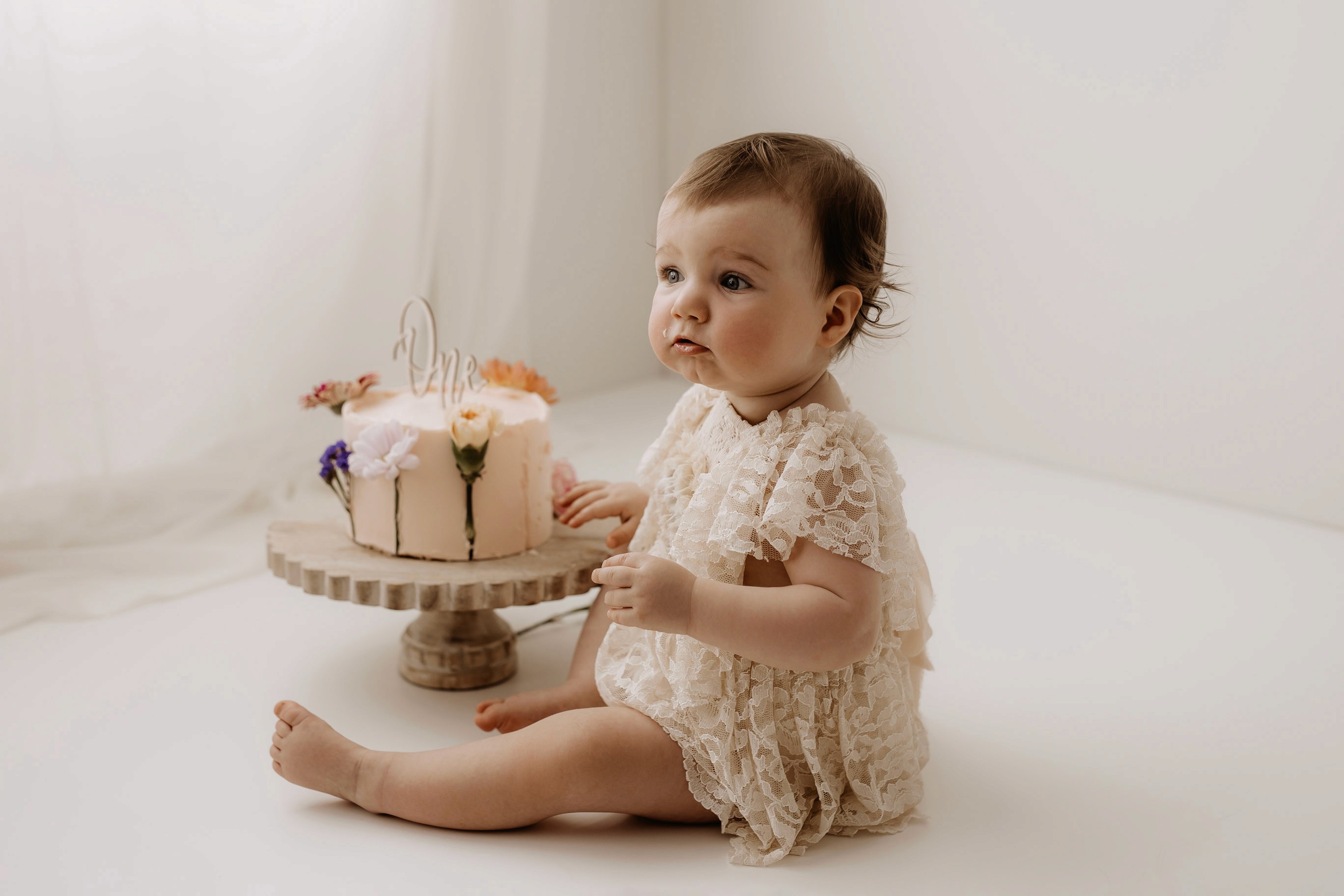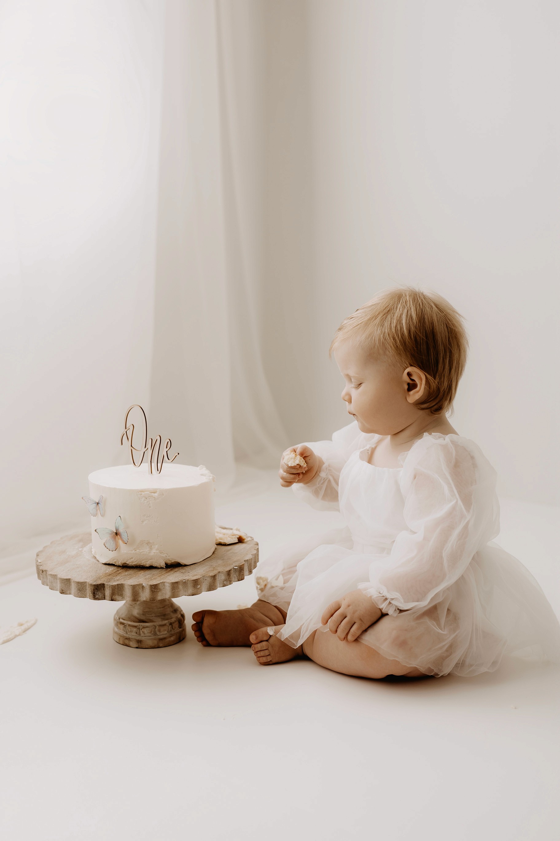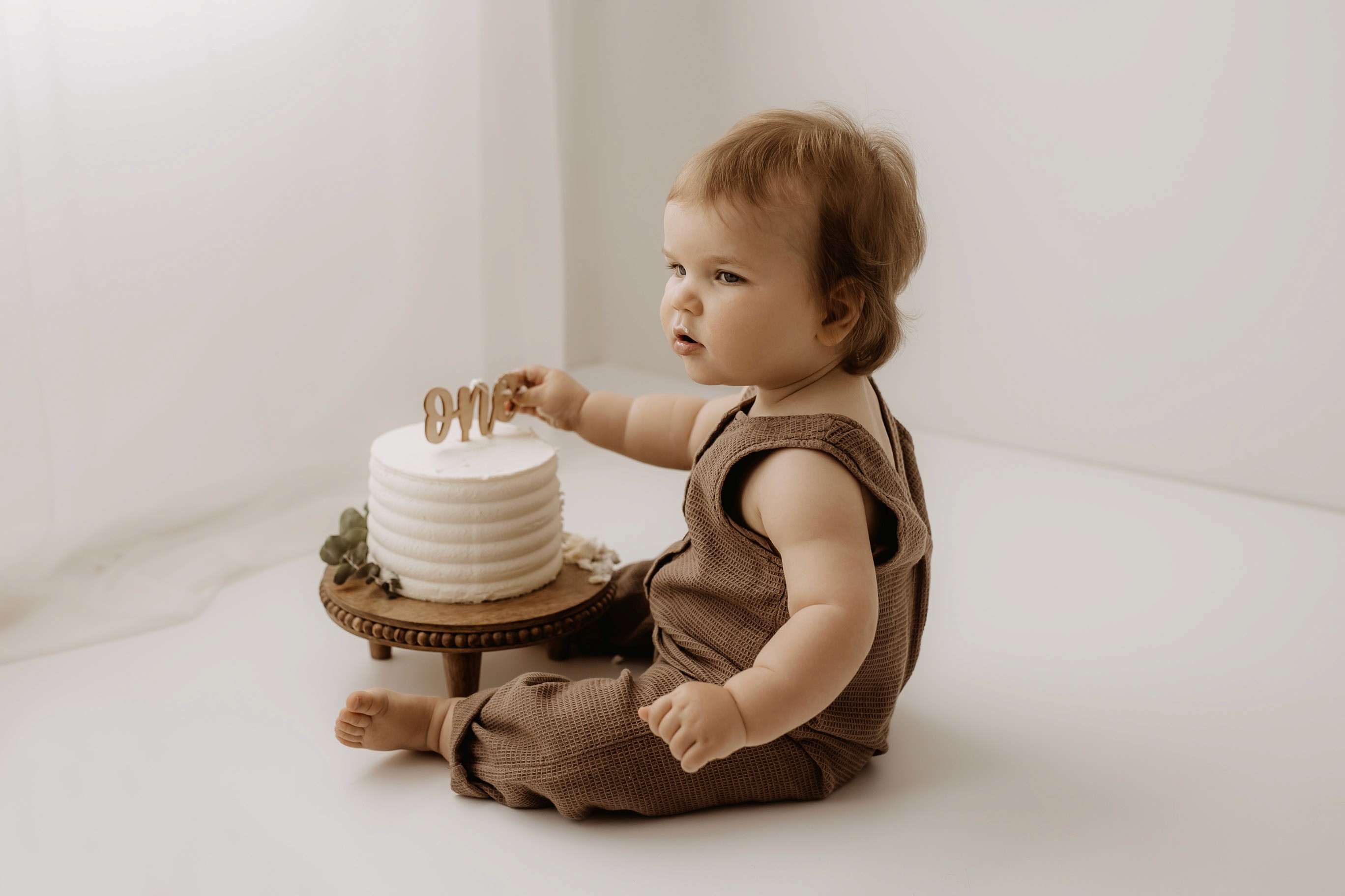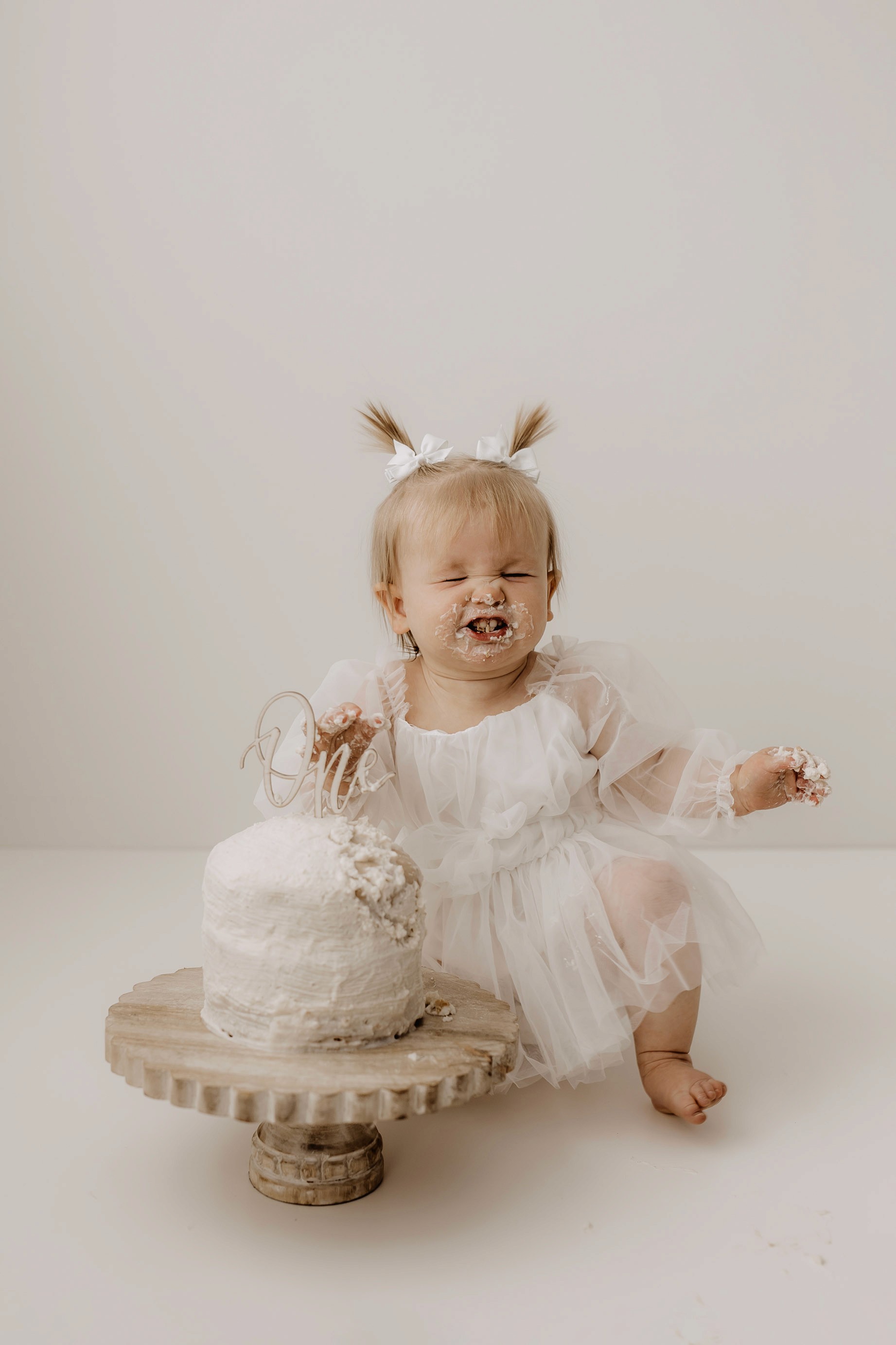 My style for cake smash sessions is very simple with minimal props that make your baby the focus. Cake, stands, toppers and client closet access for baby is provided. You can trust me to handle all the details, so you can simply enjoy the process!
