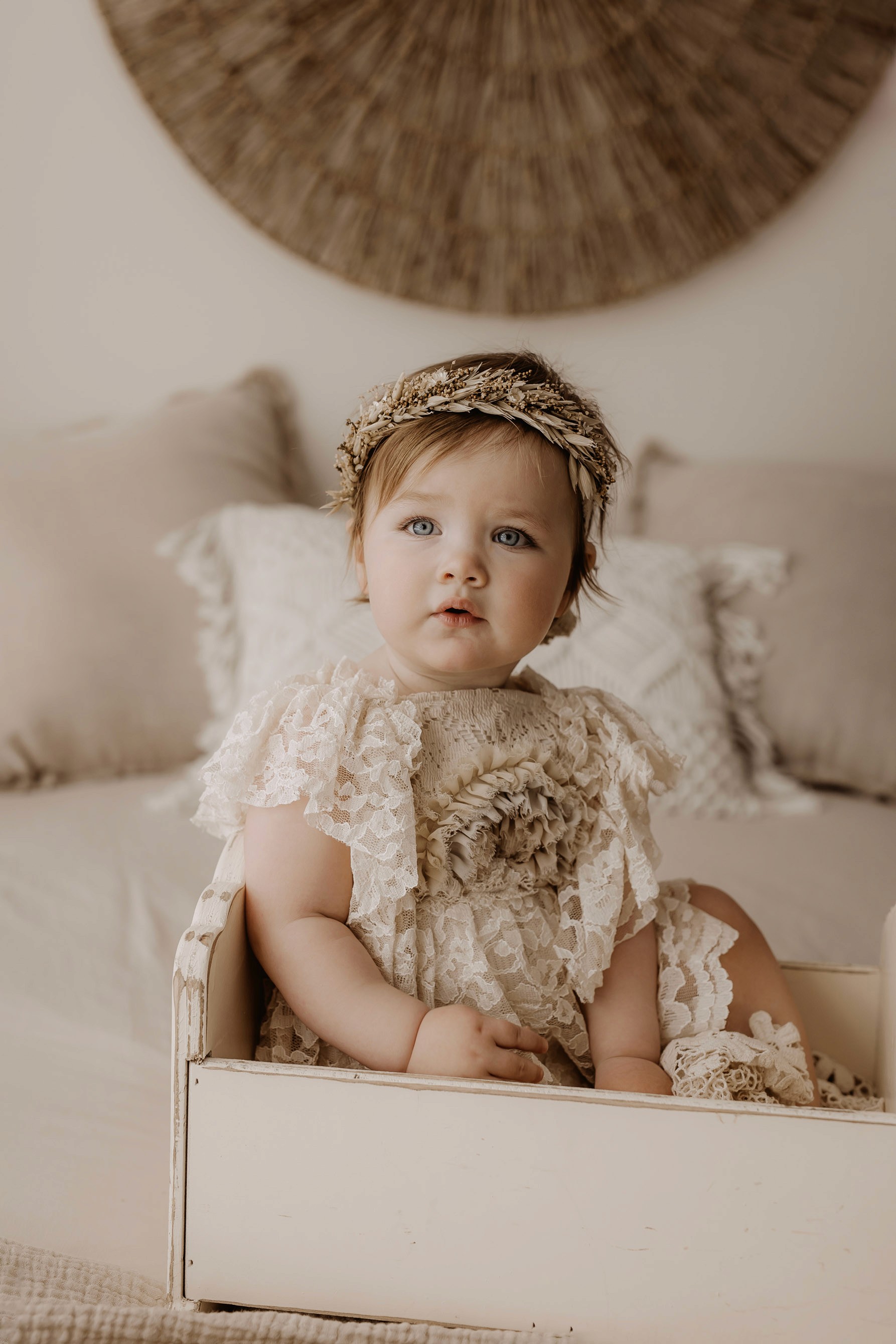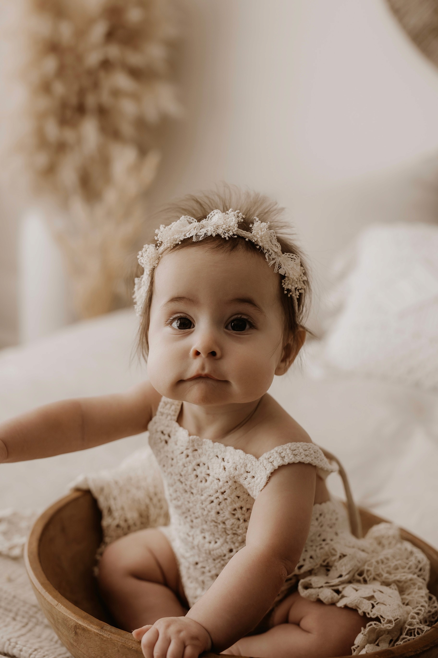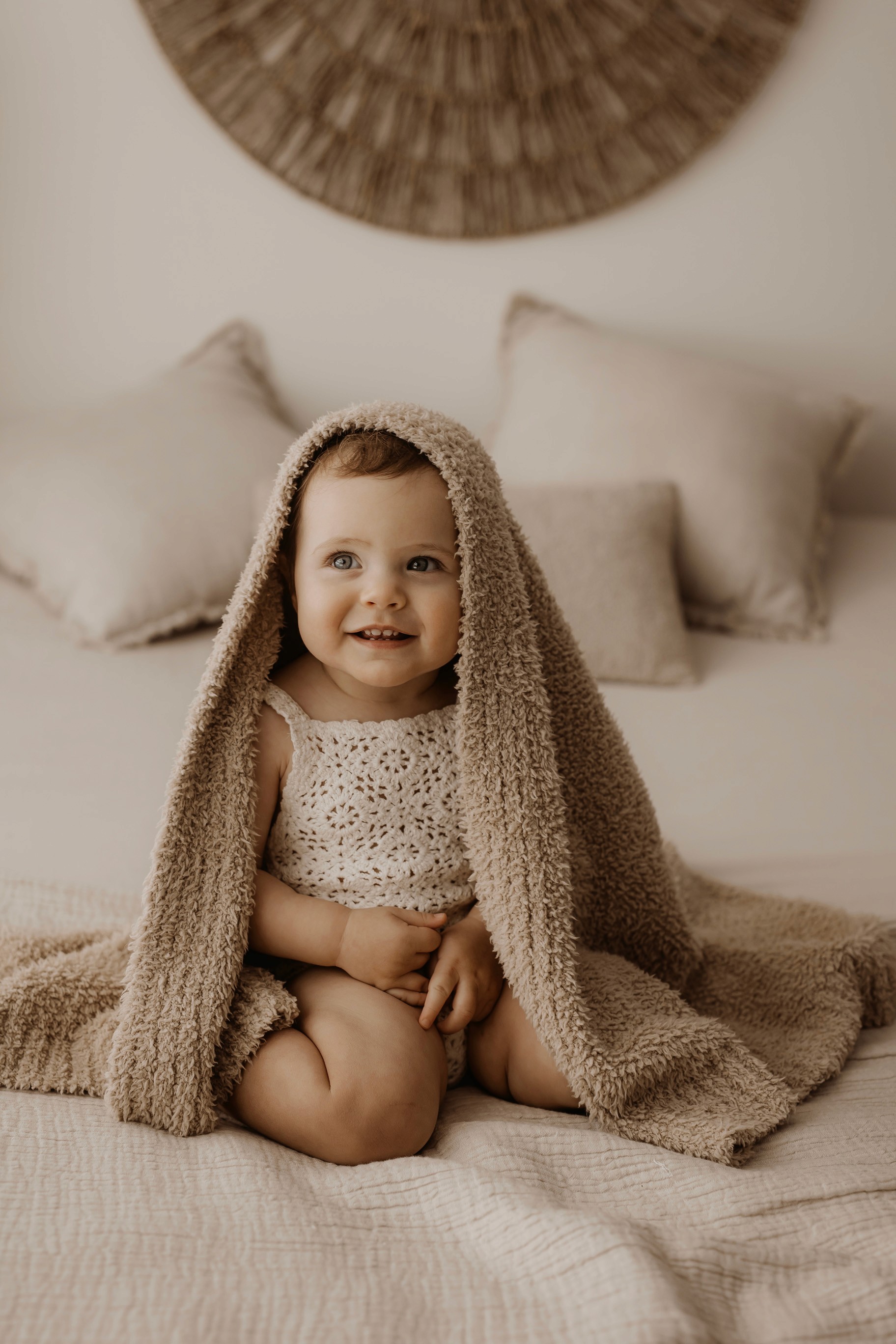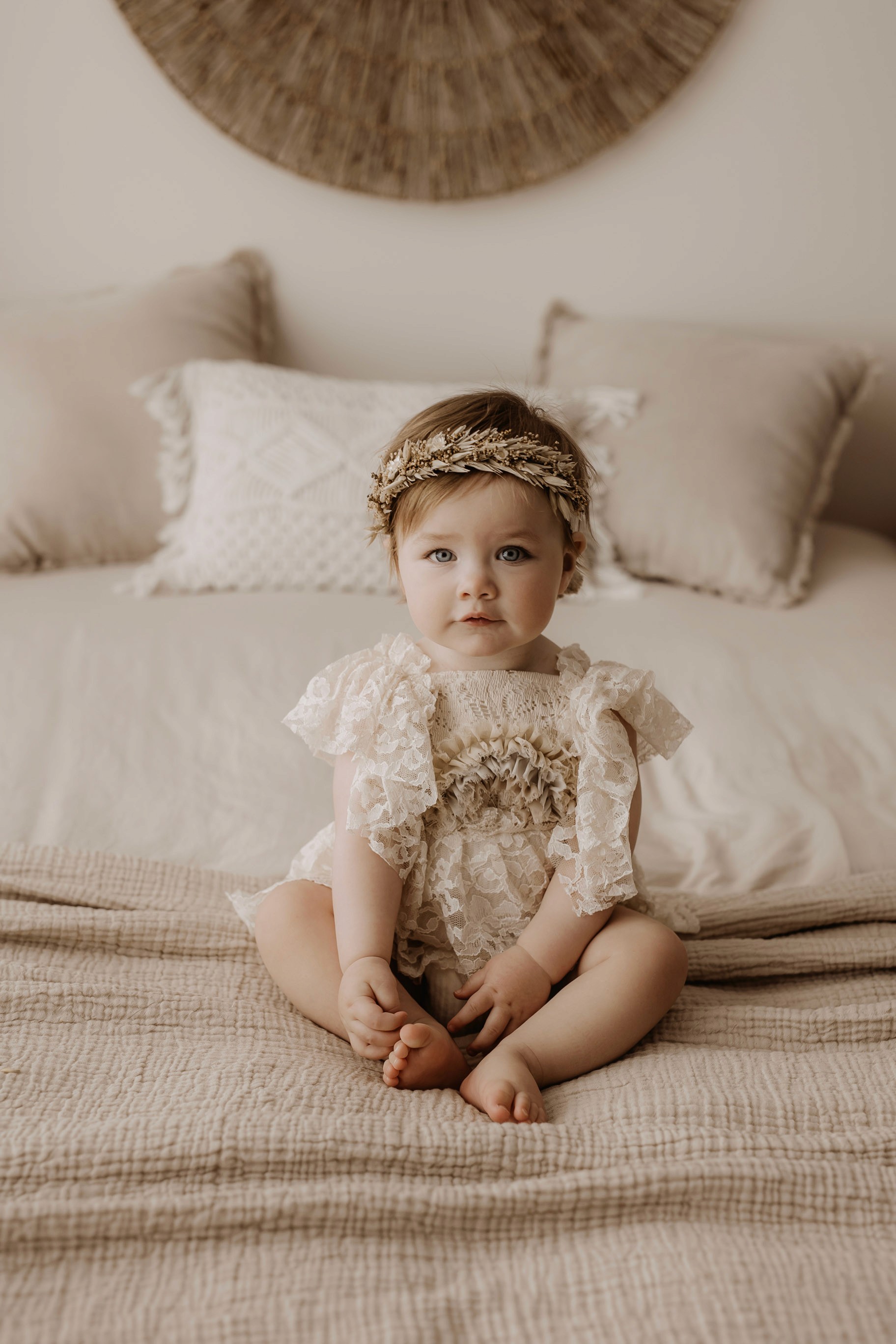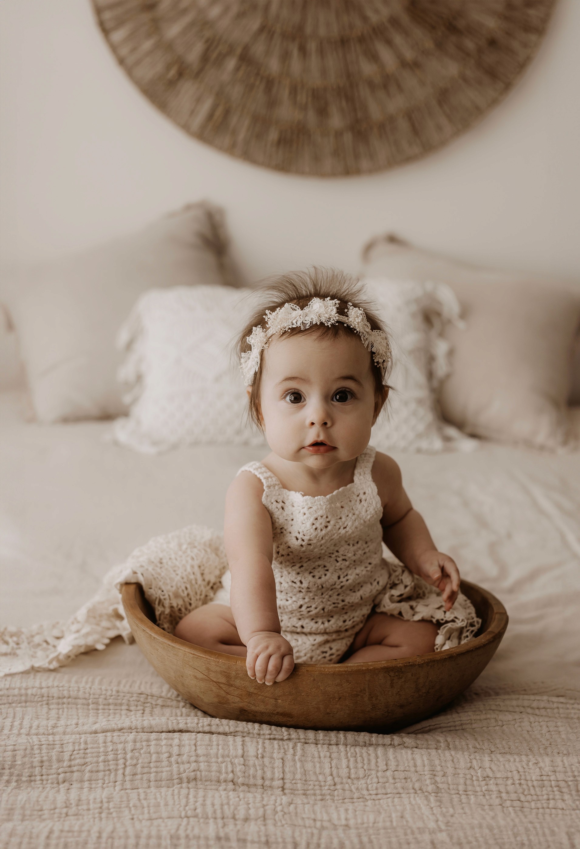 I provide baby outfits to match the earthy neutral vibe, as well as blankets and headbands. Client closet access for mama & older siblings is also provided.