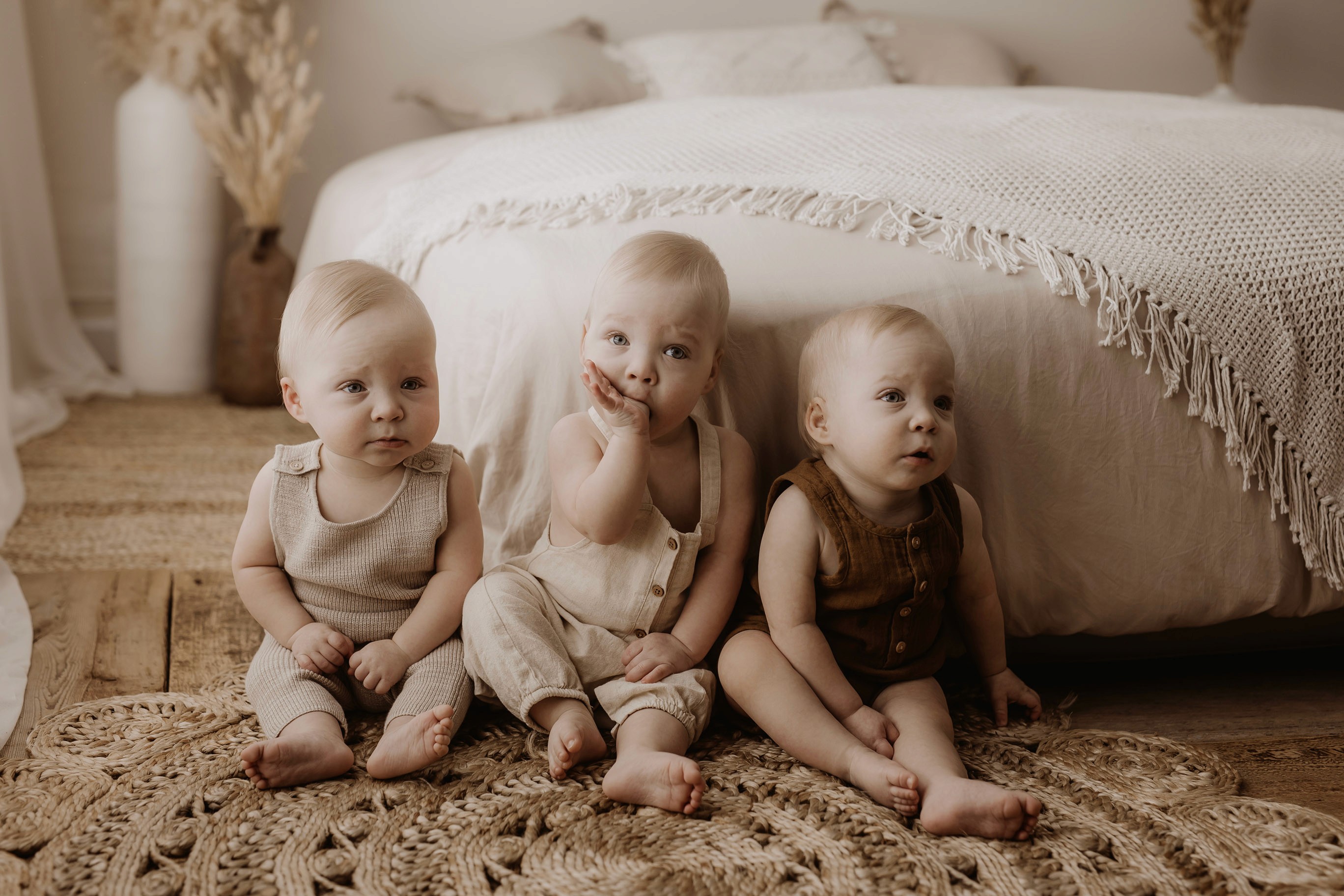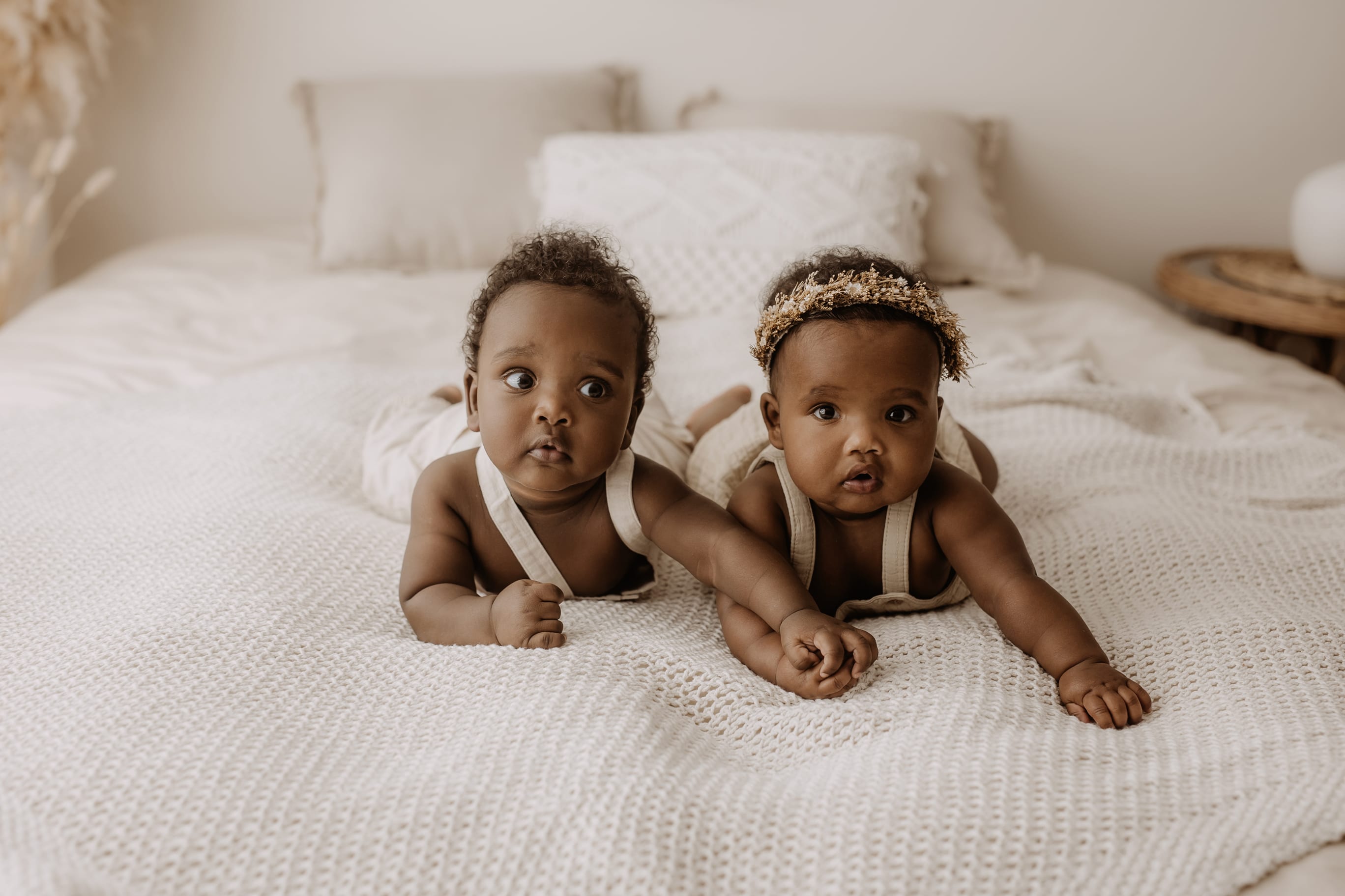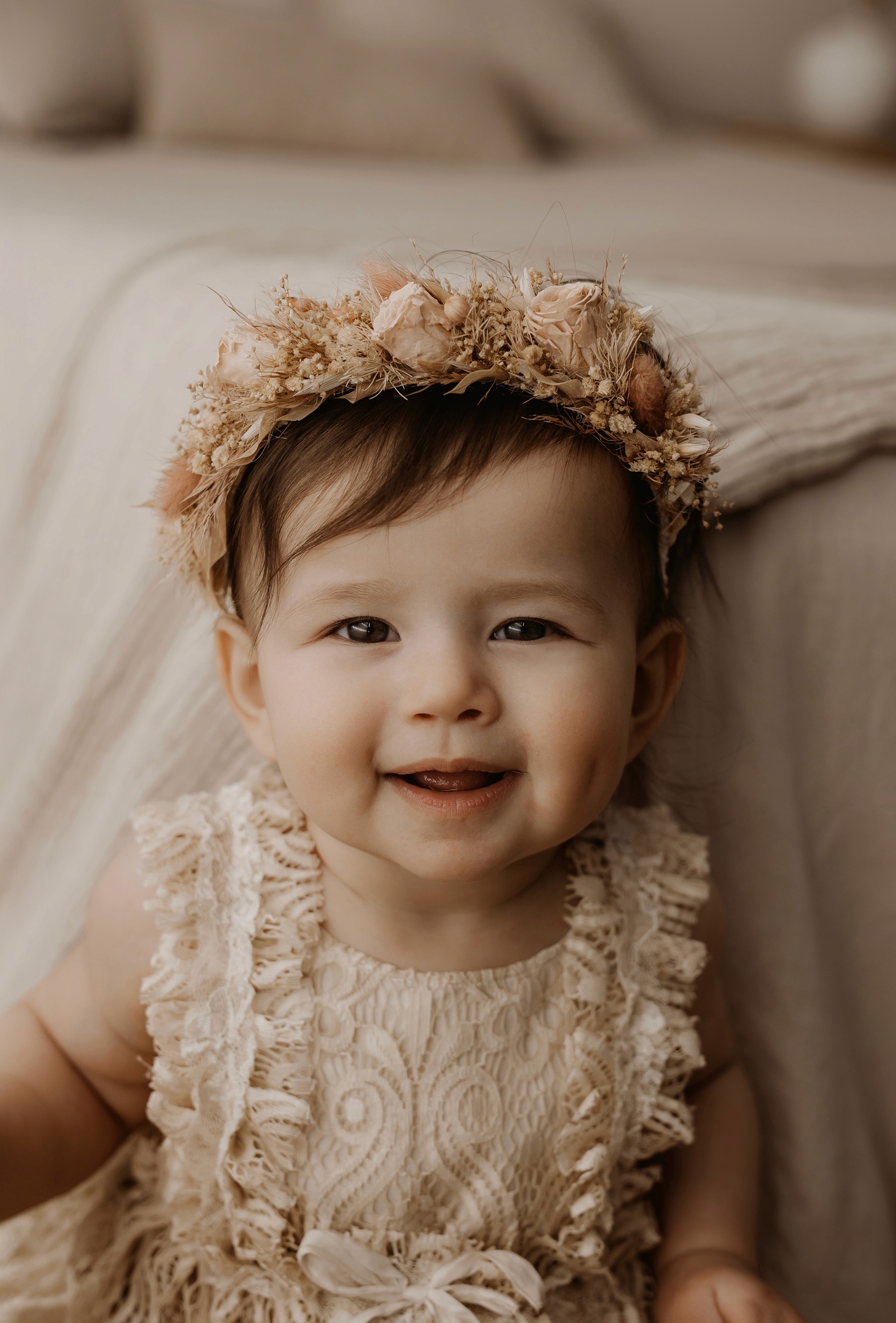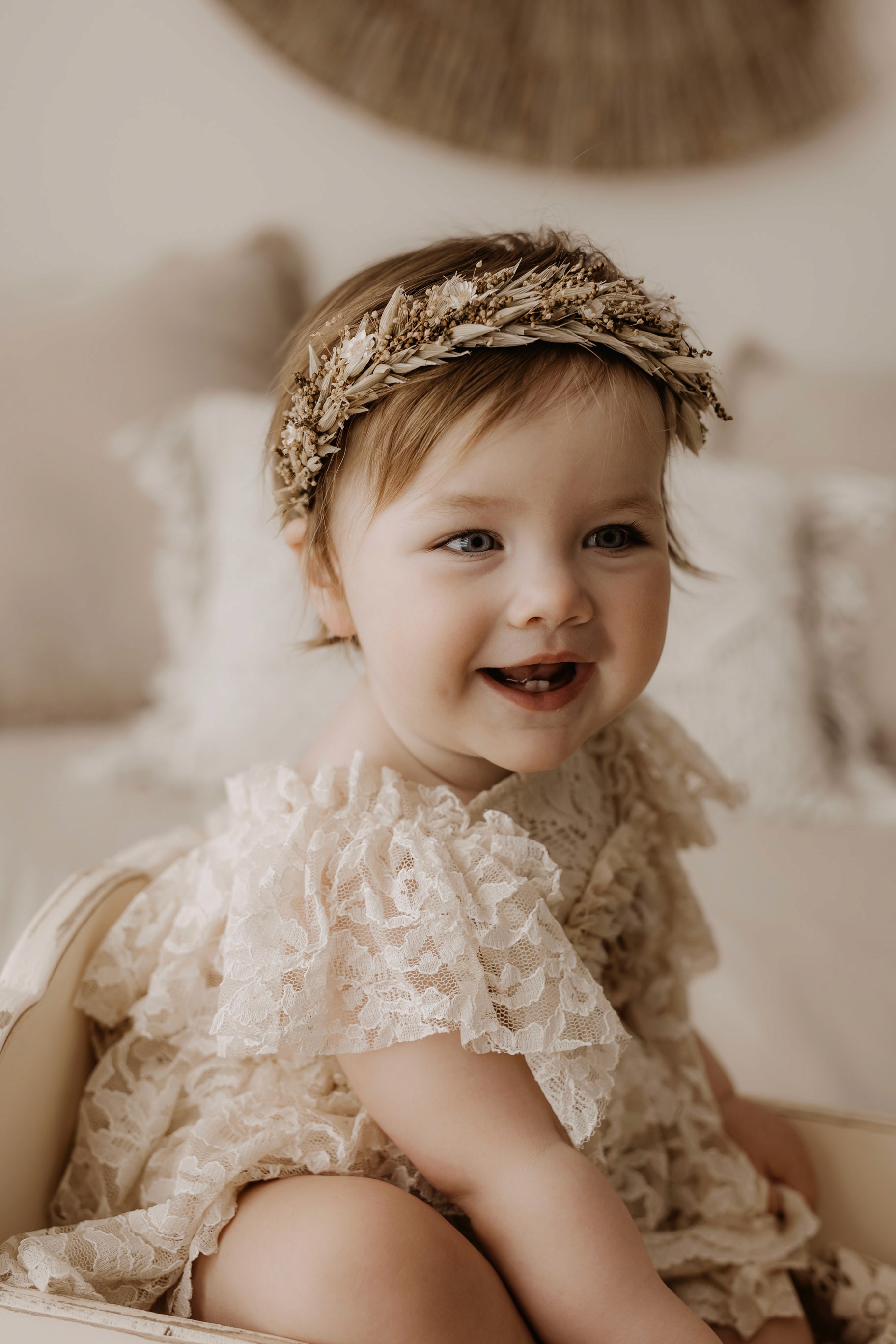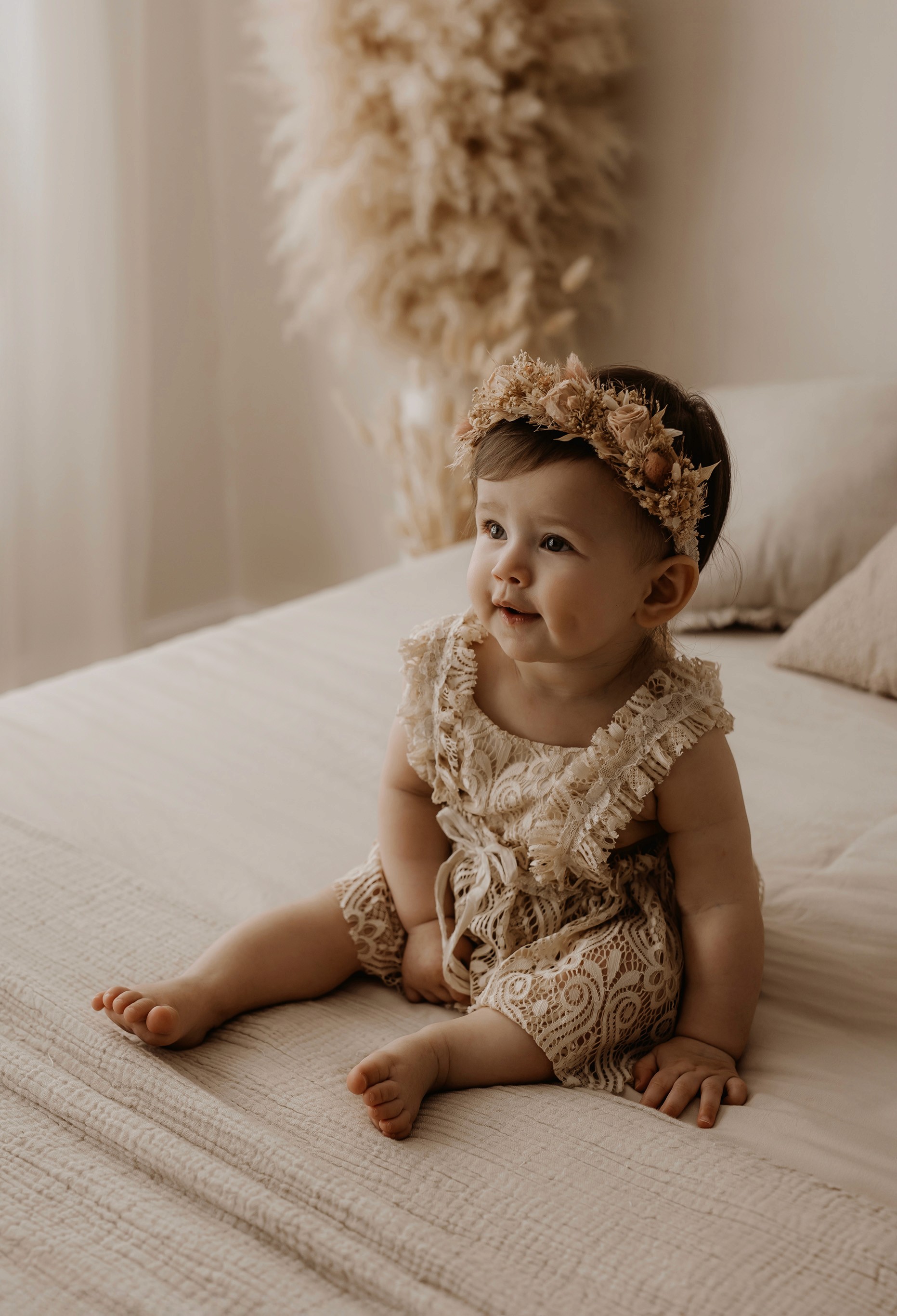 I provide baby outfits to match the earthy neutral vibe, as well as blankets and headbands. Client closet access for mama & older siblings is also provided.