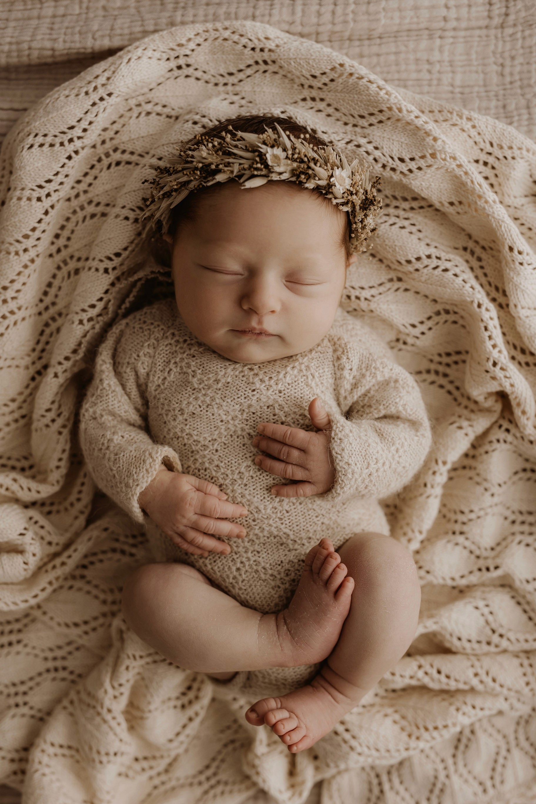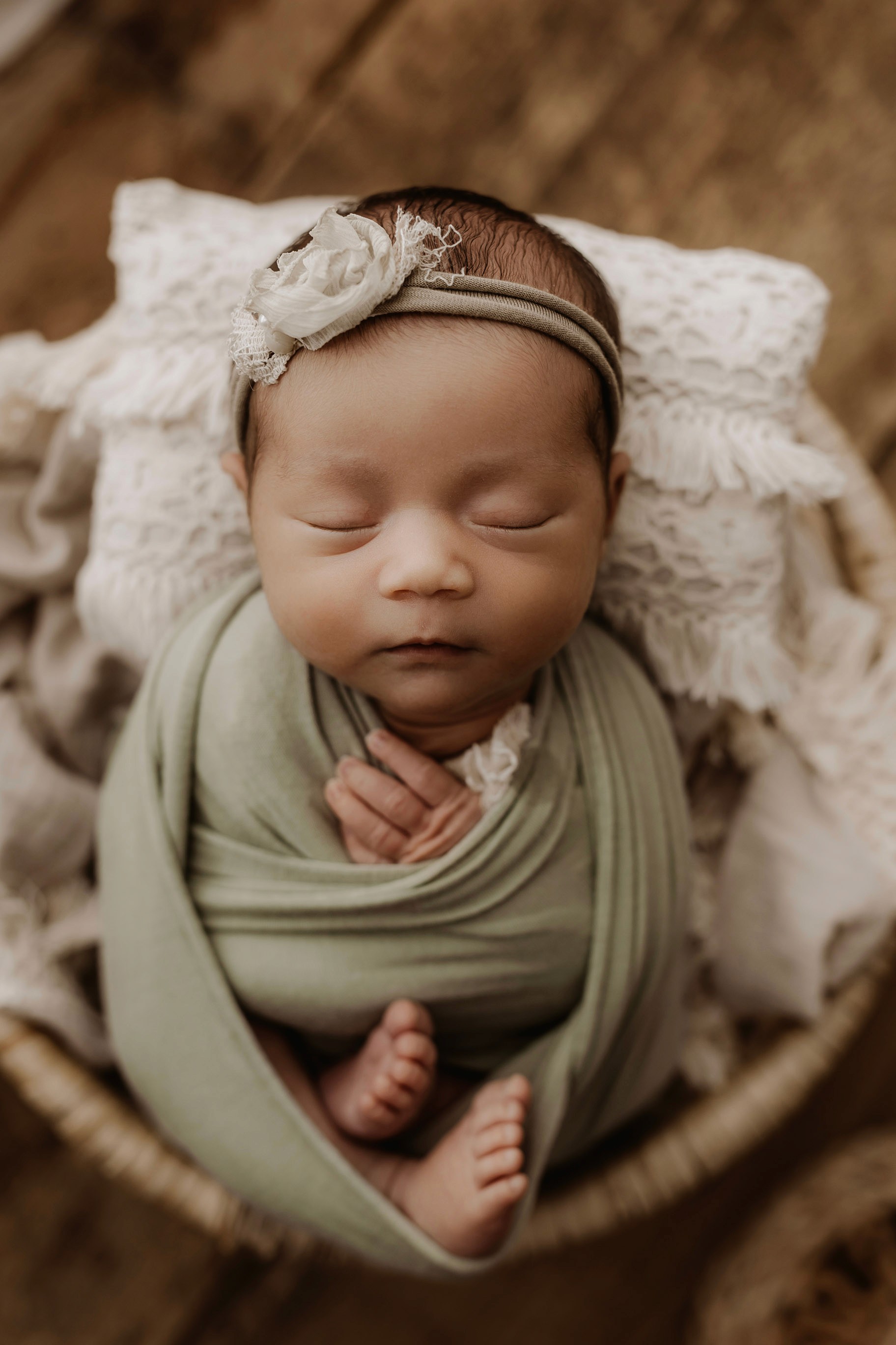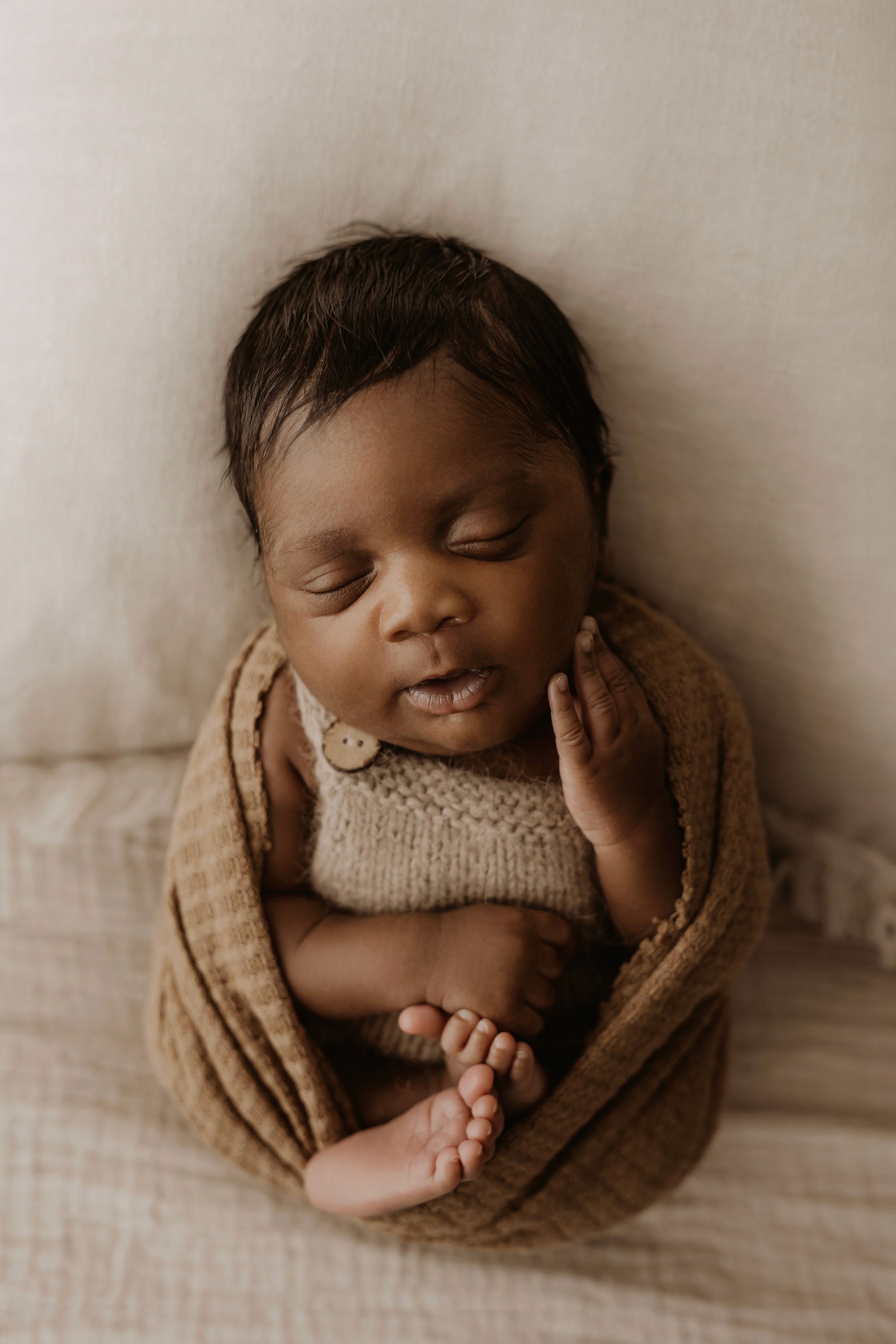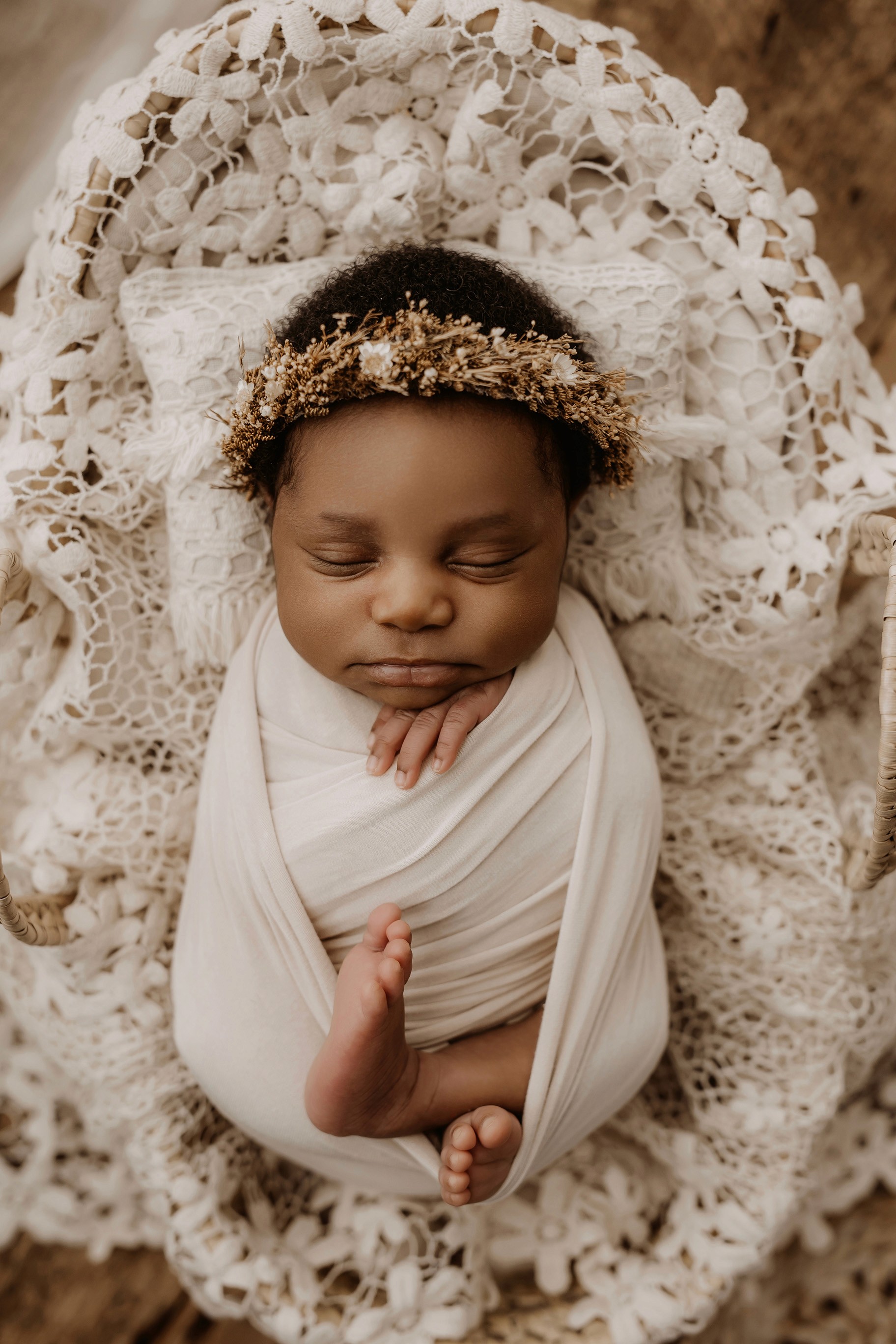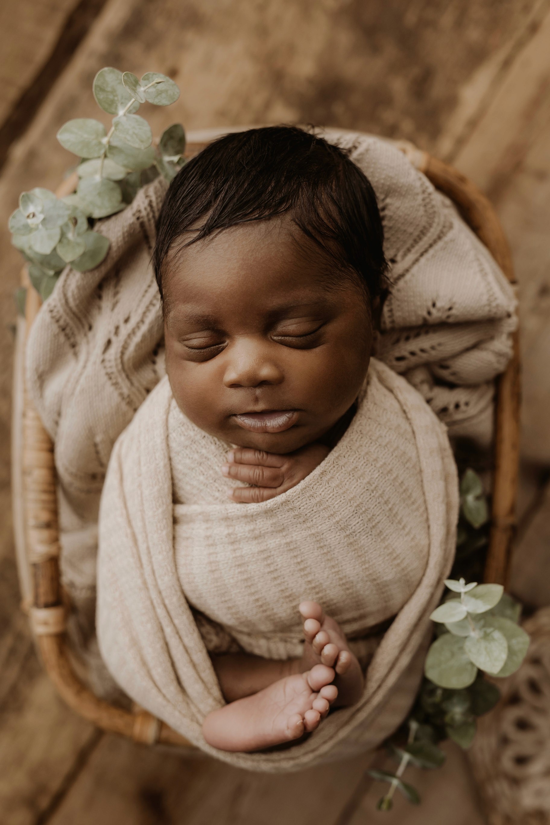 Newborn photography is best taken 5 to 14 days after birth when newborns are extra sleepy, however sessions can be taken up to 8 weeks old!