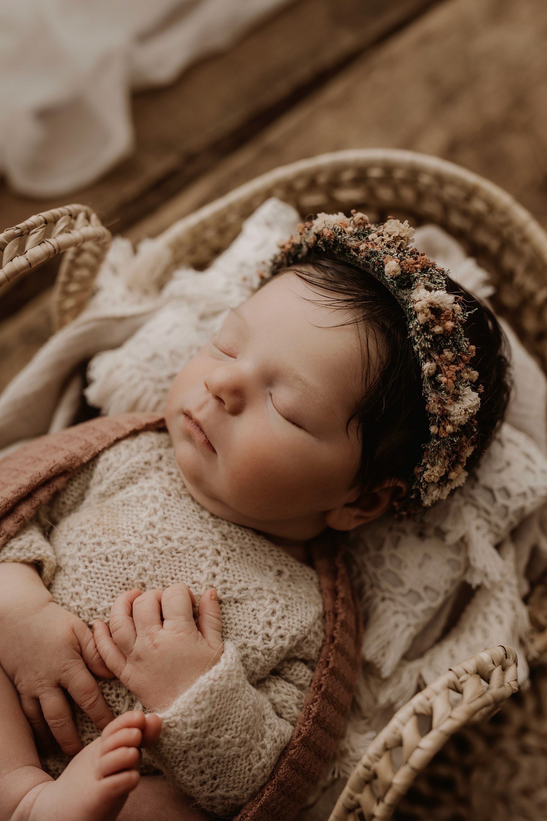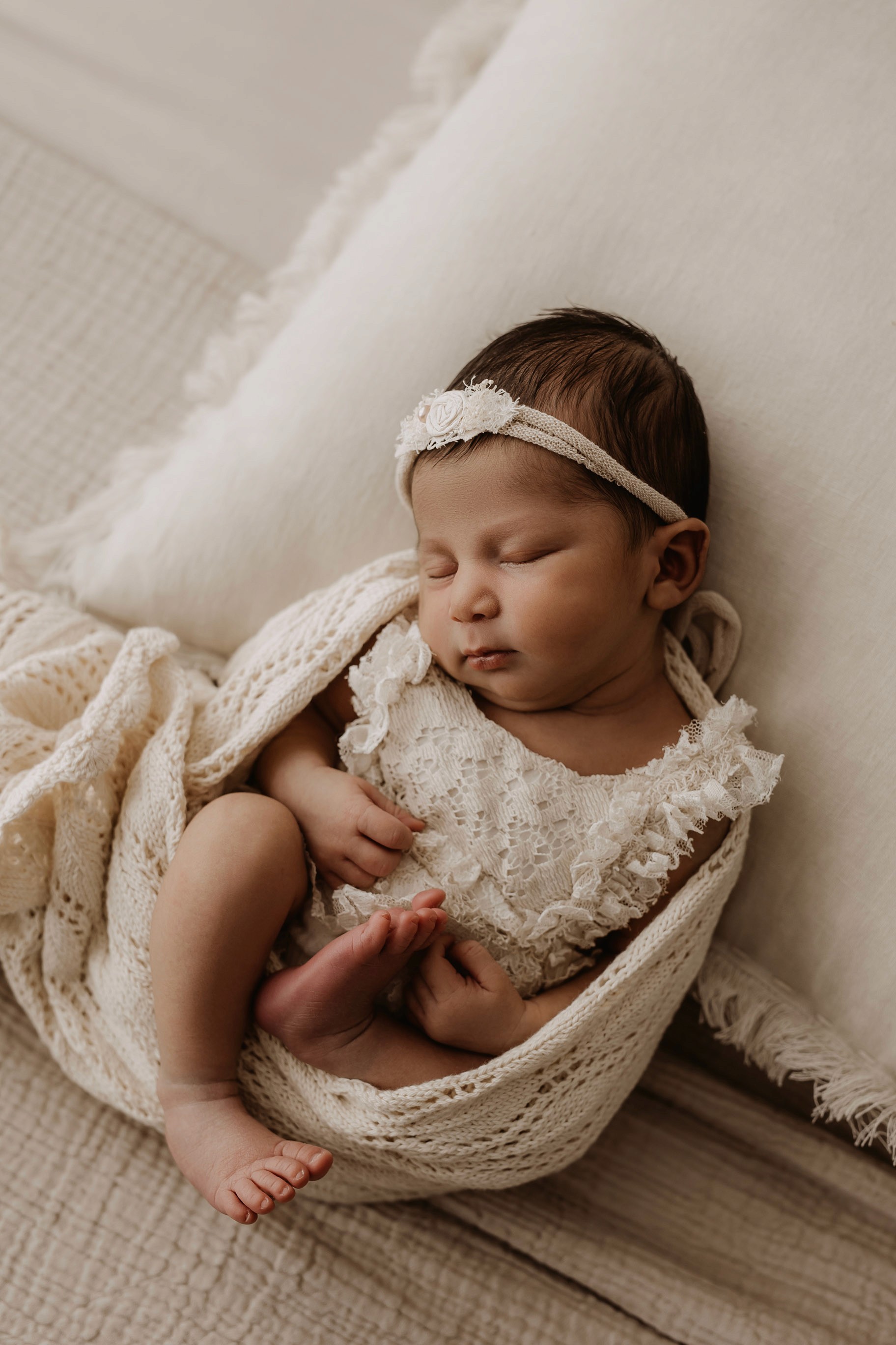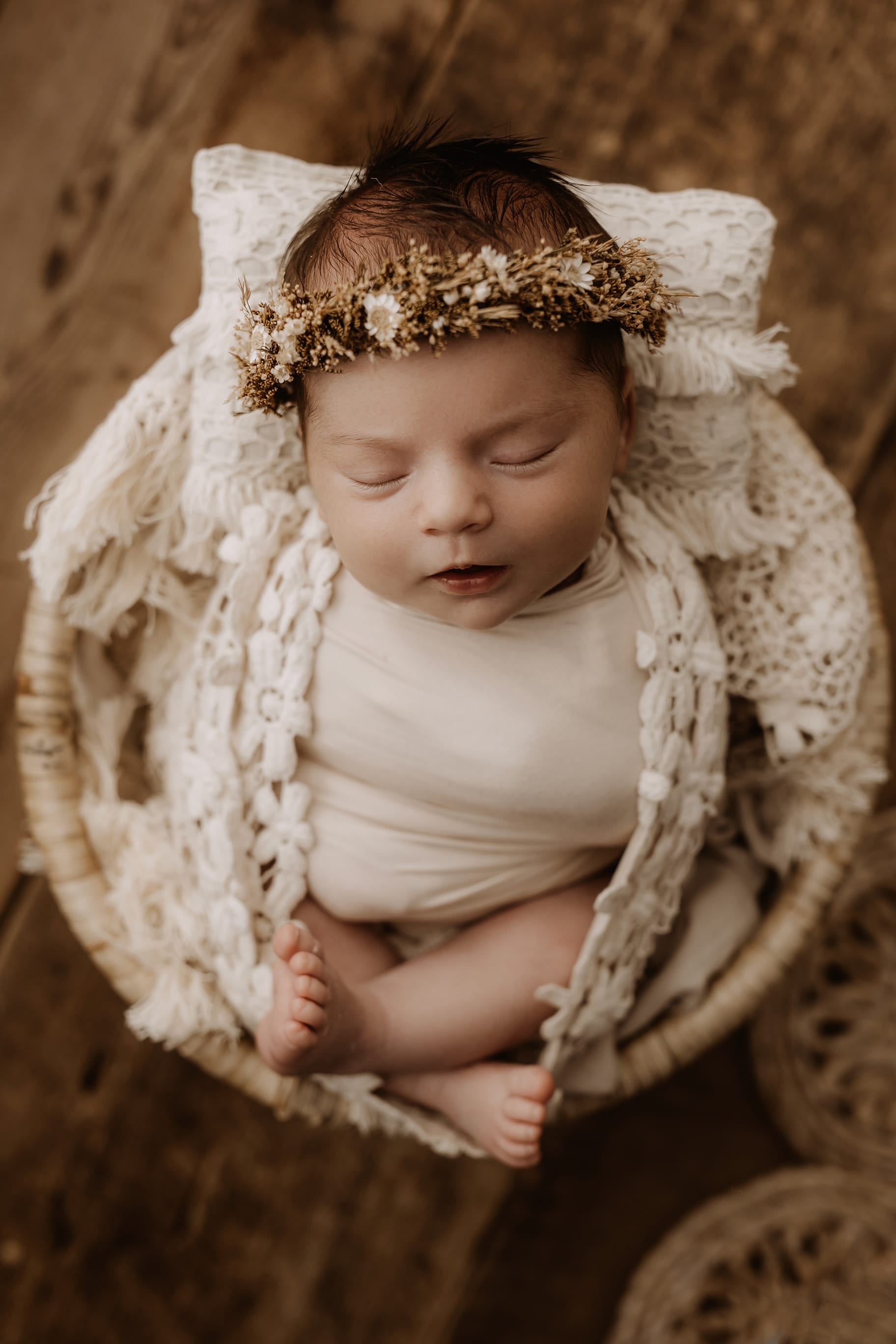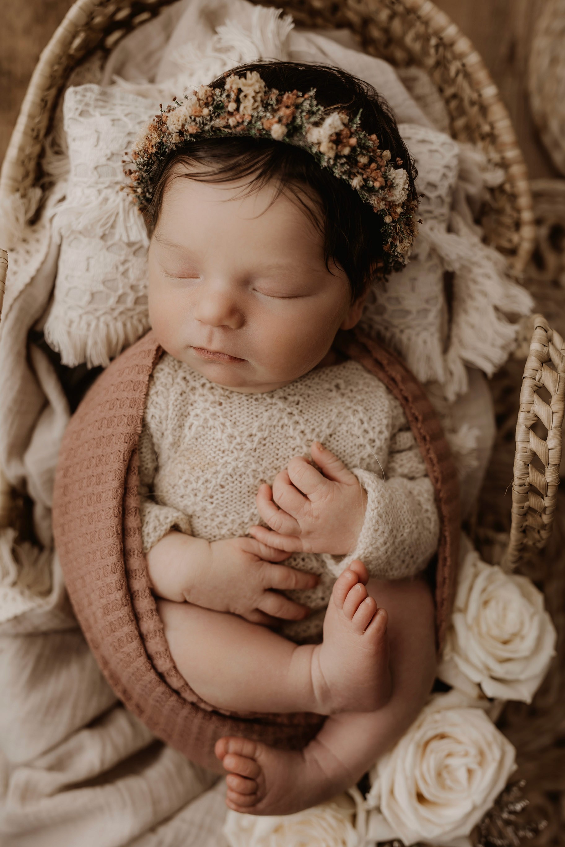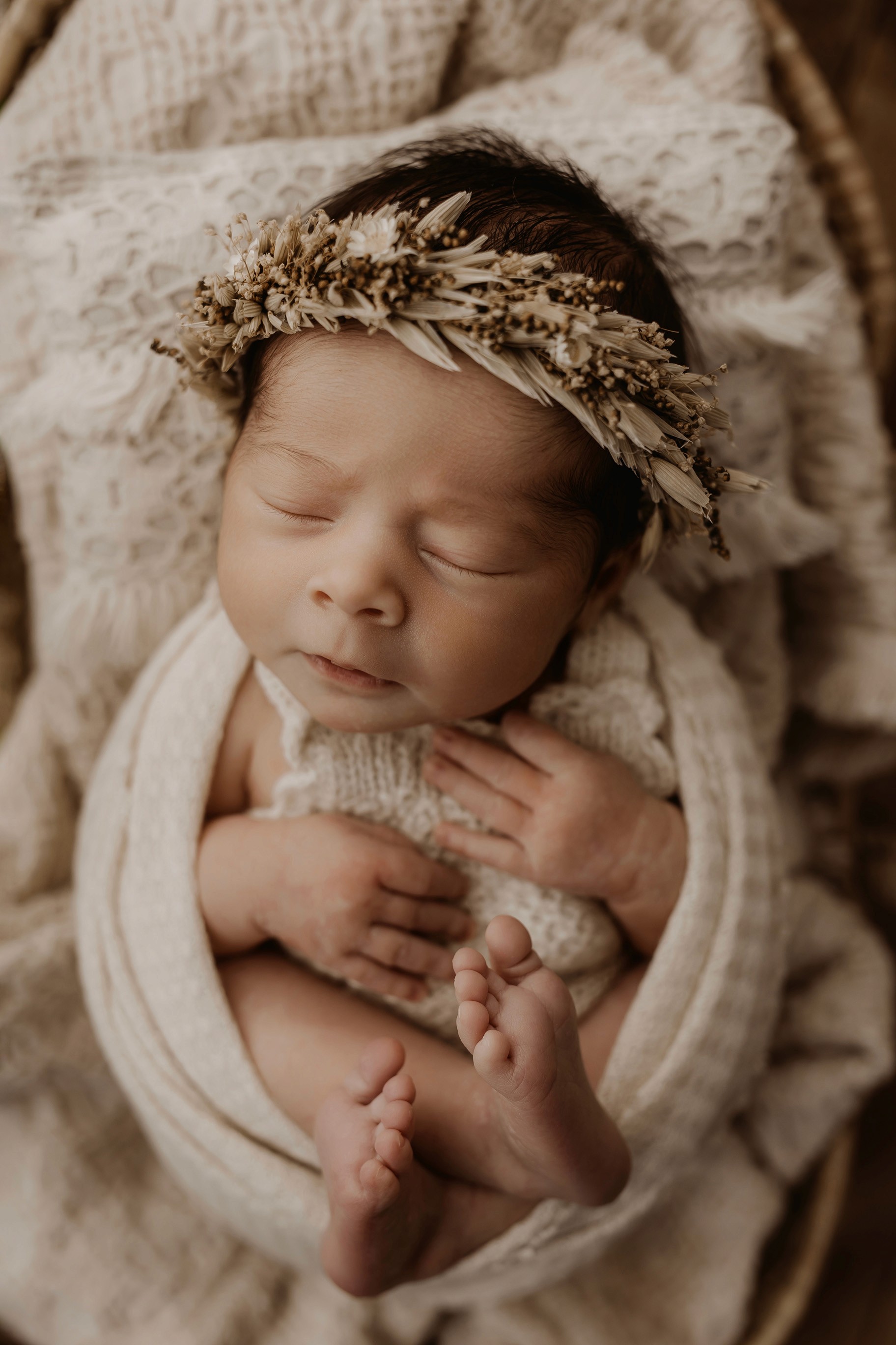 Newborn photography is best taken 5 to 14 days after birth when newborns are extra sleepy, however sessions can be taken up to 8 weeks old!