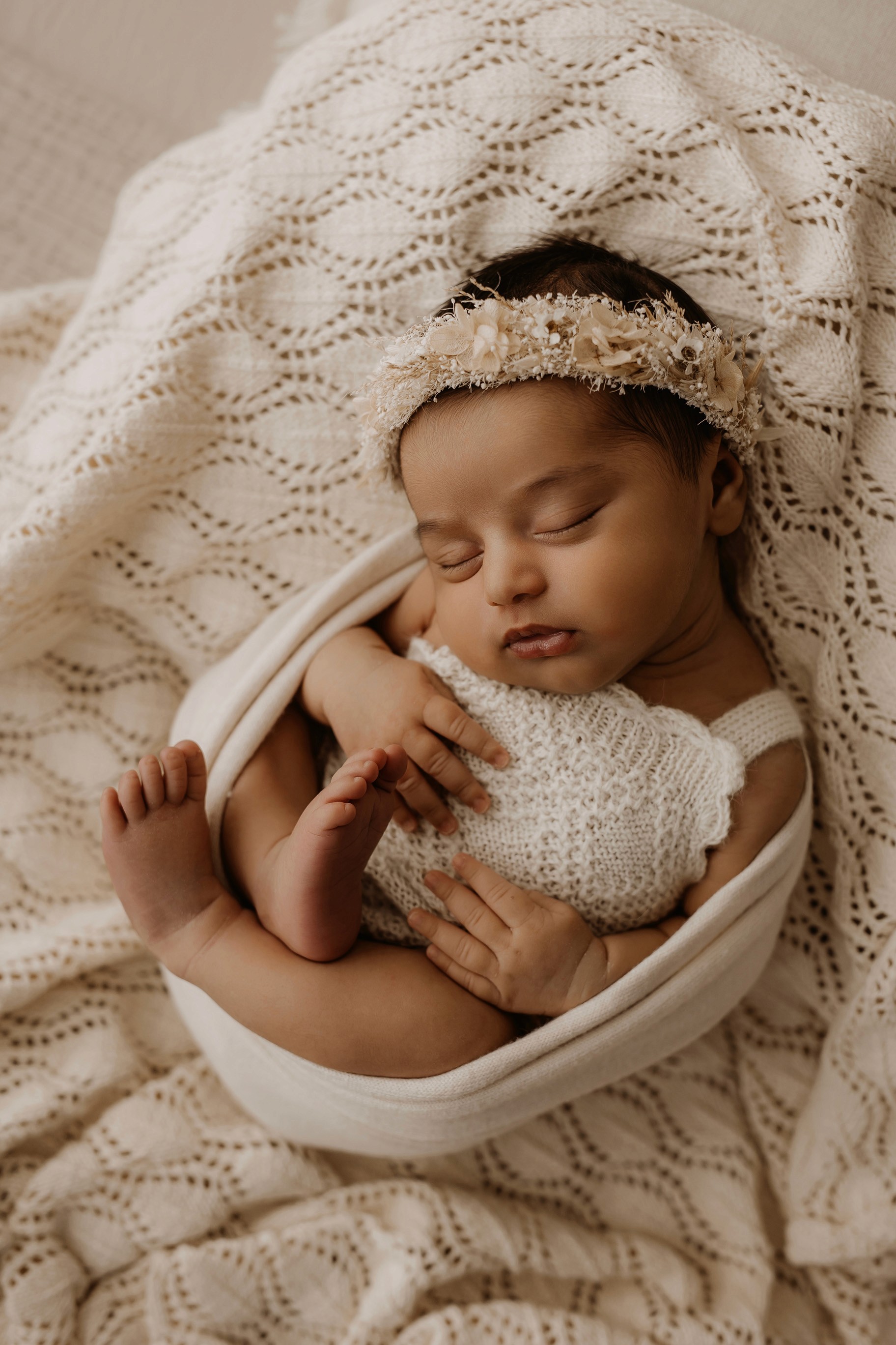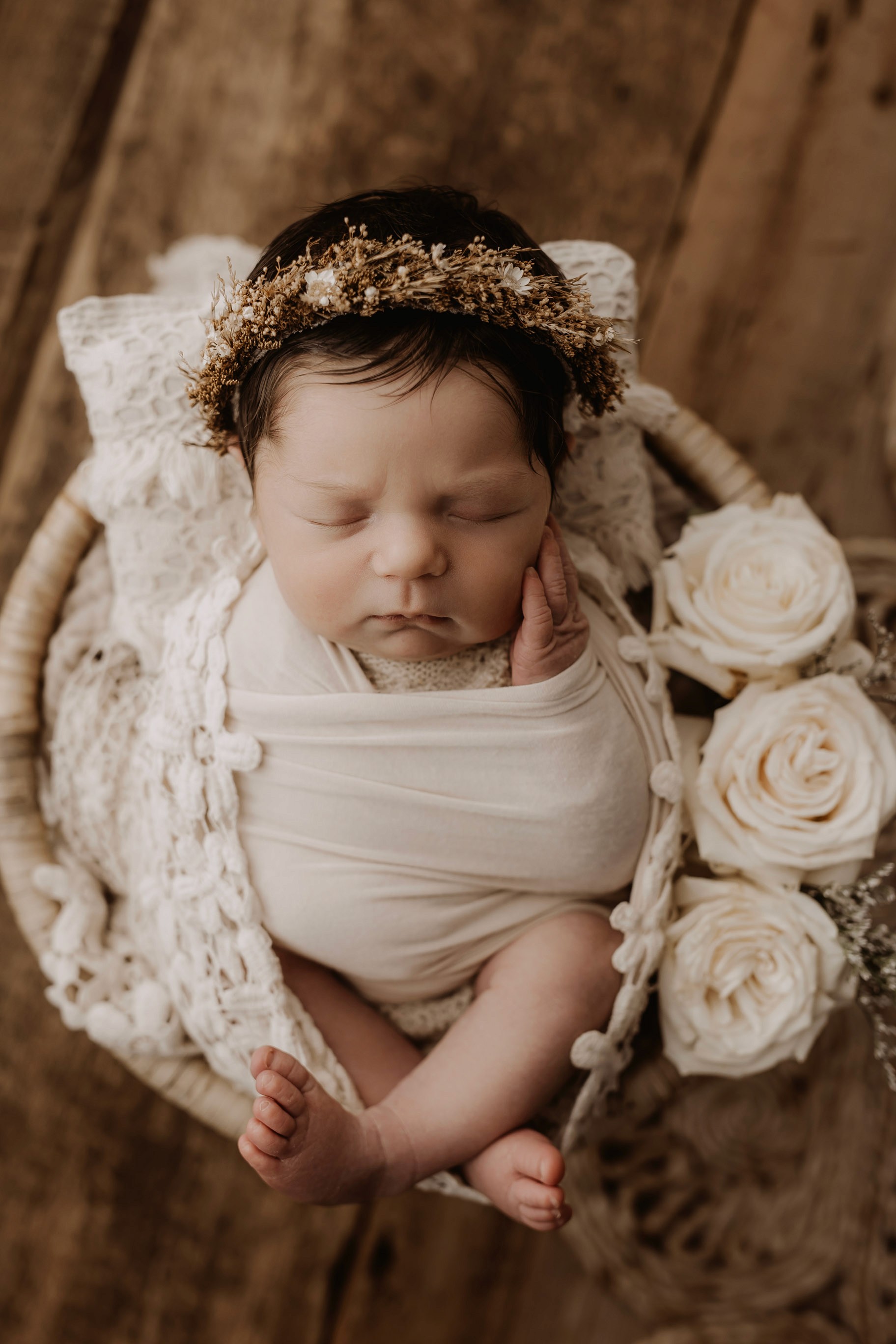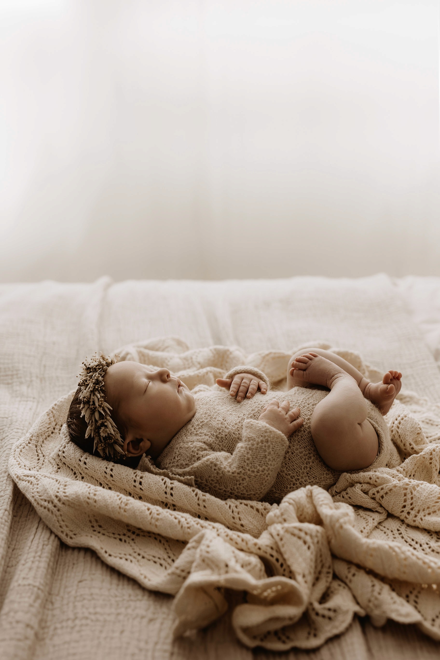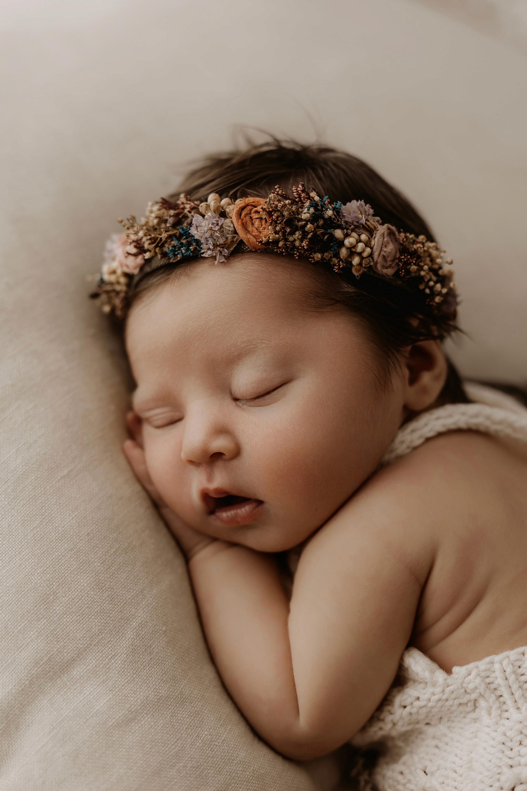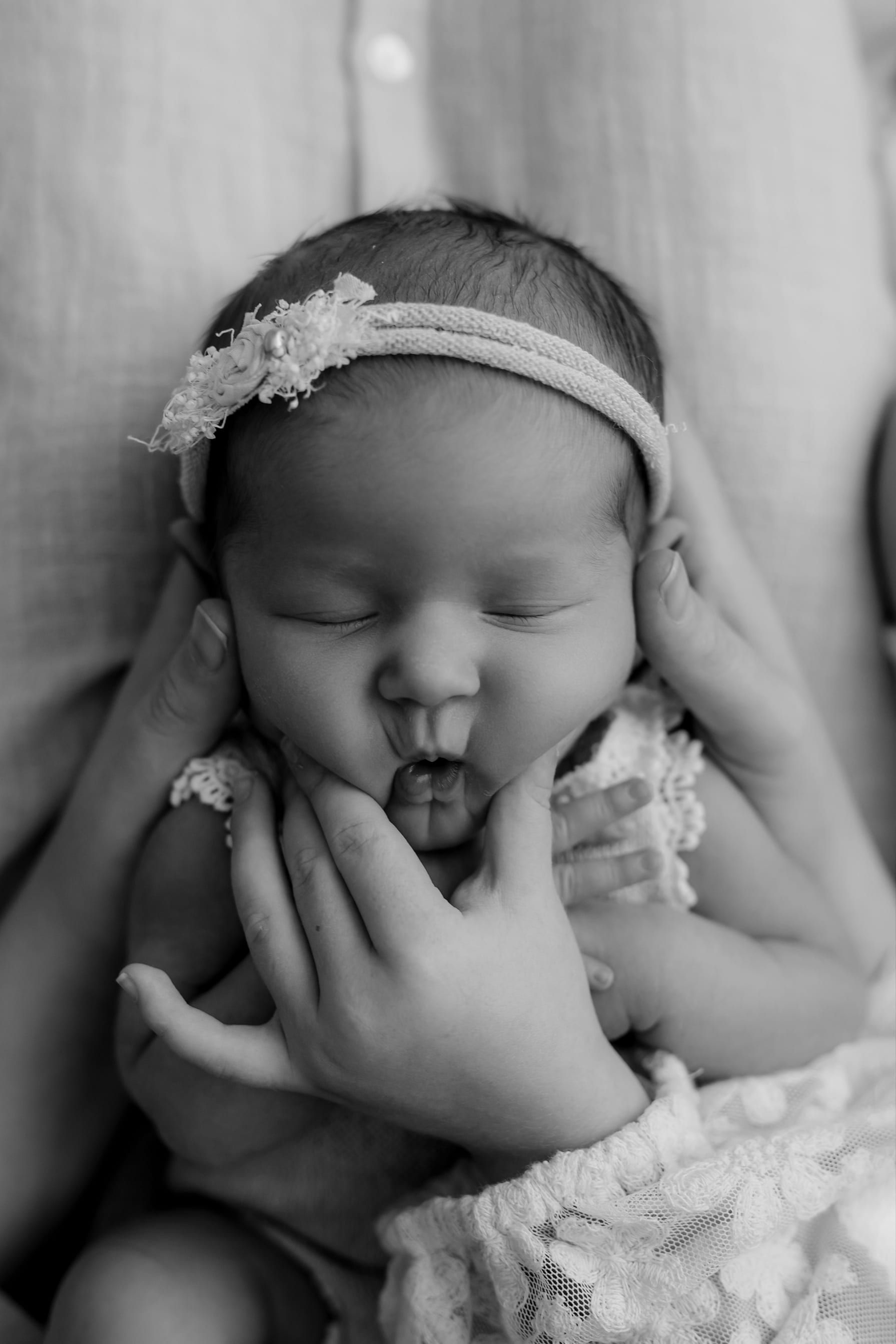 Newborn photography is best taken 5 to 14 days after birth when newborns are extra sleepy, however sessions can be taken up to 8 weeks old!