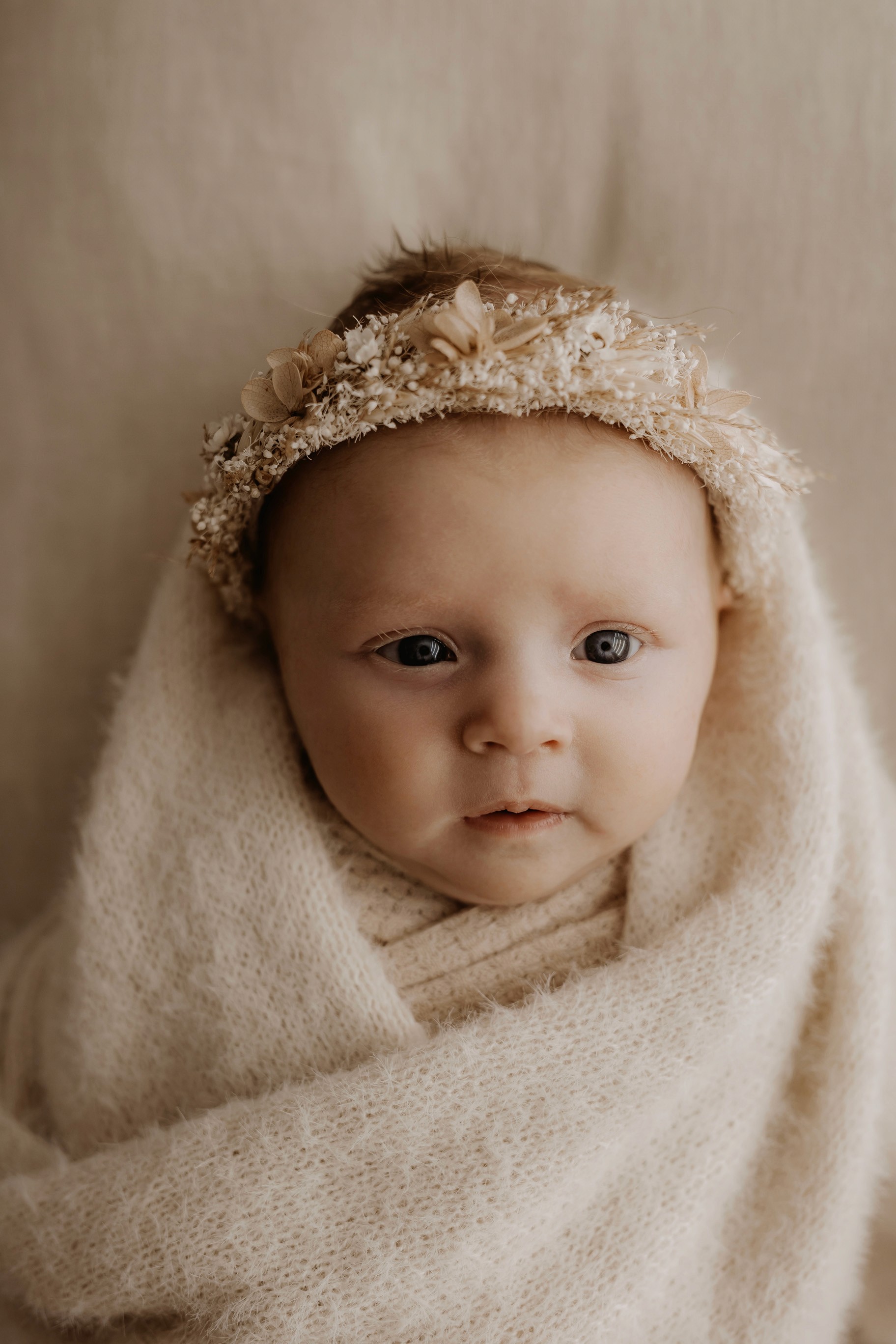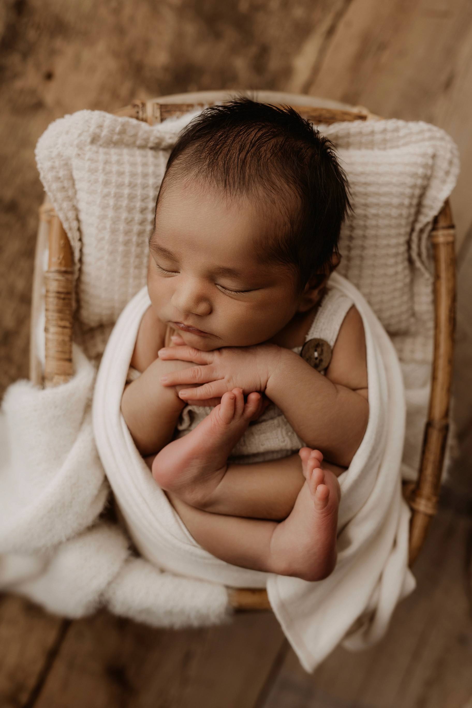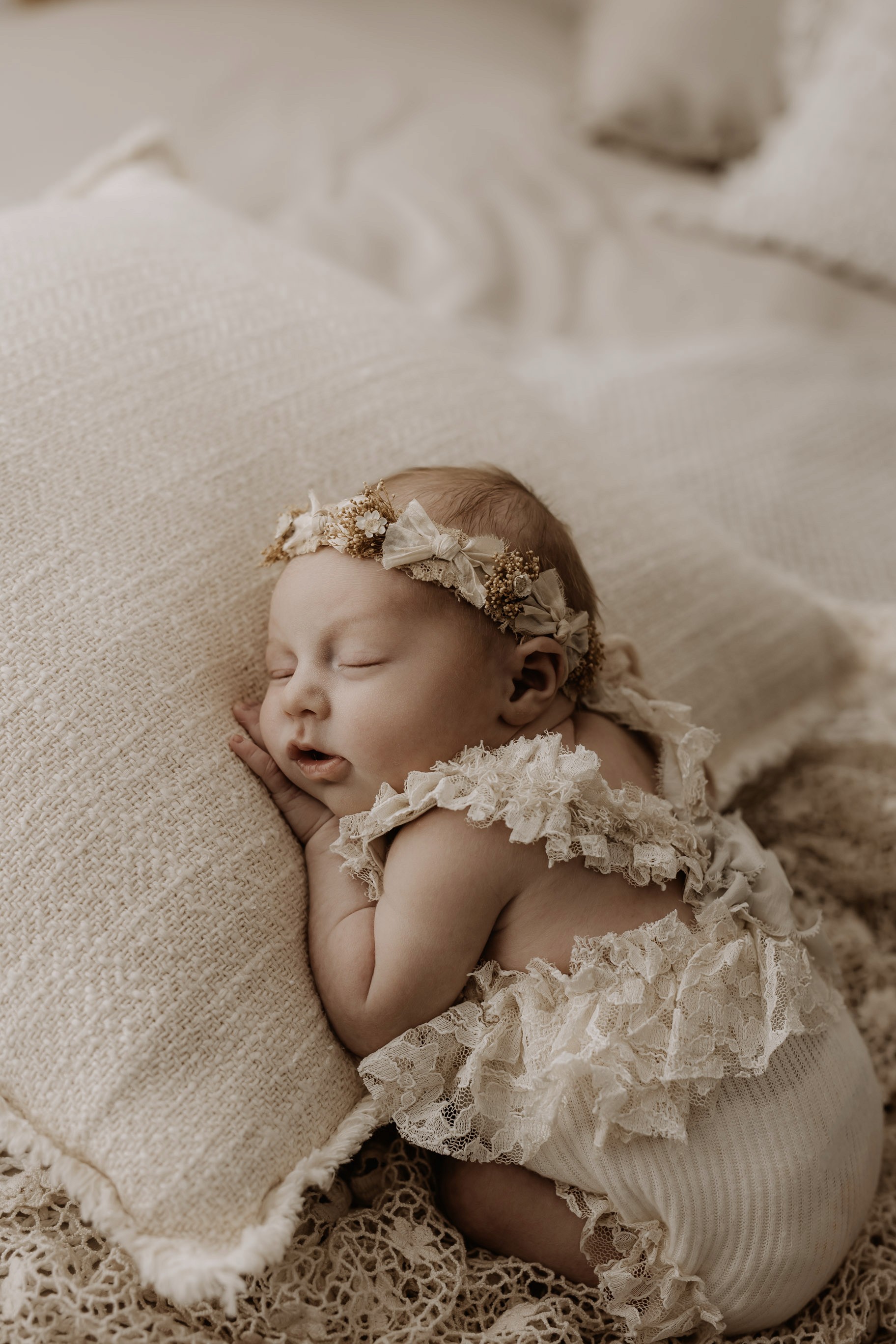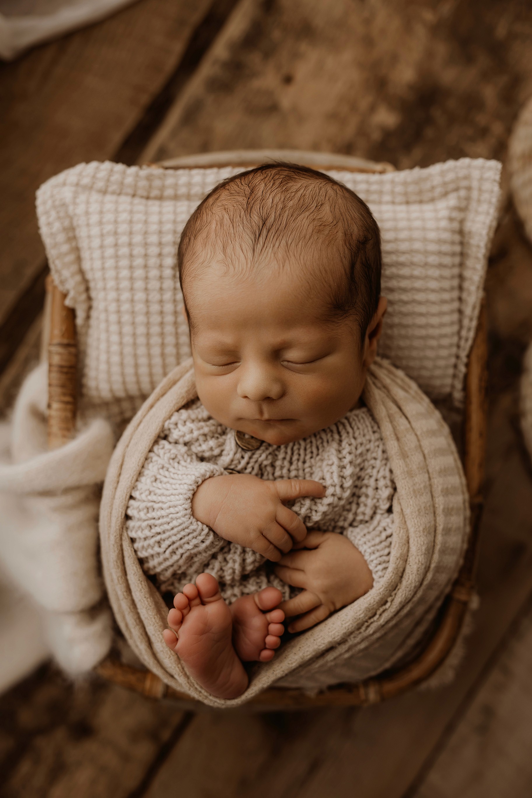 Newborn photography is best taken 5 to 14 days after birth when newborns are extra sleepy, however sessions can be taken up to 8 weeks old!