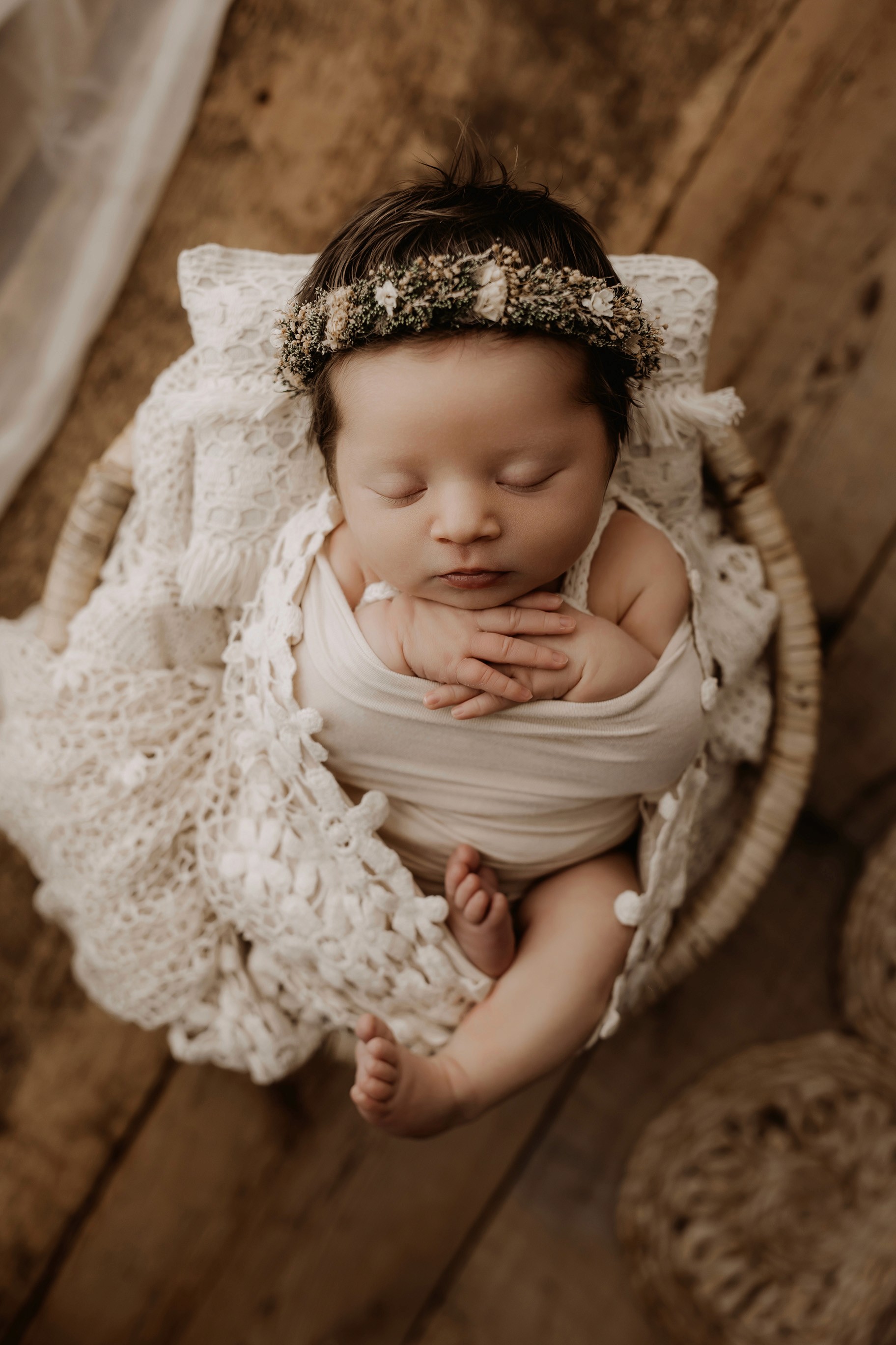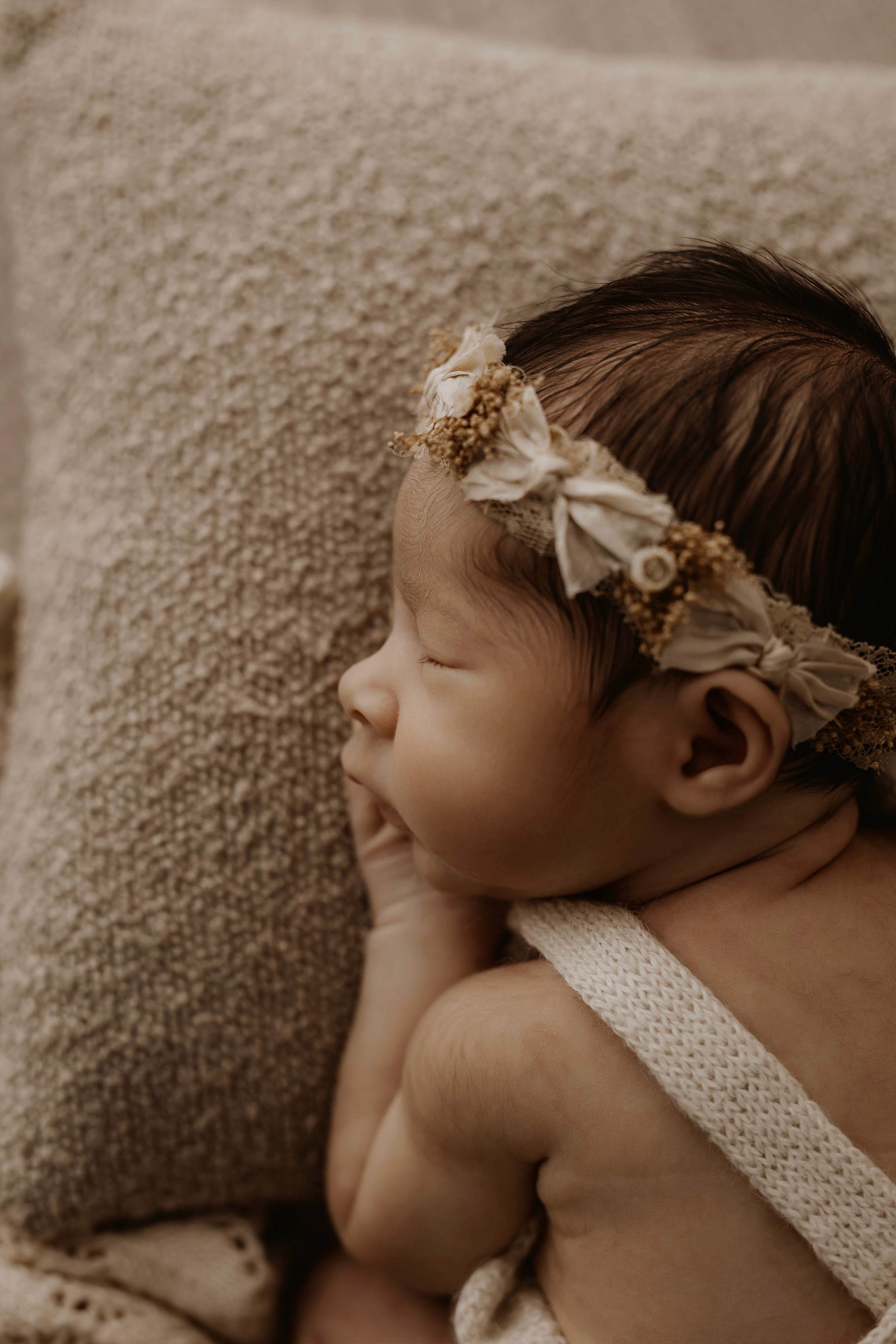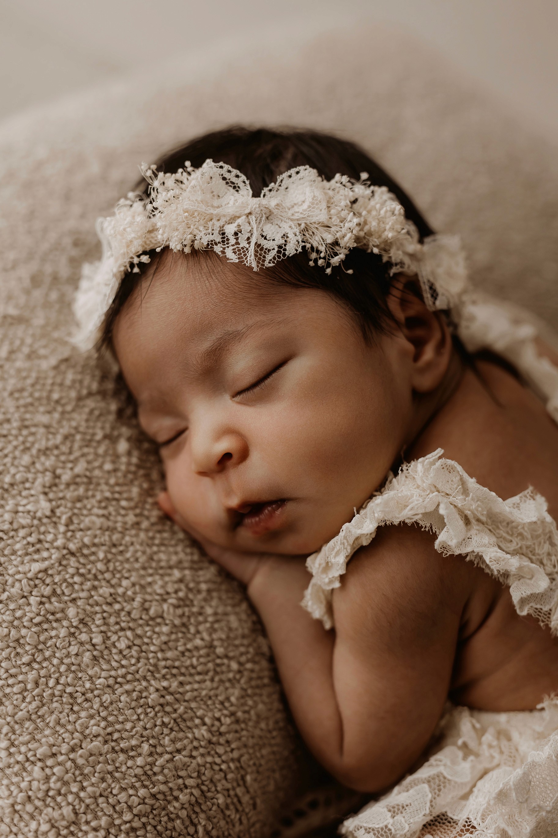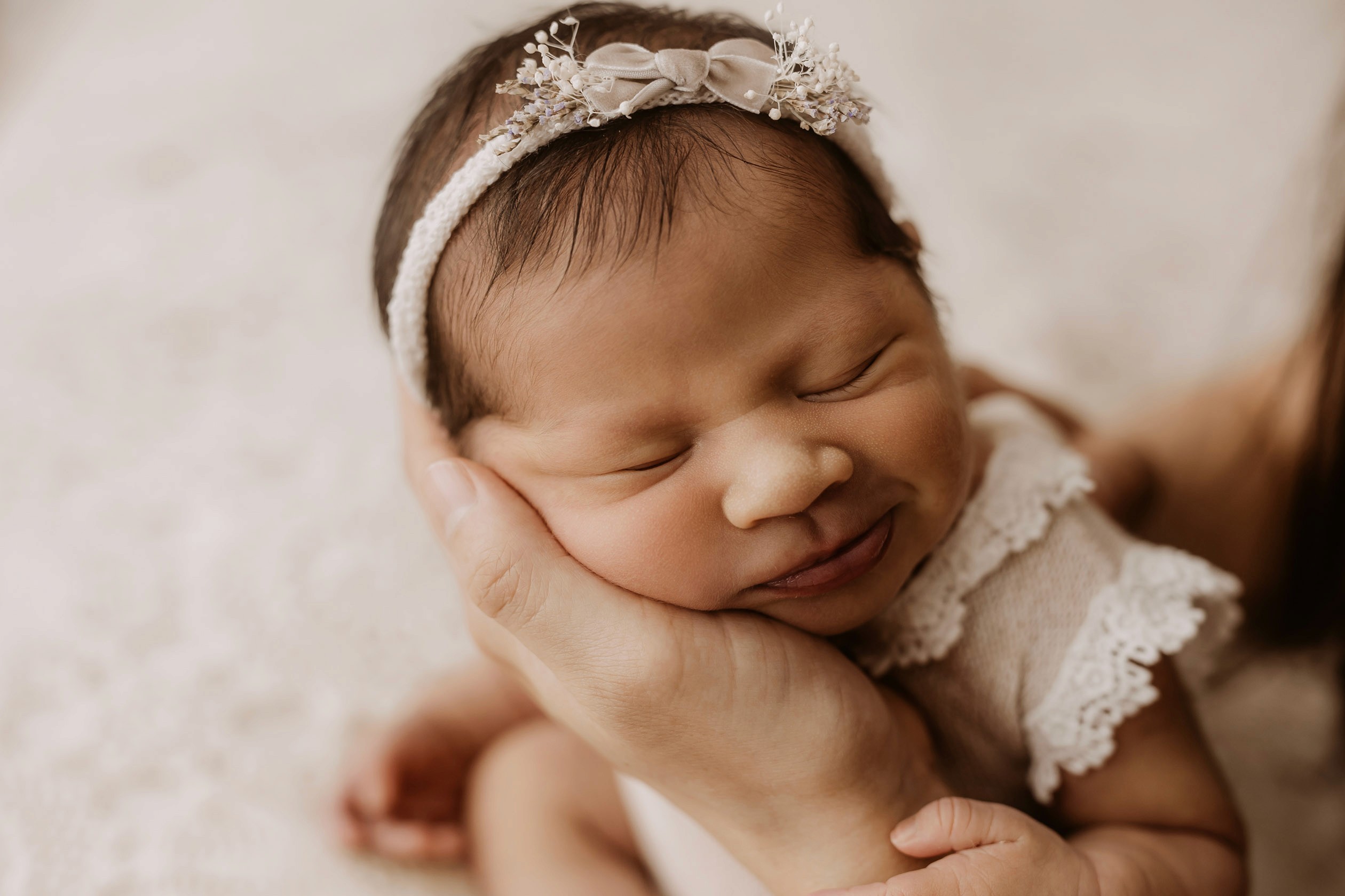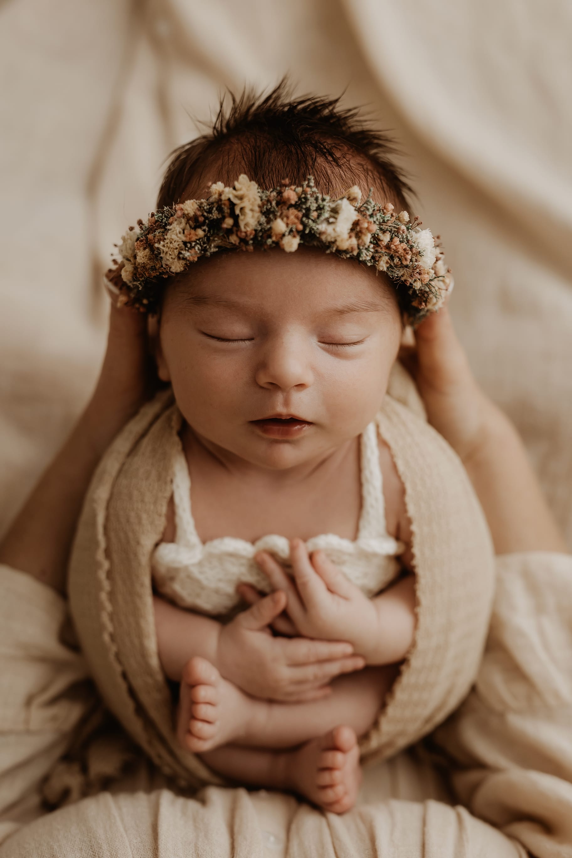 Newborn photography is best taken 5 to 14 days after birth when newborns are extra sleepy, however sessions can be taken up to 8 weeks old!