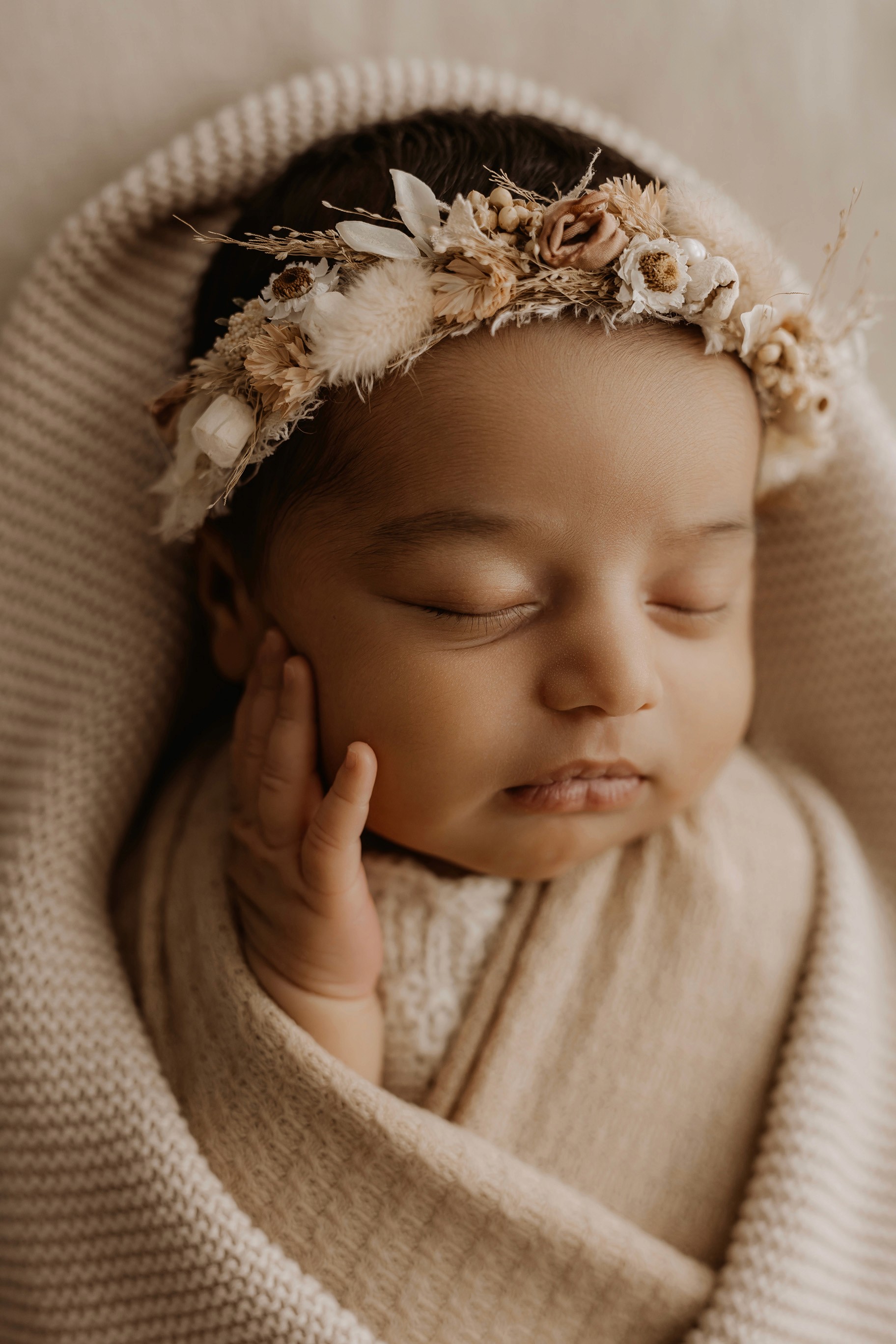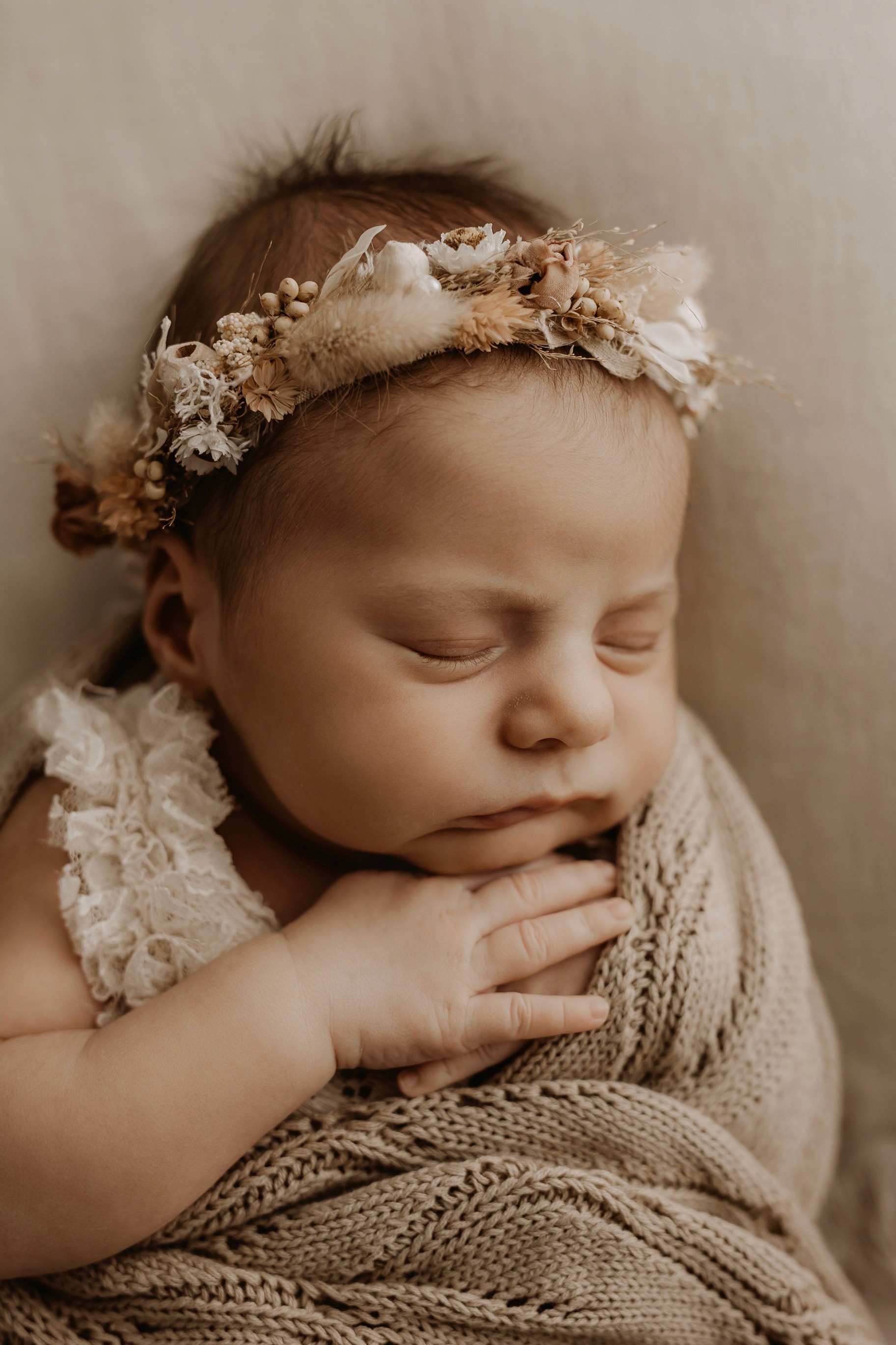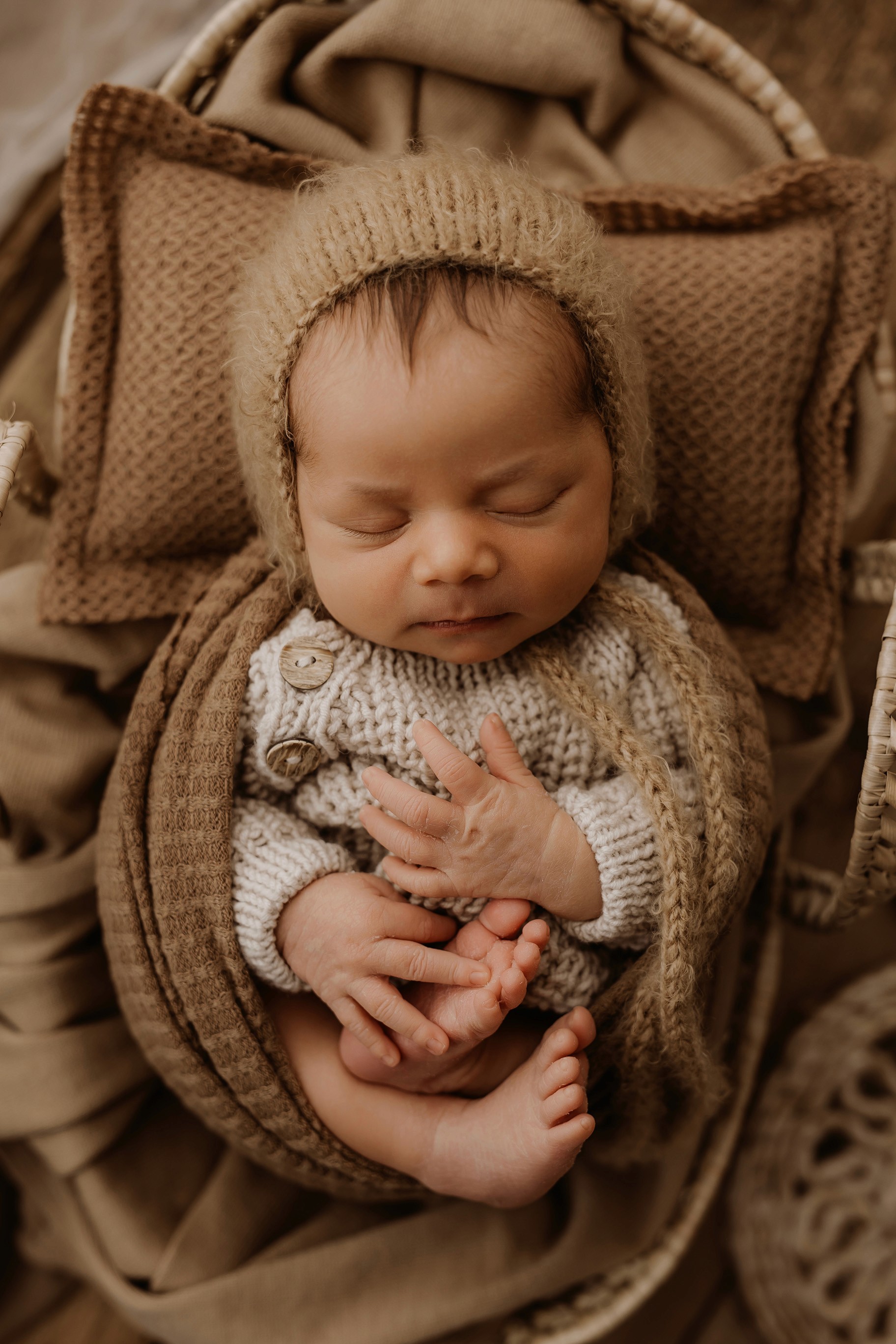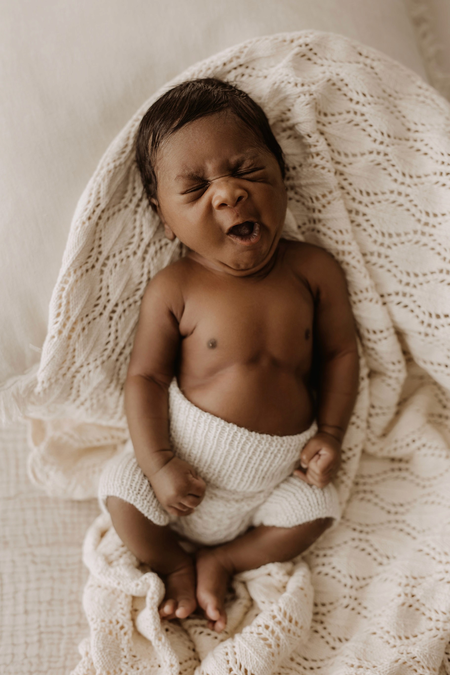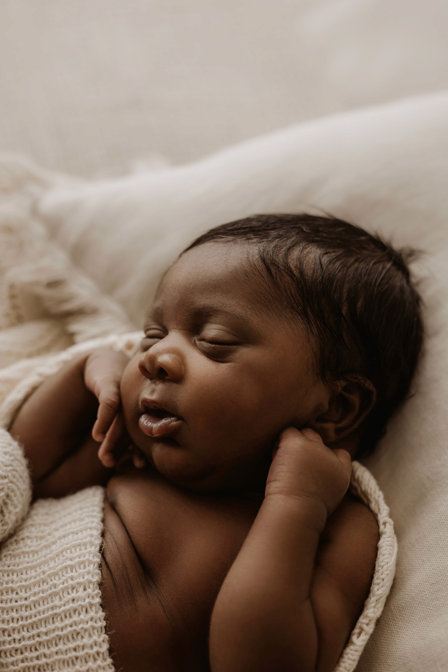 Newborn photography is best taken 5 to 14 days after birth when newborns are extra sleepy, however sessions can be taken up to 8 weeks old!