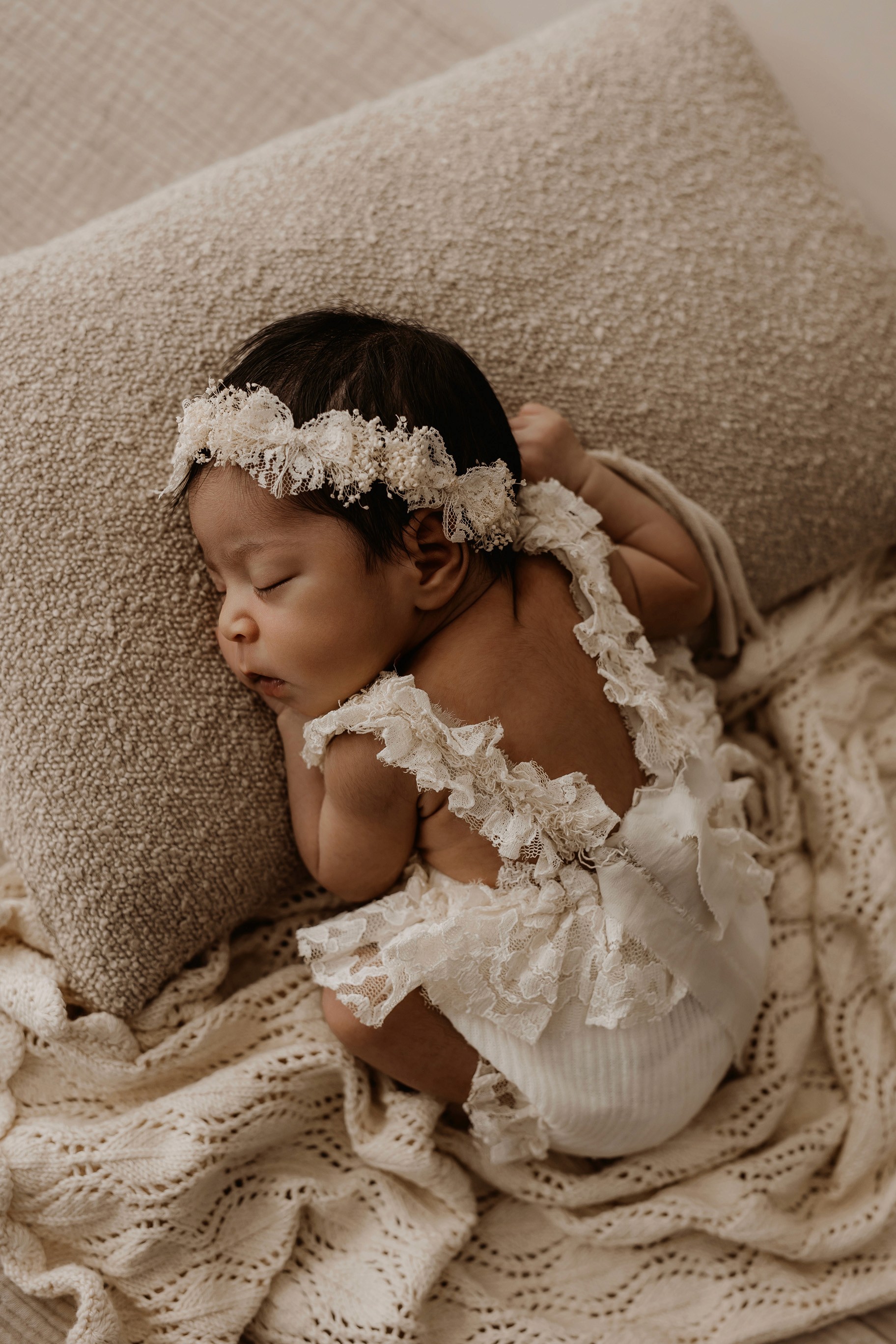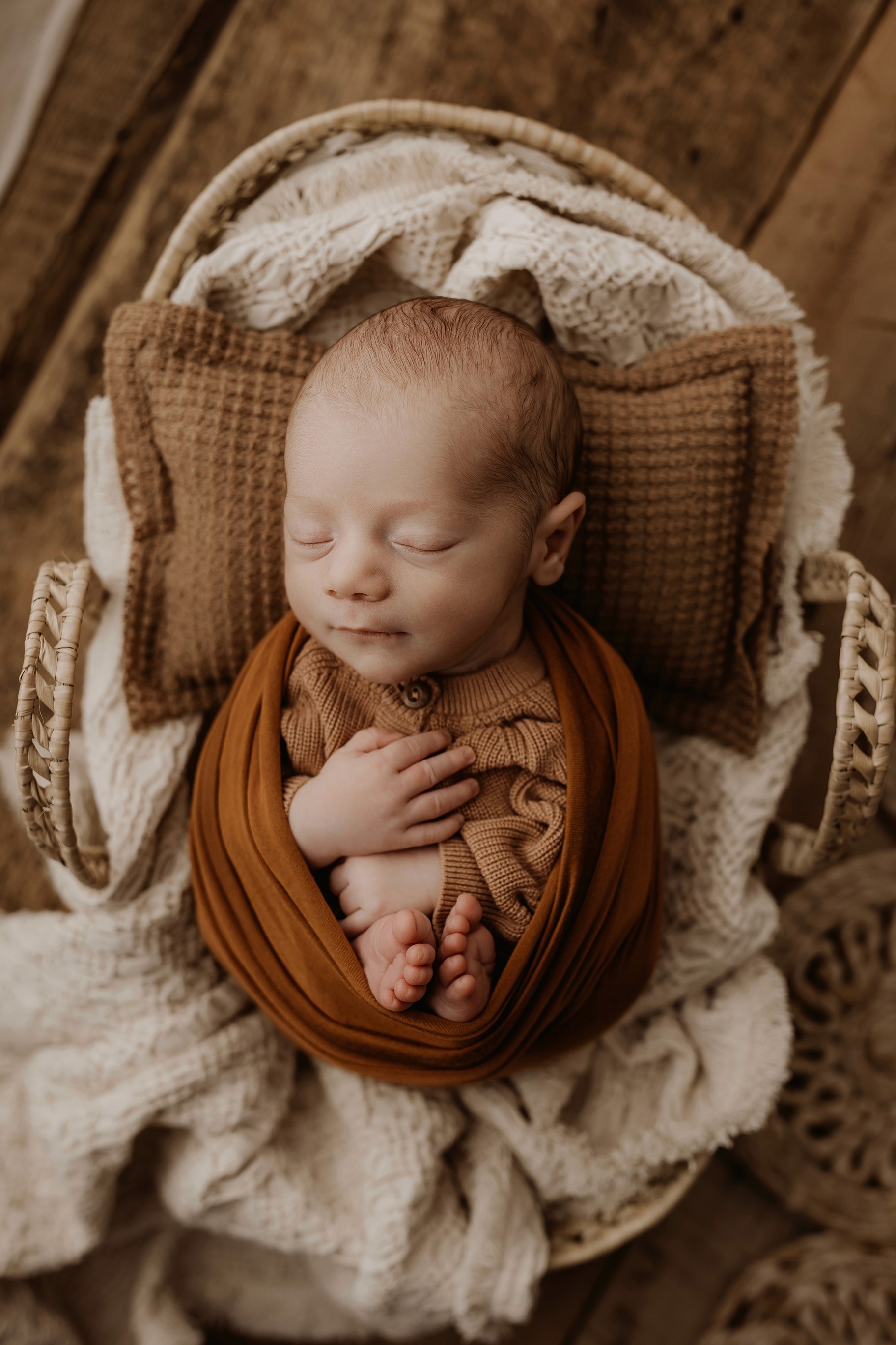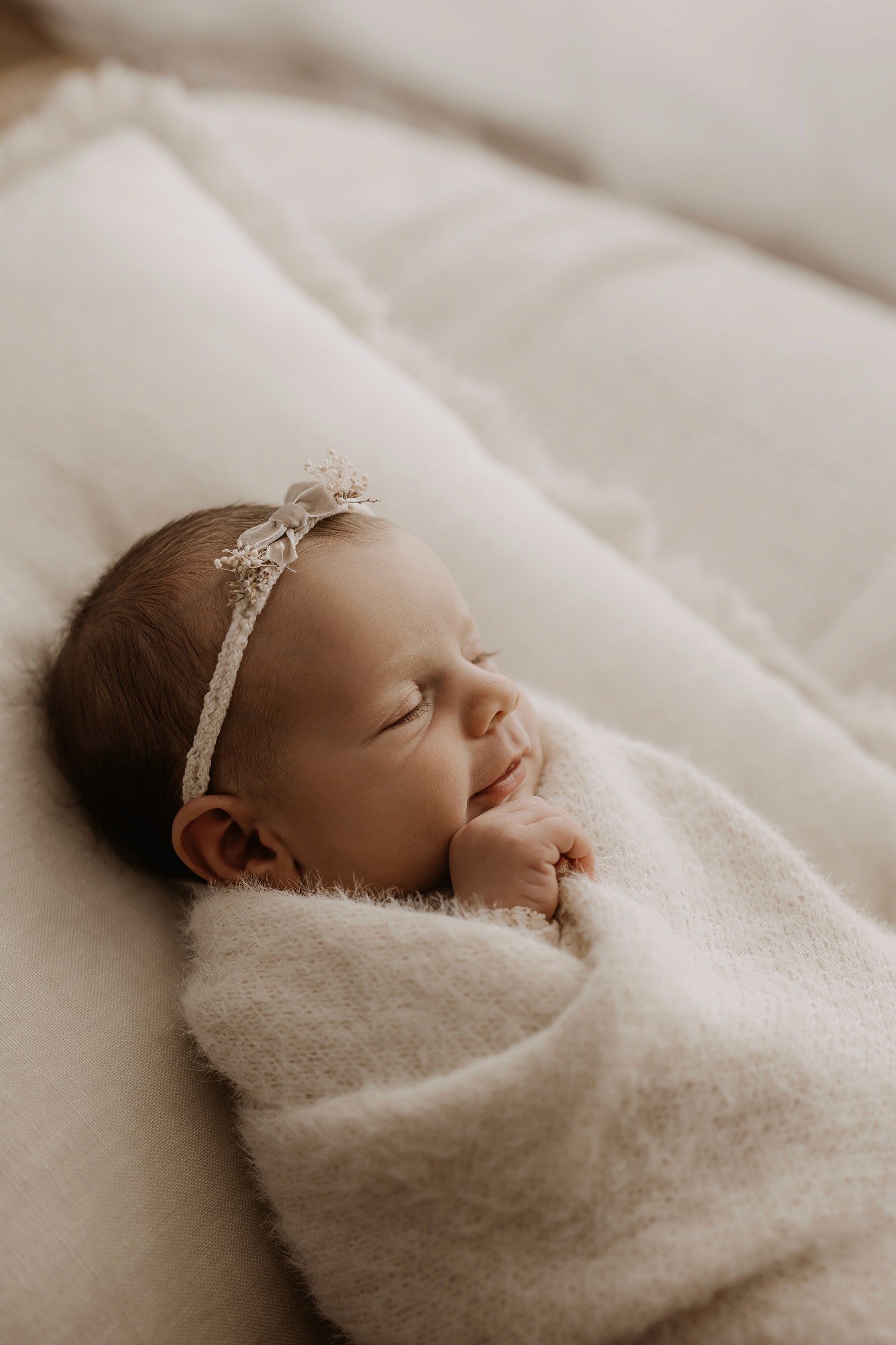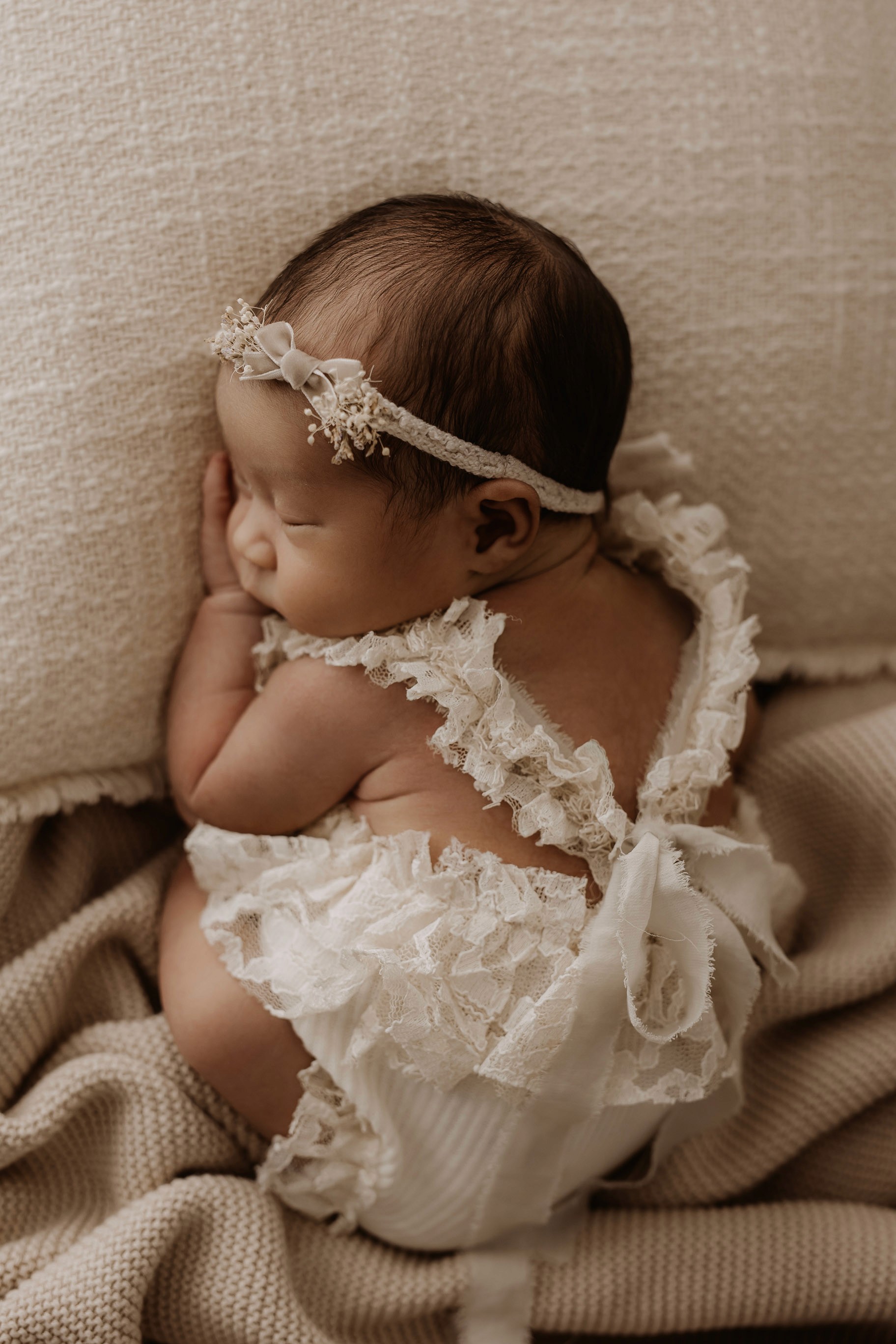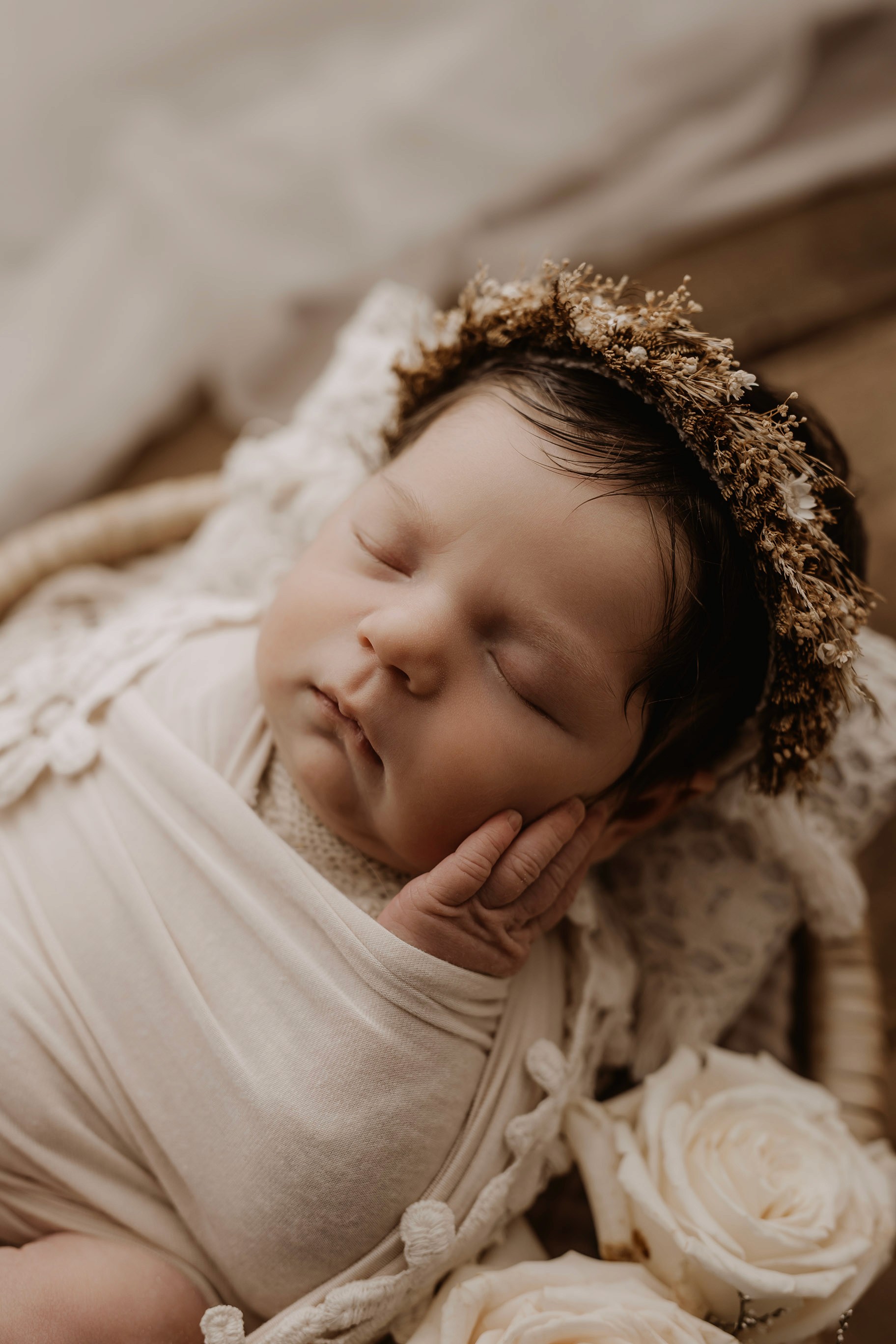 Newborn photography is best taken 5 to 14 days after birth when newborns are extra sleepy, however sessions can be taken up to 8 weeks old!