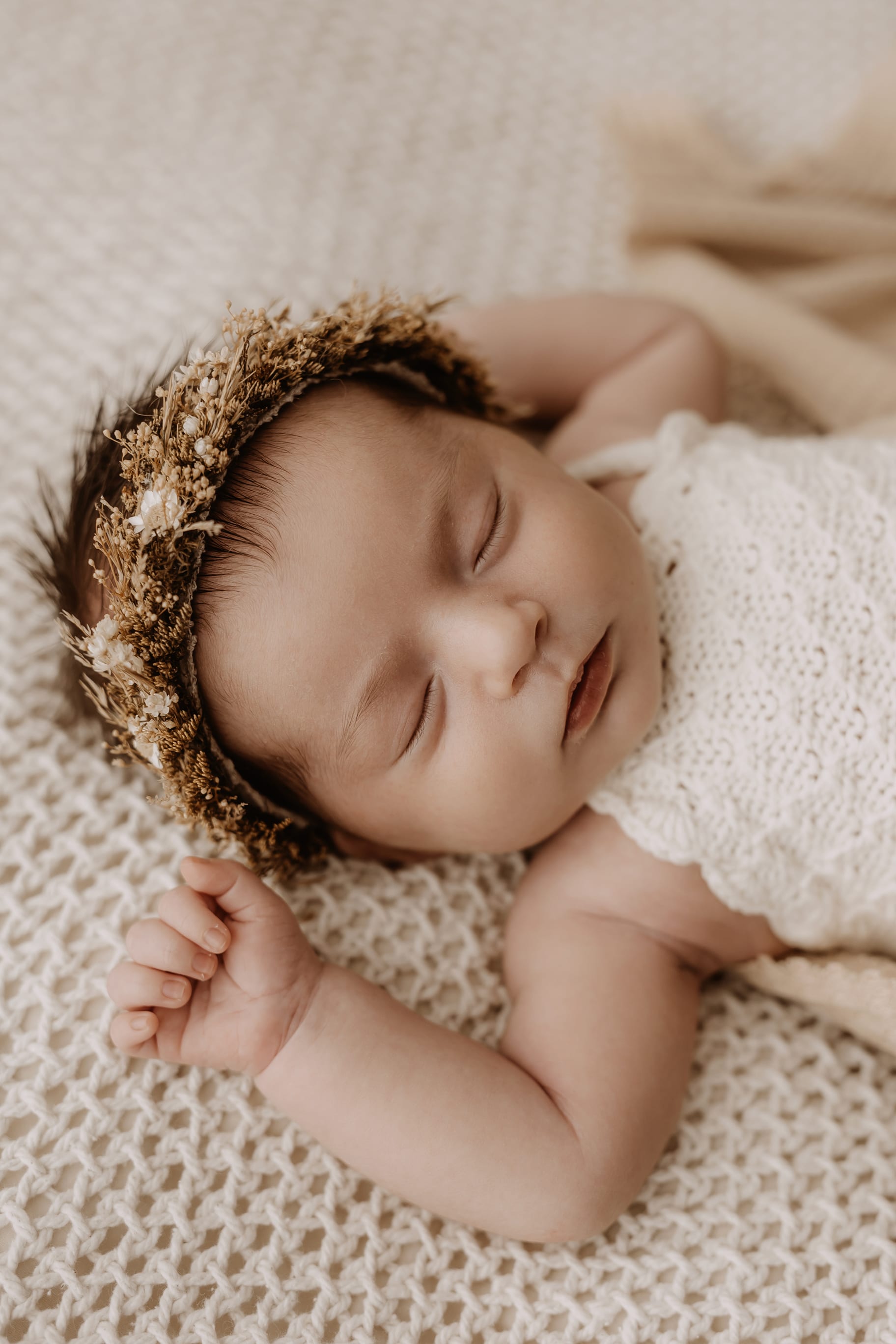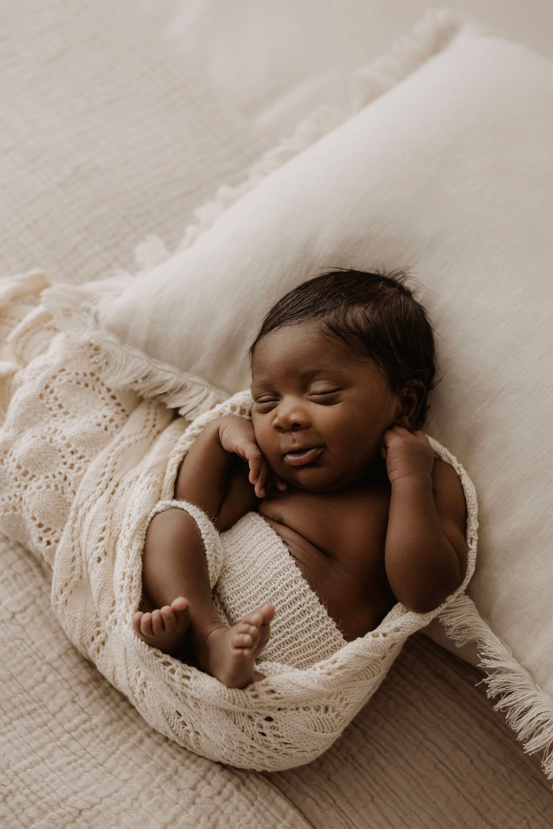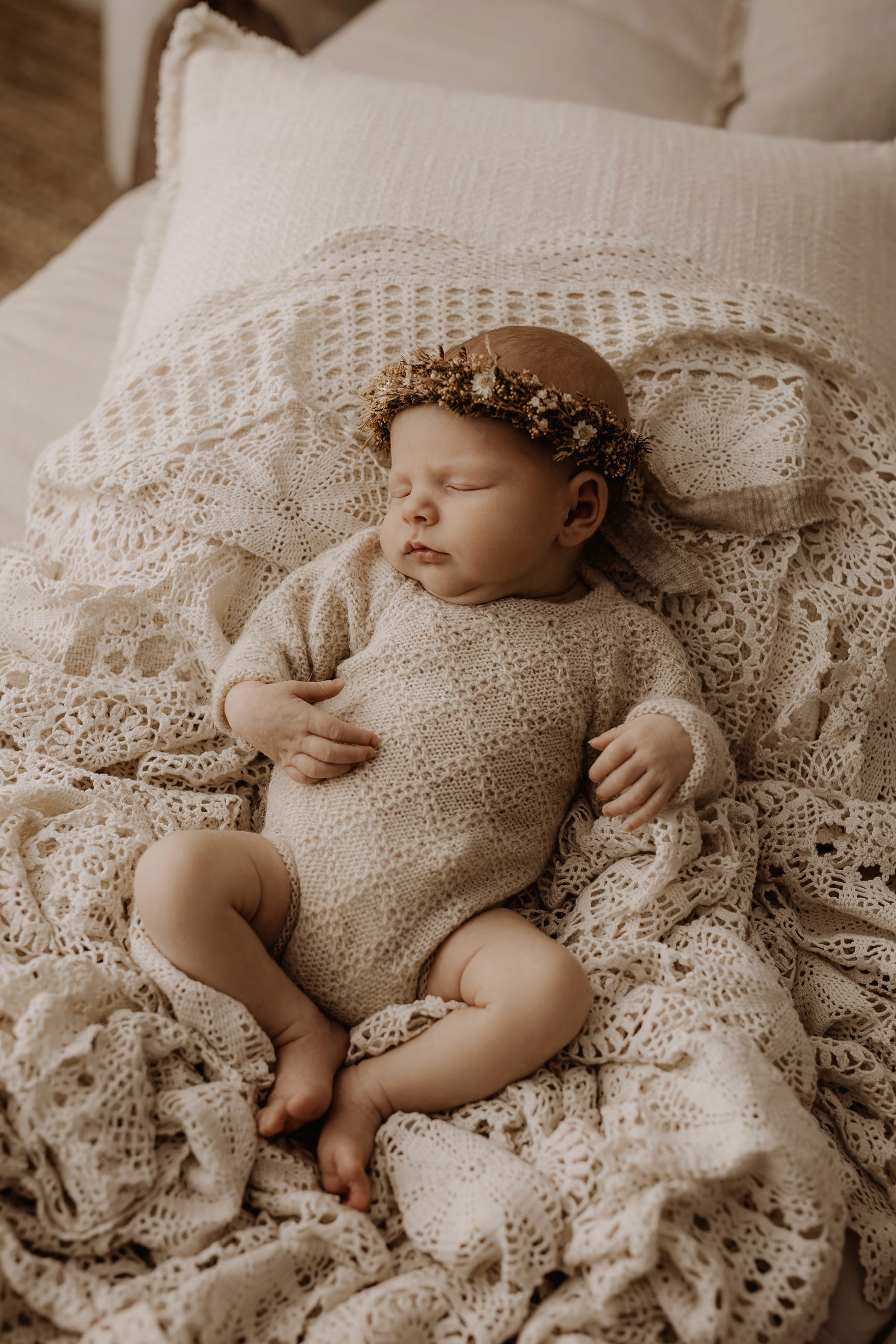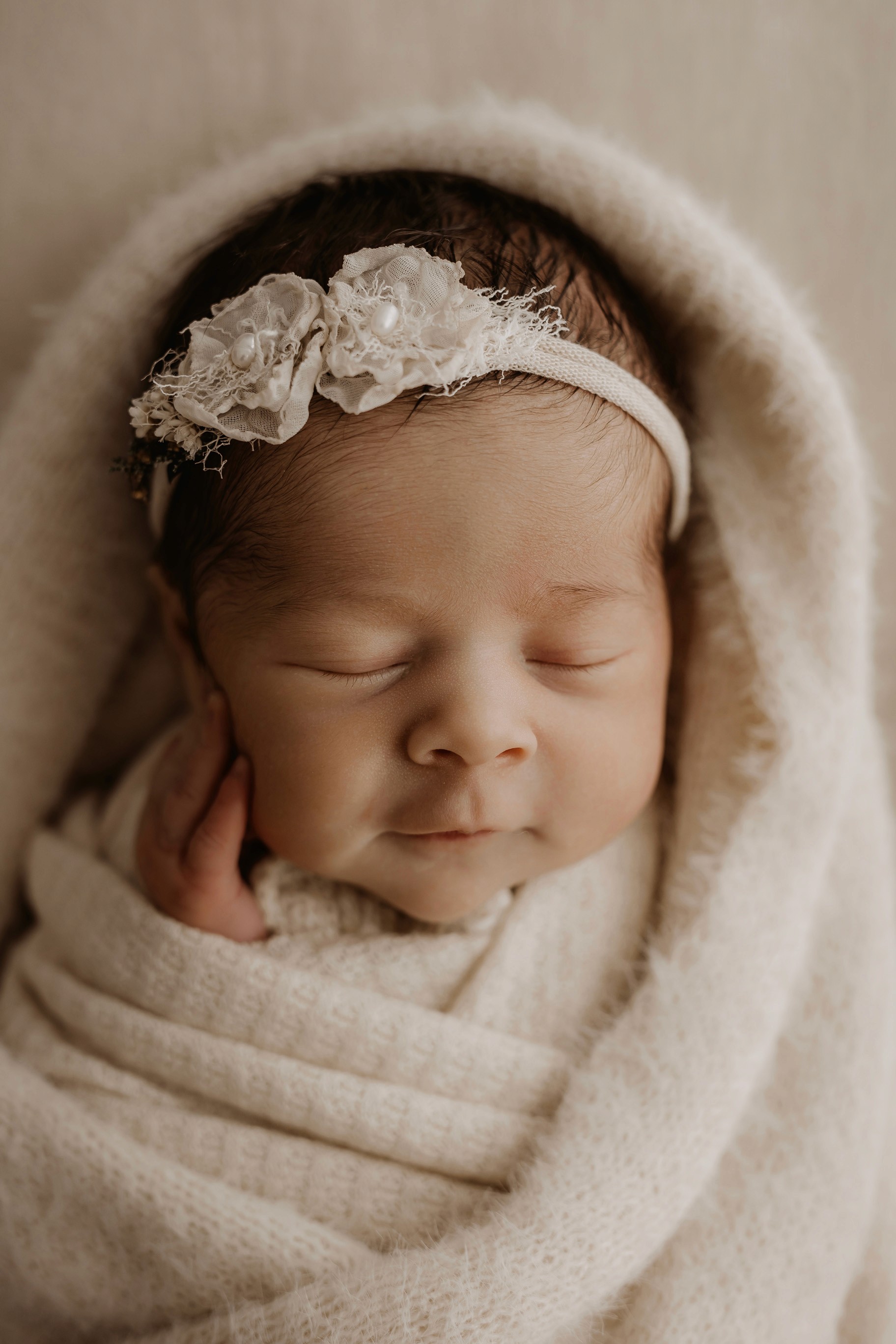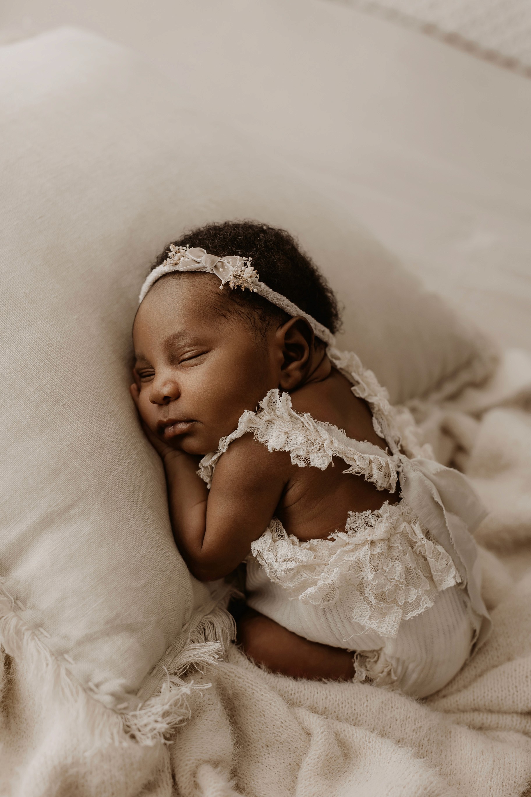 Newborn photography is best taken 5 to 14 days after birth when newborns are extra sleepy, however sessions can be taken up to 8 weeks old!
