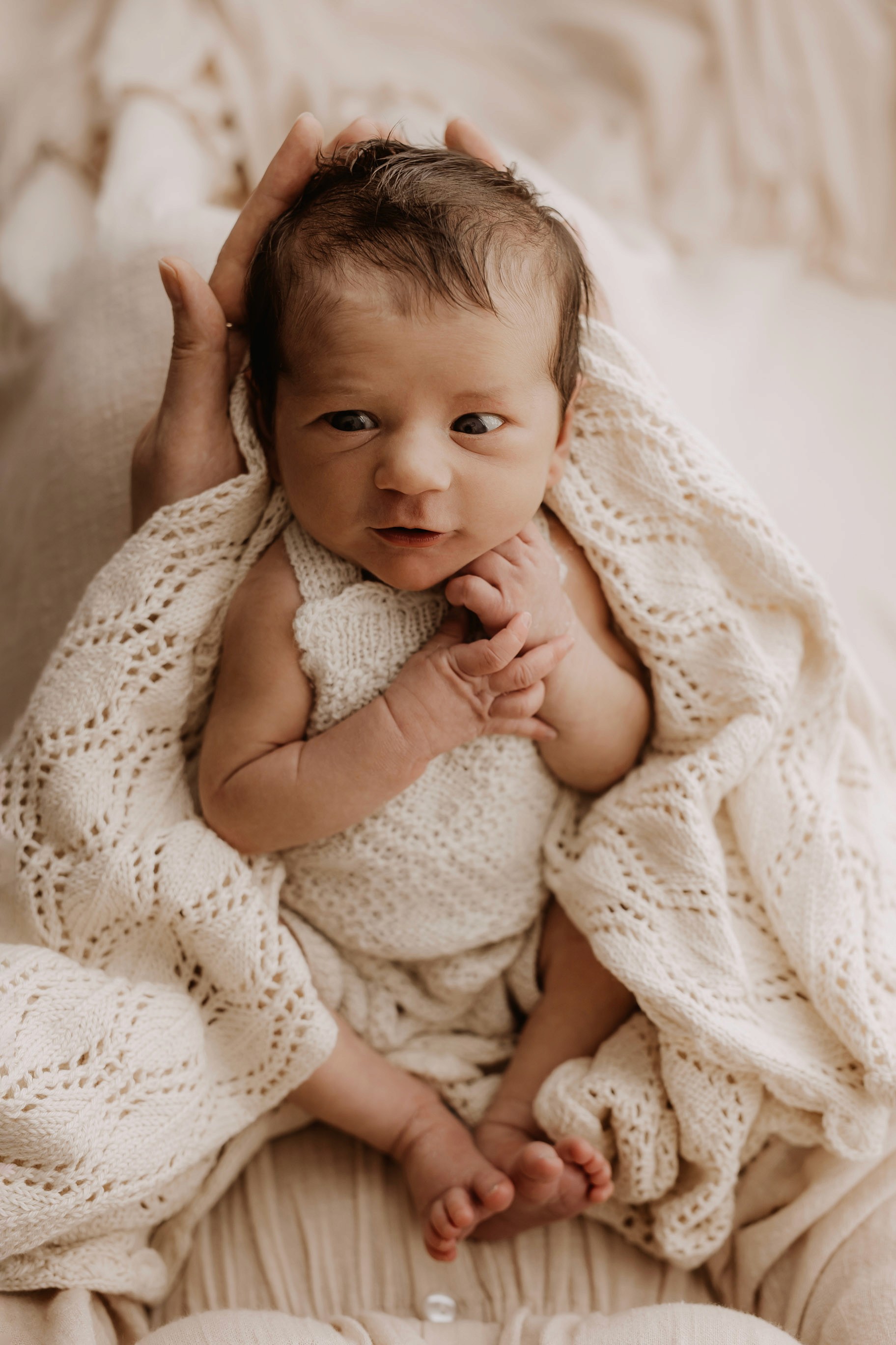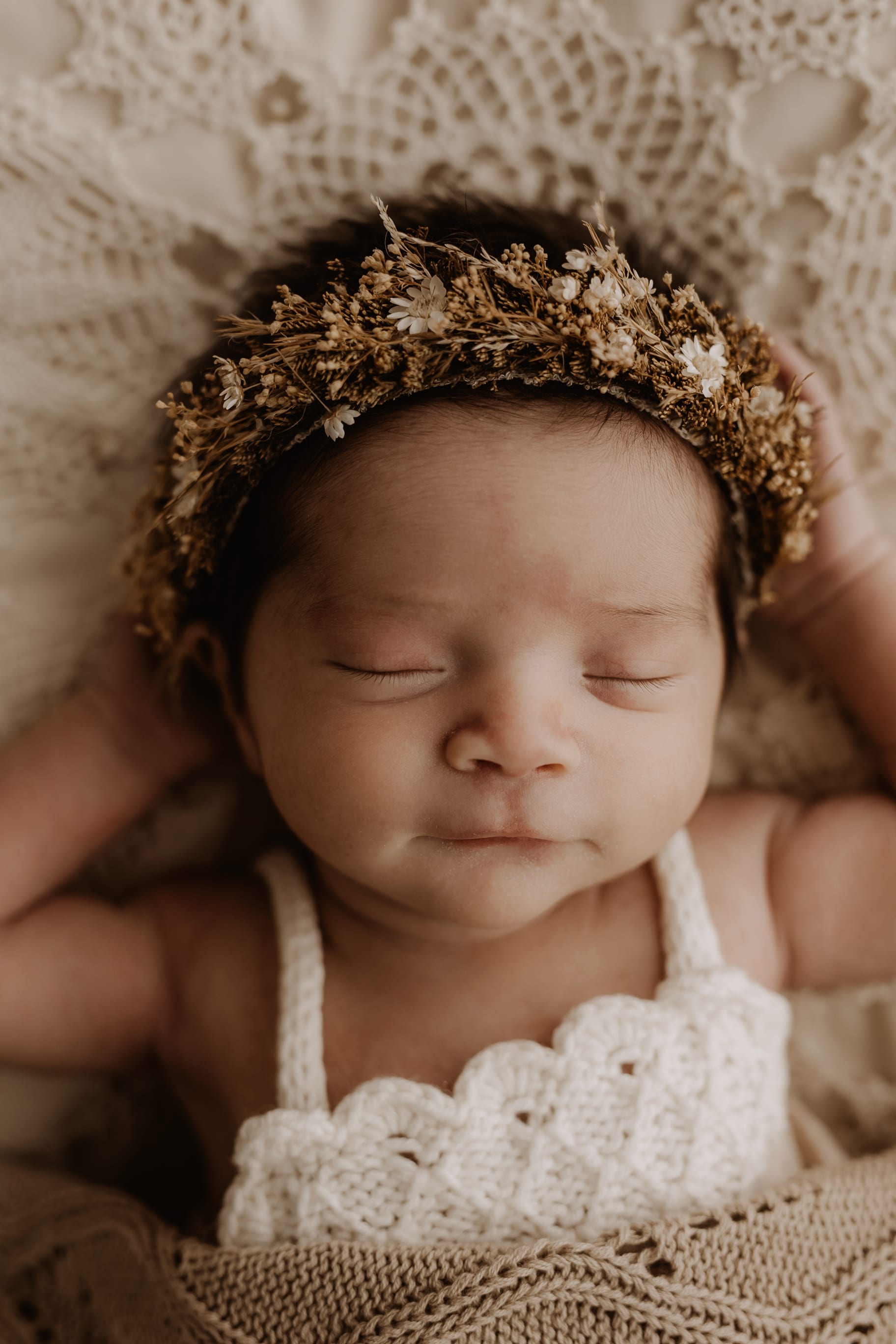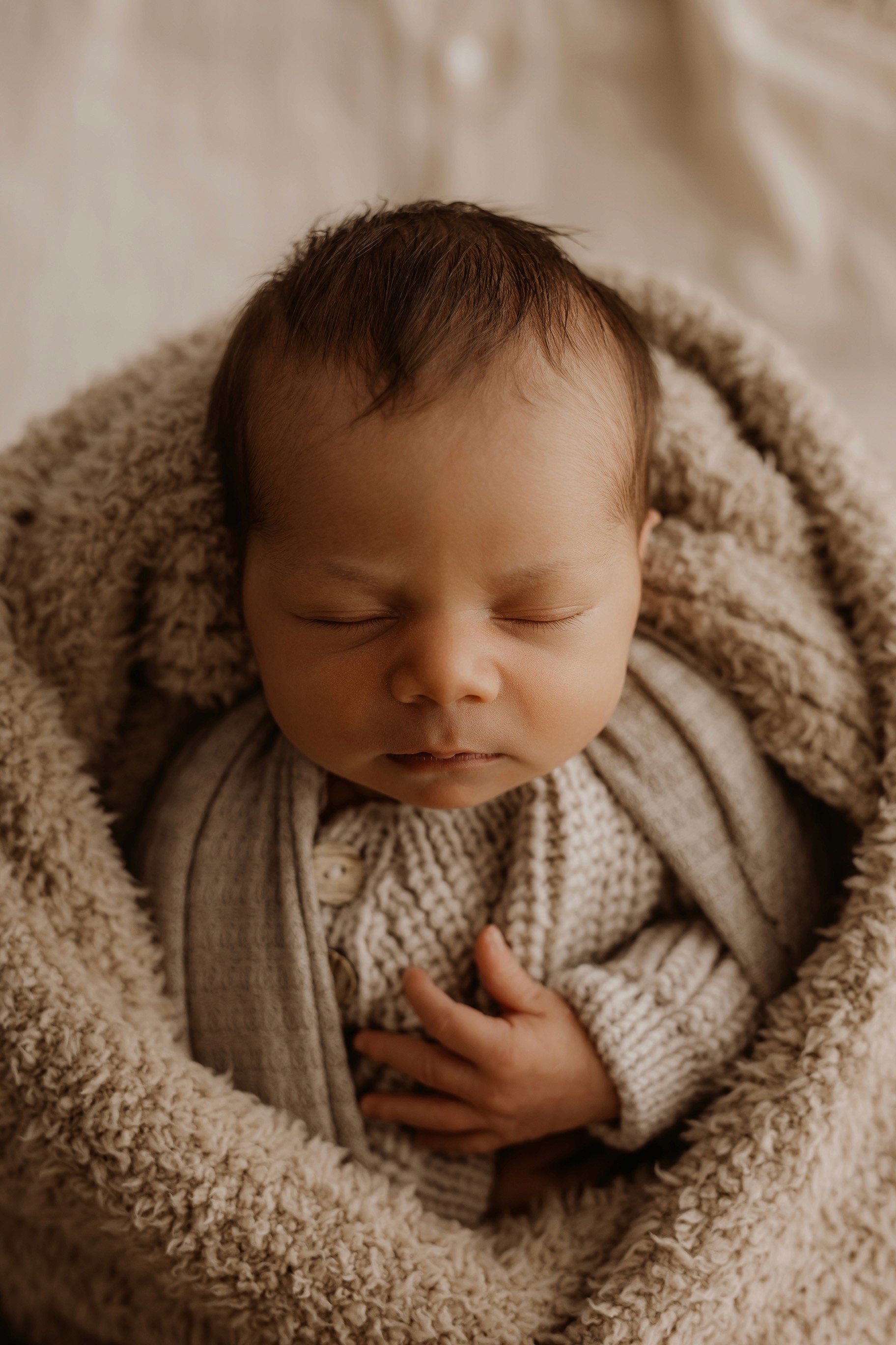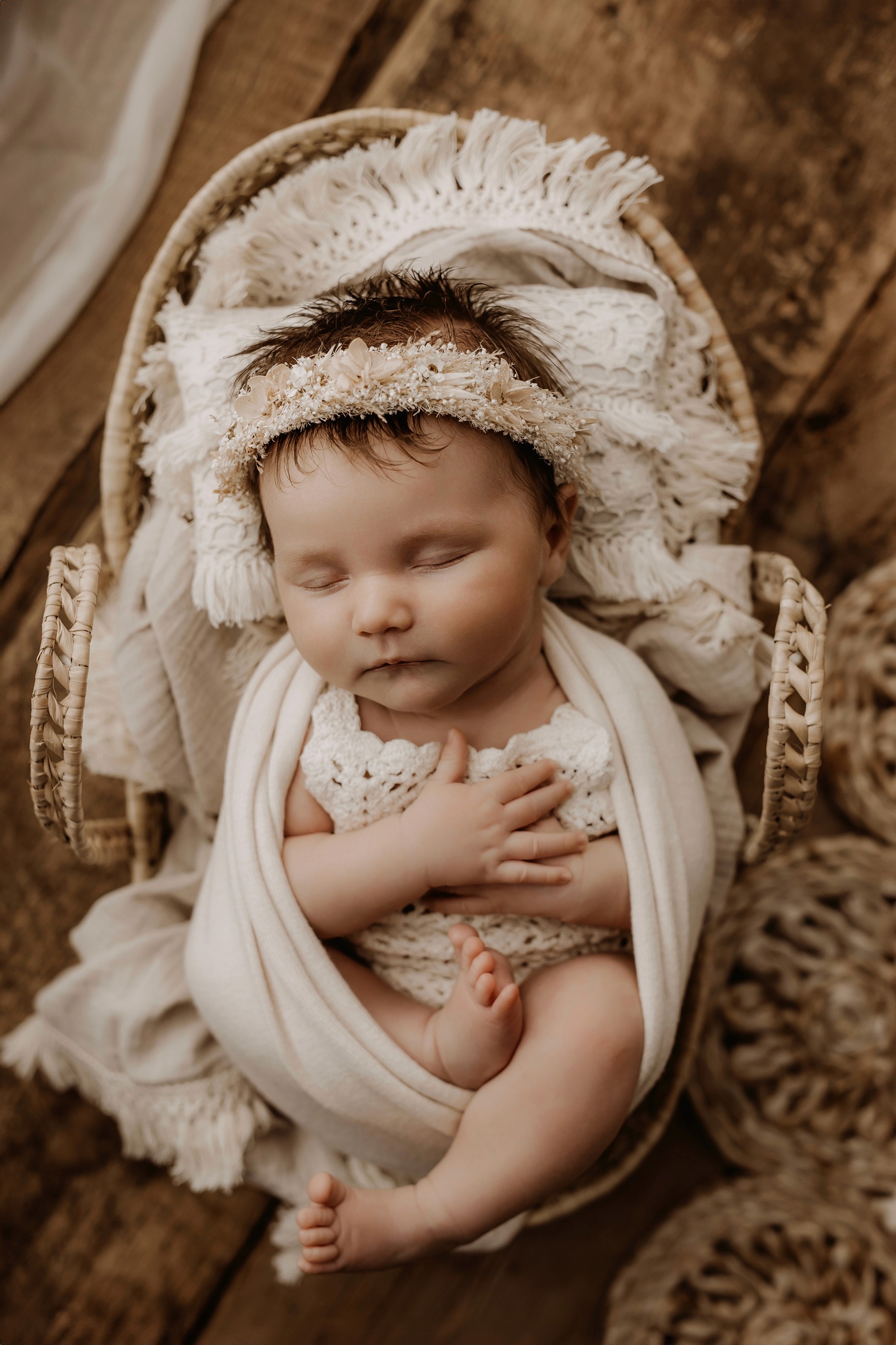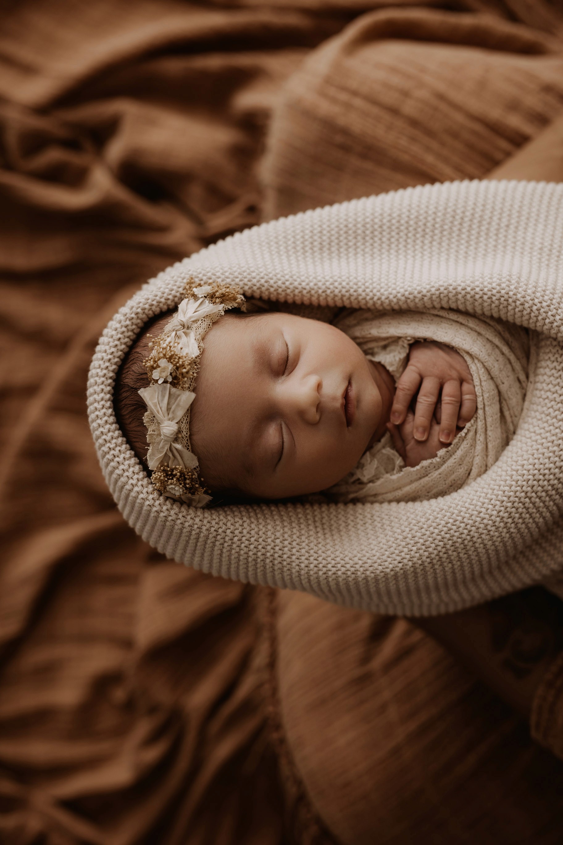 Newborn photography is best taken 5 to 14 days after birth when newborns are extra sleepy, however sessions can be taken up to 8 weeks old!