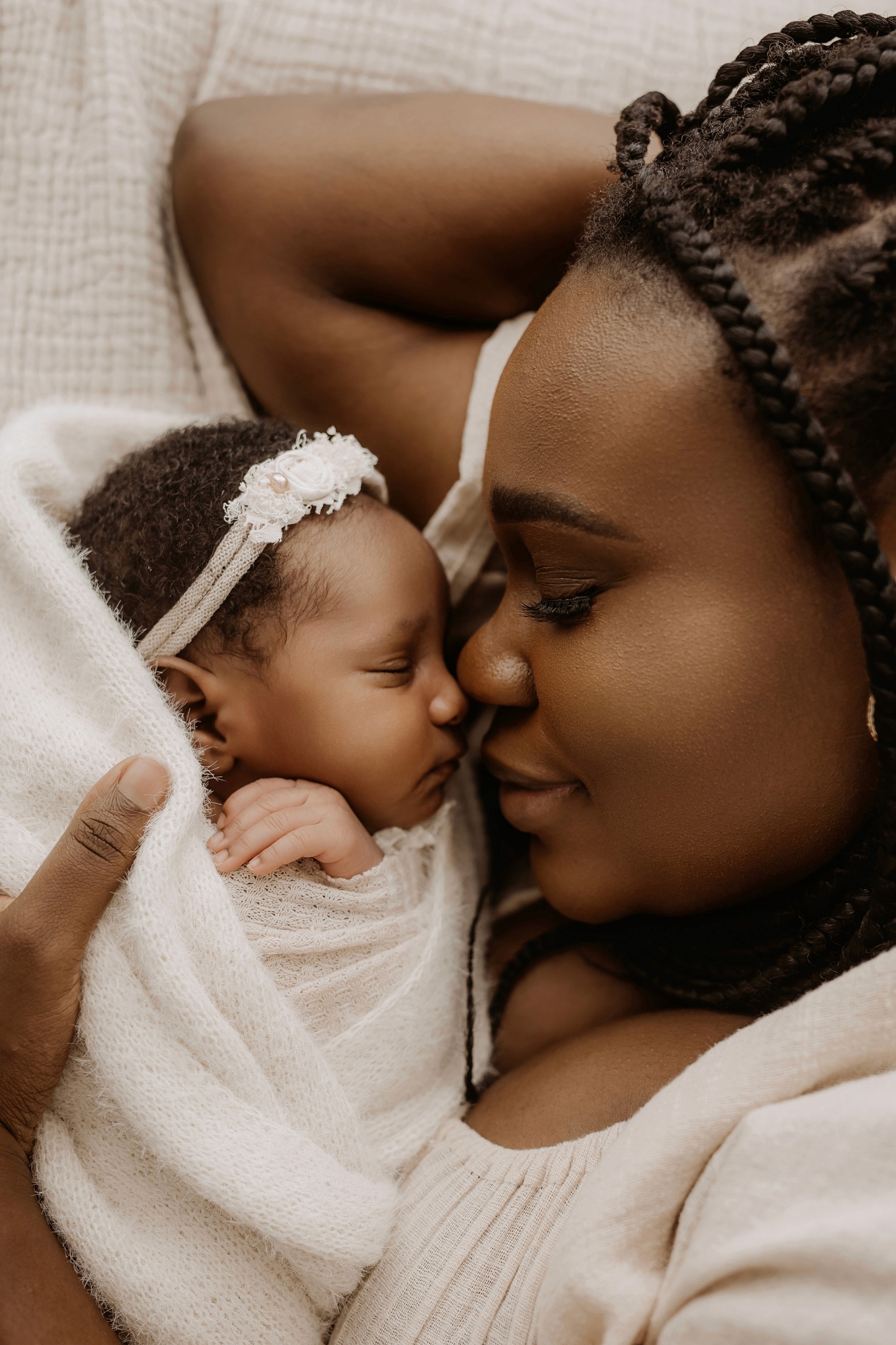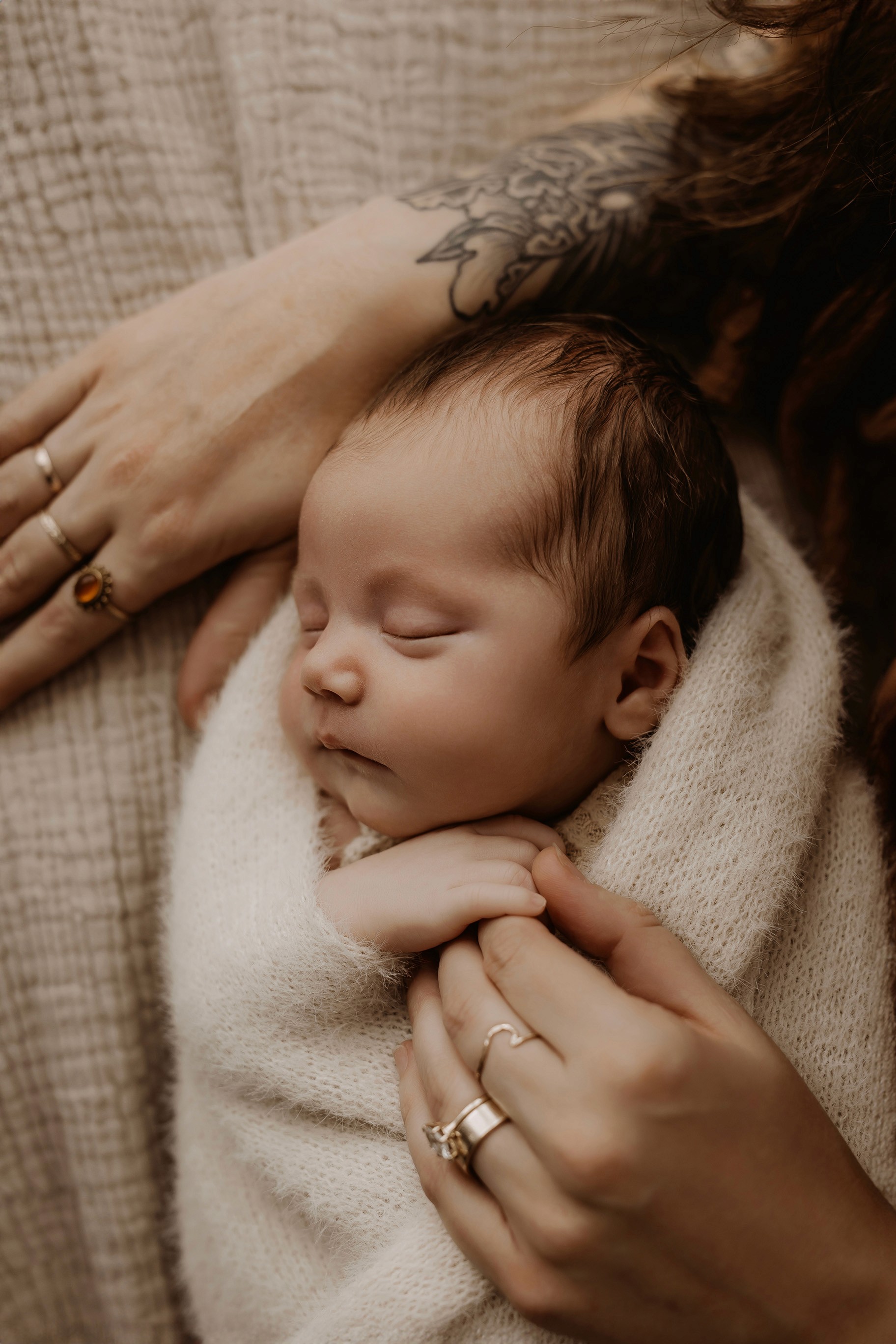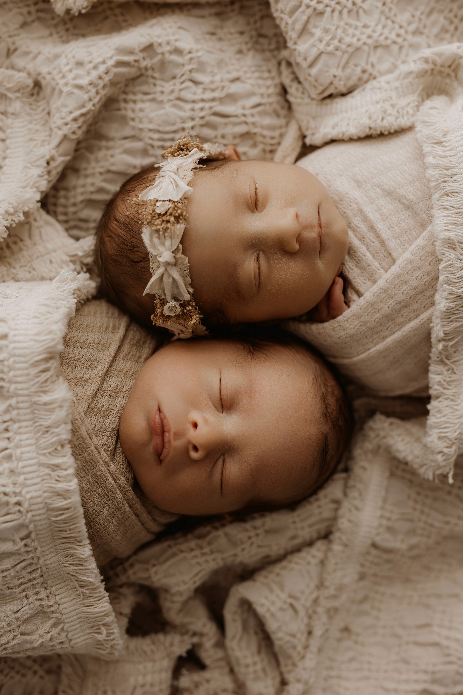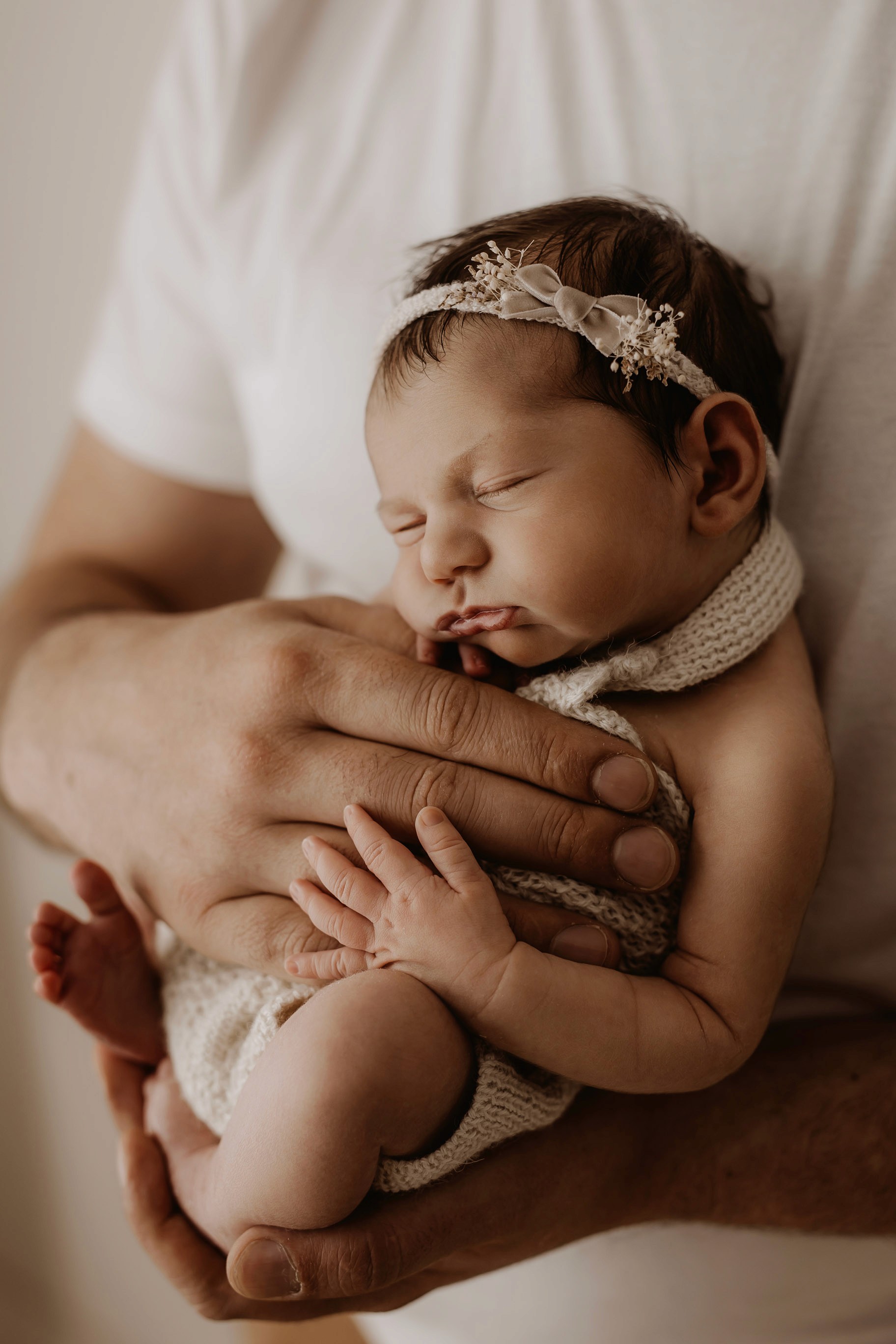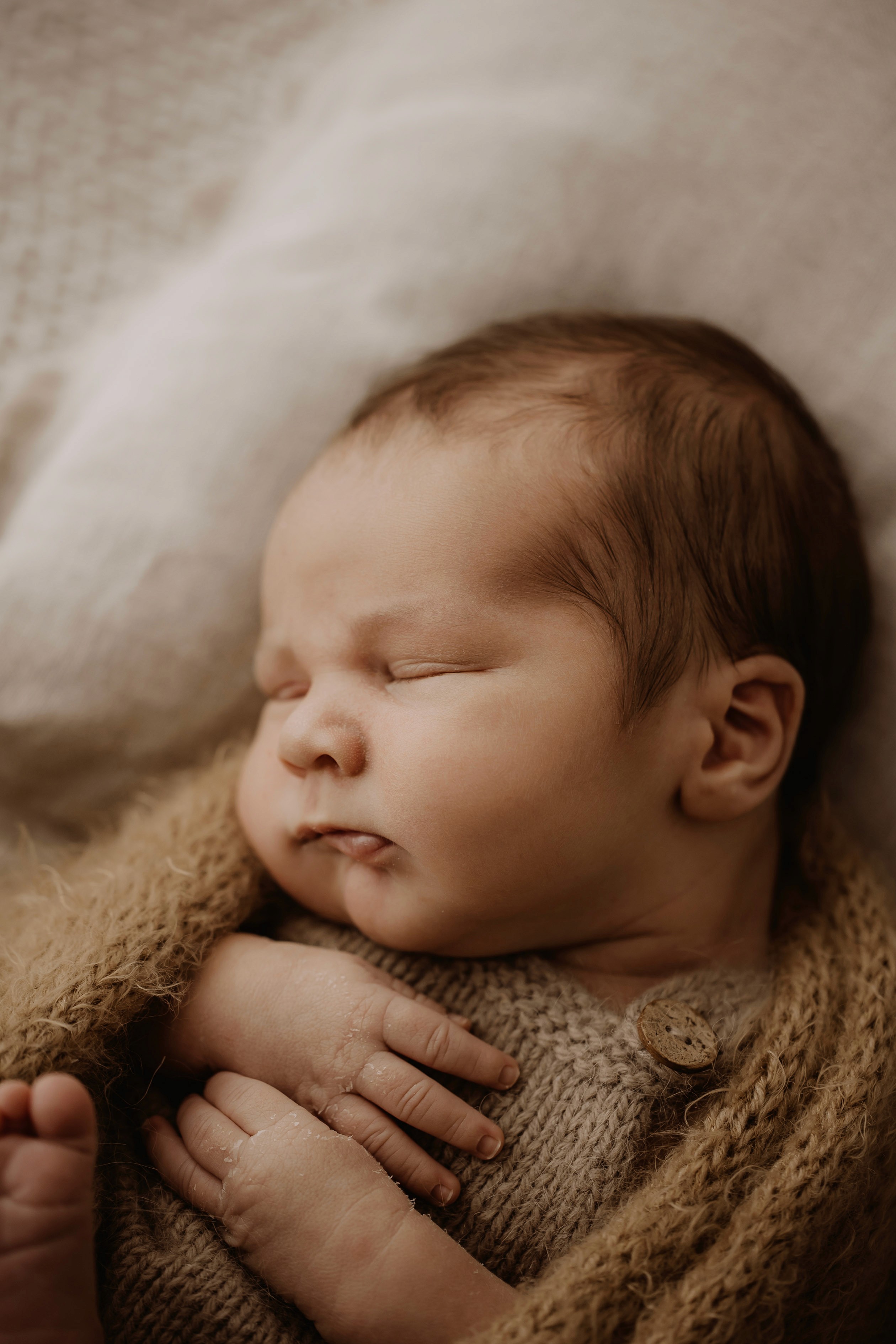 Newborn photography is best taken 5 to 14 days after birth when newborns are extra sleepy, however sessions can be taken up to 8 weeks old!