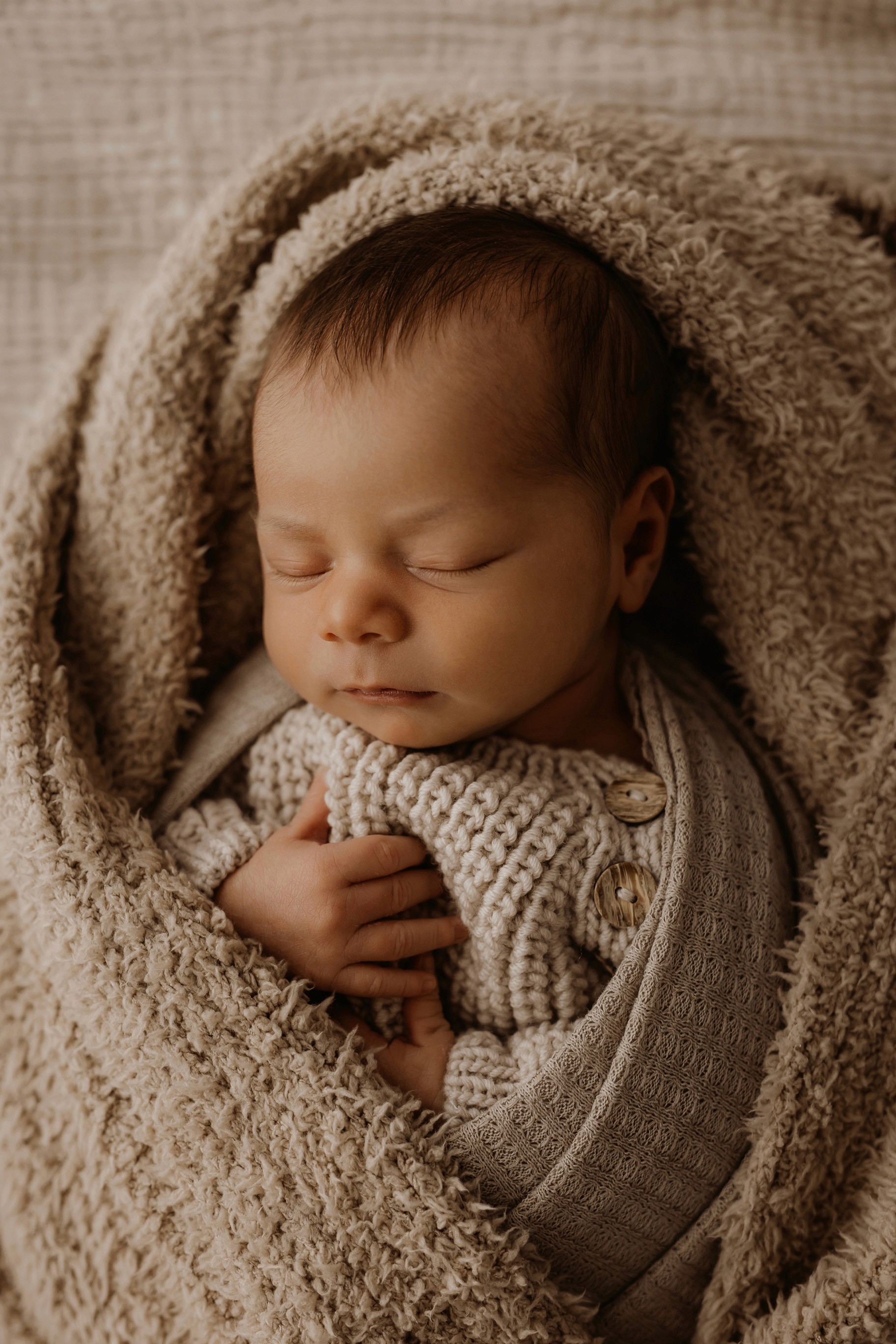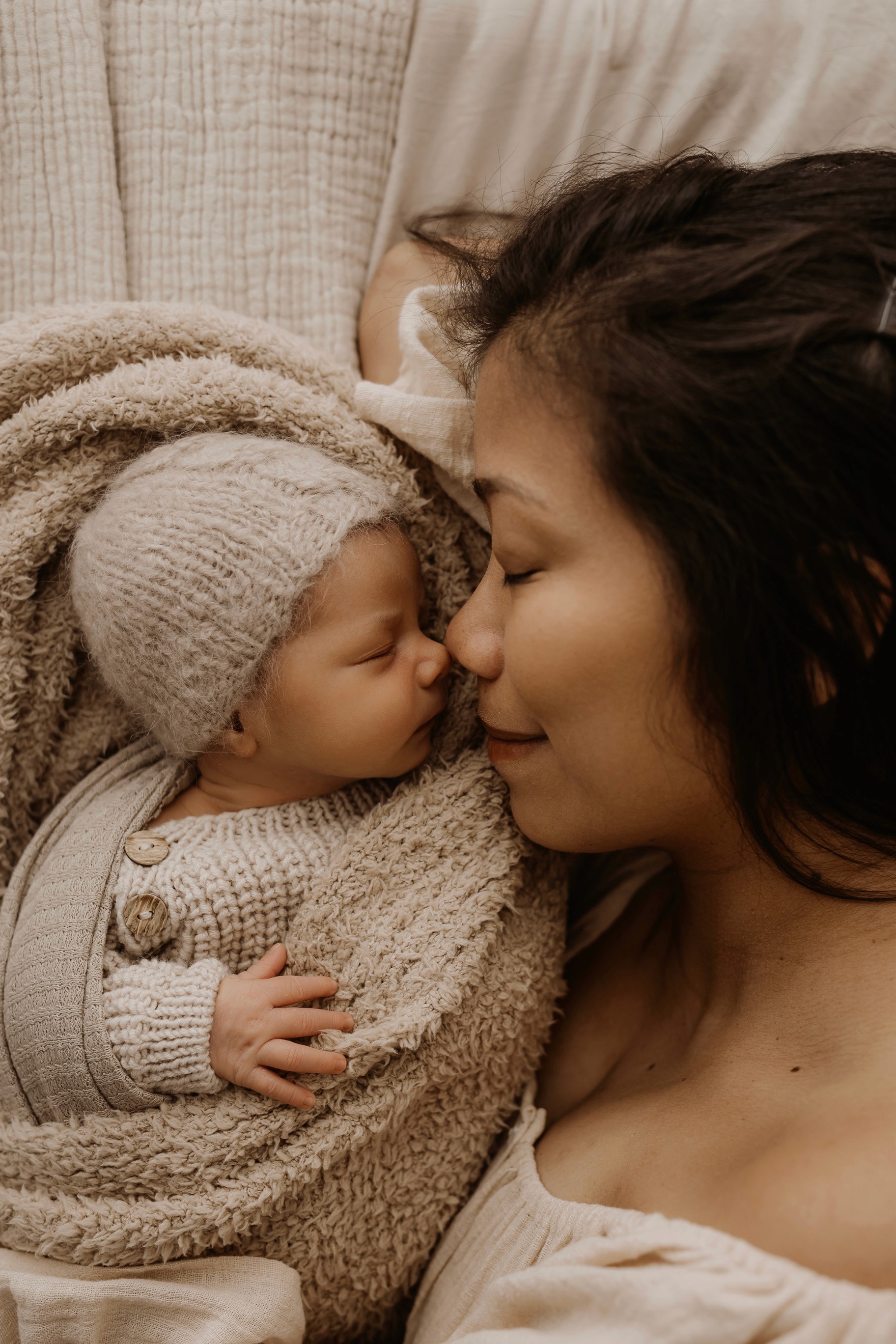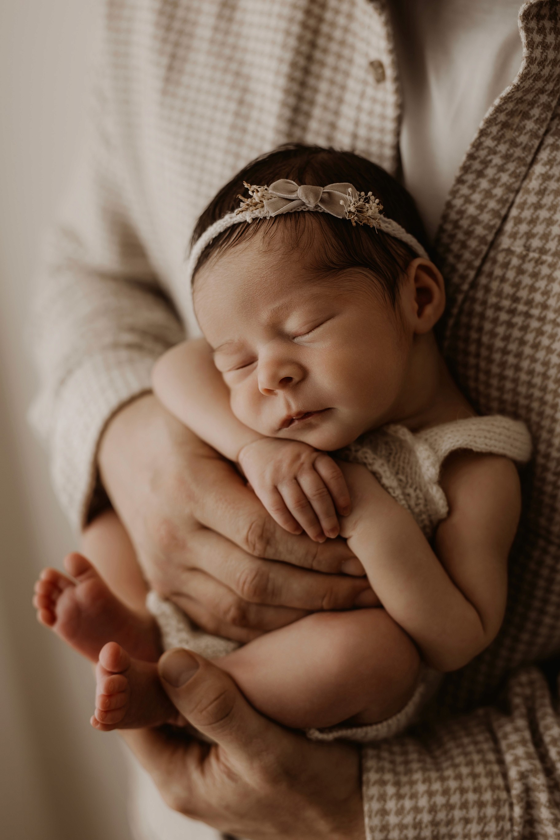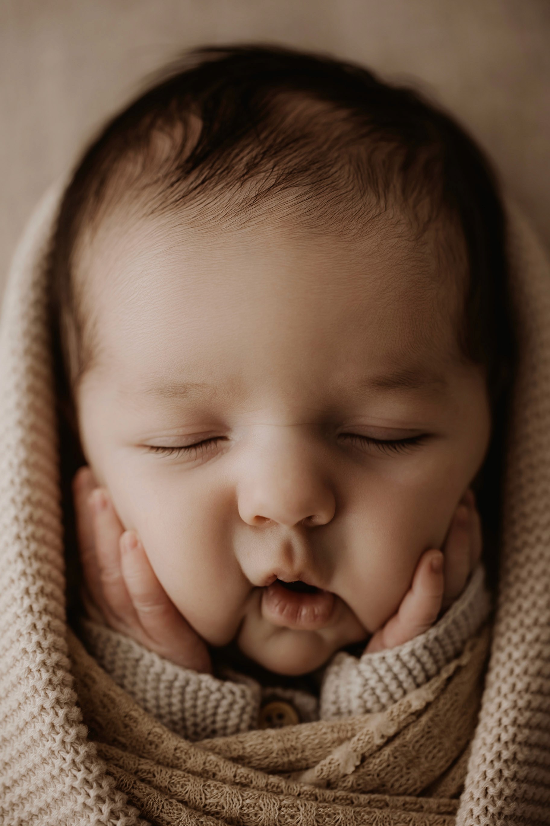 Newborn photography is best taken 5 to 14 days after birth when newborns are extra sleepy, however sessions can be taken up to 8 weeks old!