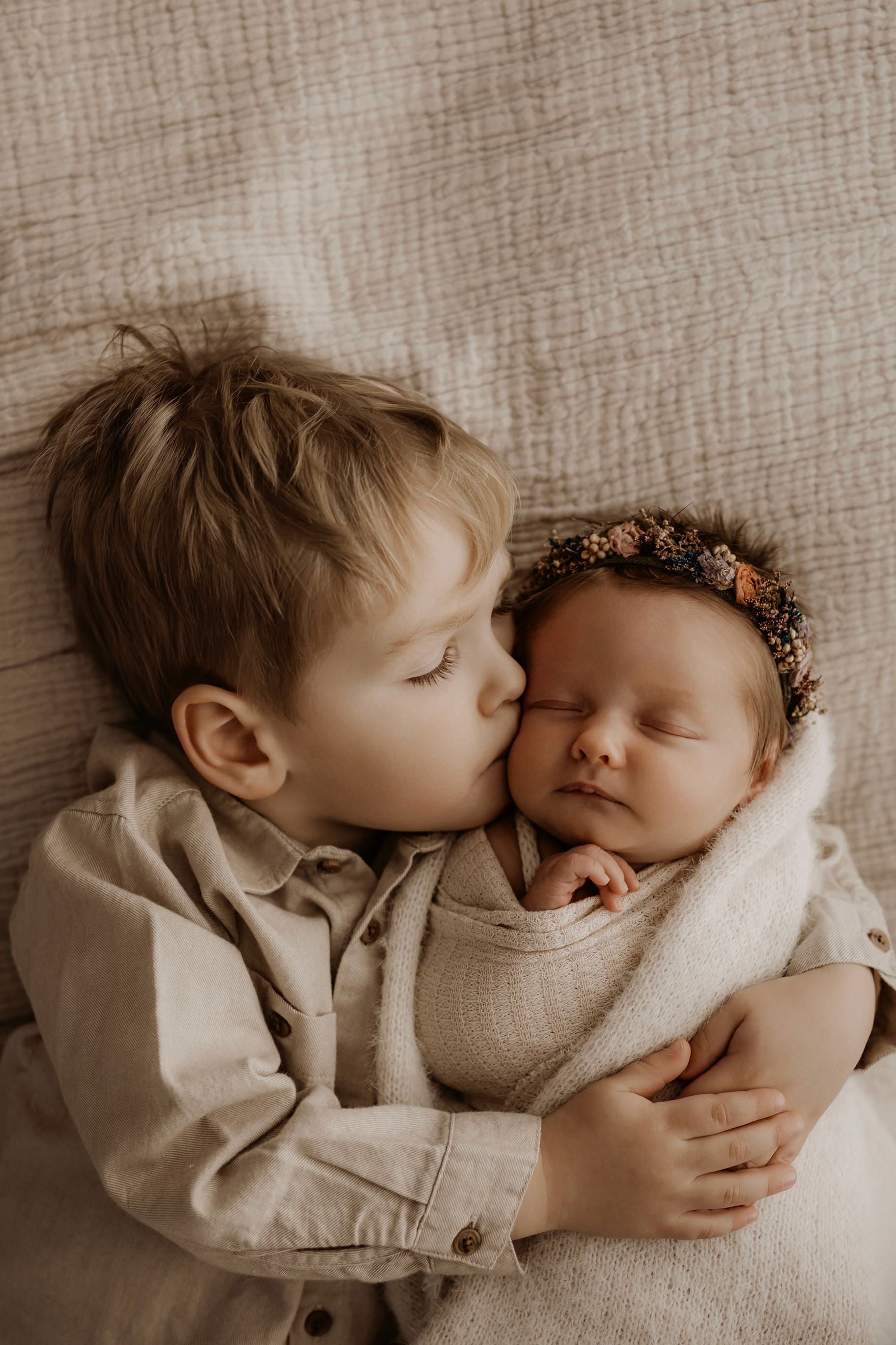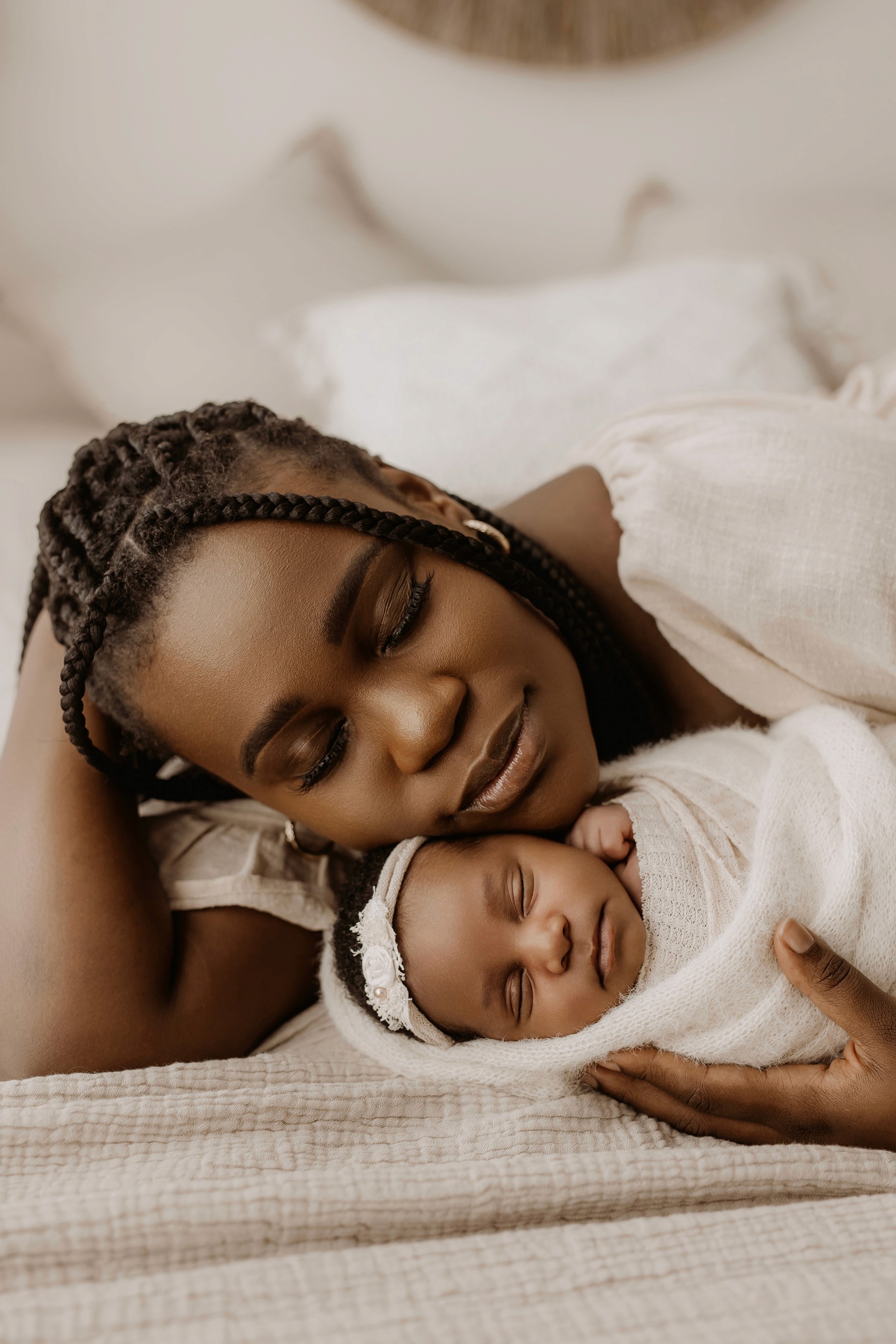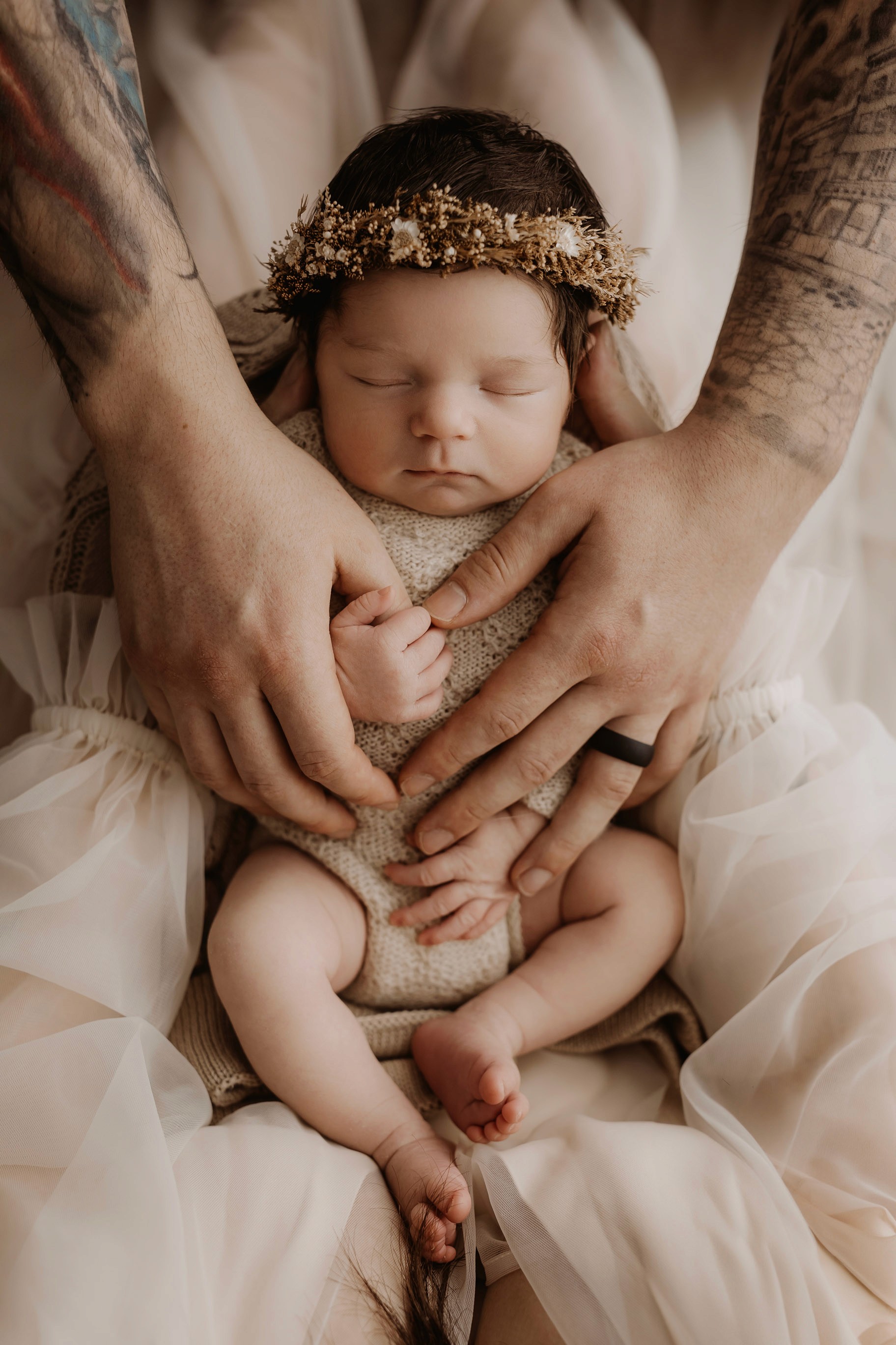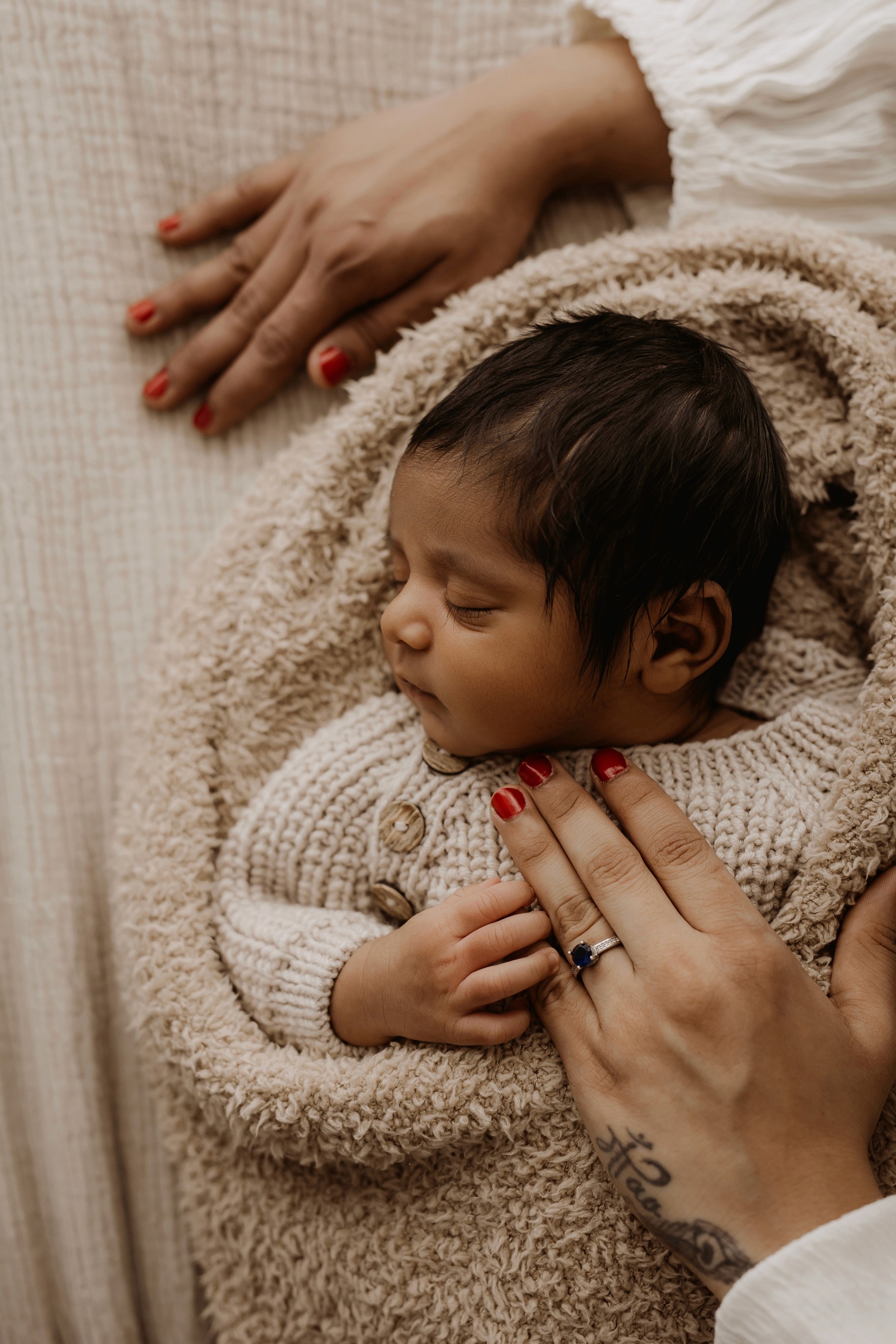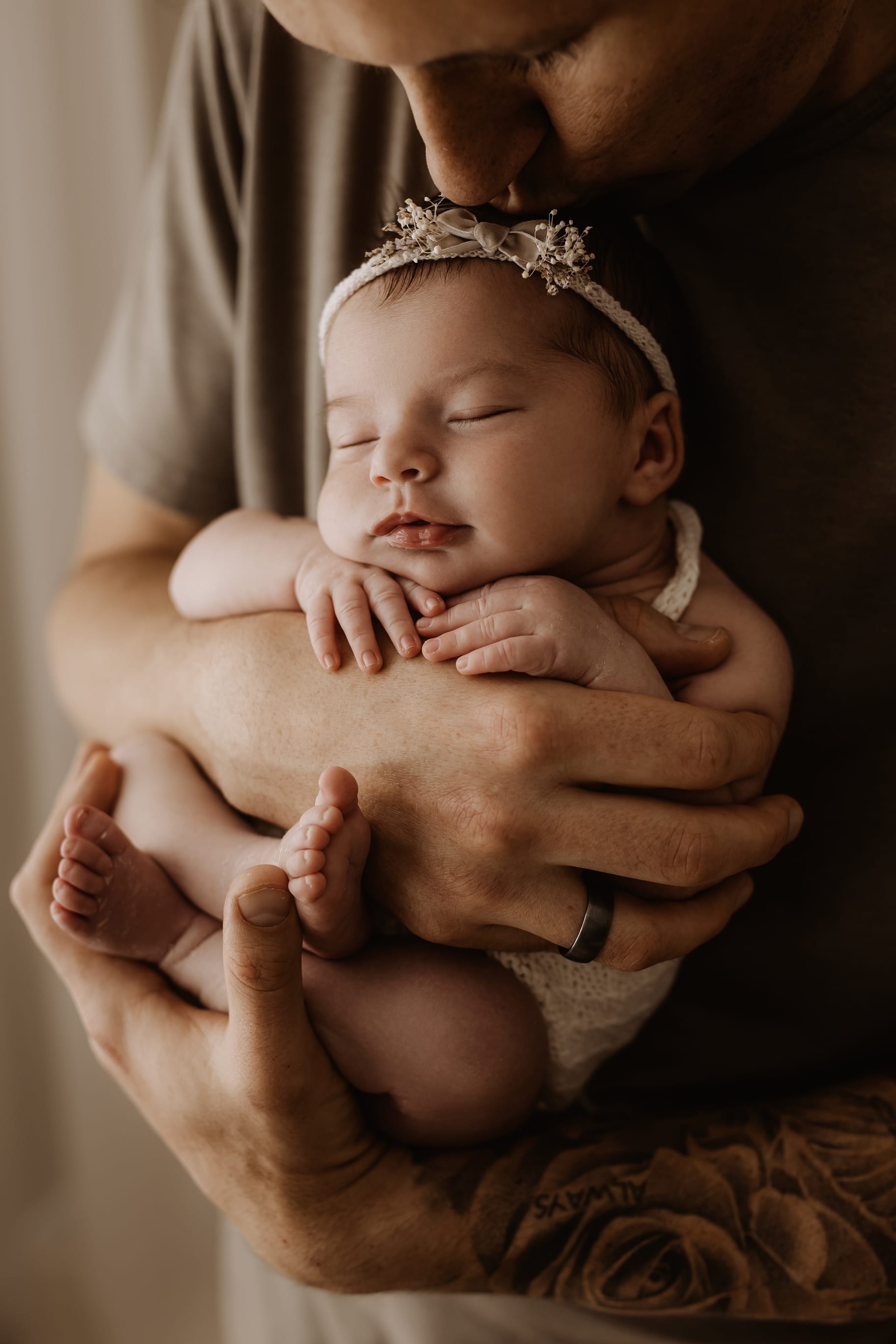 Newborn photography is best taken 5 to 14 days after birth when newborns are extra sleepy, however sessions can be taken up to 8 weeks old!