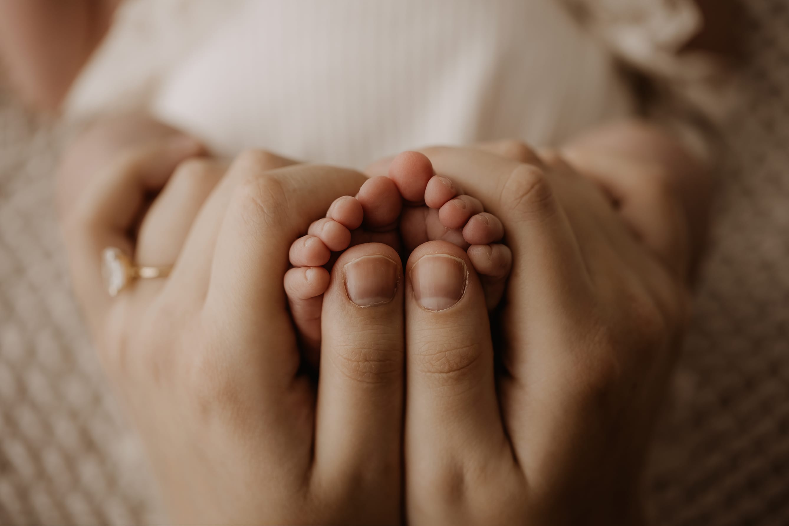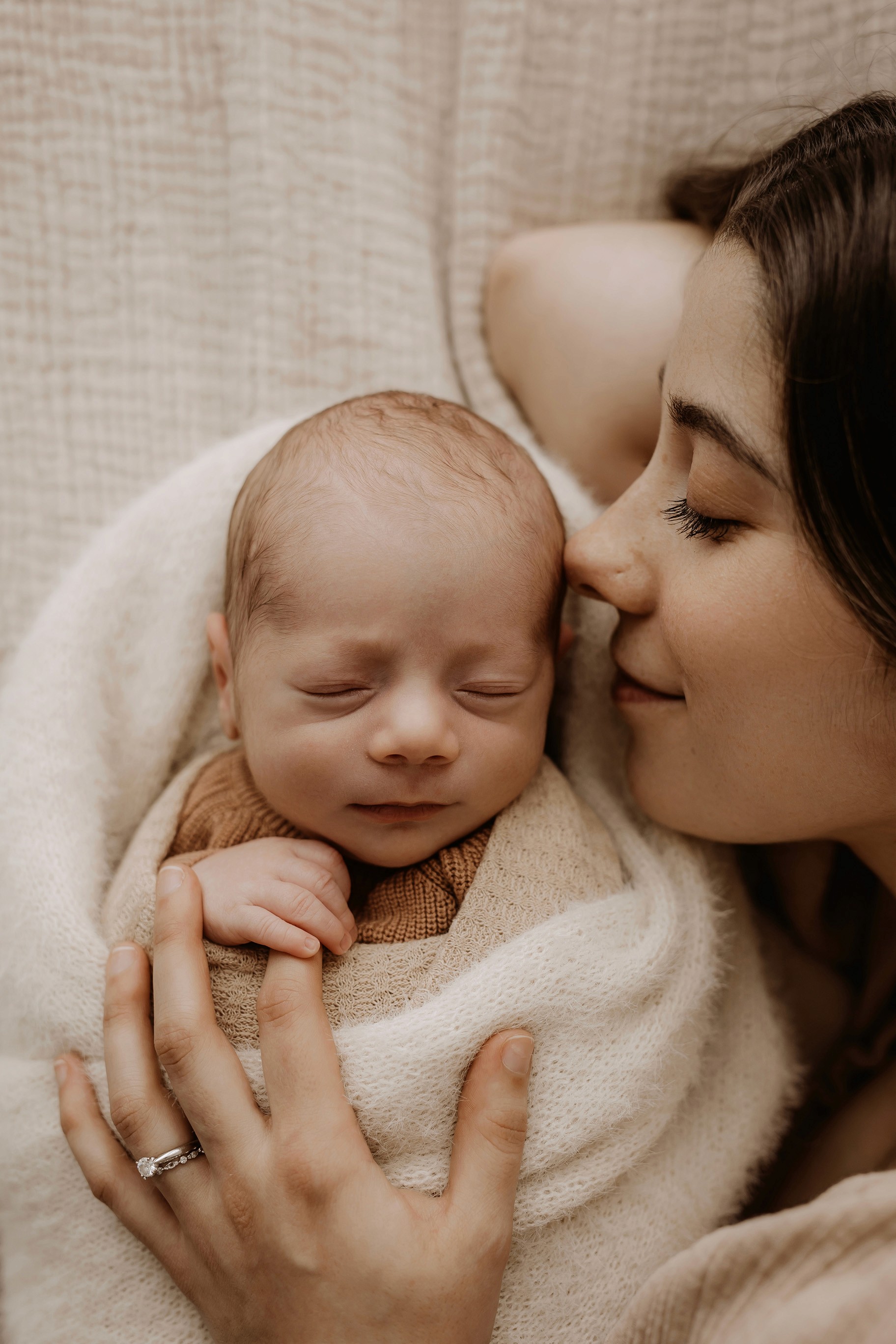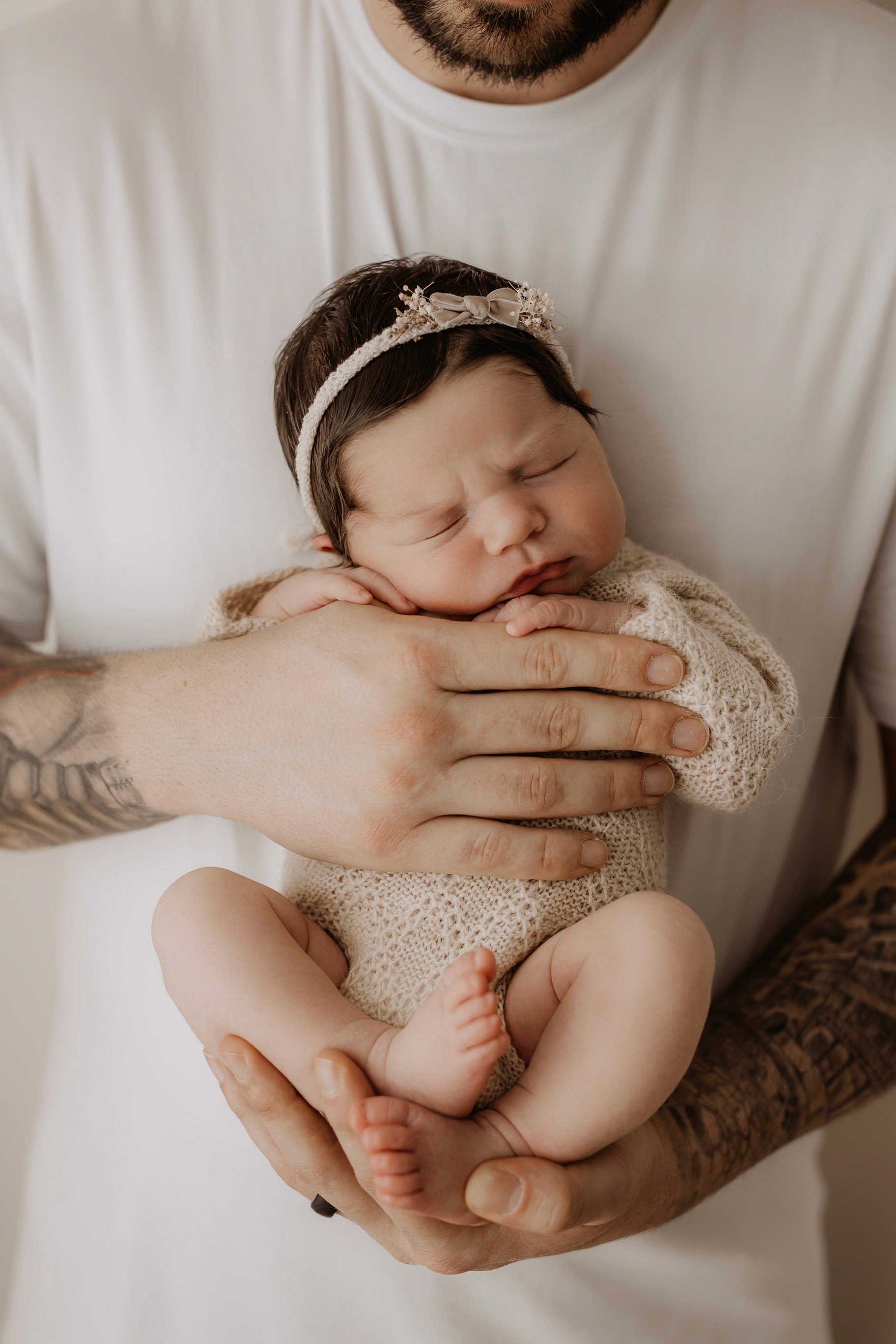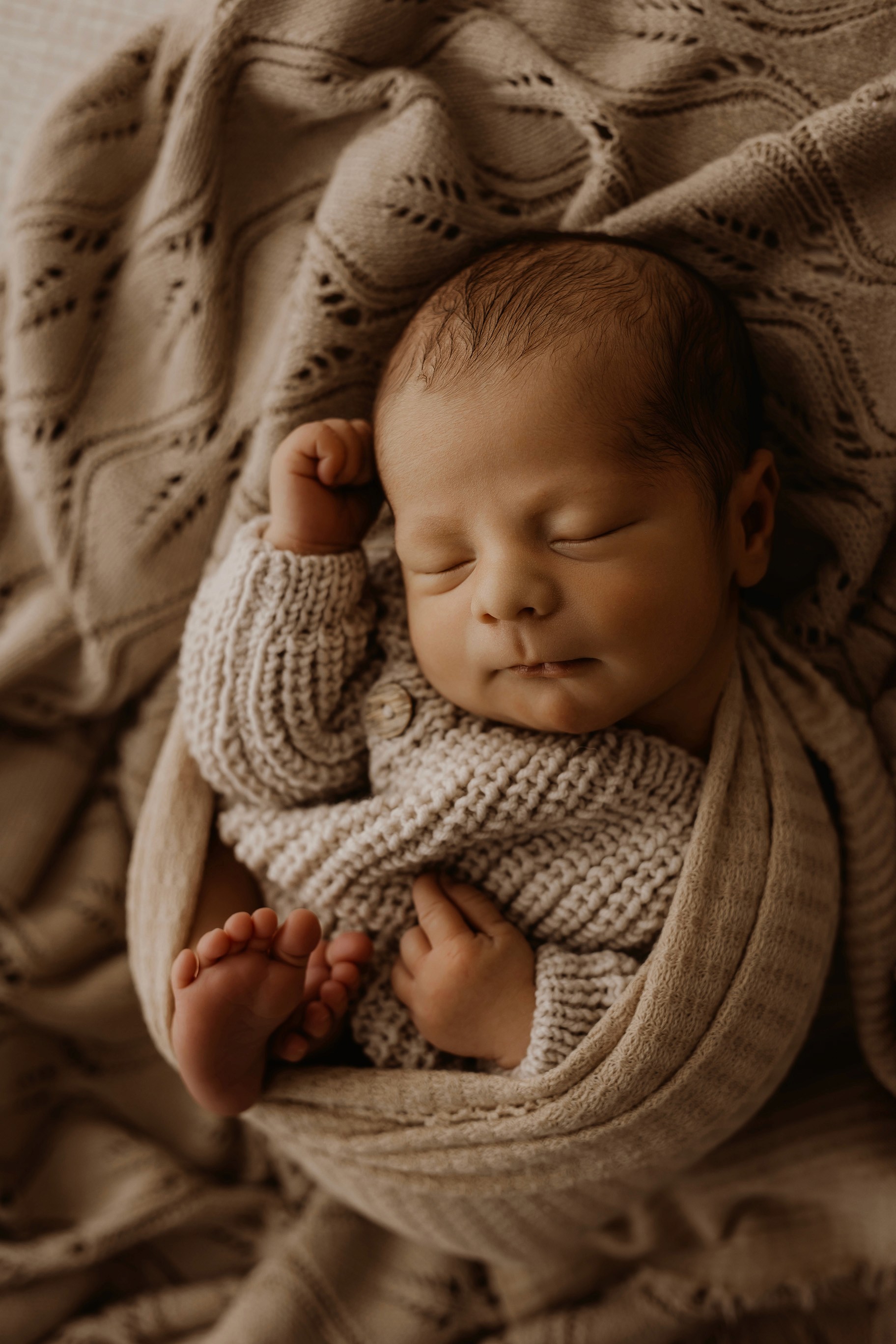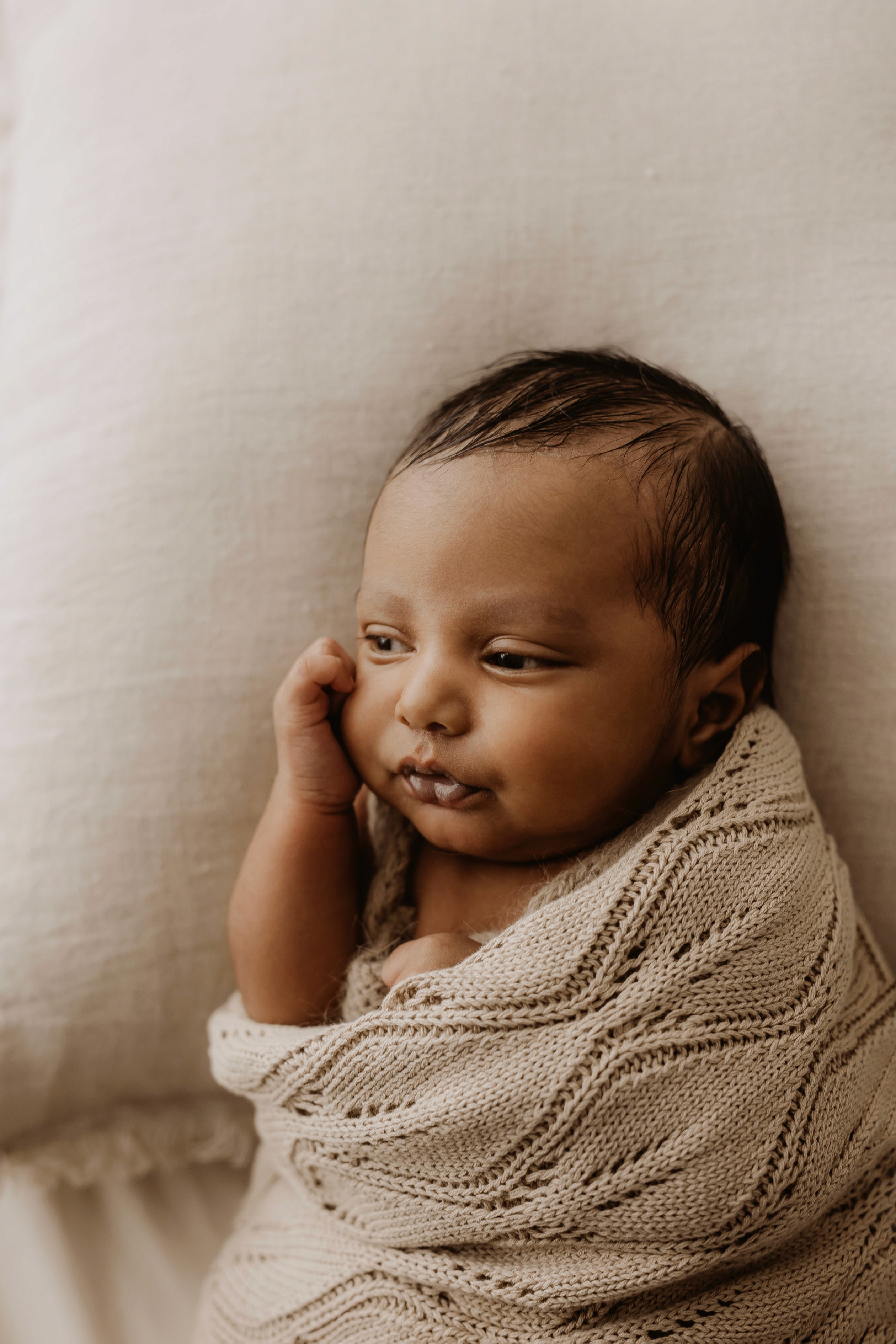 Newborn photography is best taken 5 to 14 days after birth when newborns are extra sleepy, however sessions can be taken up to 8 weeks old!