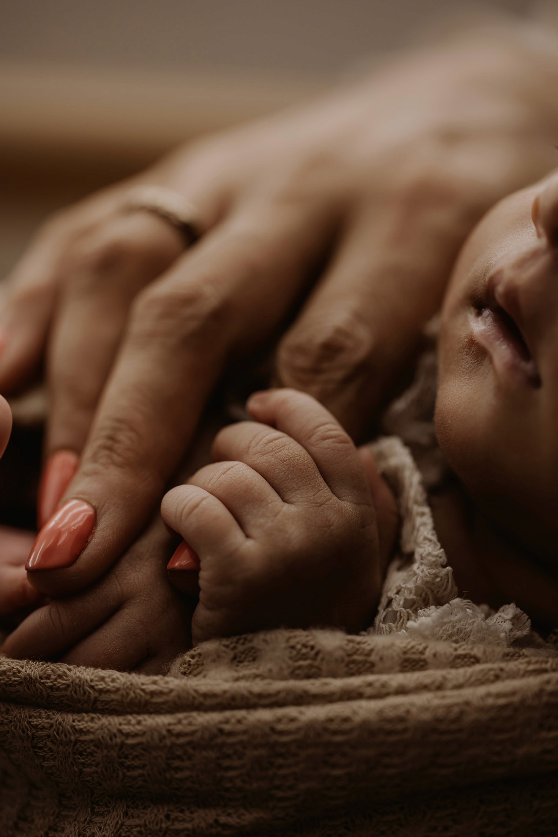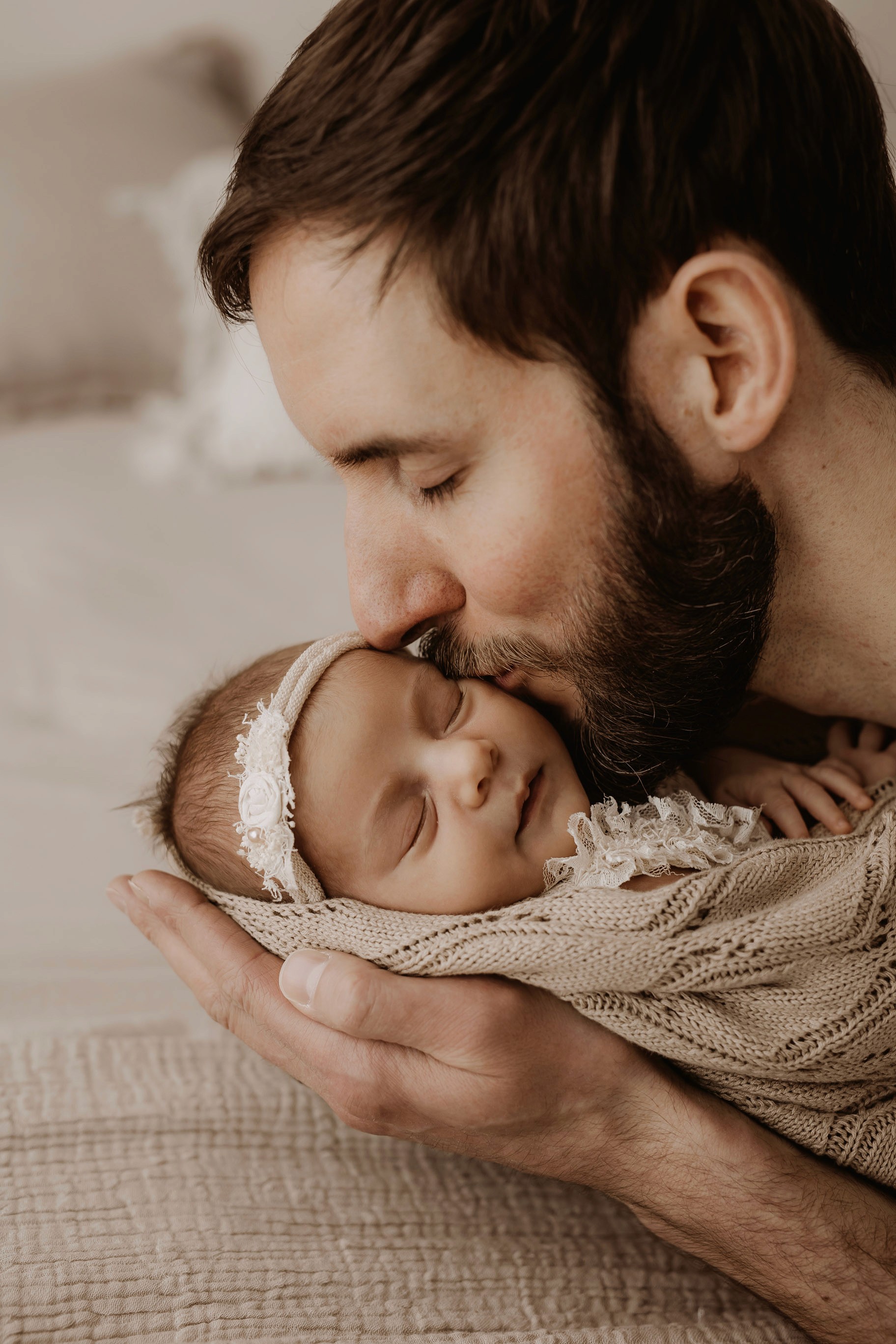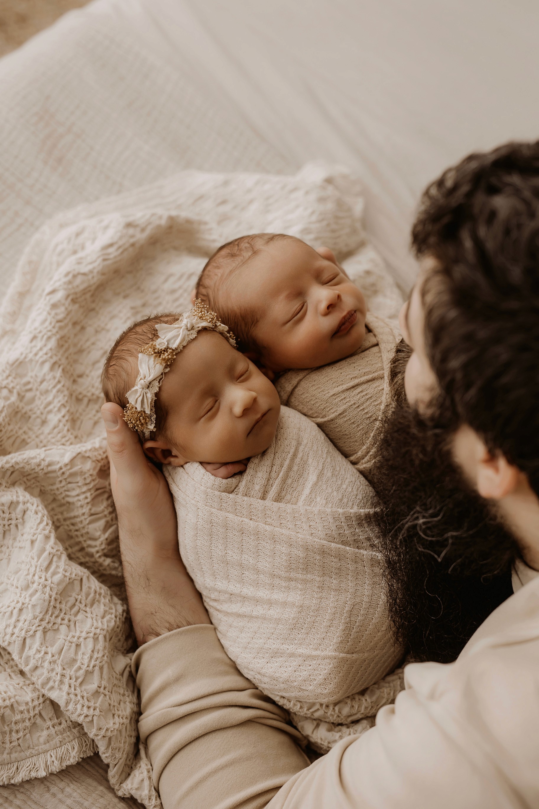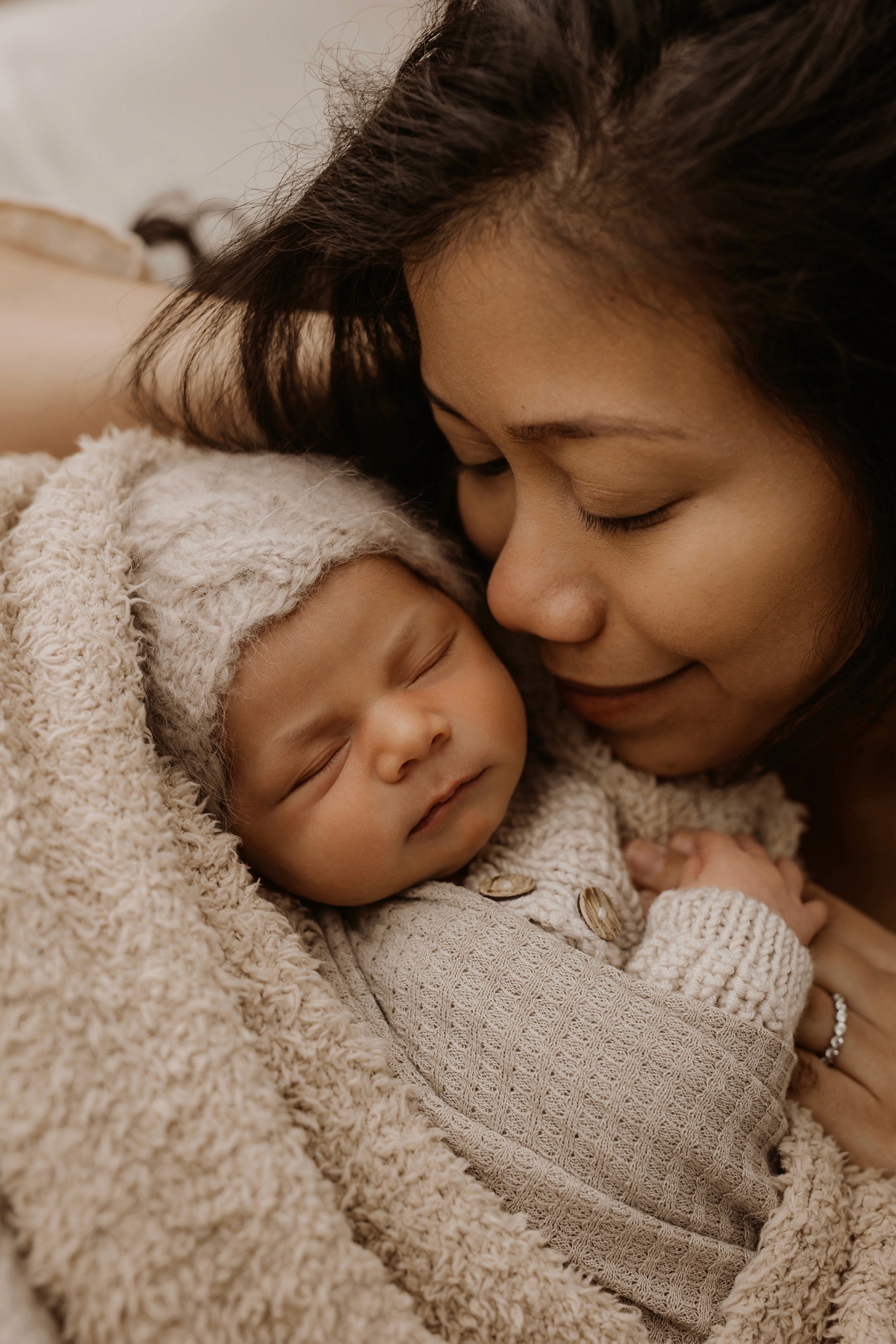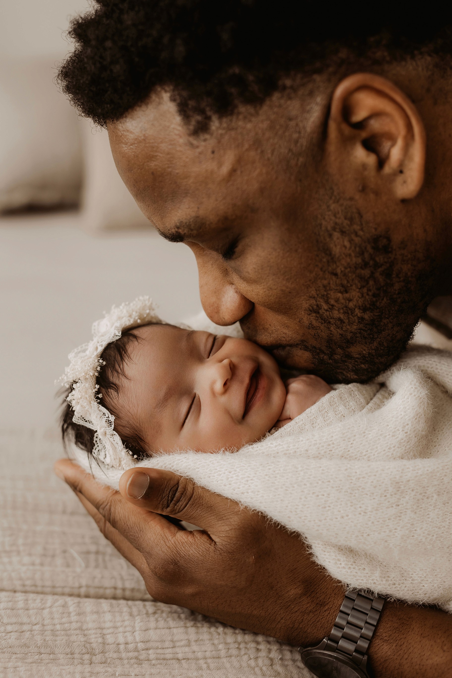 Newborn photography is best taken 5 to 14 days after birth when newborns are extra sleepy, however sessions can be taken up to 8 weeks old!