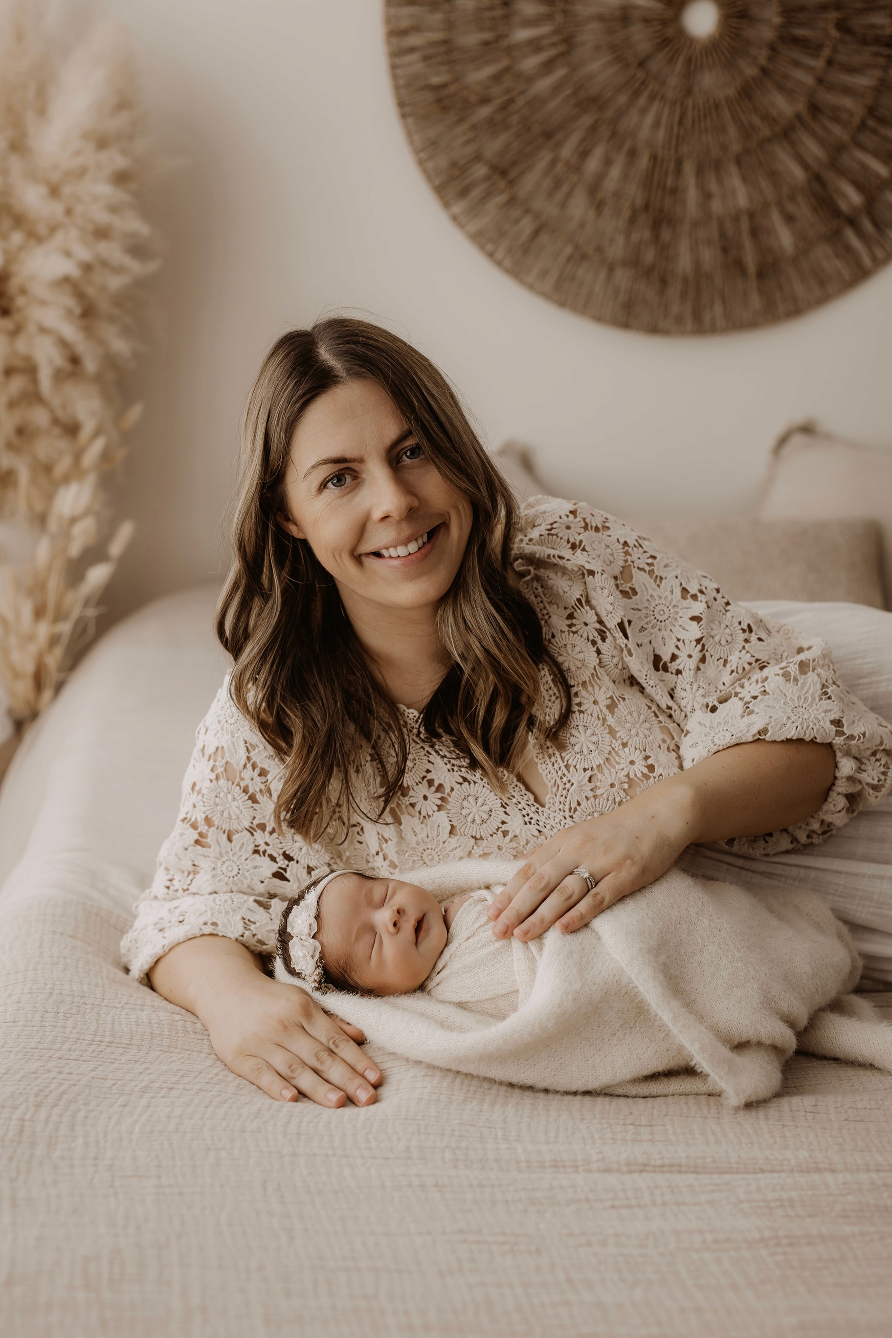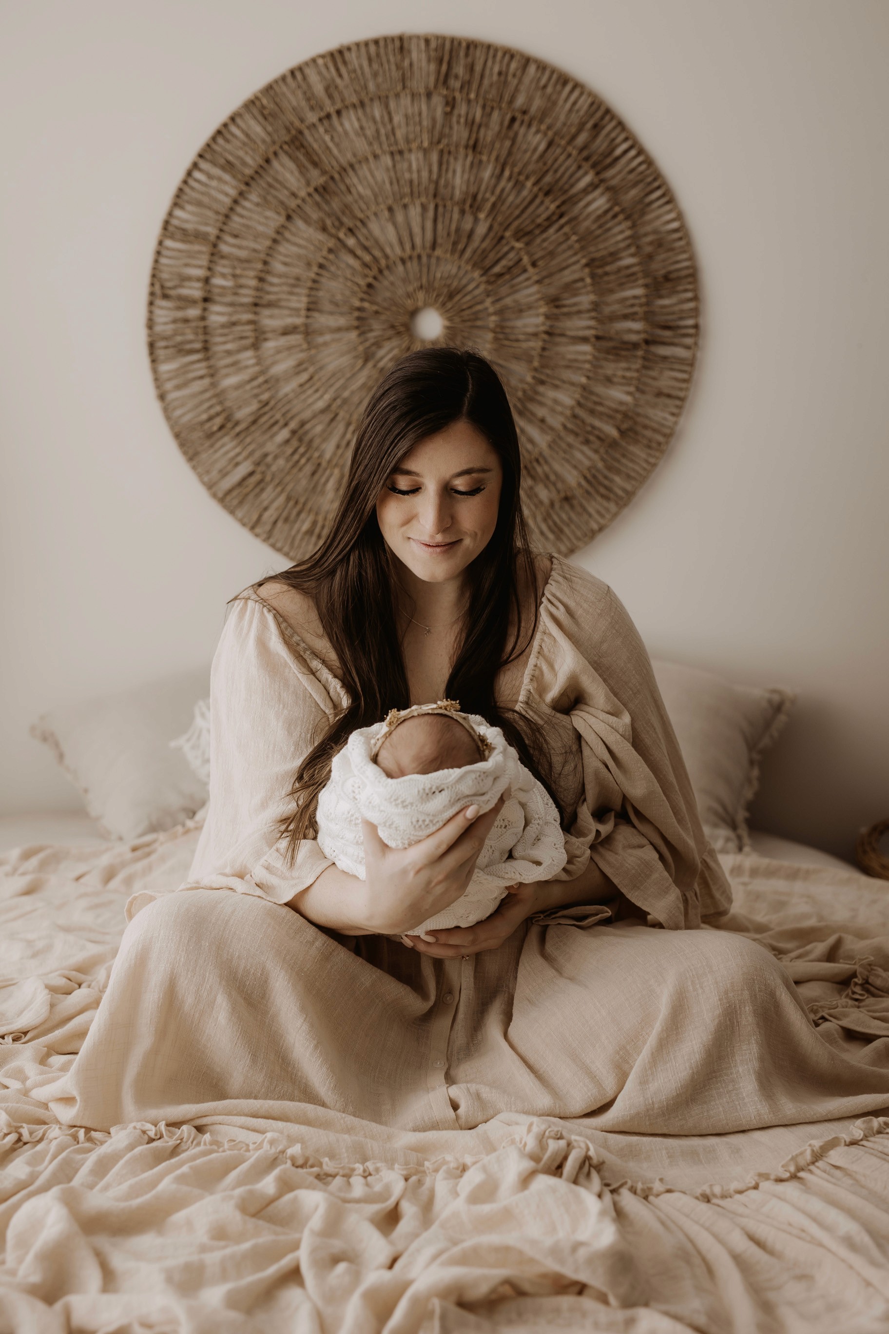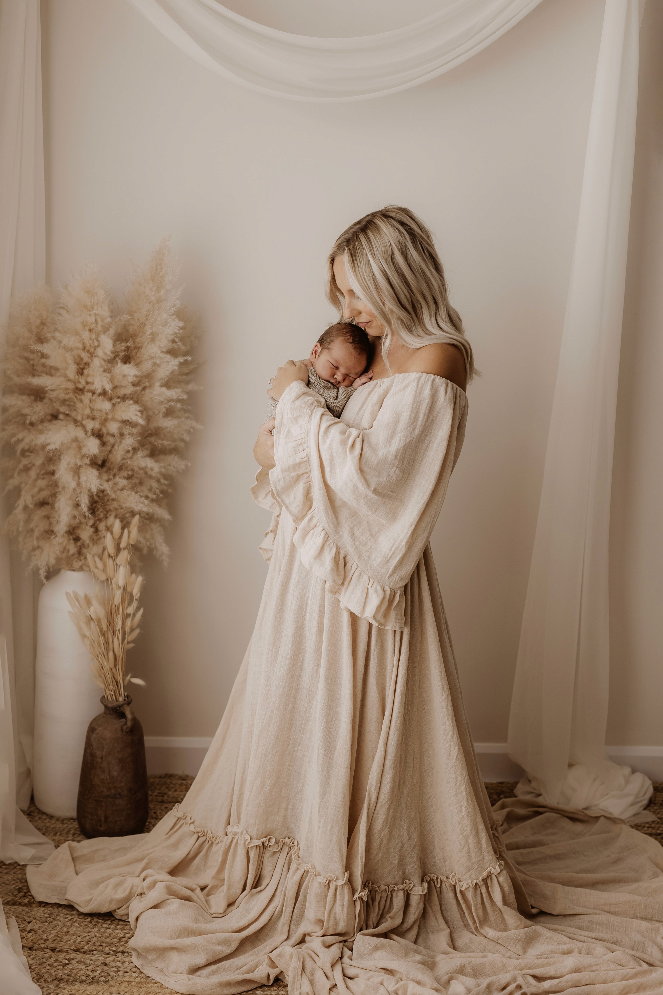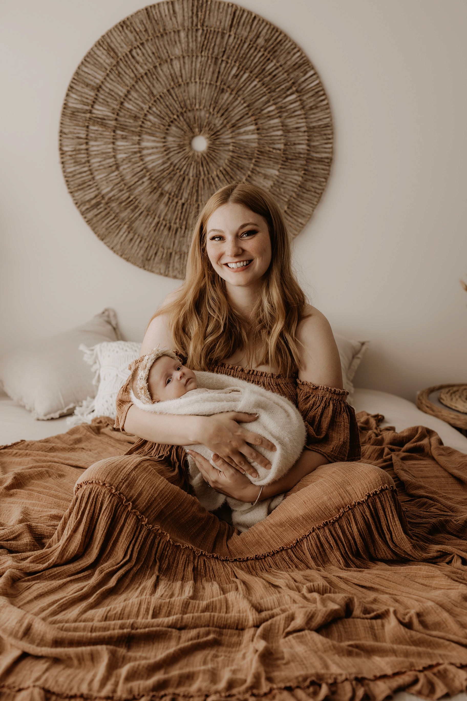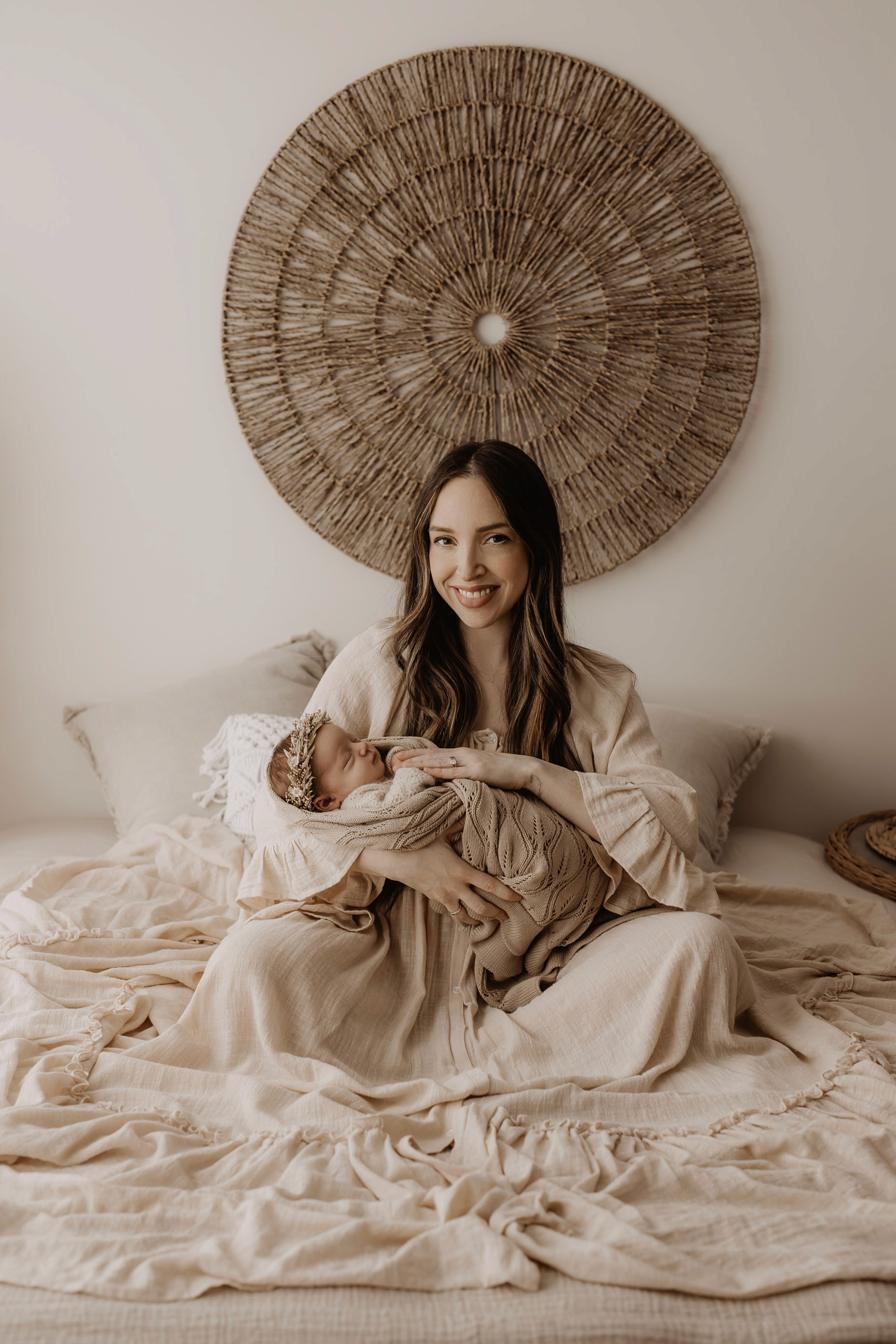 My style is a beautifully balanced blend of posed and lifestyle photography. My lifestyle space for newborn photos is decorated in earthy muted neutral tones with boho florals. To match this vibe I provide neutral baby outfits, headbands, wraps and blankets. Not to mention the most incredible selection of dresses for mamas and lots of options for children! I want you to walk away having had a wonderful, stress-free experience. I am here for the laughs and chats and I promise to make you feel comfortable!