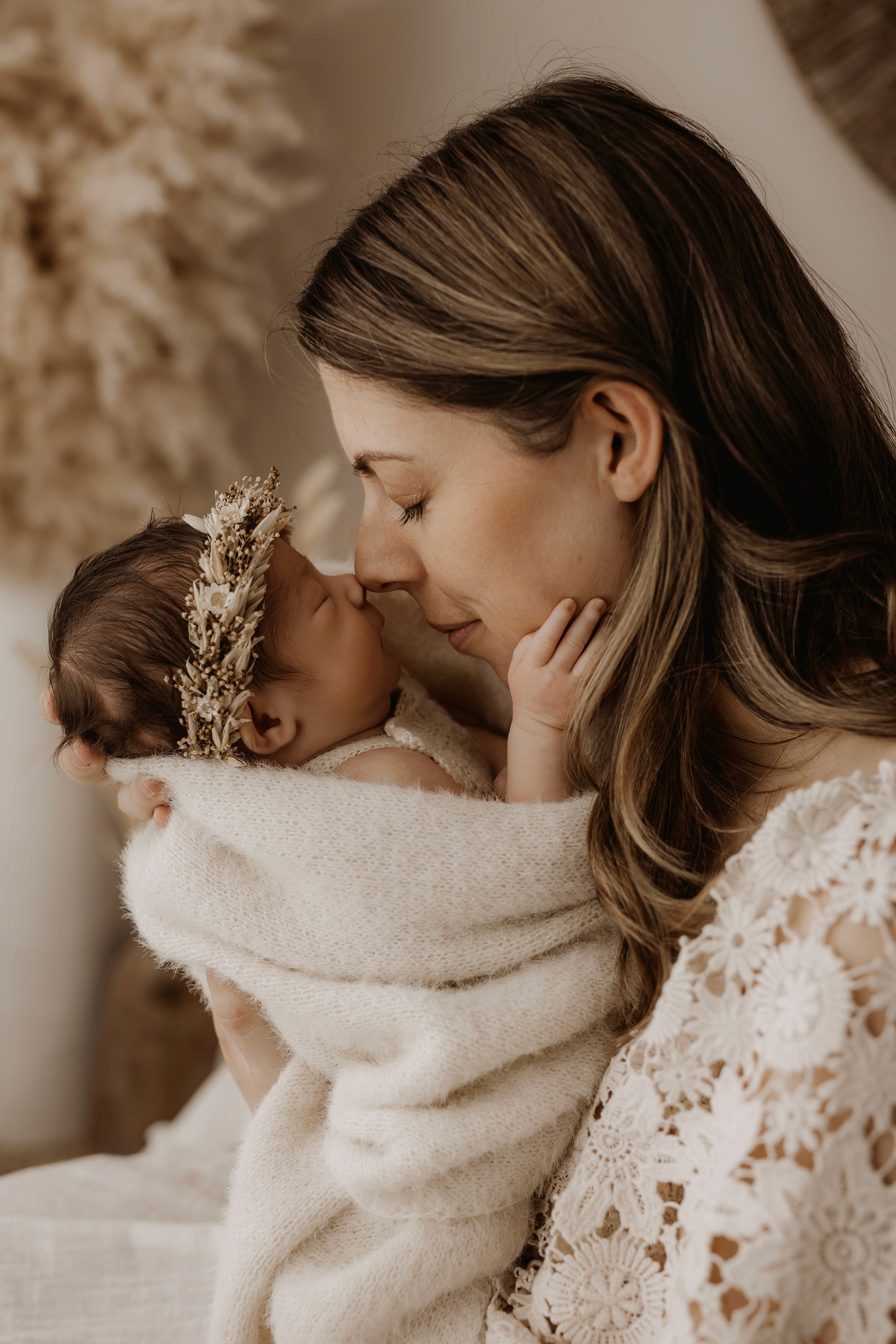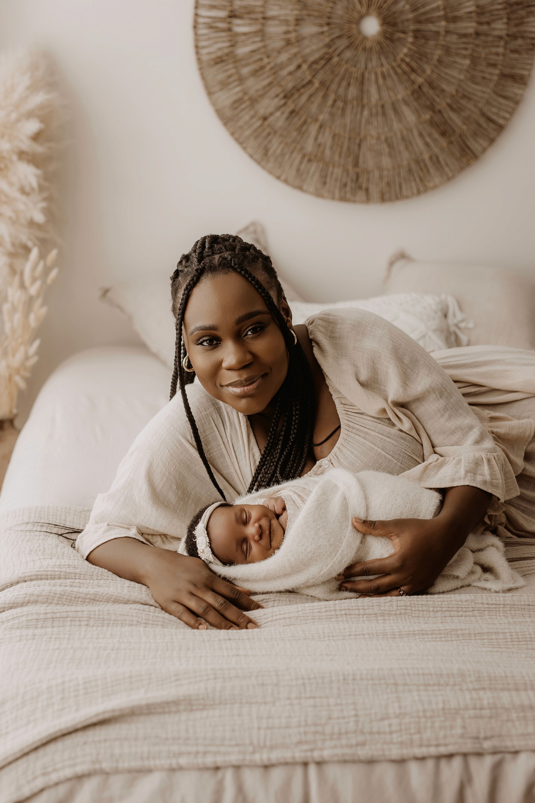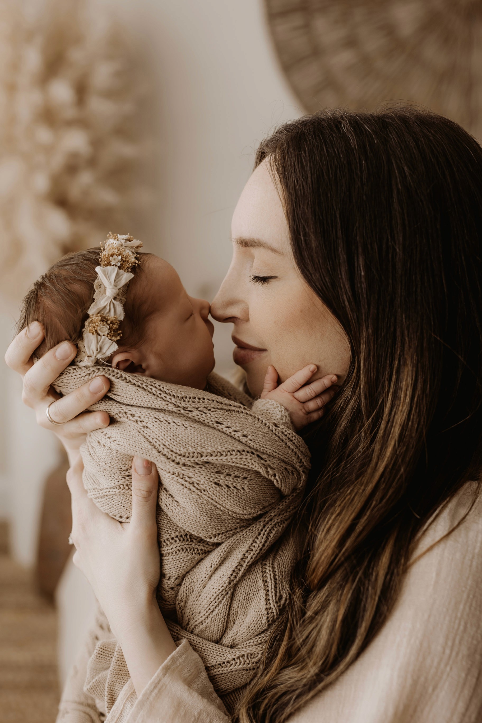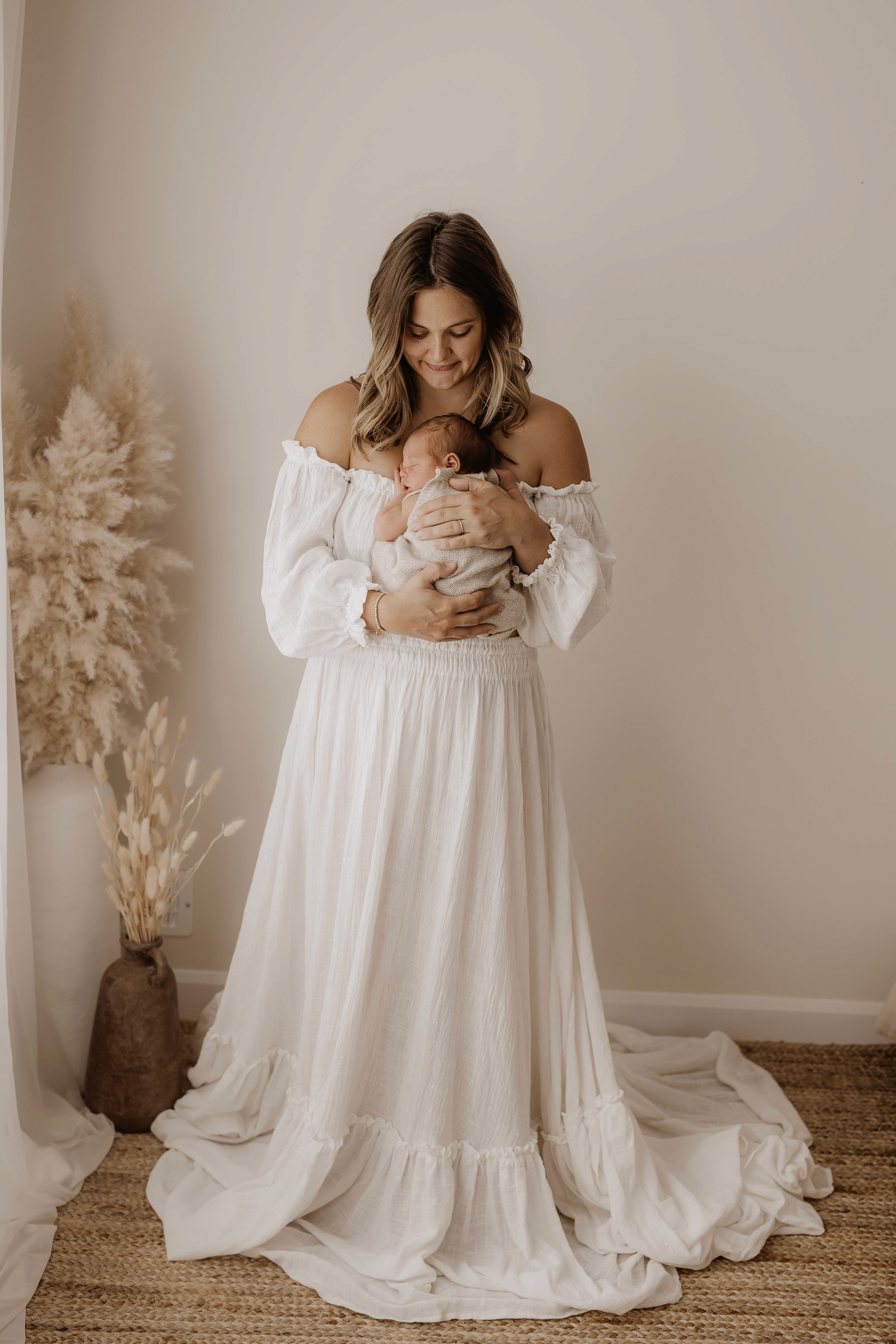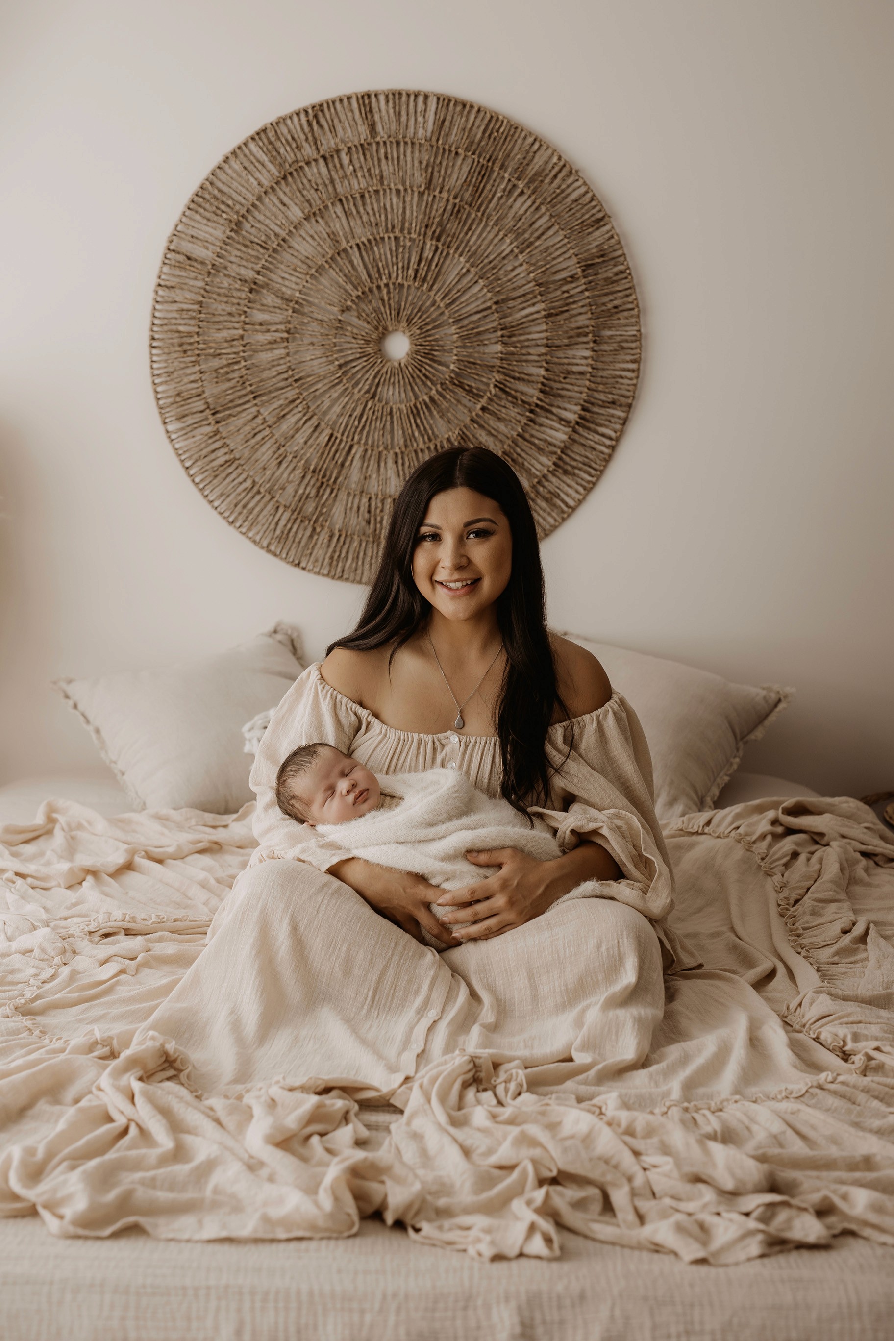 My style is a beautifully balanced blend of posed and lifestyle photography. My lifestyle space for newborn photos is decorated in earthy muted neutral tones with boho florals. To match this vibe I provide neutral baby outfits, headbands, wraps and blankets. Not to mention the most incredible selection of dresses for mamas and lots of options for children! I want you to walk away having had a wonderful, stress-free experience. I am here for the laughs and chats and I promise to make you feel comfortable!