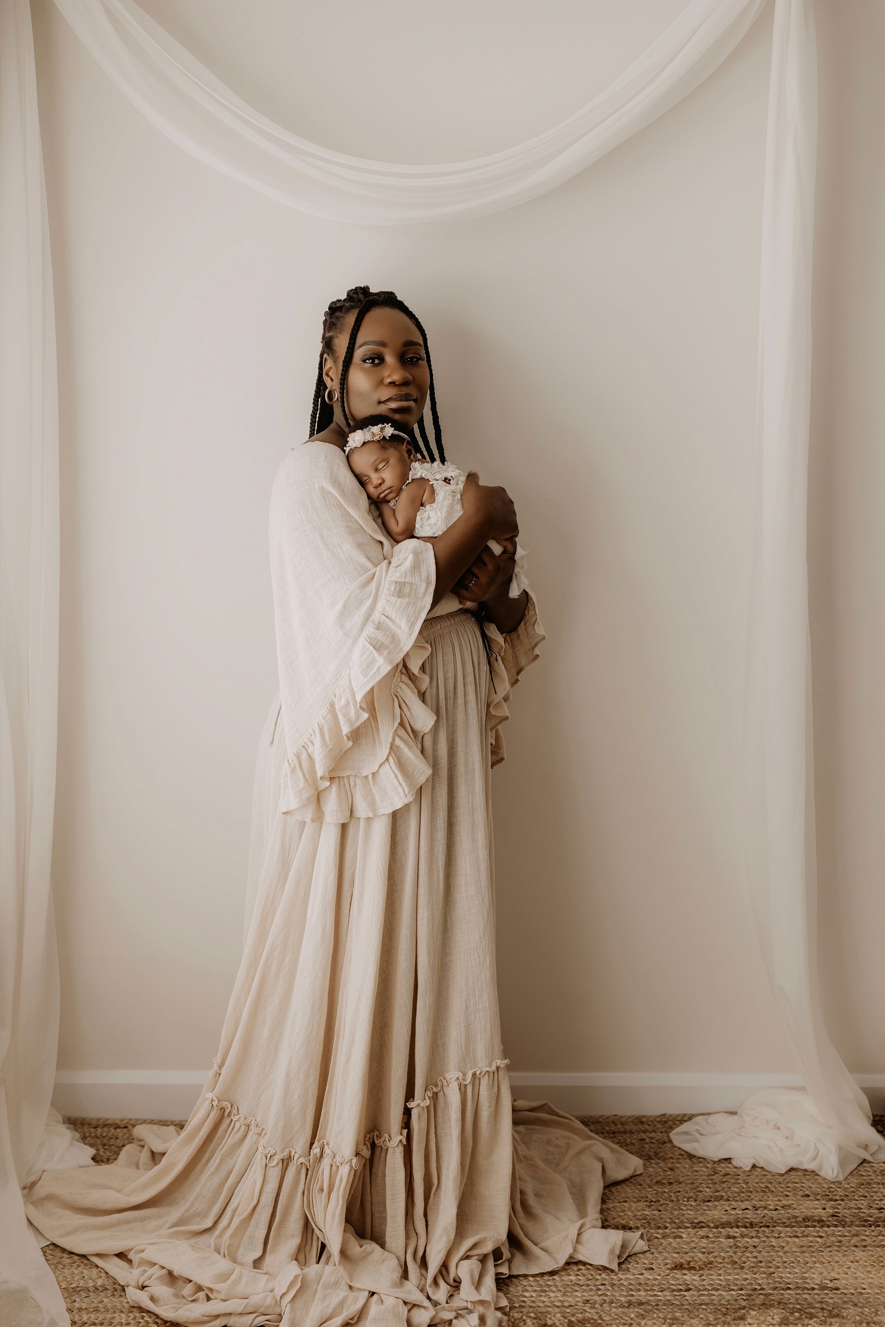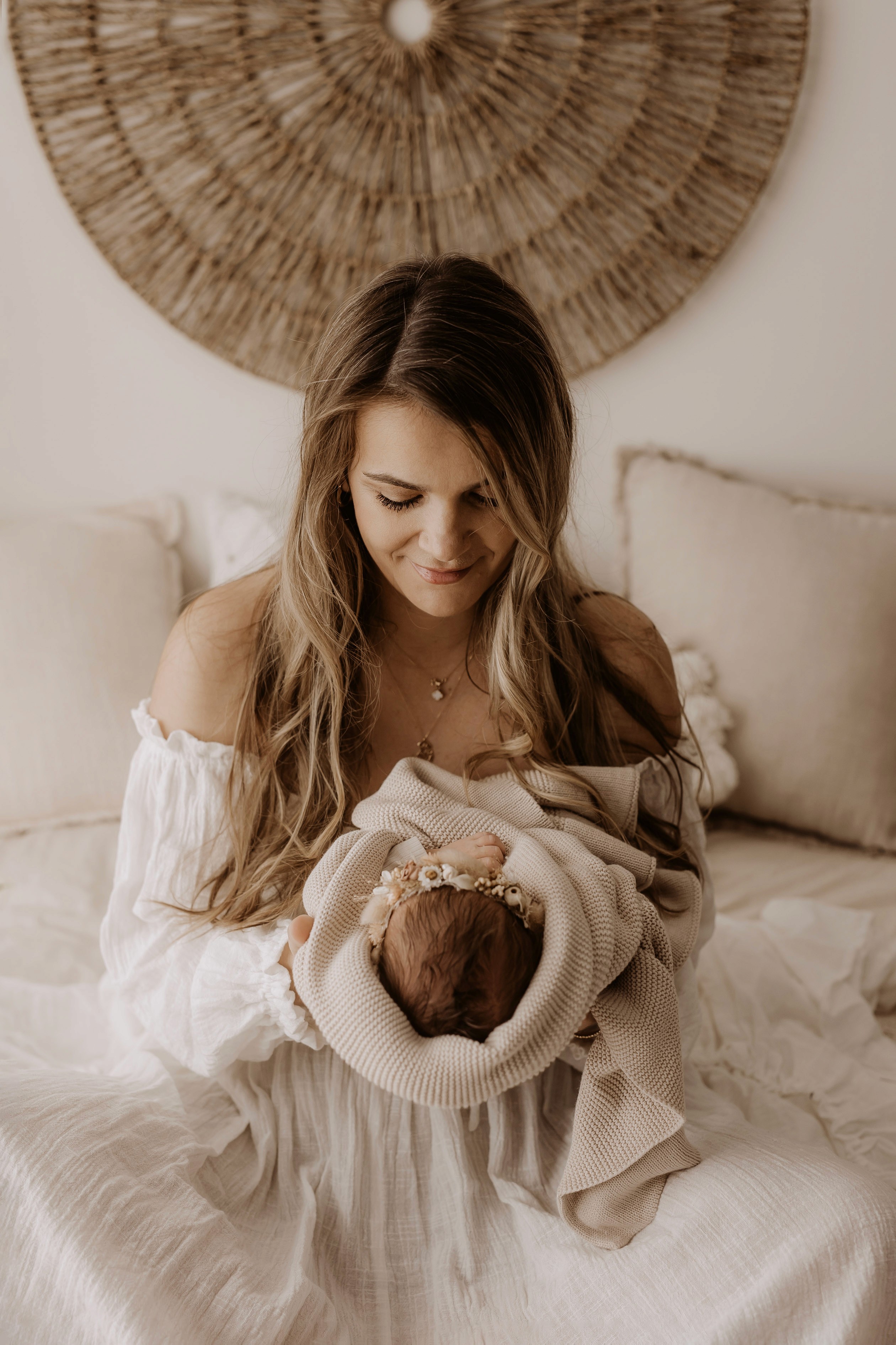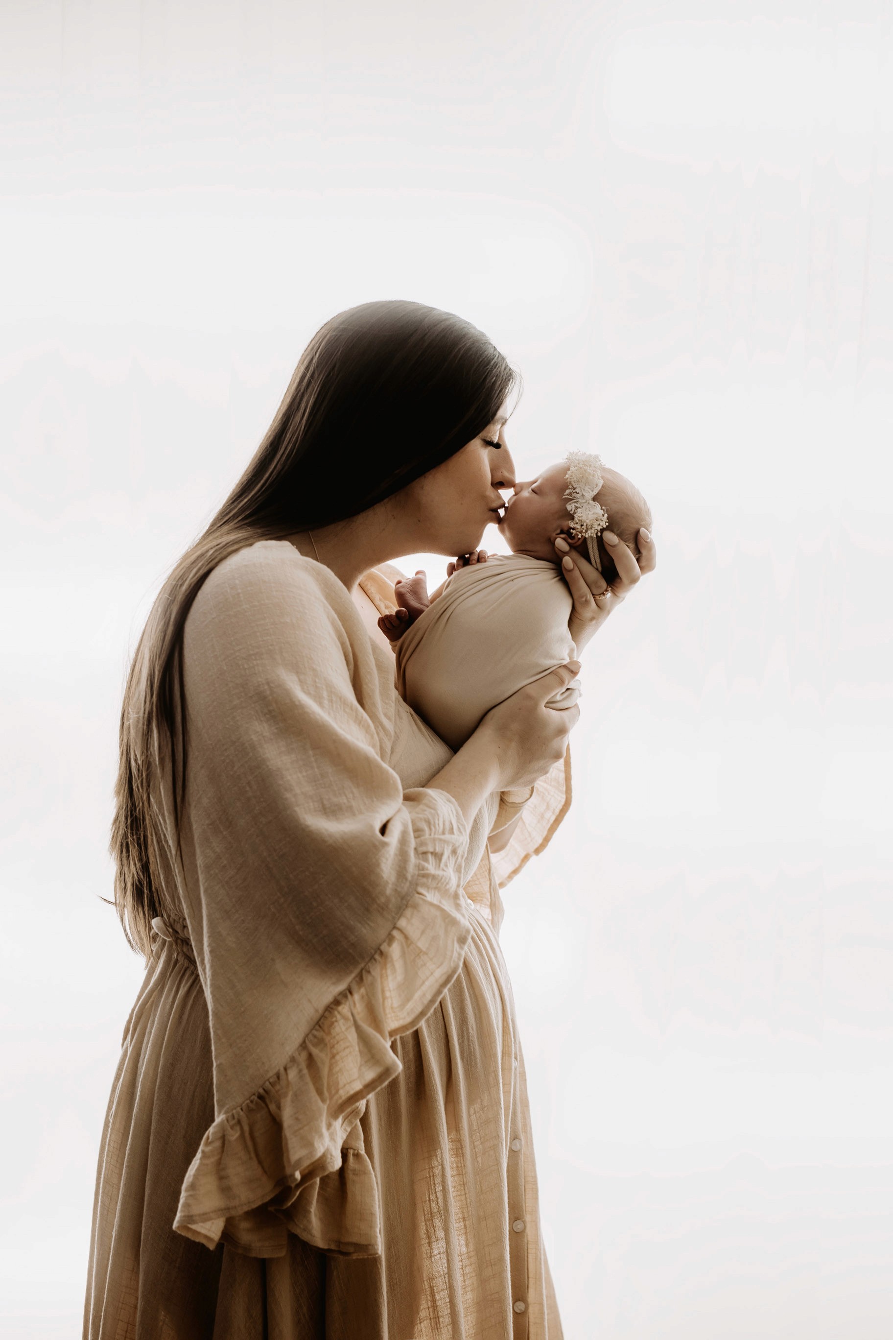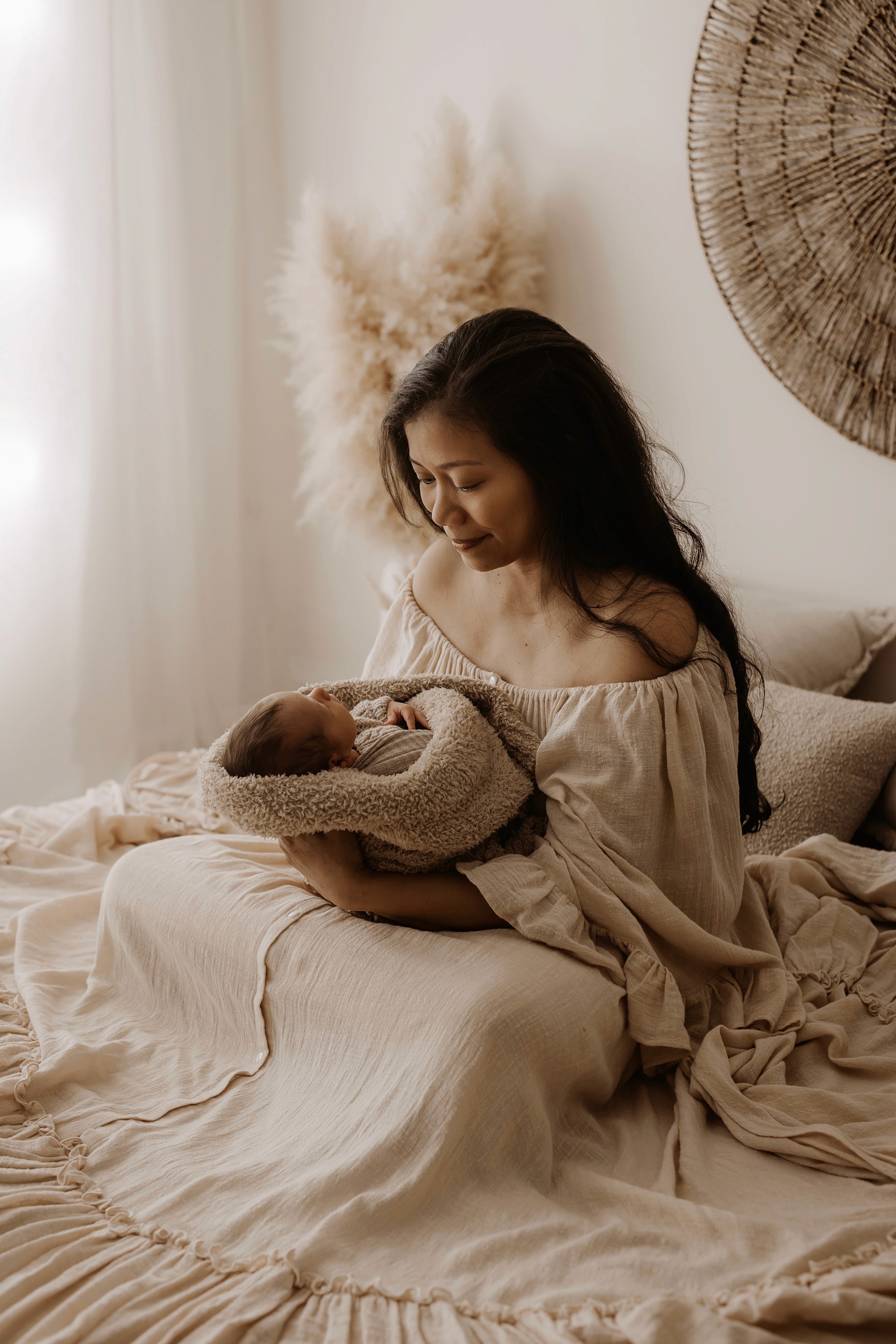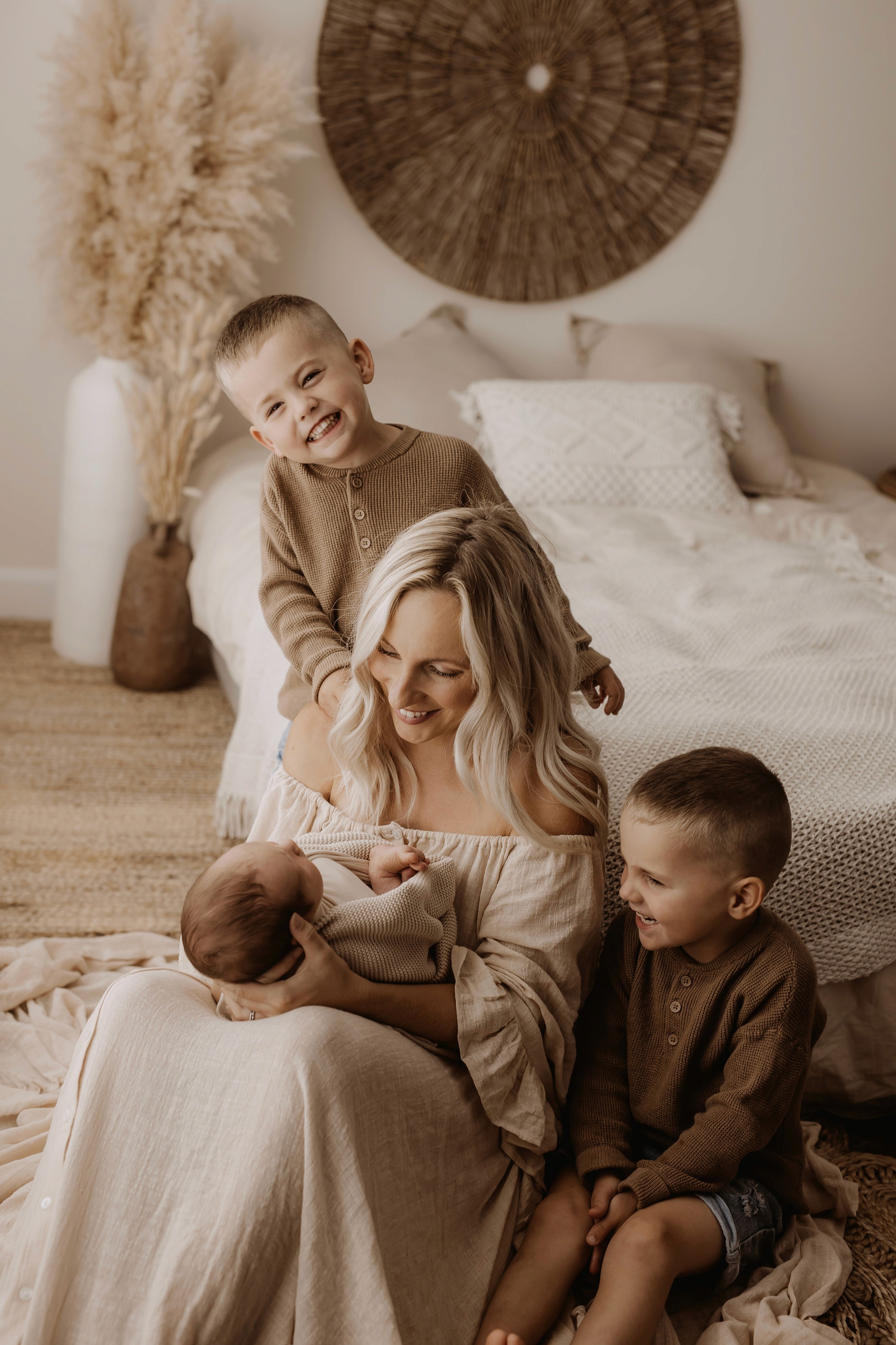 My style is a beautifully balanced blend of posed and lifestyle photography. My lifestyle space for newborn photos is decorated in earthy muted neutral tones with boho florals. To match this vibe I provide neutral baby outfits, headbands, wraps and blankets. Not to mention the most incredible selection of dresses for mamas and lots of options for children! I want you to walk away having had a wonderful, stress-free experience. I am here for the laughs and chats and I promise to make you feel comfortable!