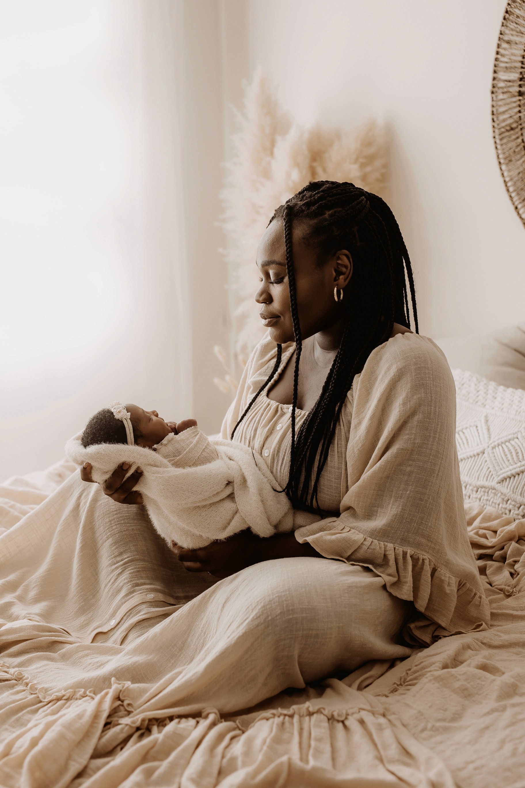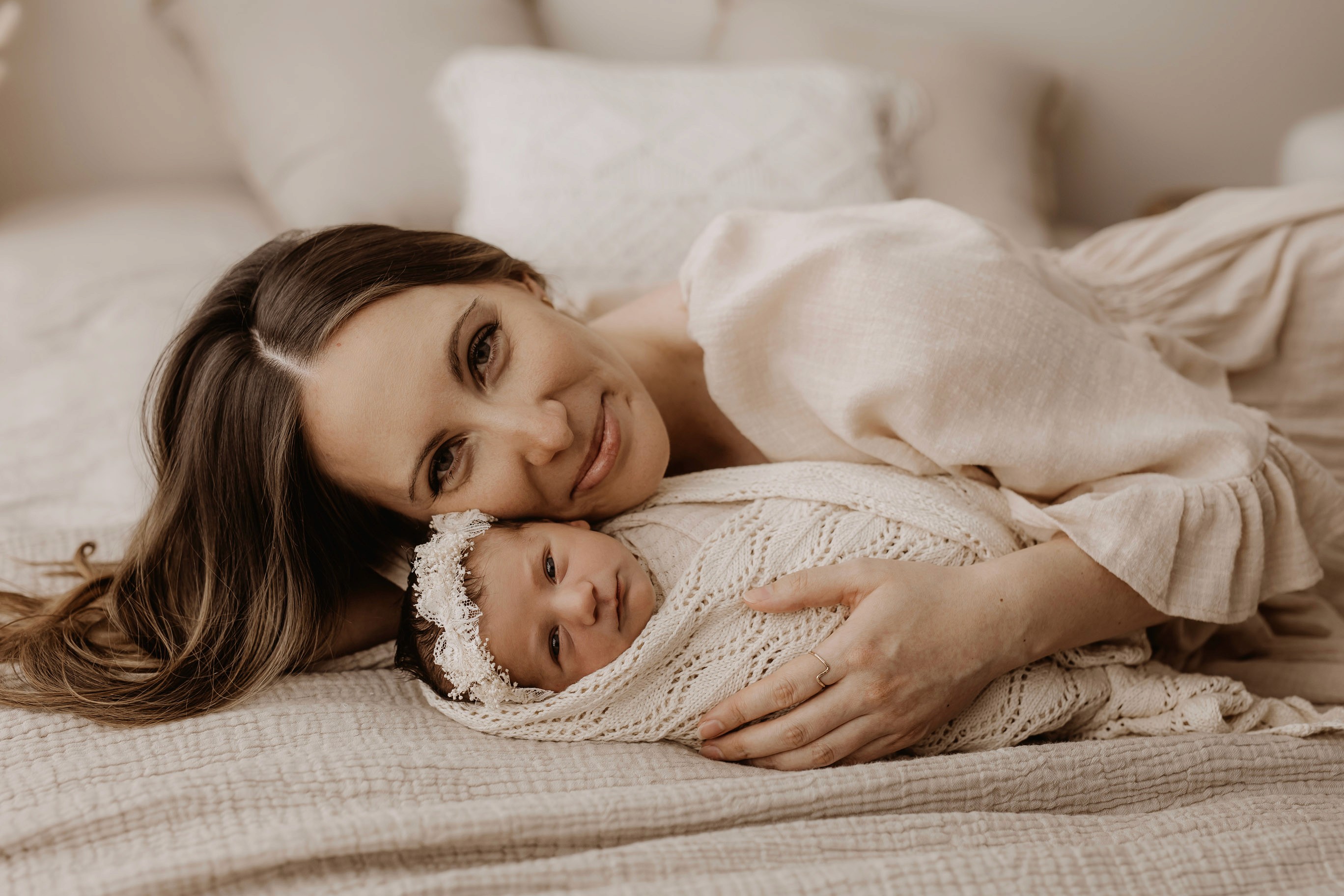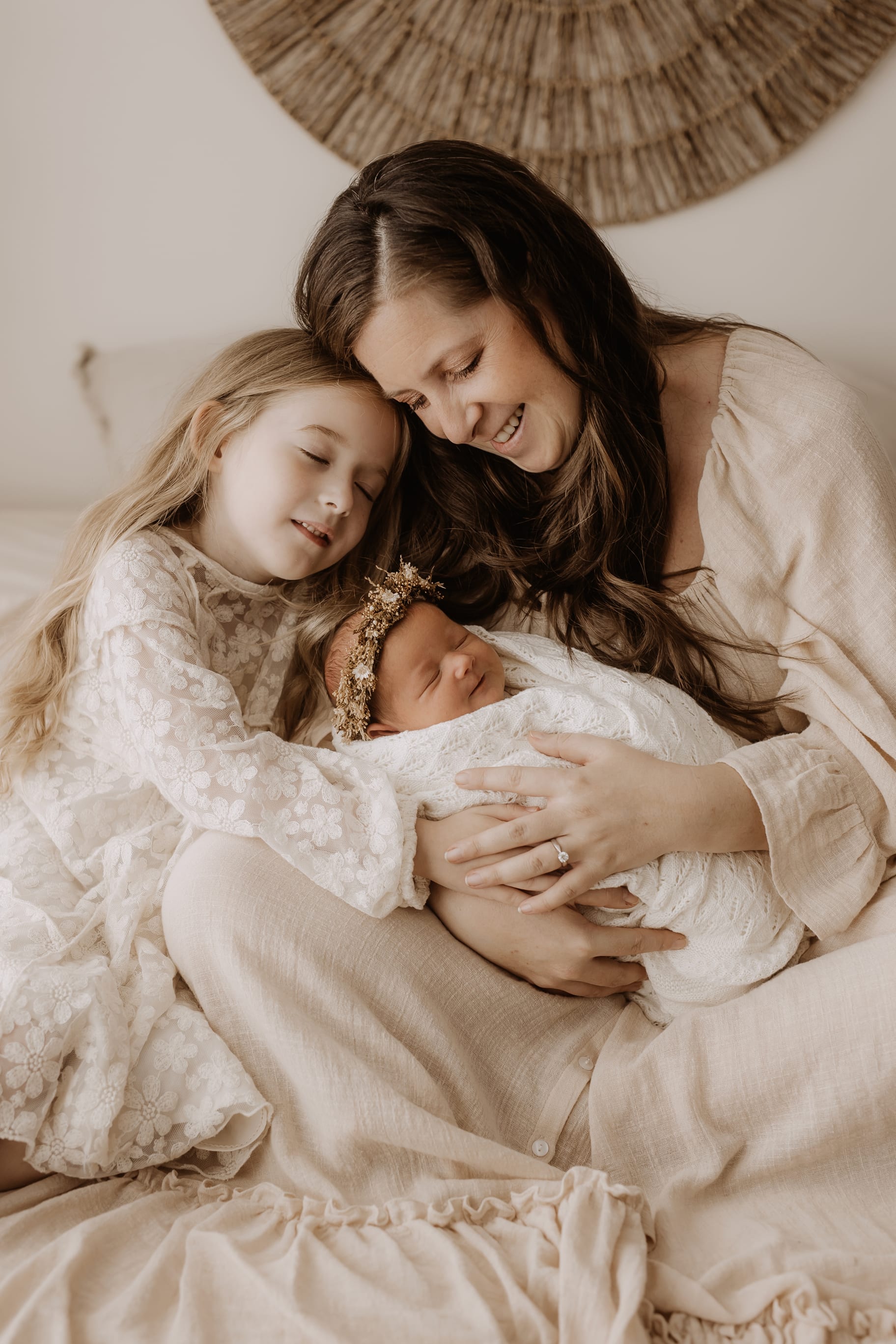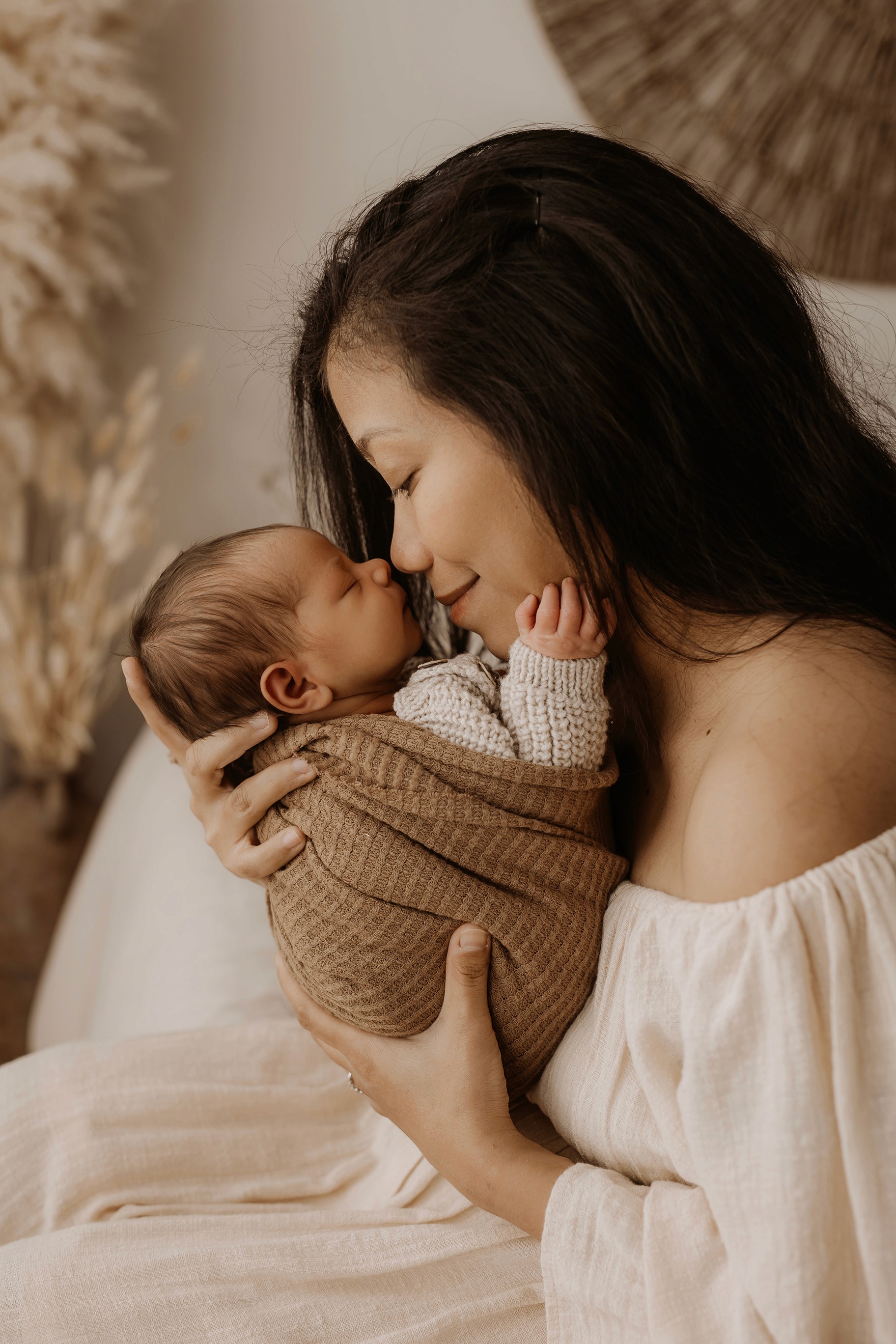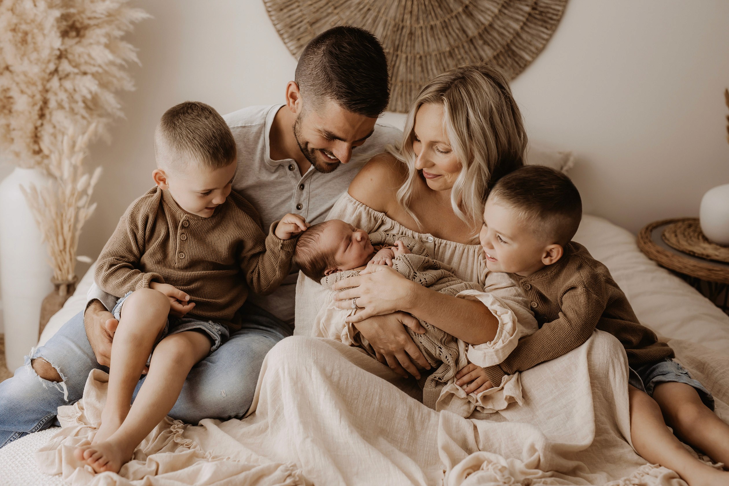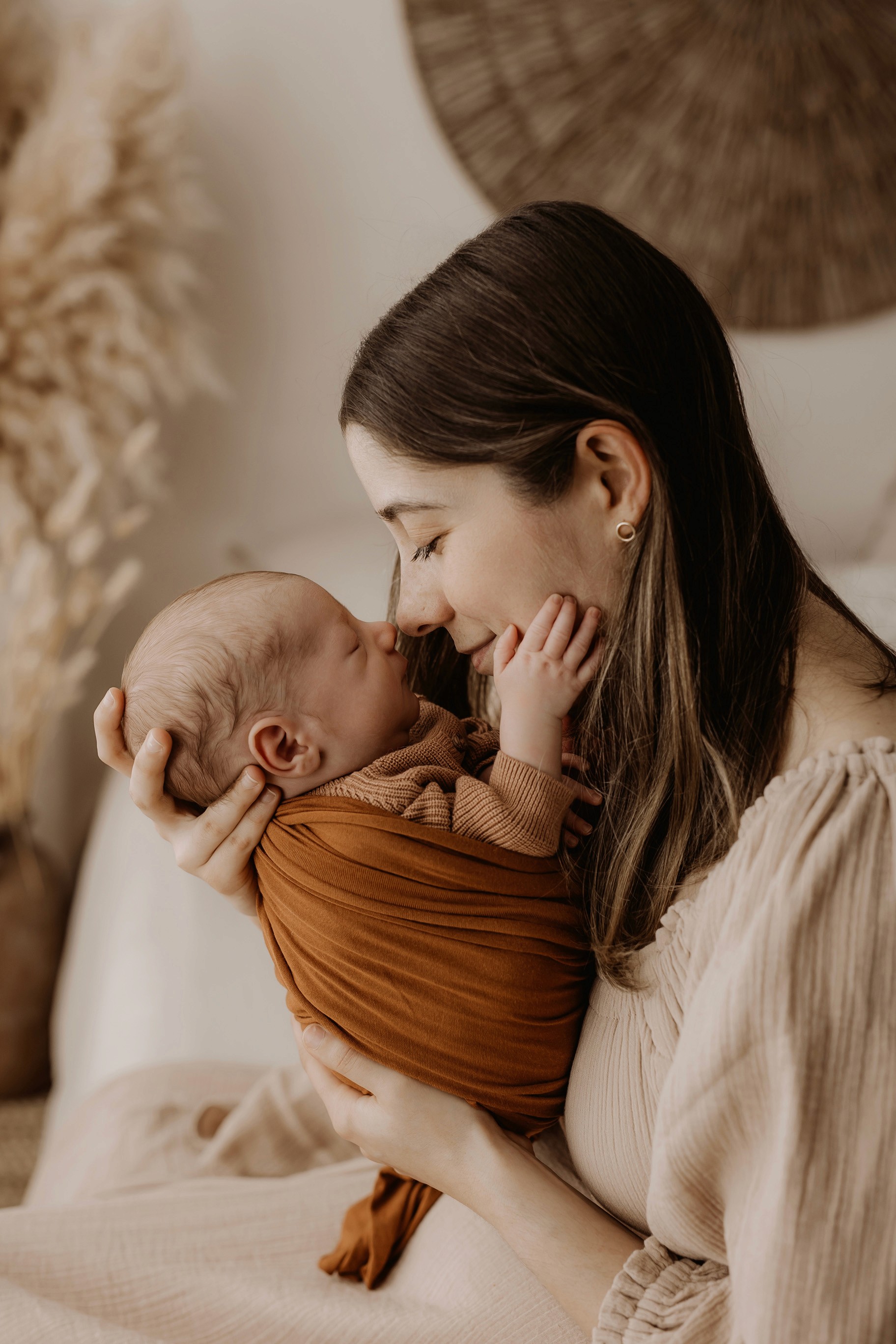 My style is a beautifully balanced blend of posed and lifestyle photography. My lifestyle space for newborn photos is decorated in earthy muted neutral tones with boho florals. To match this vibe I provide neutral baby outfits, headbands, wraps and blankets. Not to mention the most incredible selection of dresses for mamas and lots of options for children! I want you to walk away having had a wonderful, stress-free experience. I am here for the laughs and chats and I promise to make you feel comfortable!