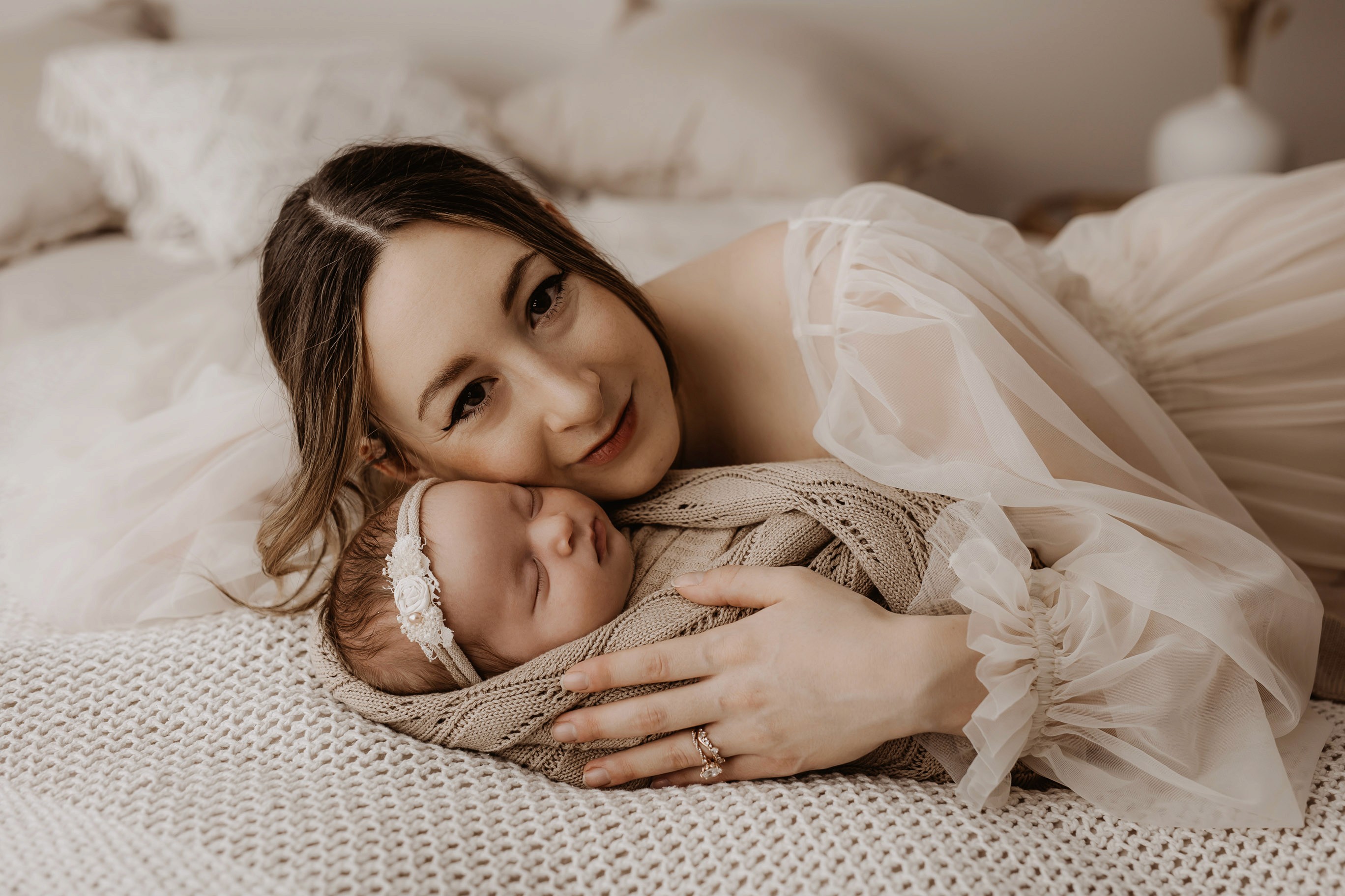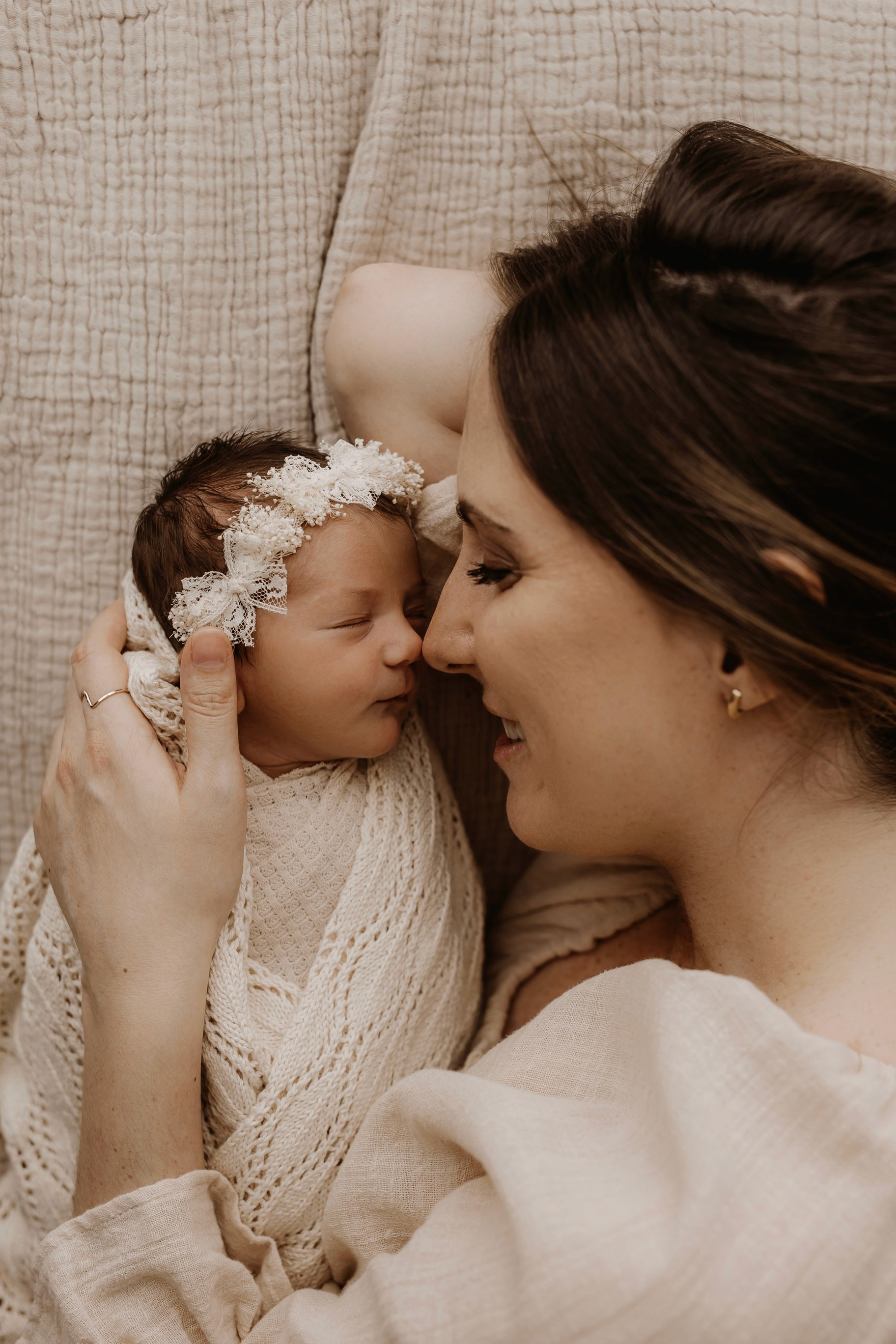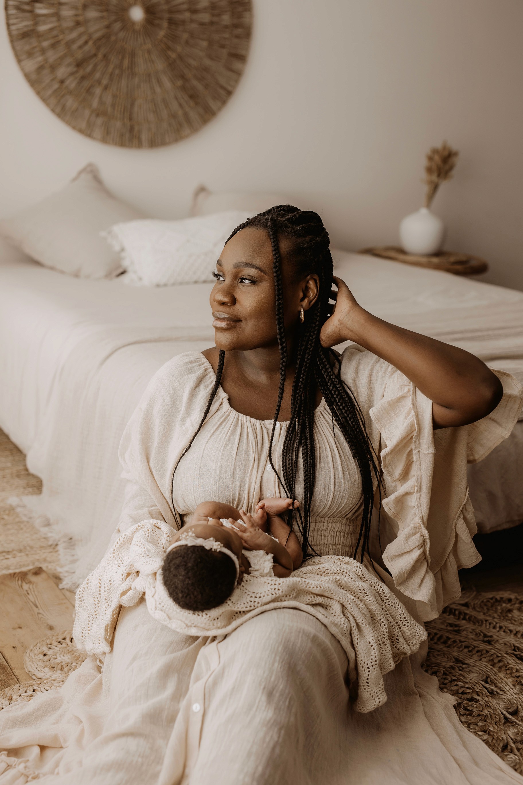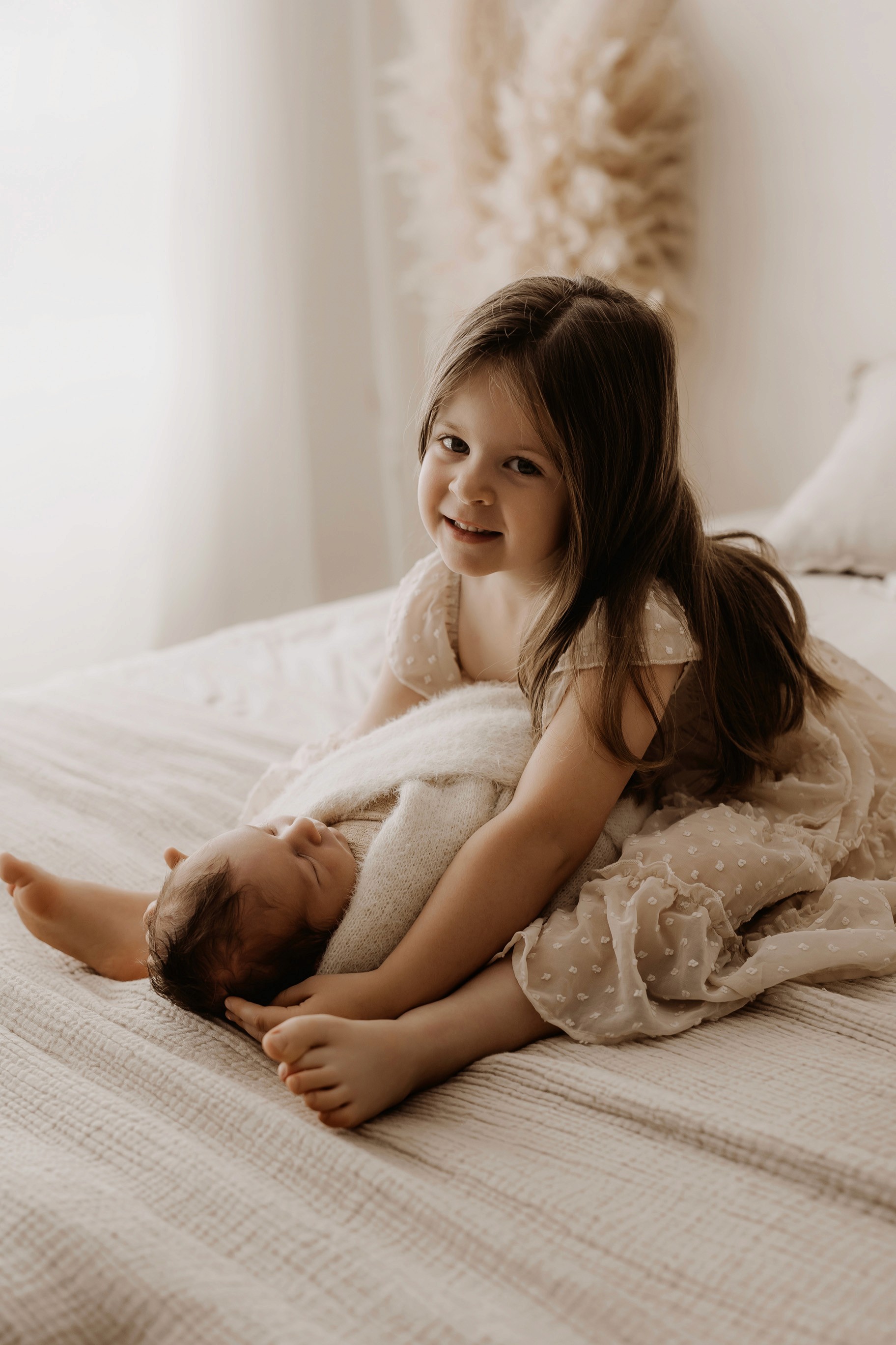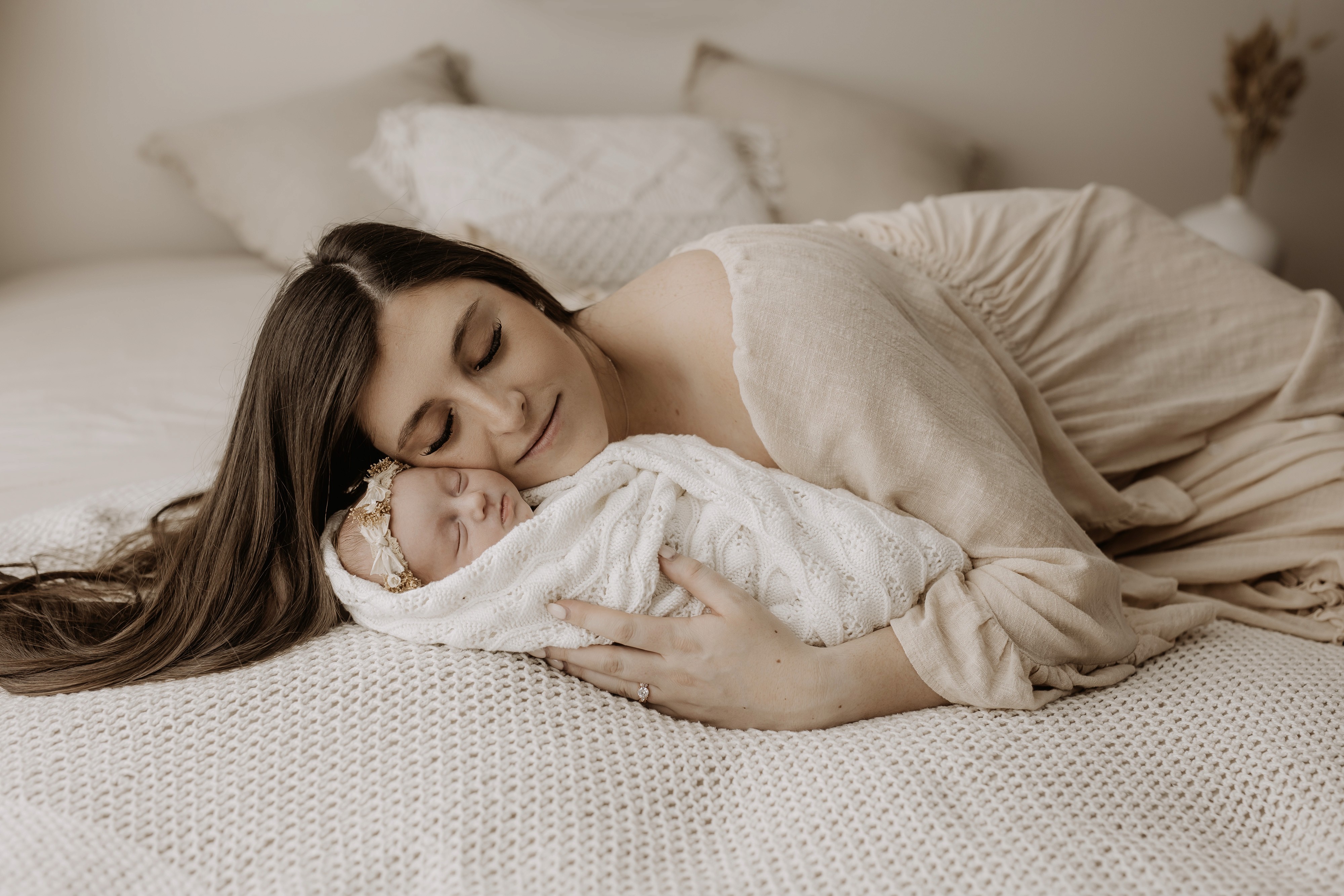 My style is a beautifully balanced blend of posed and lifestyle photography. My lifestyle space for newborn photos is decorated in earthy muted neutral tones with boho florals. To match this vibe I provide neutral baby outfits, headbands, wraps and blankets. Not to mention the most incredible selection of dresses for mamas and lots of options for children! I want you to walk away having had a wonderful, stress-free experience. I am here for the laughs and chats and I promise to make you feel comfortable!