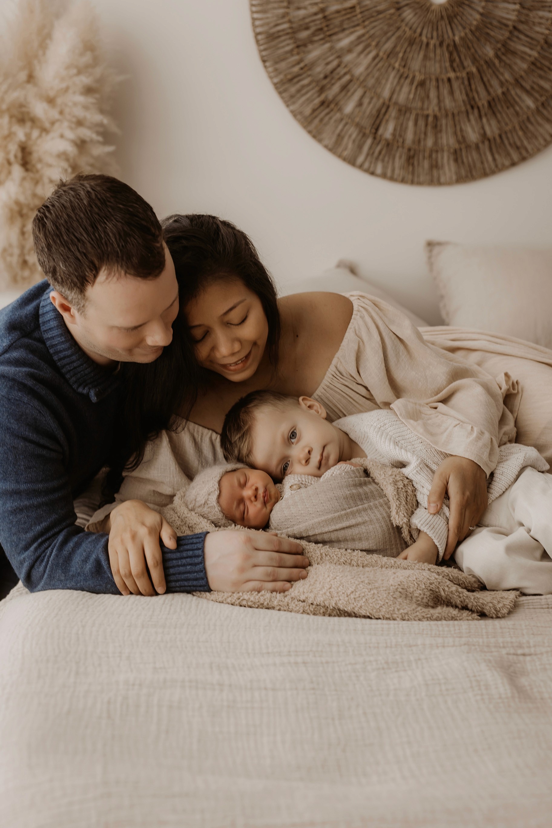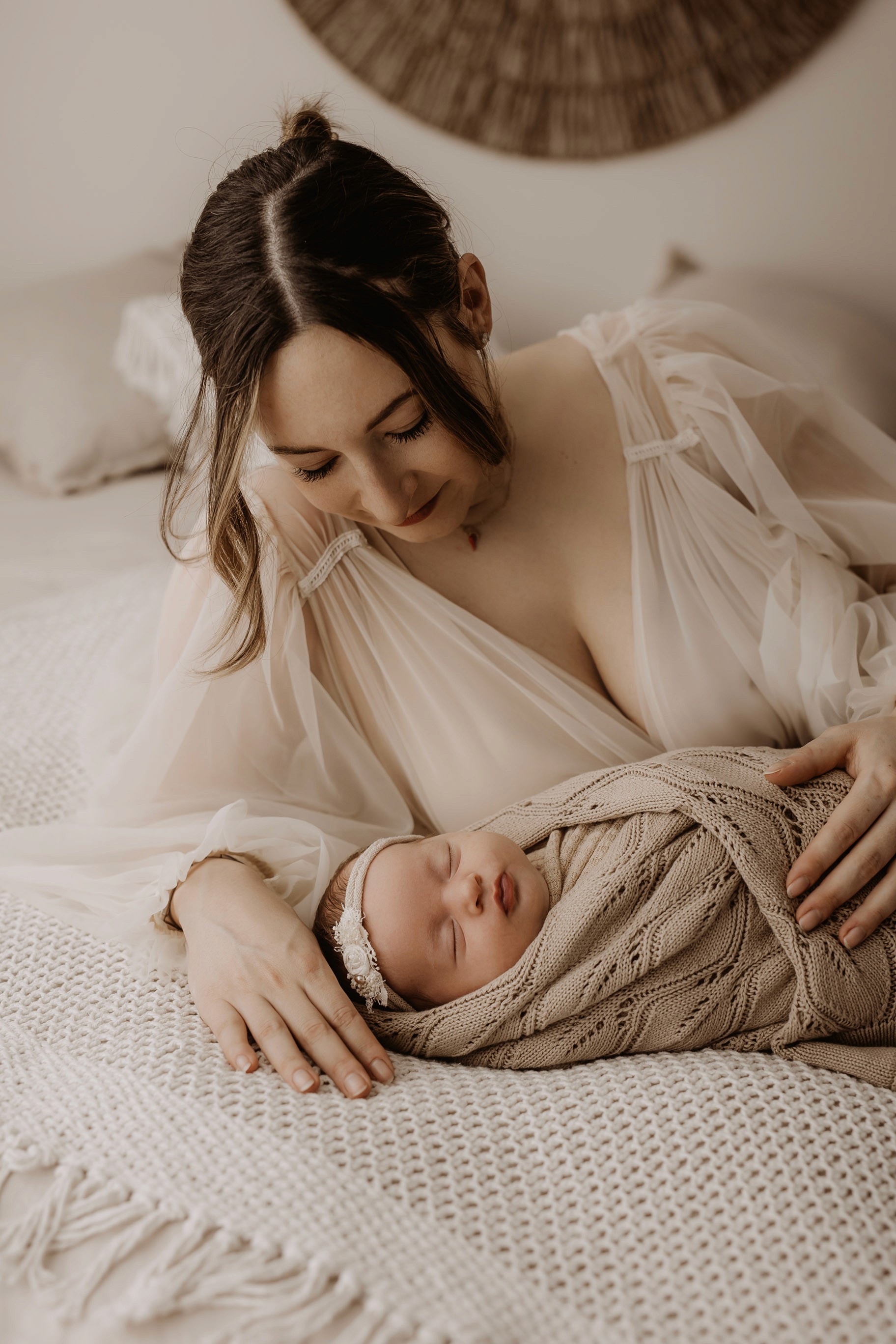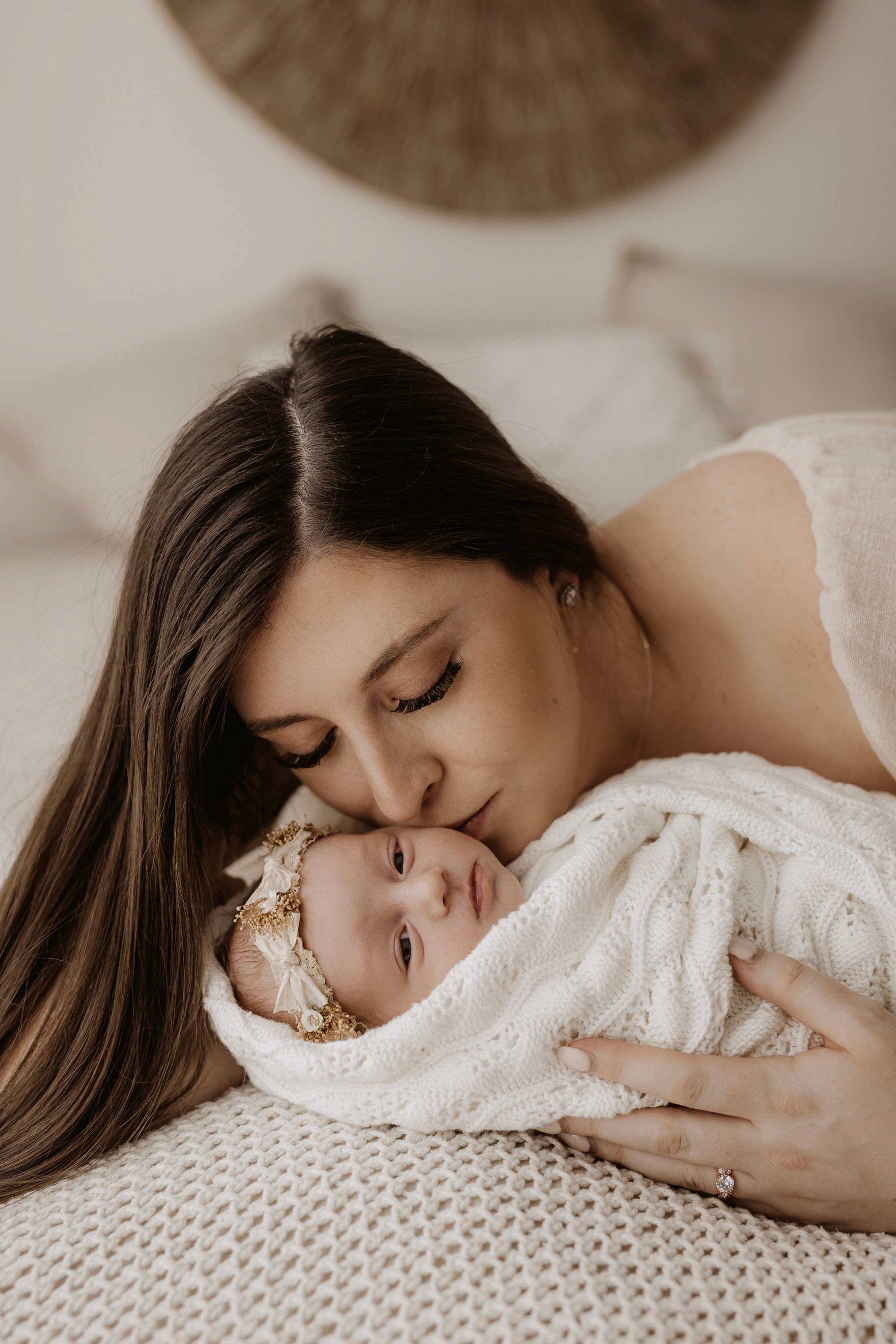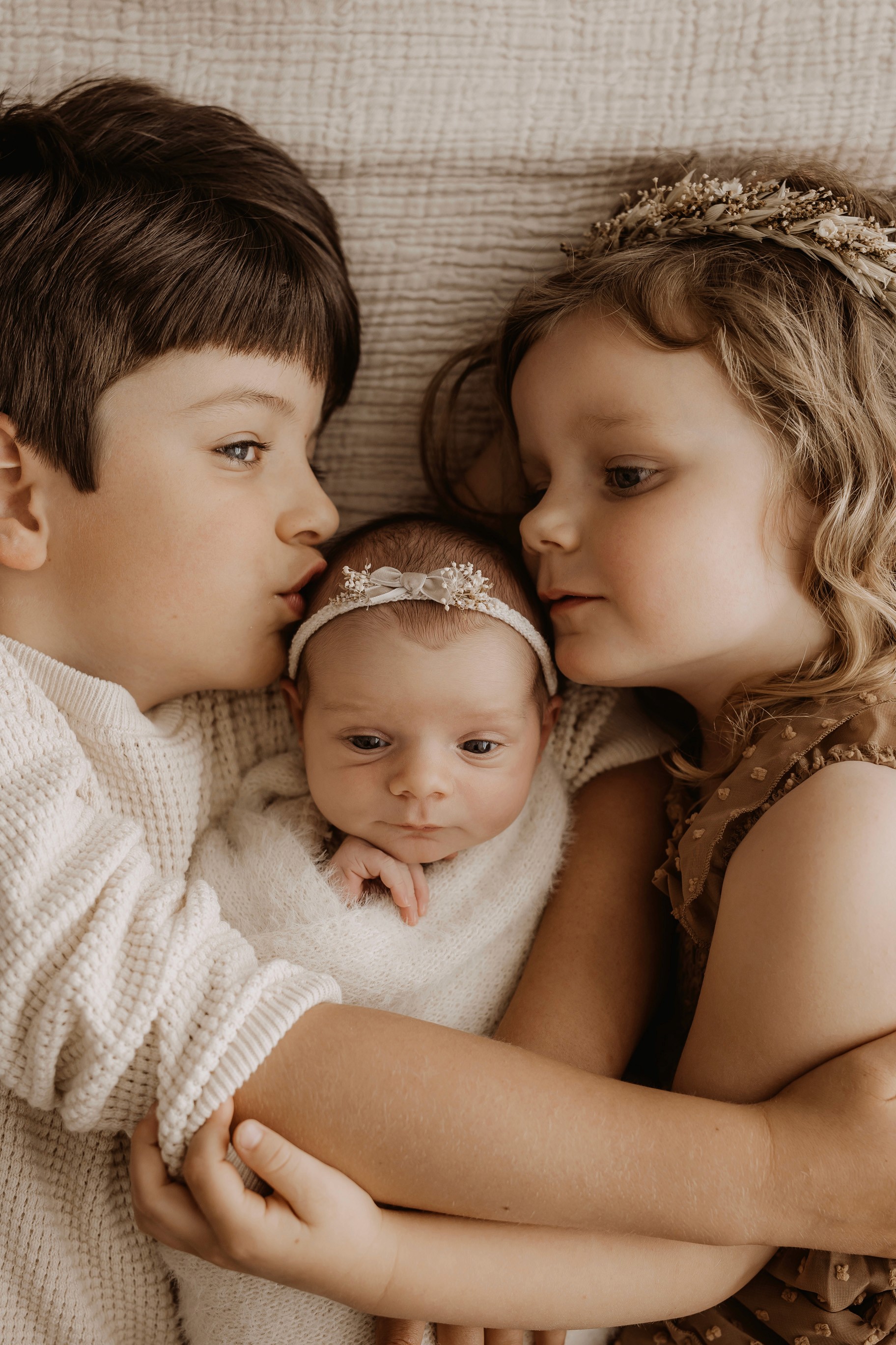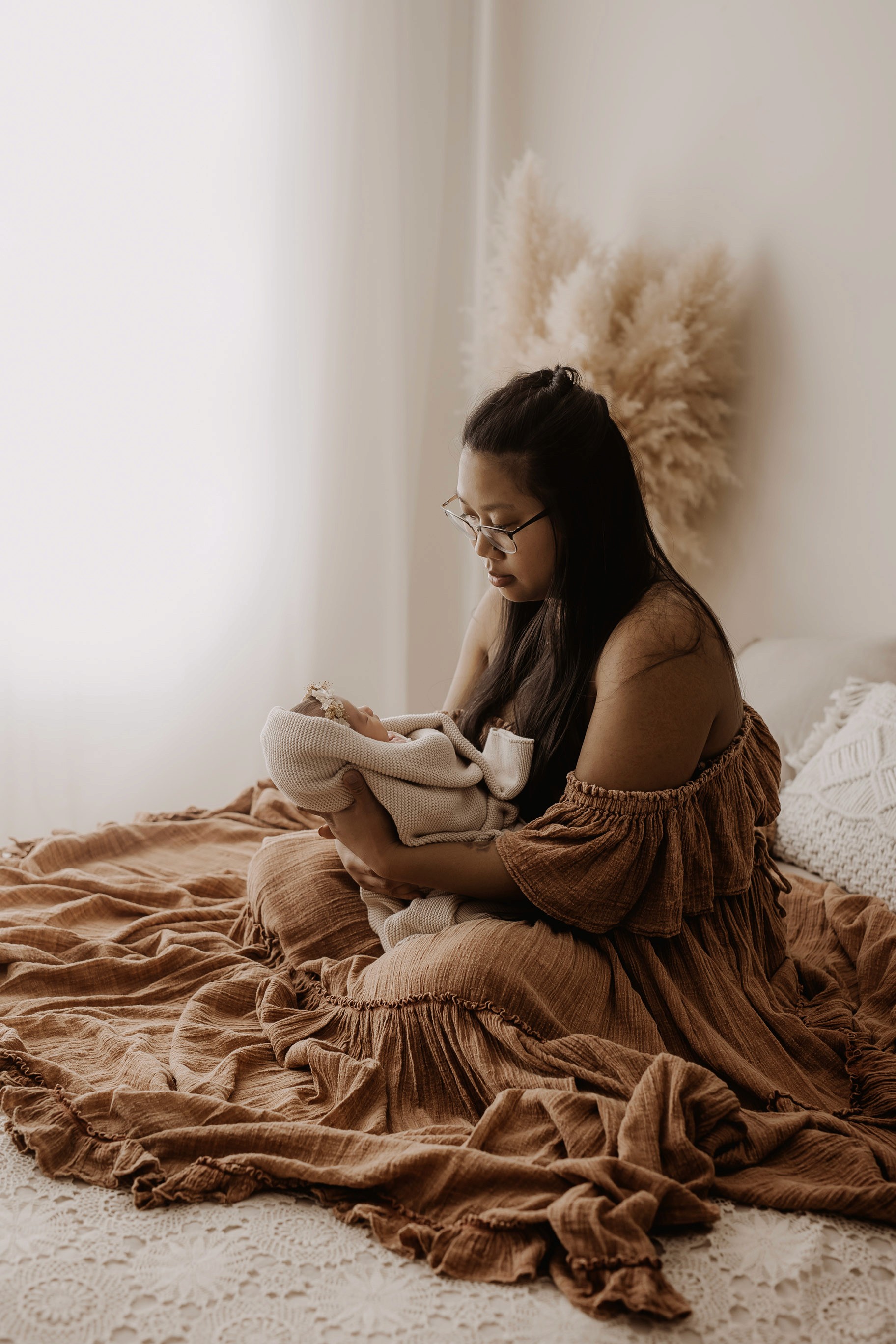 My style is a beautifully balanced blend of posed and lifestyle photography. My lifestyle space for newborn photos is decorated in earthy muted neutral tones with boho florals. To match this vibe I provide neutral baby outfits, headbands, wraps and blankets. Not to mention the most incredible selection of dresses for mamas and lots of options for children! I want you to walk away having had a wonderful, stress-free experience. I am here for the laughs and chats and I promise to make you feel comfortable!