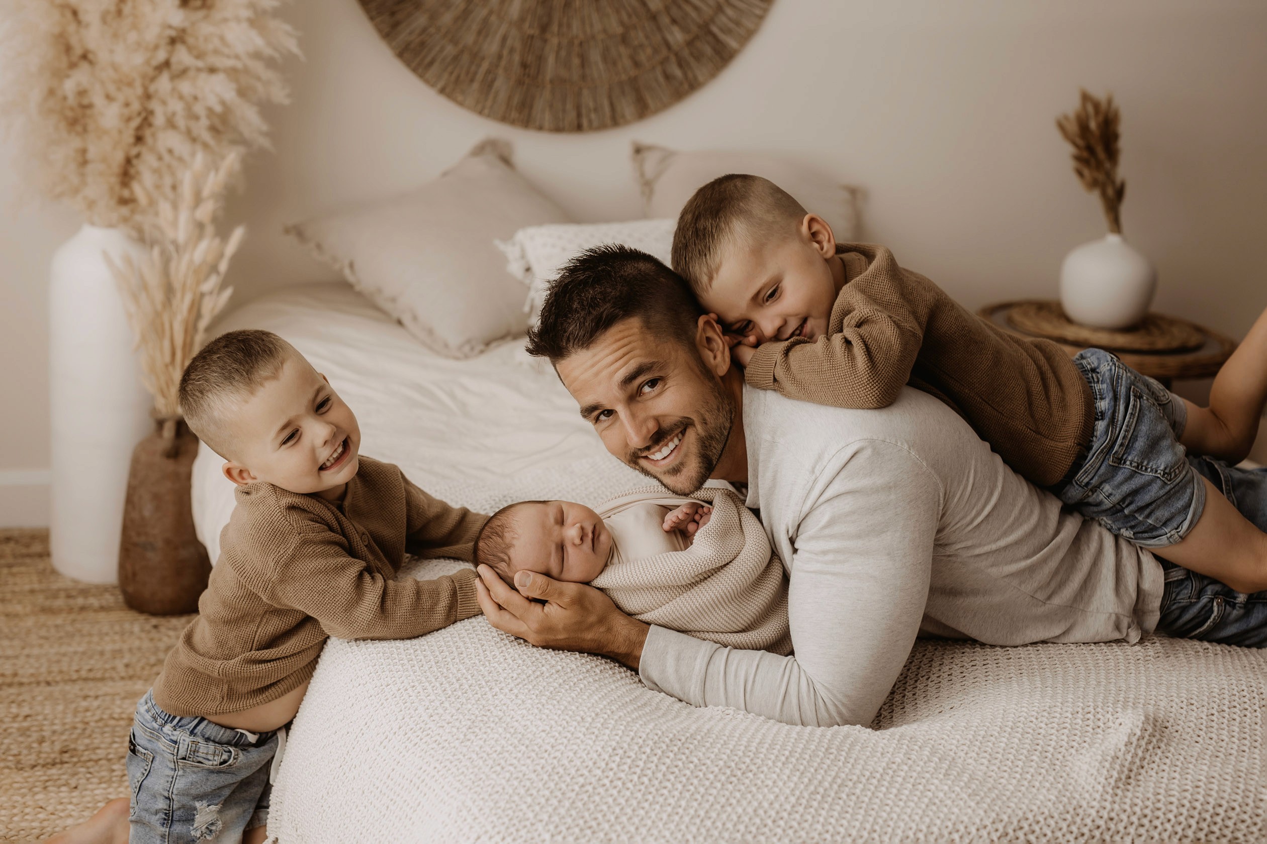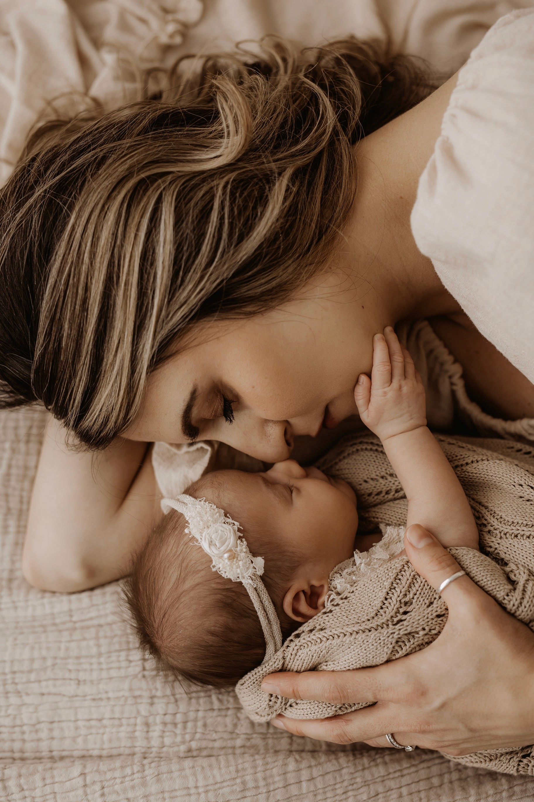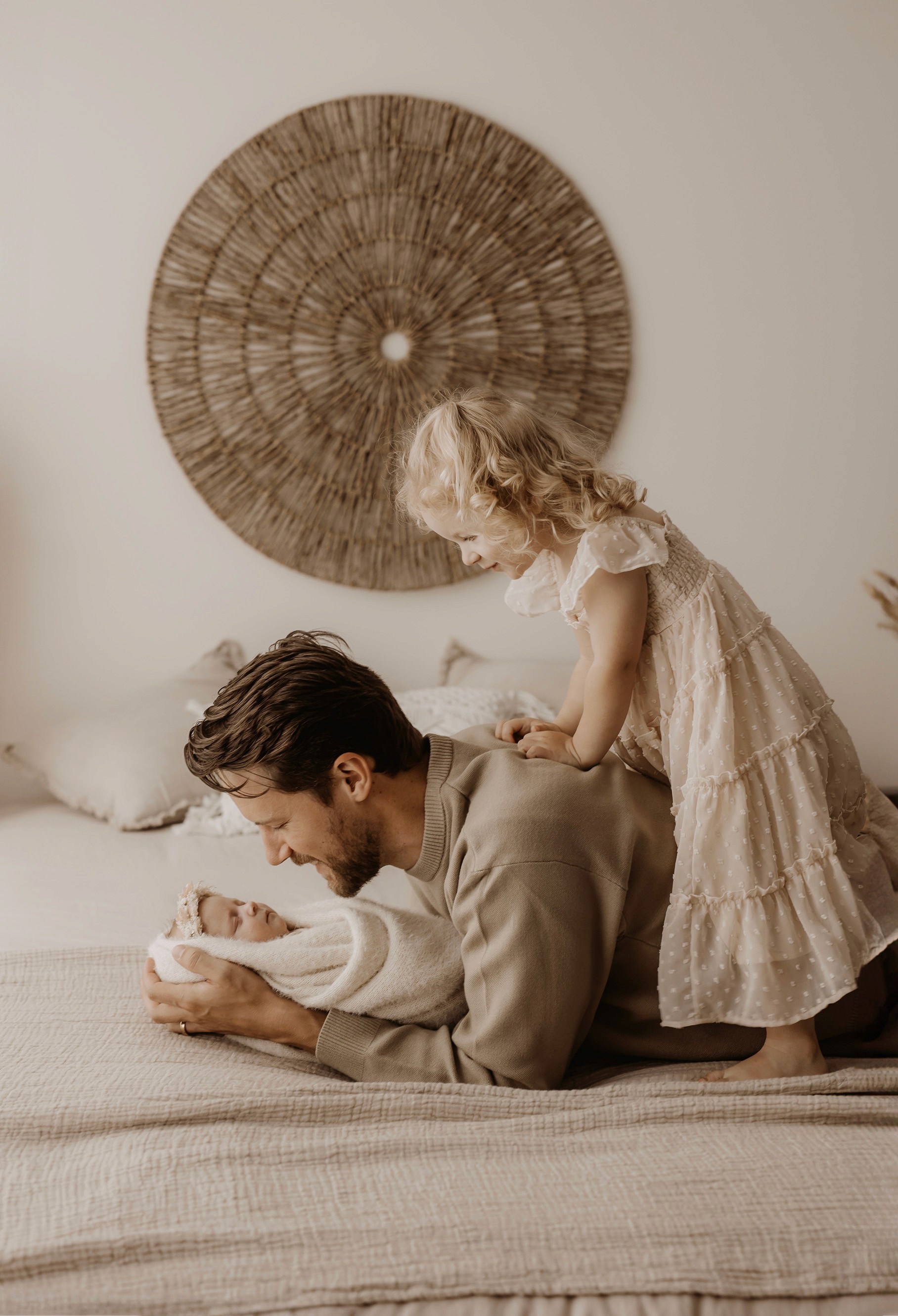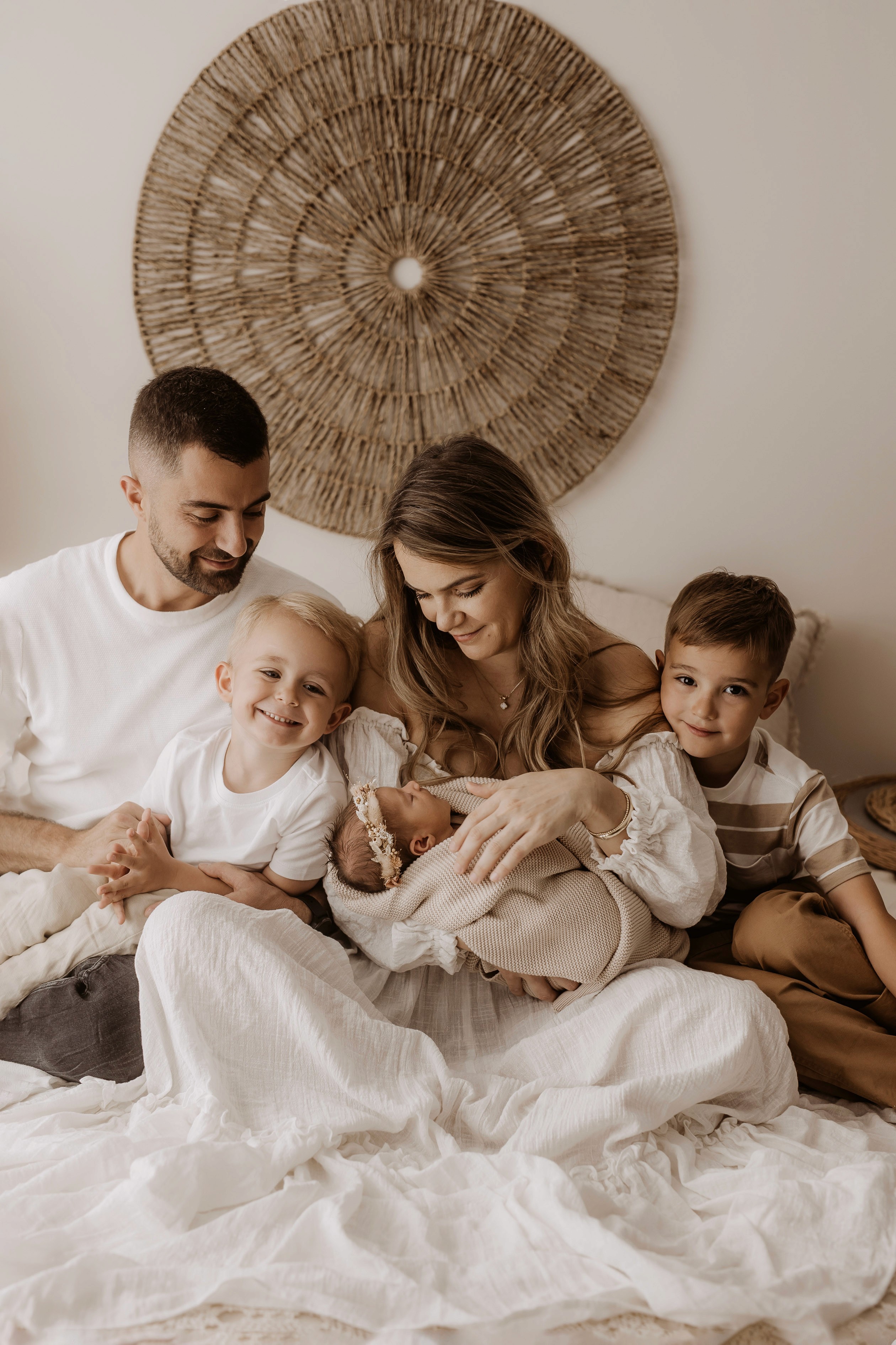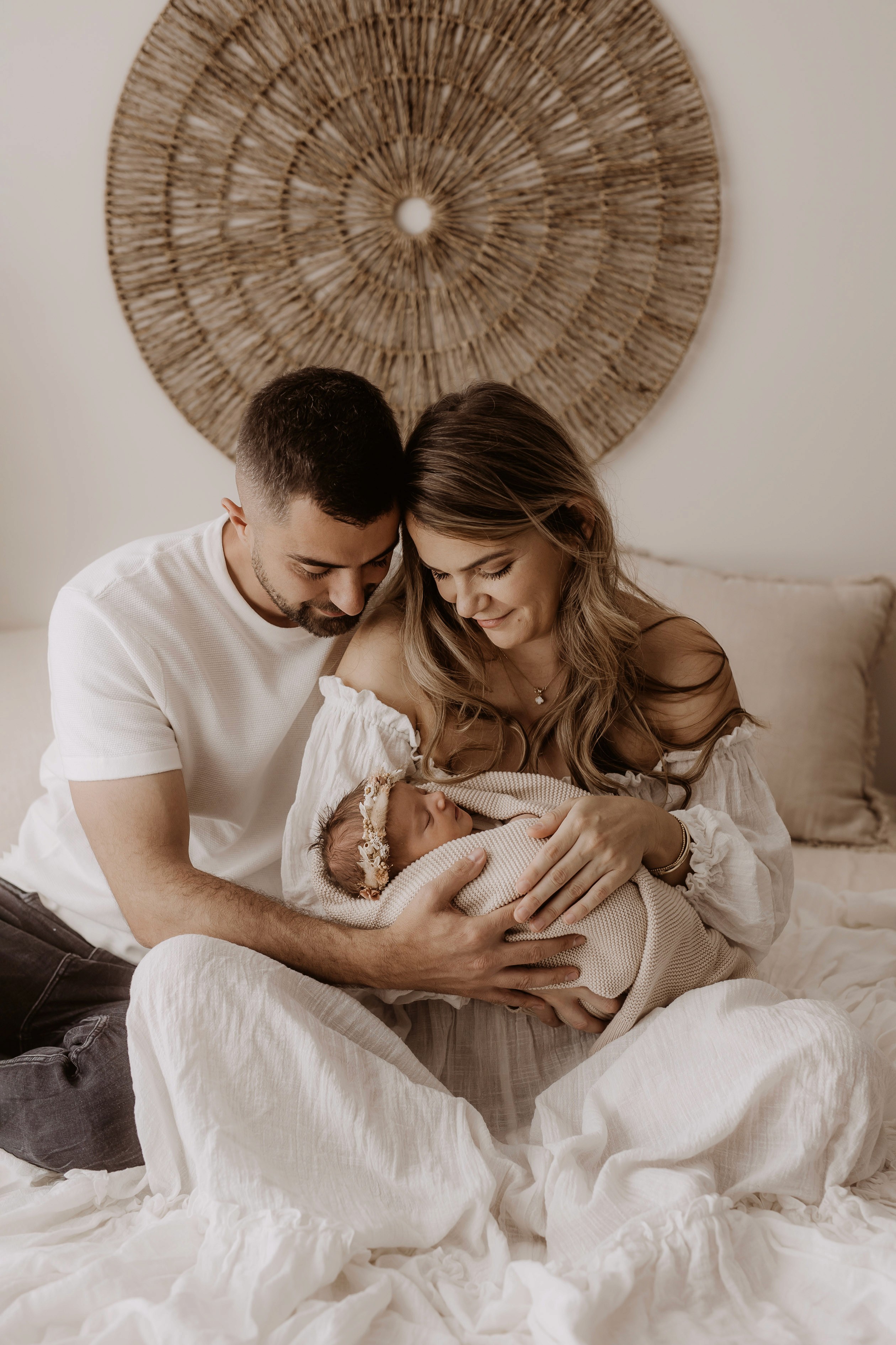 My style is a beautifully balanced blend of posed and lifestyle photography. My lifestyle space for newborn photos is decorated in earthy muted neutral tones with boho florals. To match this vibe I provide neutral baby outfits, headbands, wraps and blankets. Not to mention the most incredible selection of dresses for mamas and lots of options for children! I want you to walk away having had a wonderful, stress-free experience. I am here for the laughs and chats and I promise to make you feel comfortable!