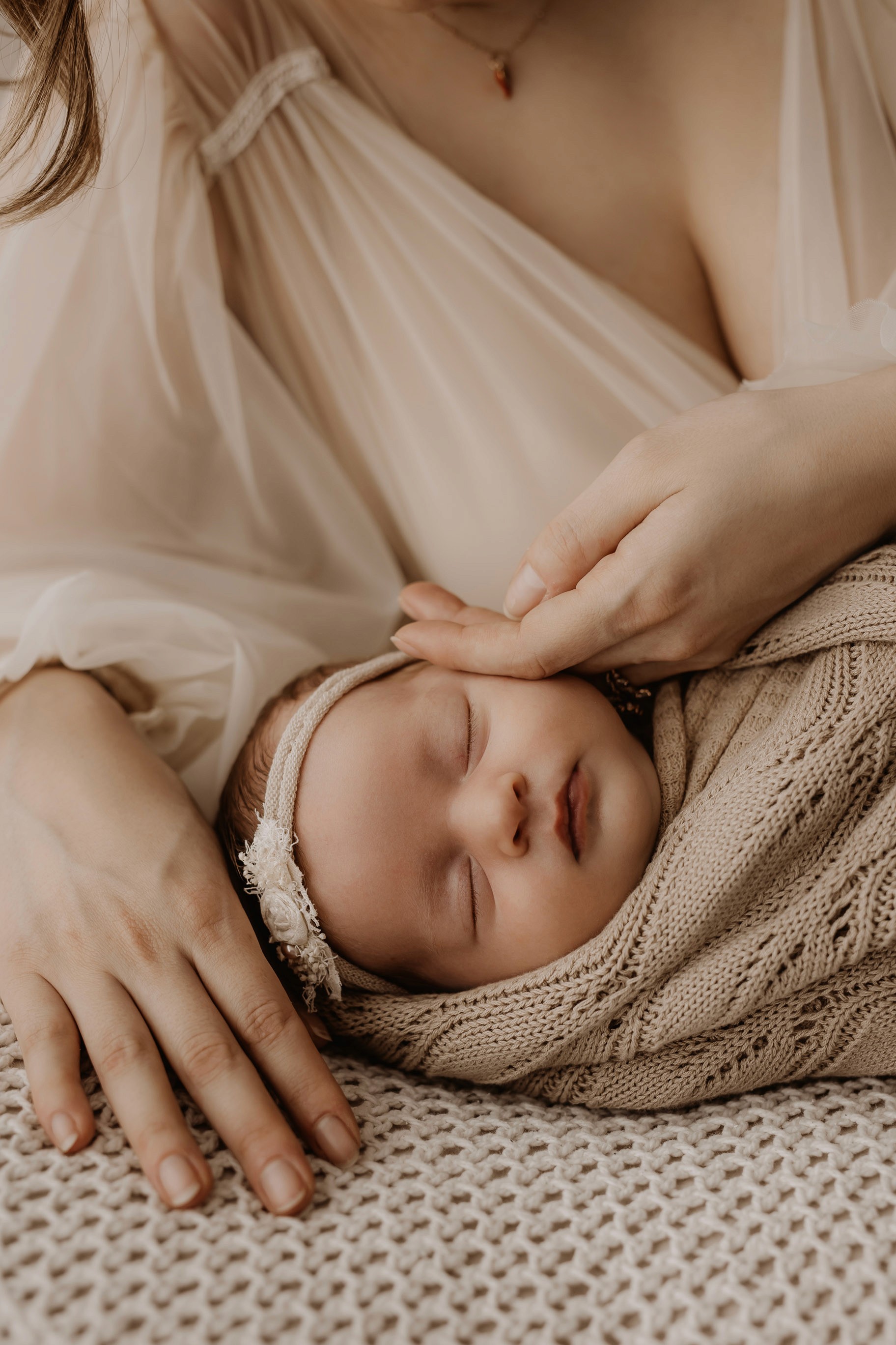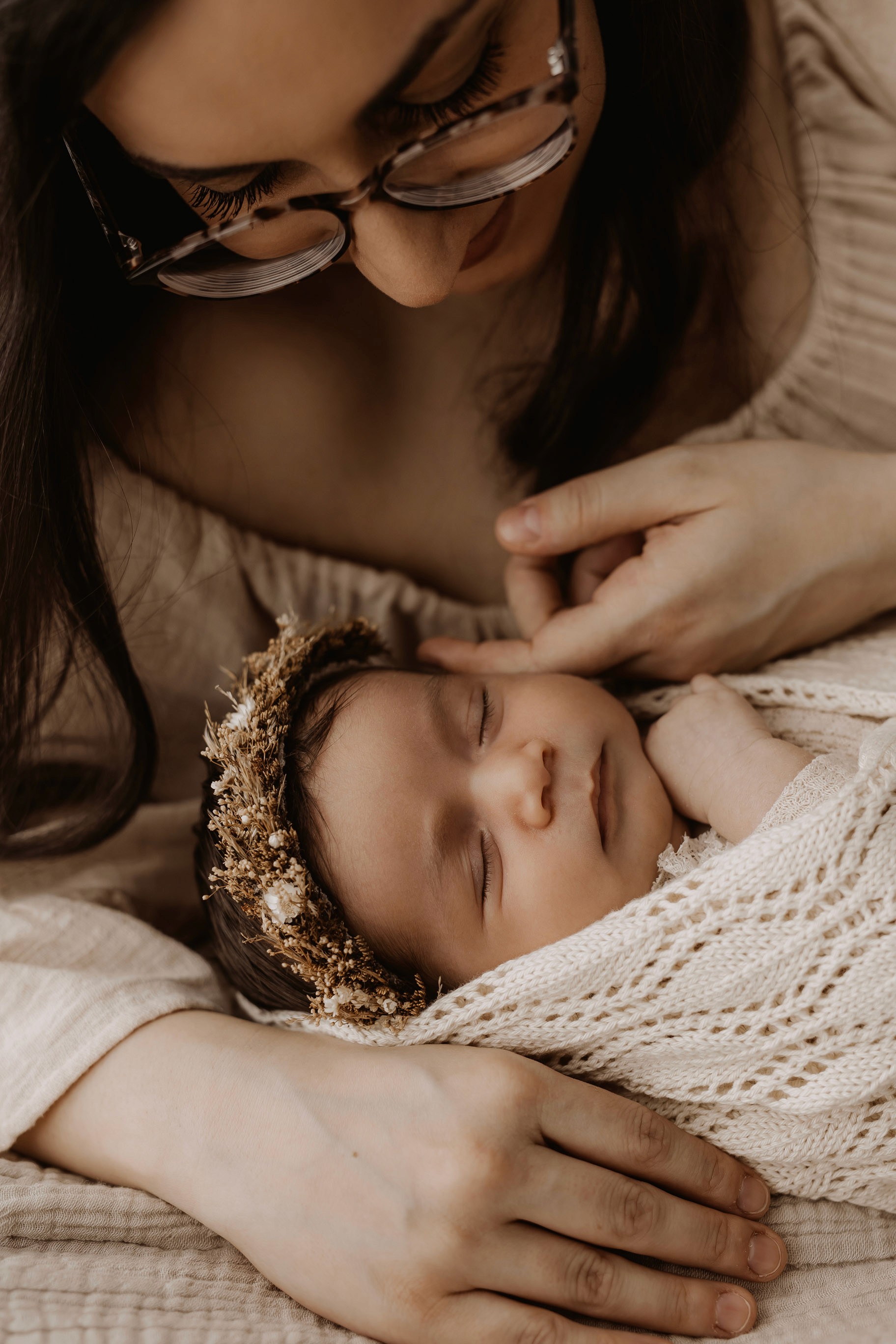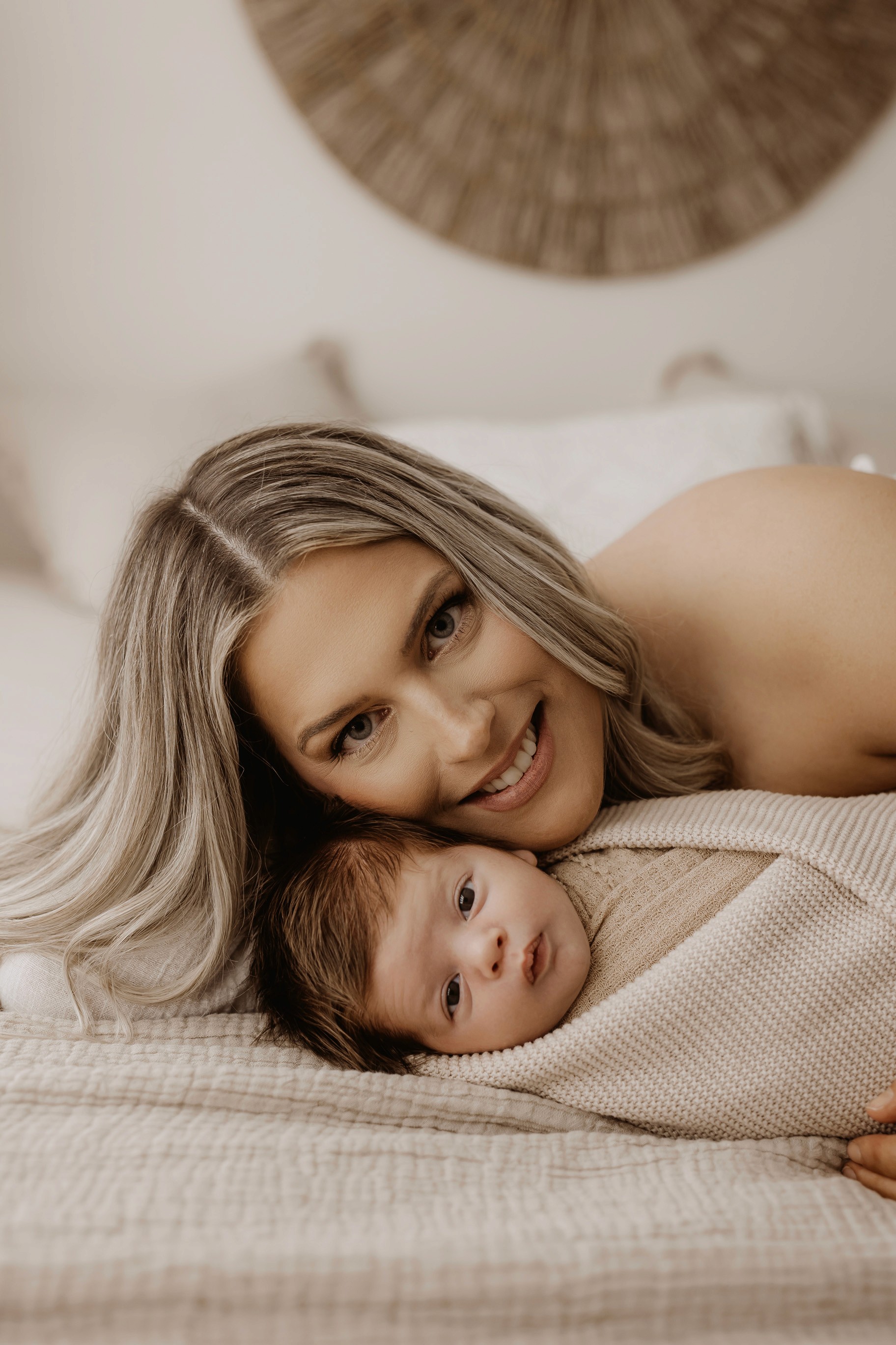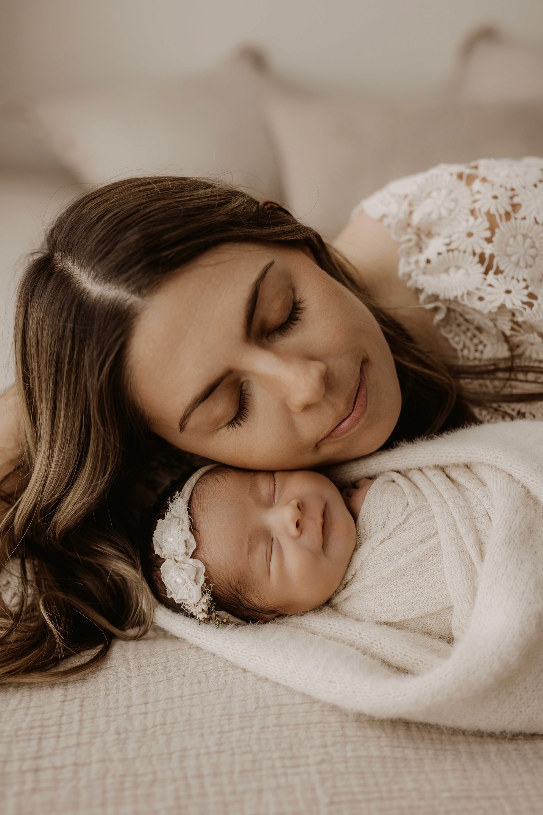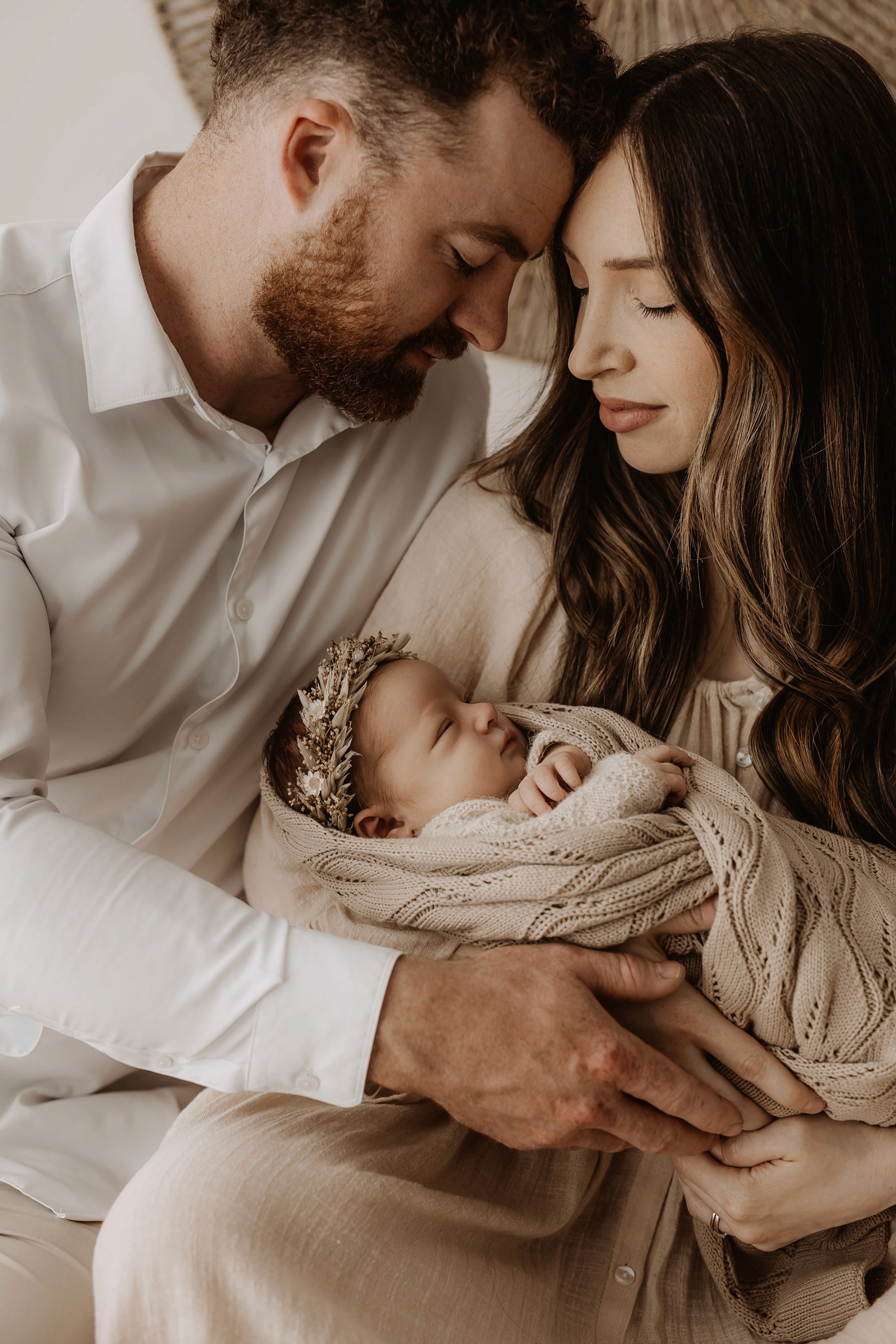 My style is a beautifully balanced blend of posed and lifestyle photography. My lifestyle space for newborn photos is decorated in earthy muted neutral tones with boho florals. To match this vibe I provide neutral baby outfits, headbands, wraps and blankets. Not to mention the most incredible selection of dresses for mamas and lots of options for children! I want you to walk away having had a wonderful, stress-free experience. I am here for the laughs and chats and I promise to make you feel comfortable!