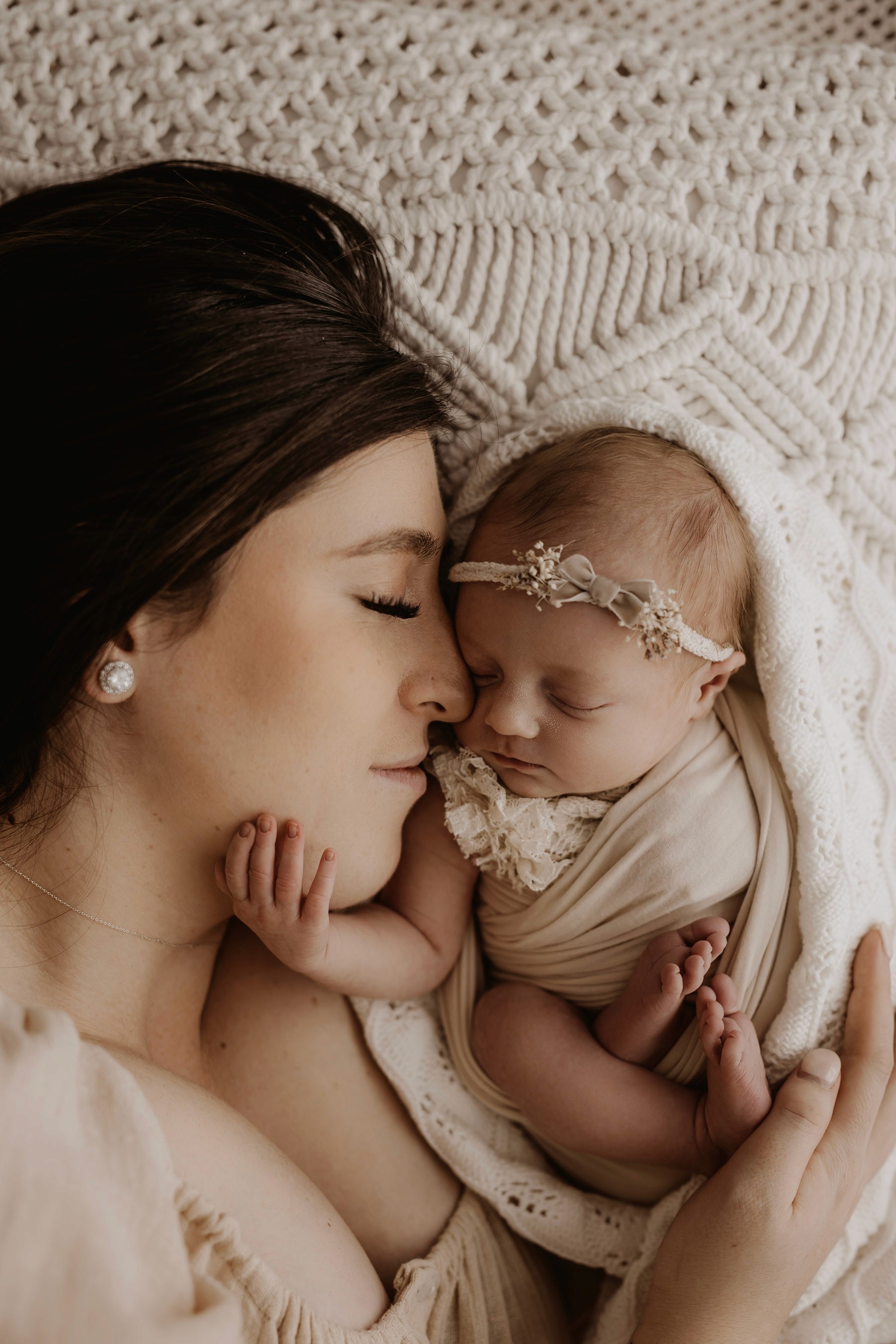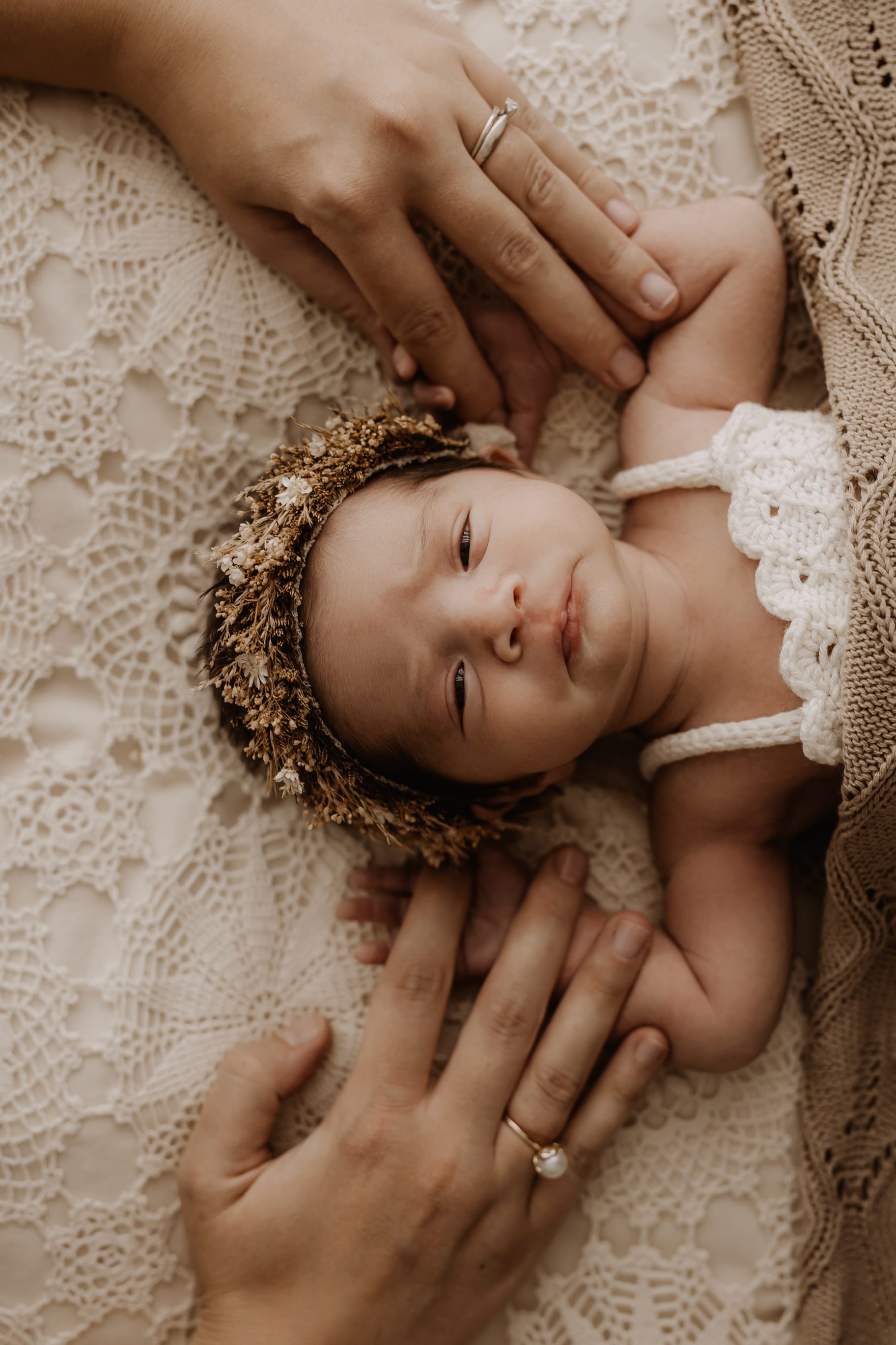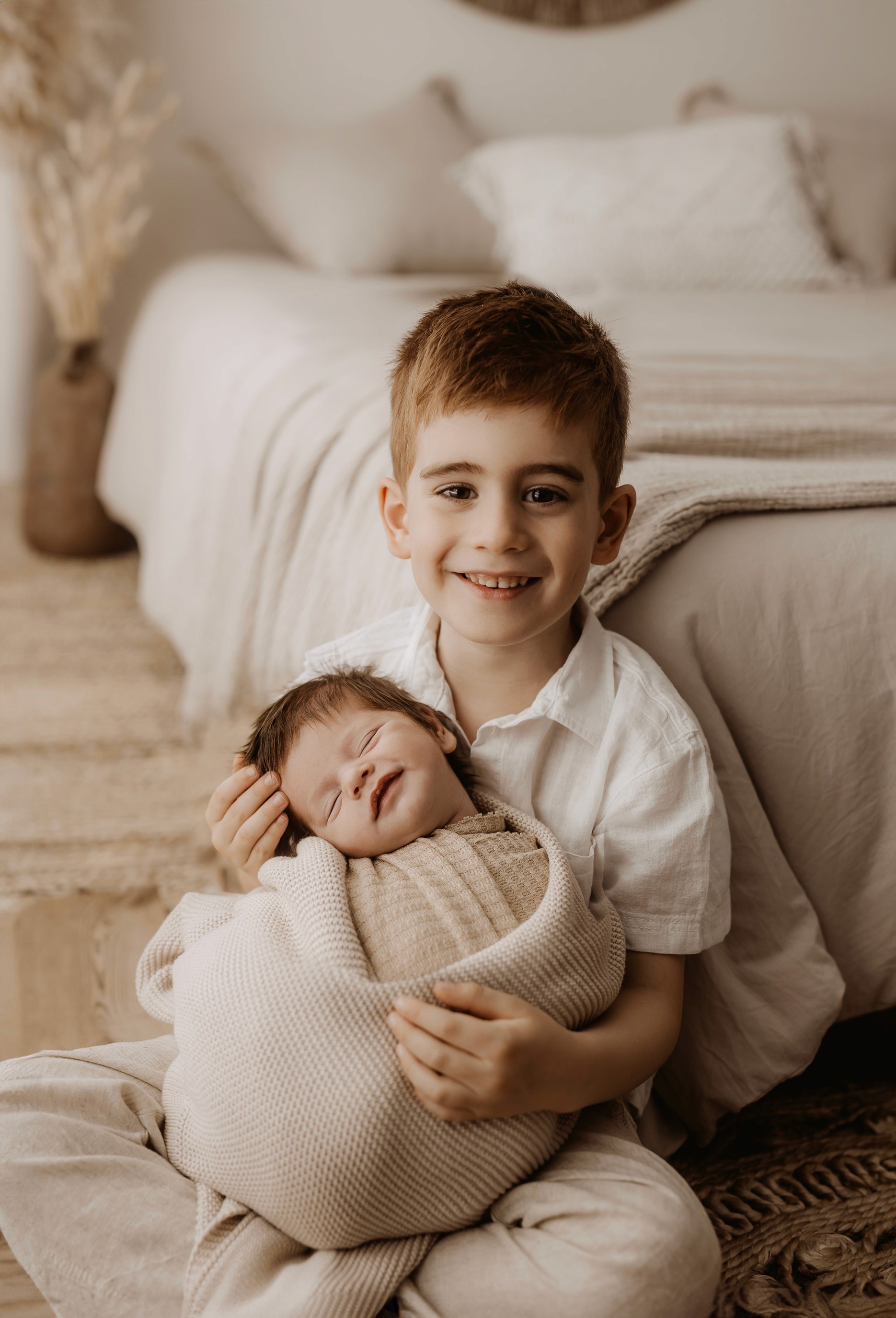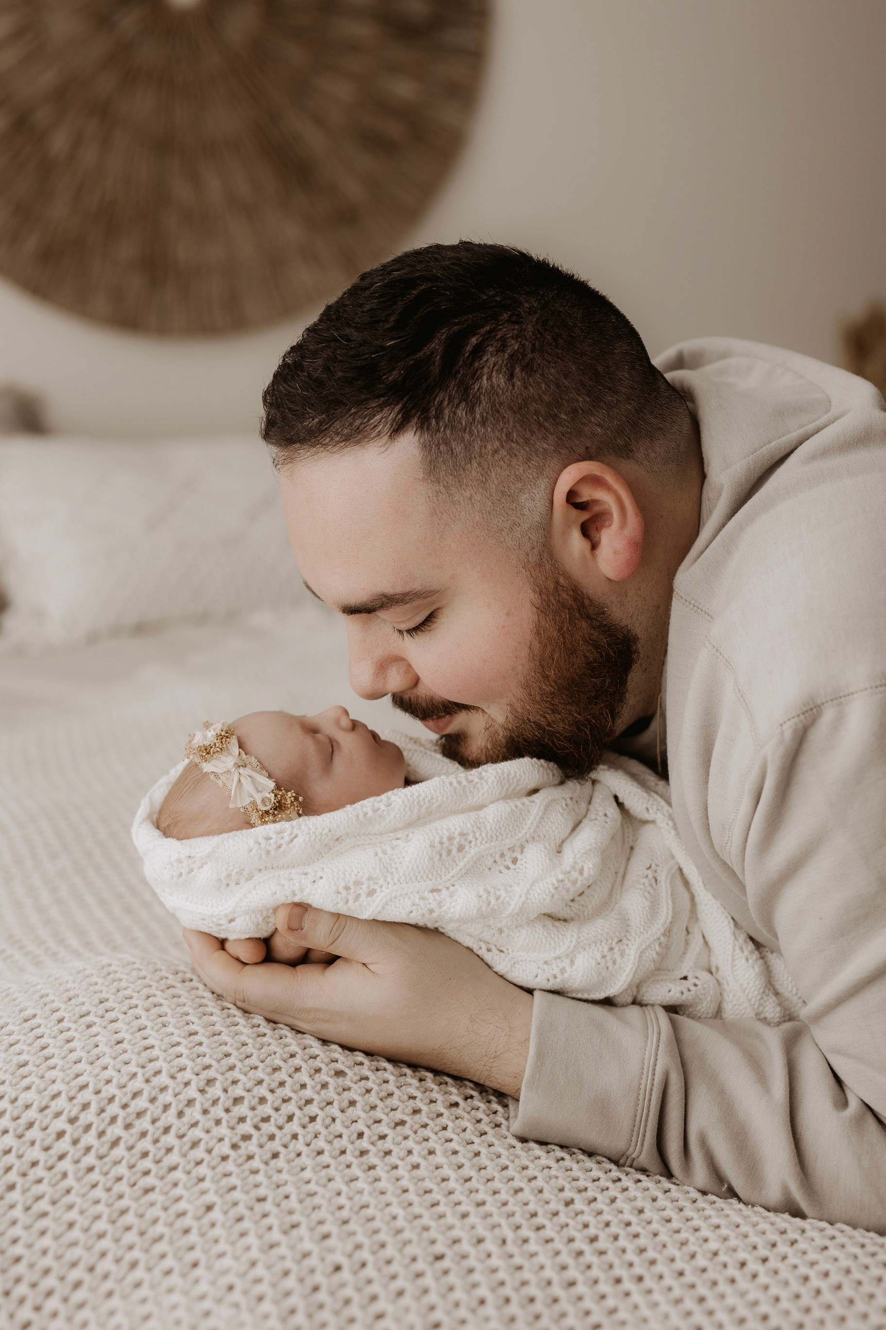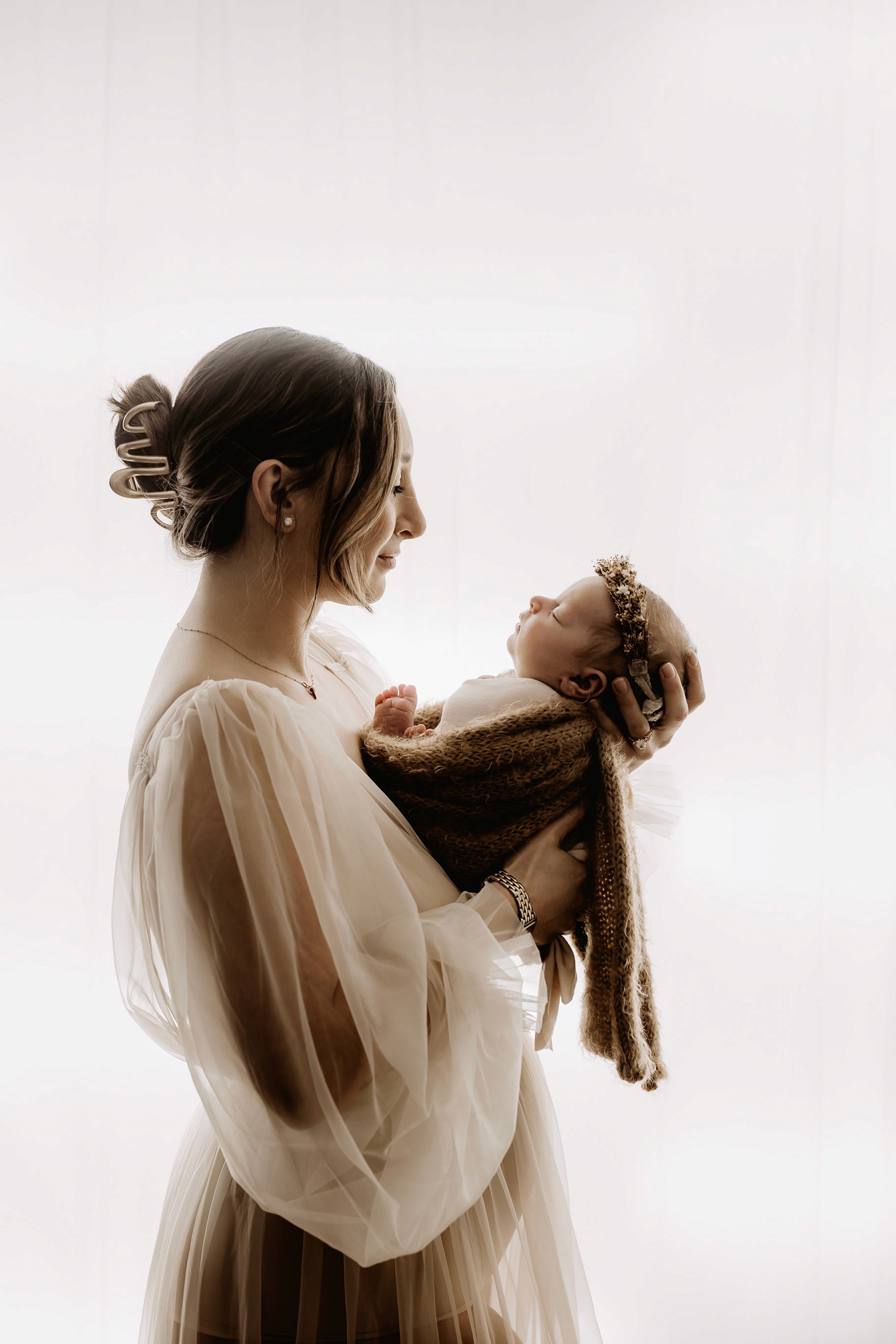 My style is a beautifully balanced blend of posed and lifestyle photography. My lifestyle space for newborn photos is decorated in earthy muted neutral tones with boho florals. To match this vibe I provide neutral baby outfits, headbands, wraps and blankets. Not to mention the most incredible selection of dresses for mamas and lots of options for children! I want you to walk away having had a wonderful, stress-free experience. I am here for the laughs and chats and I promise to make you feel comfortable!