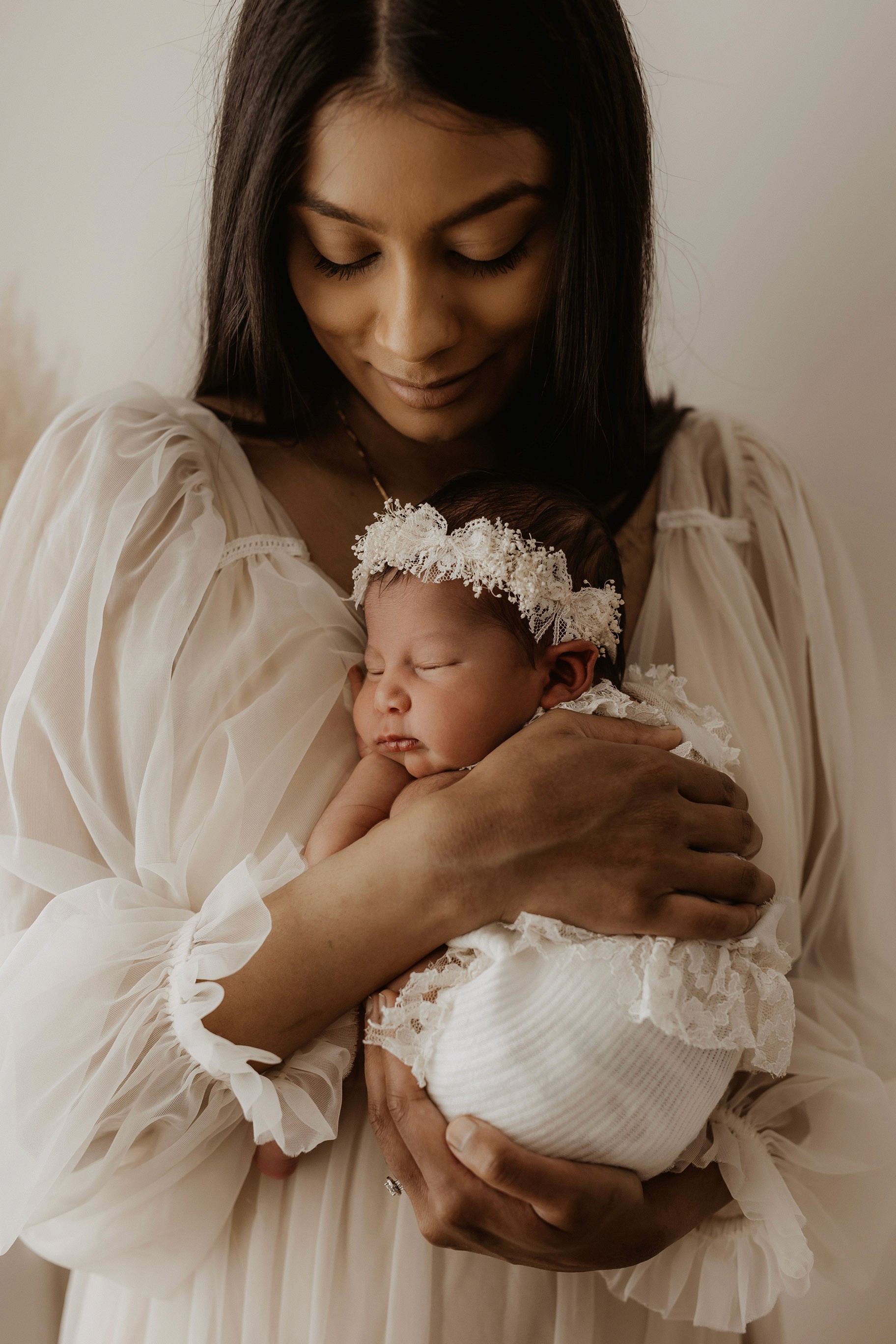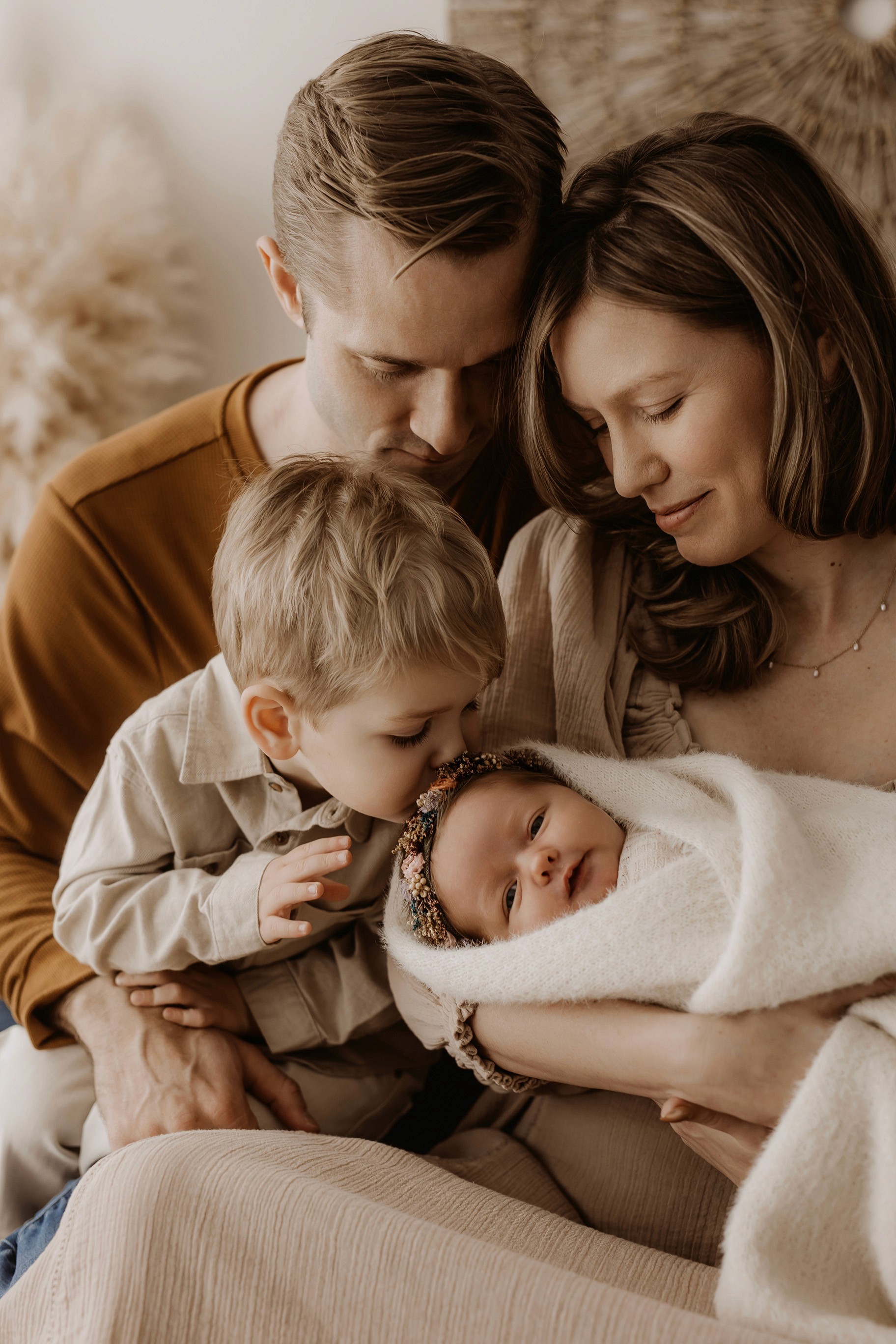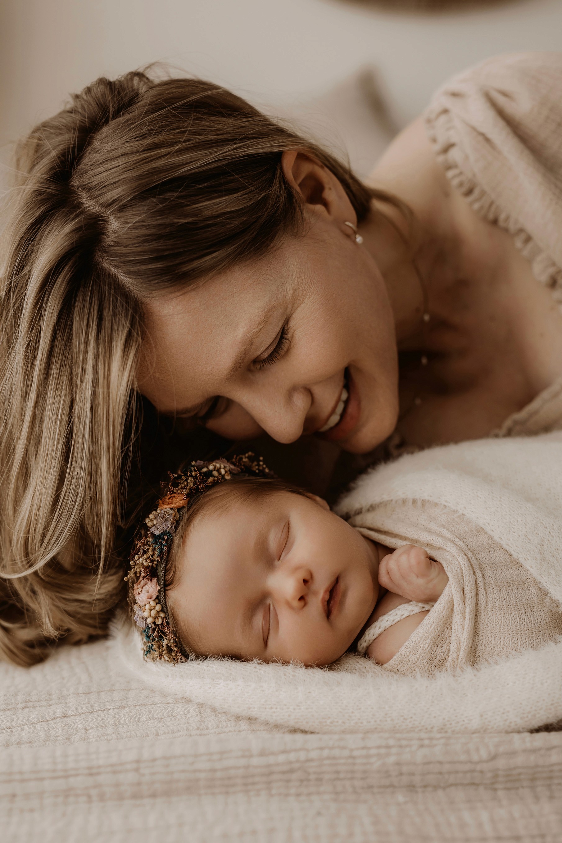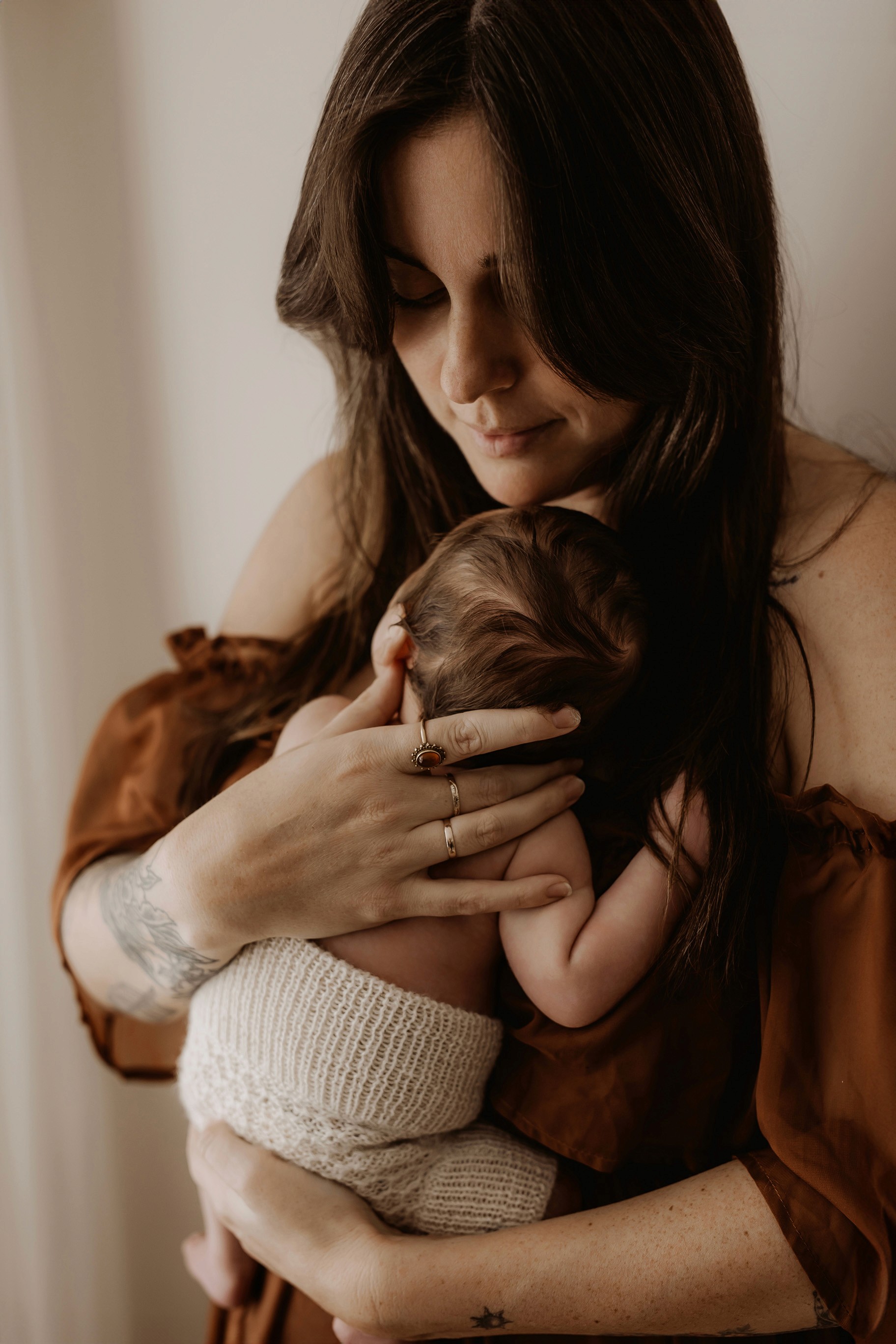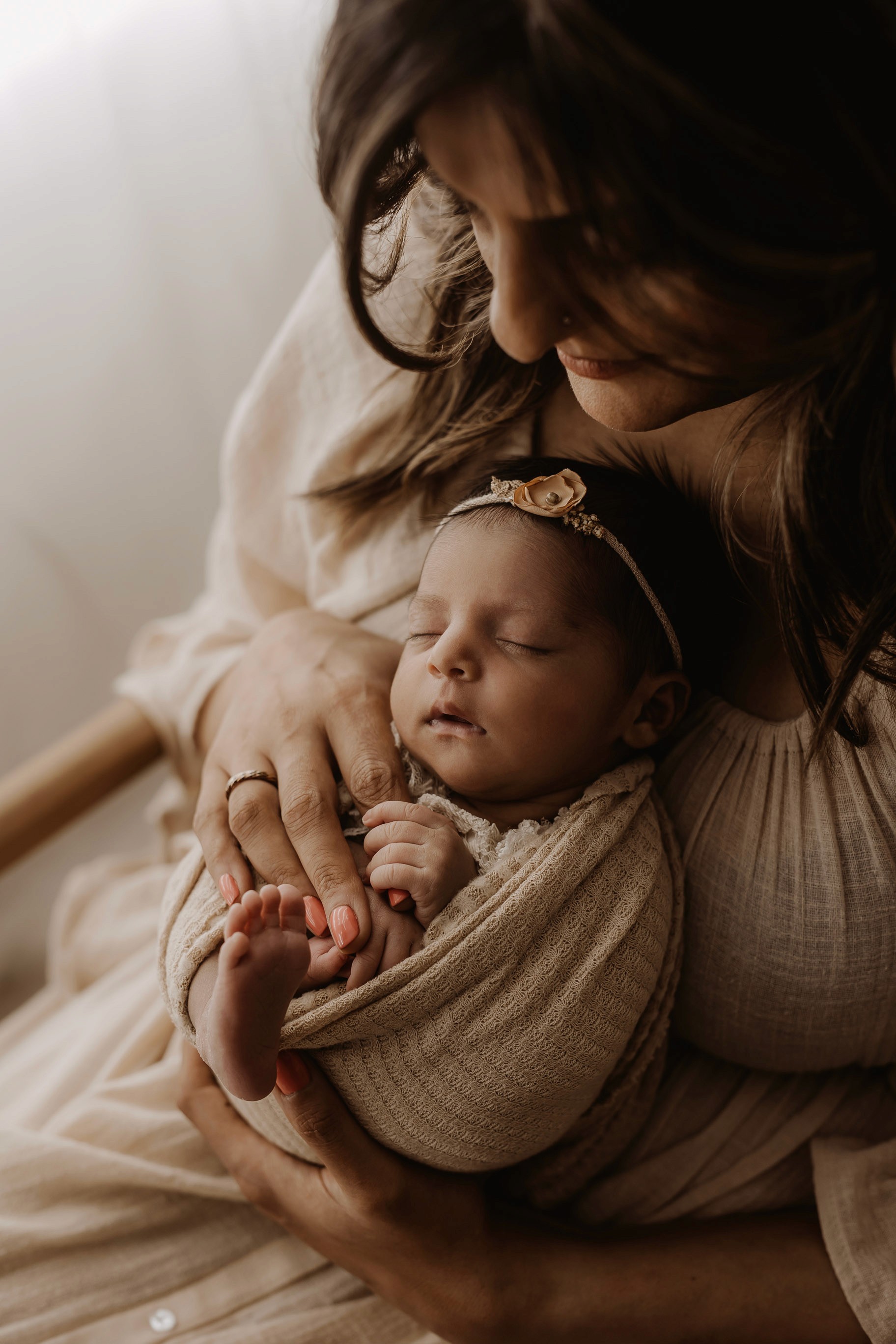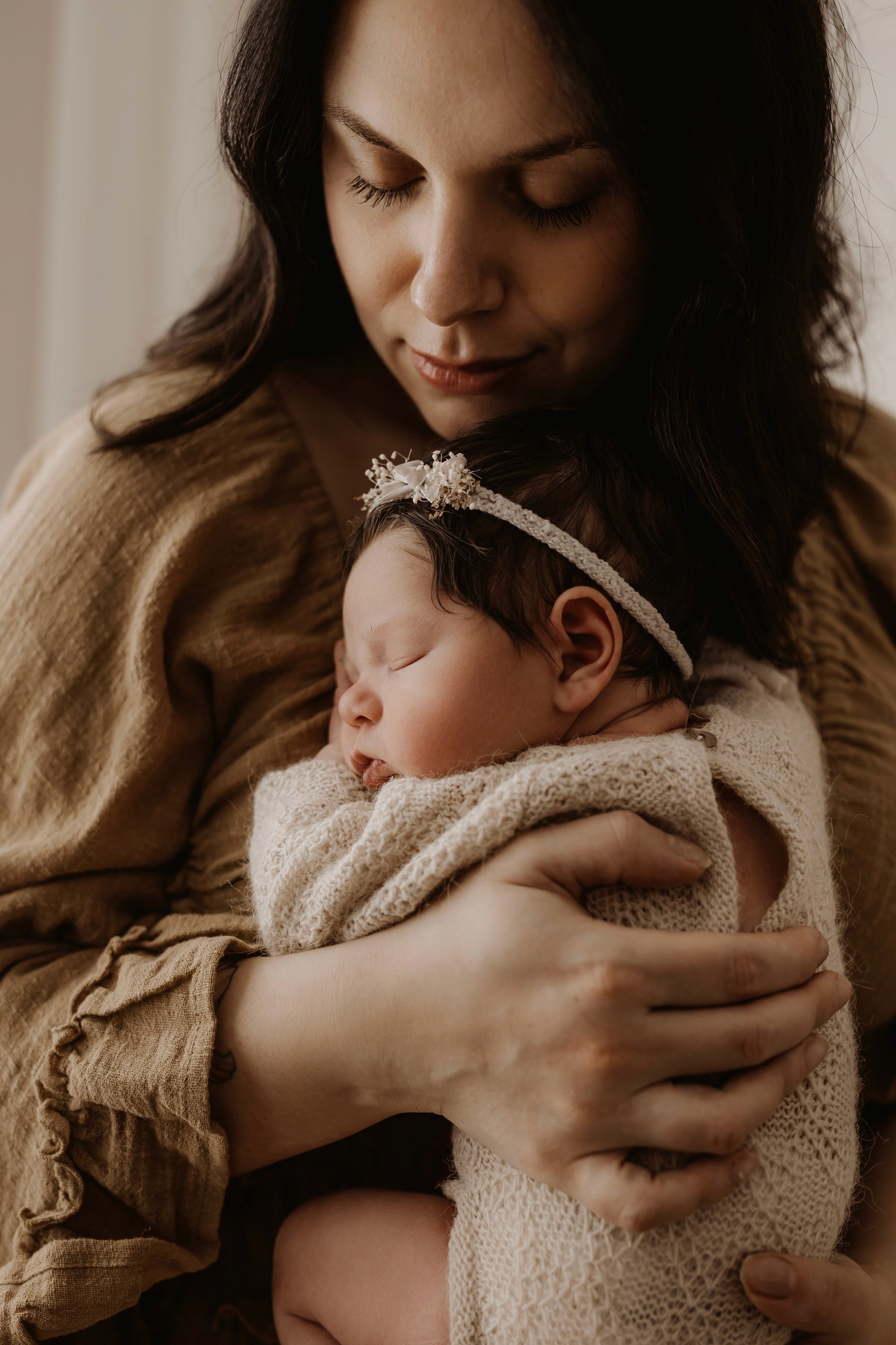 My style is a beautifully balanced blend of posed and lifestyle photography. My lifestyle space for newborn photos is decorated in earthy muted neutral tones with boho florals. To match this vibe I provide neutral baby outfits, headbands, wraps and blankets. Not to mention the most incredible selection of dresses for mamas and lots of options for children! I want you to walk away having had a wonderful, stress-free experience. I am here for the laughs and chats and I promise to make you feel comfortable!