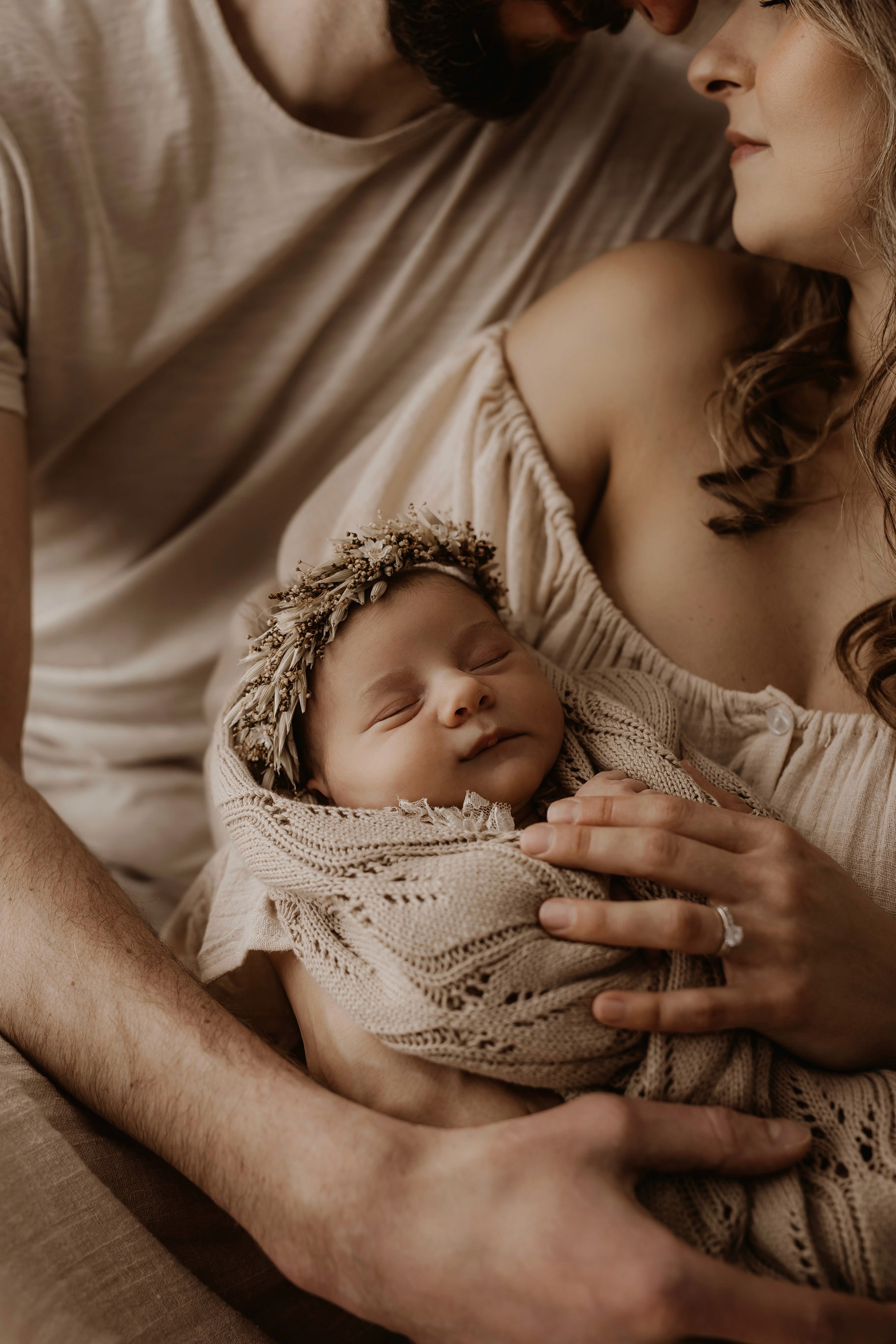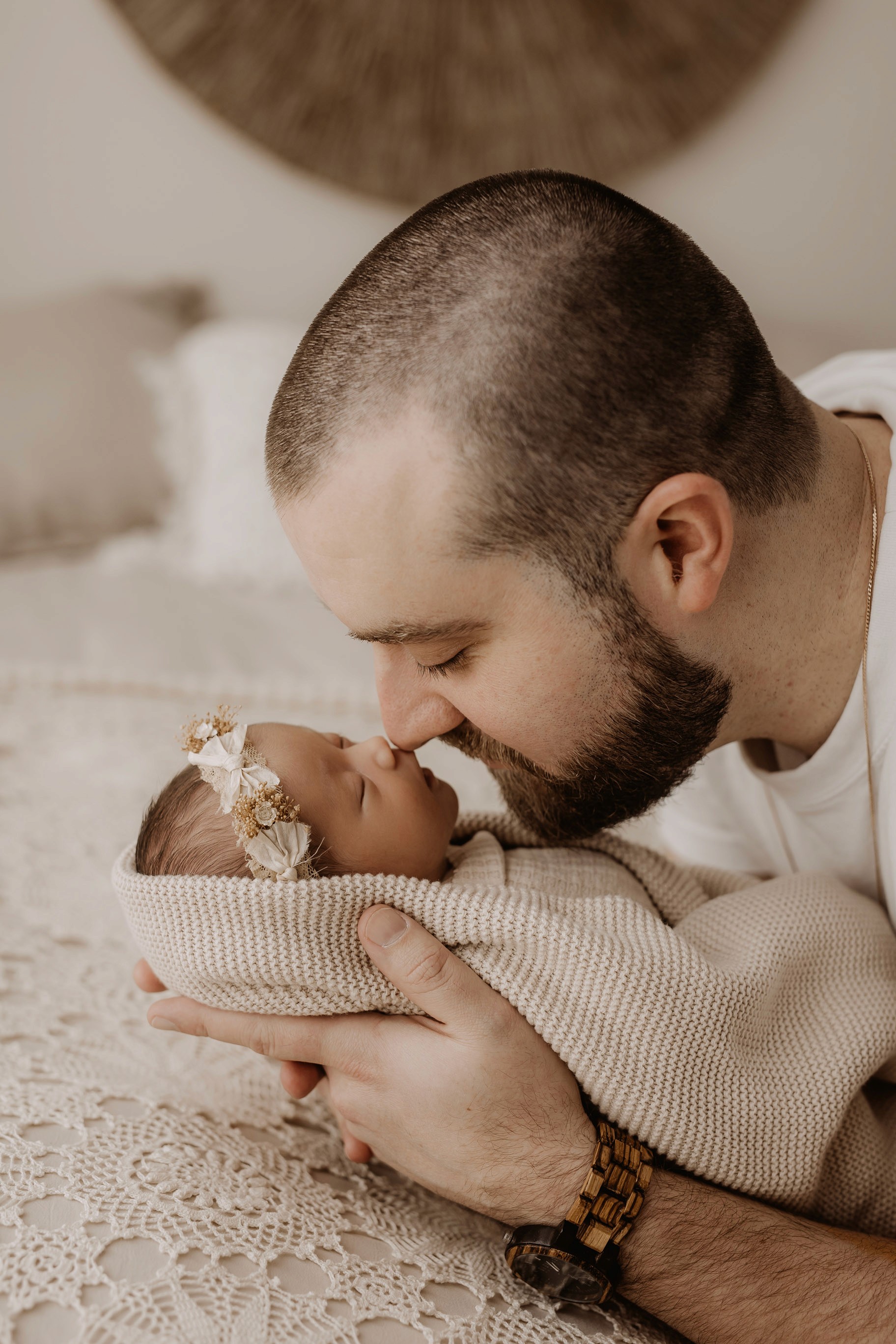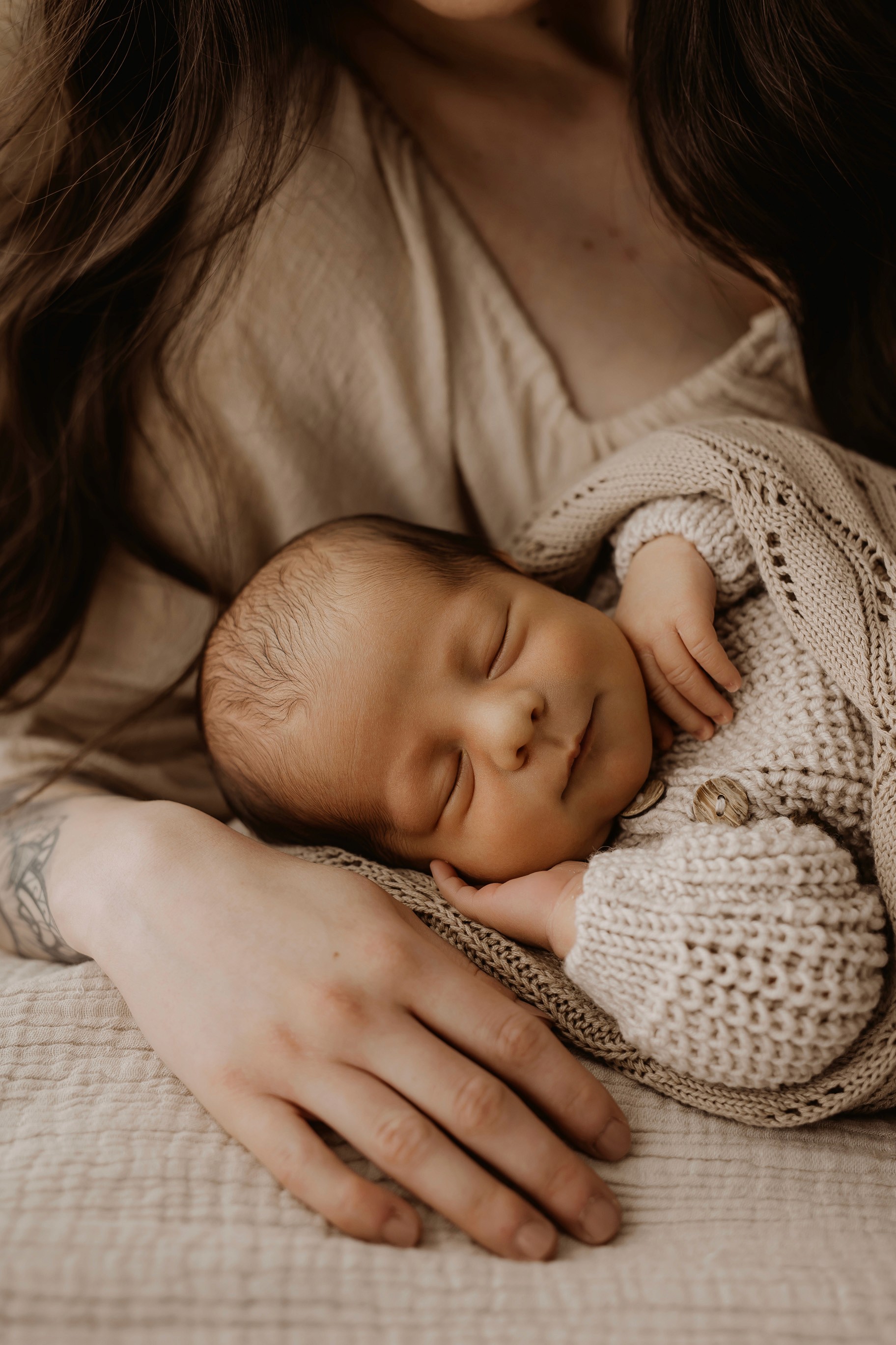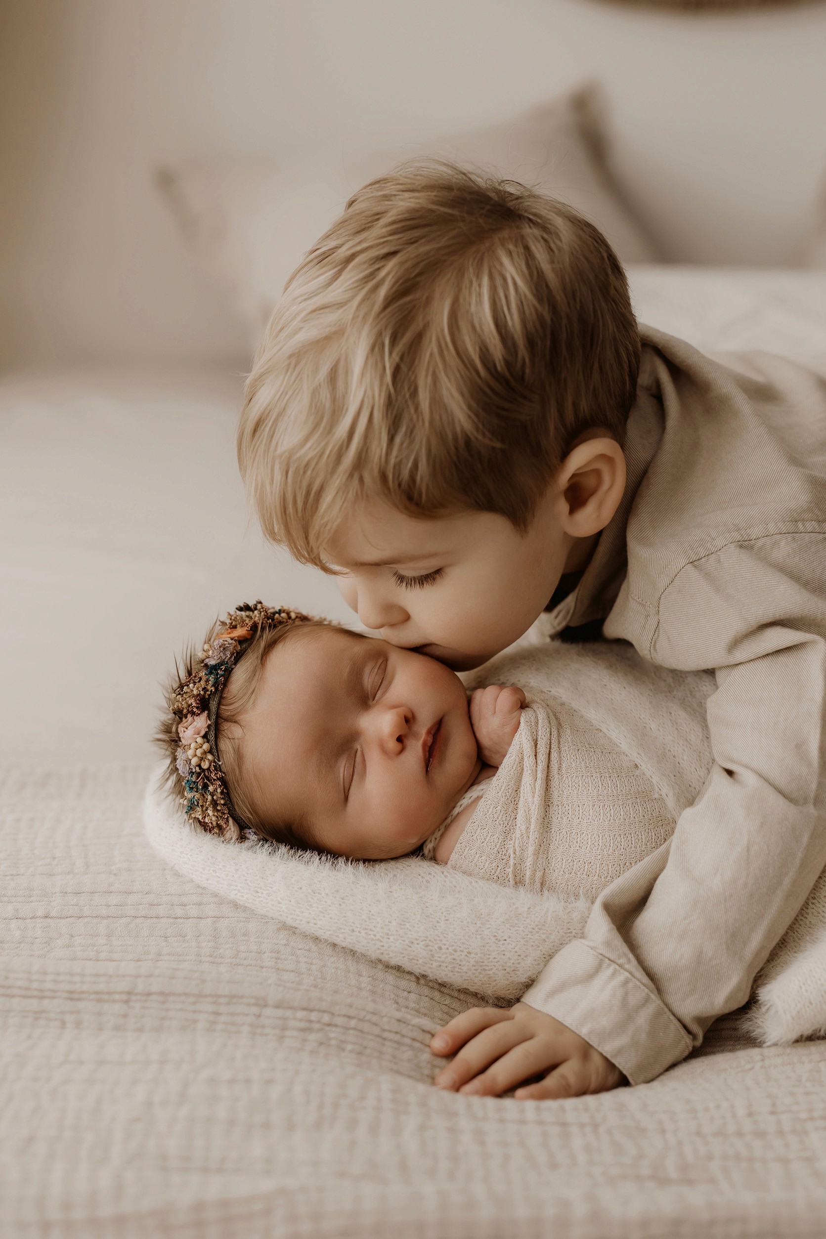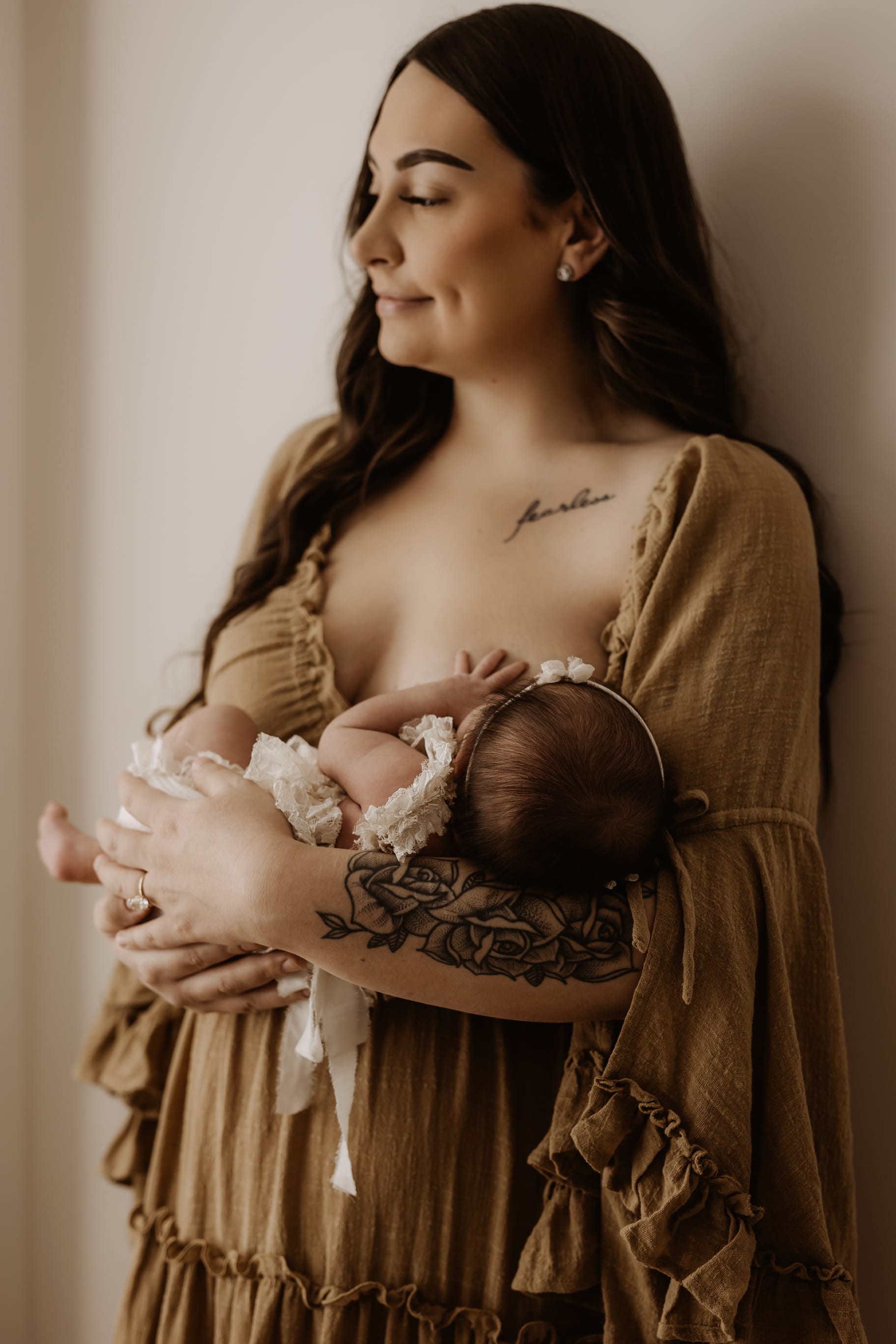 My style is a beautifully balanced blend of posed and lifestyle photography. My lifestyle space for newborn photos is decorated in earthy muted neutral tones with boho florals. To match this vibe I provide neutral baby outfits, headbands, wraps and blankets. Not to mention the most incredible selection of dresses for mamas and lots of options for children! I want you to walk away having had a wonderful, stress-free experience. I am here for the laughs and chats and I promise to make you feel comfortable!