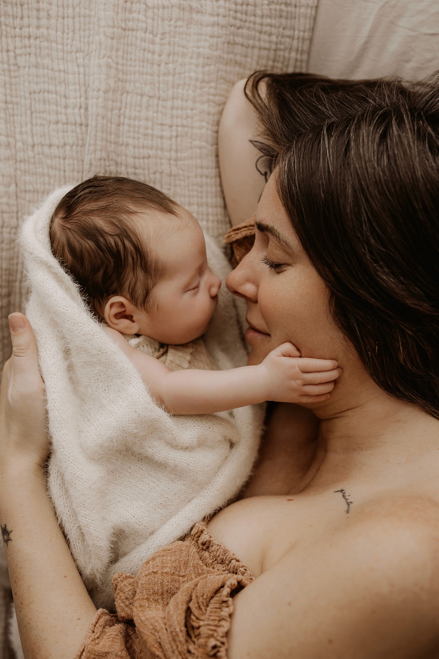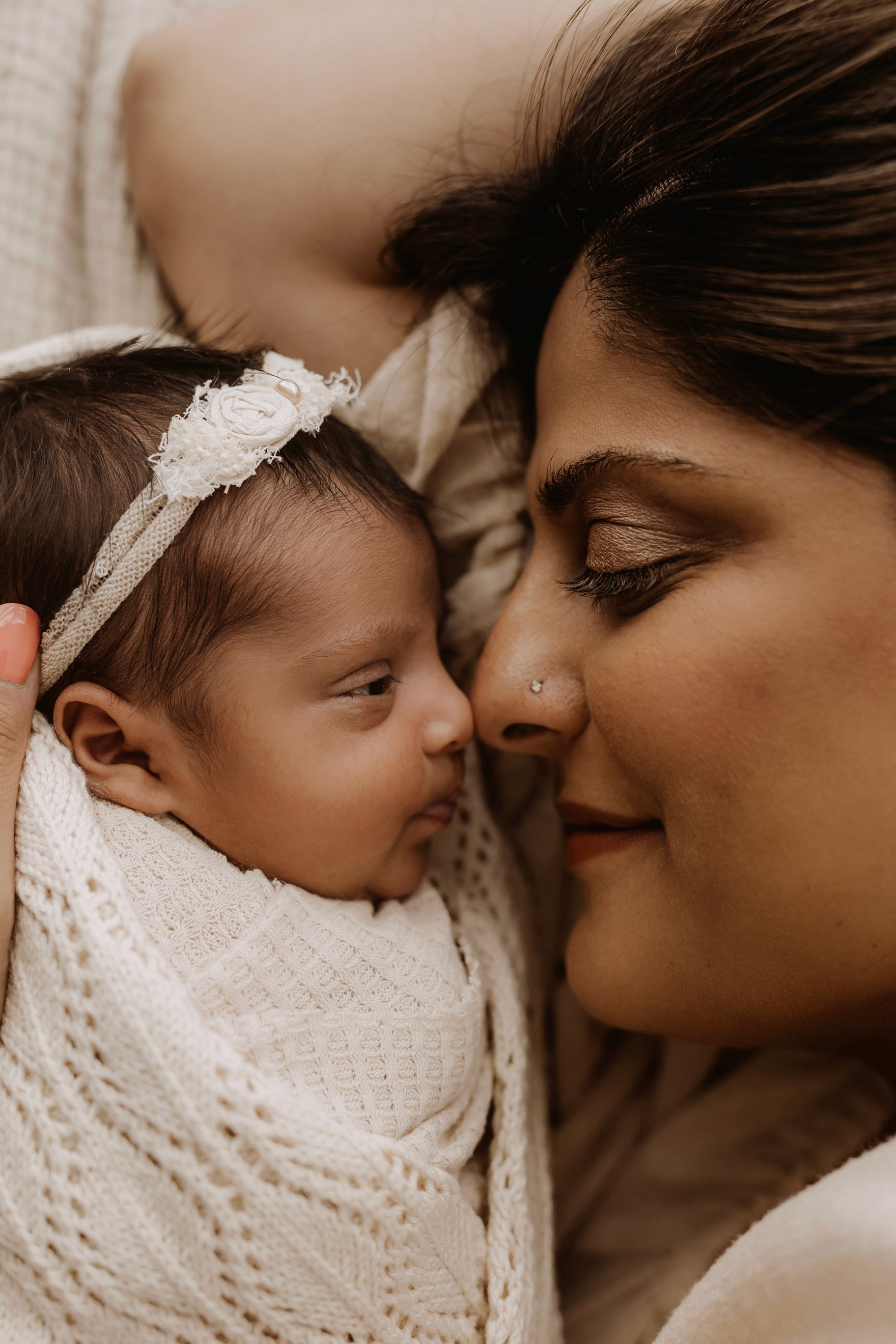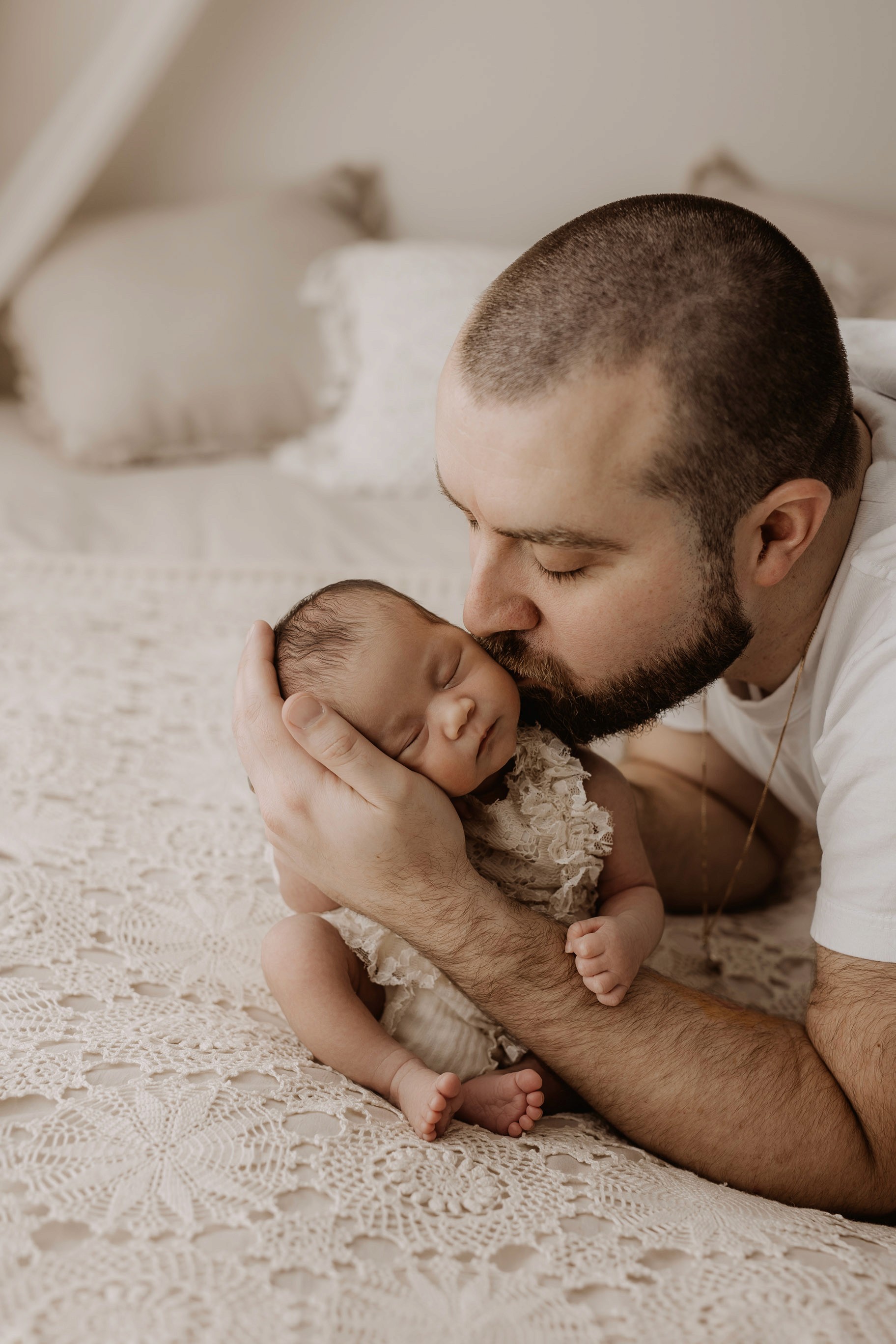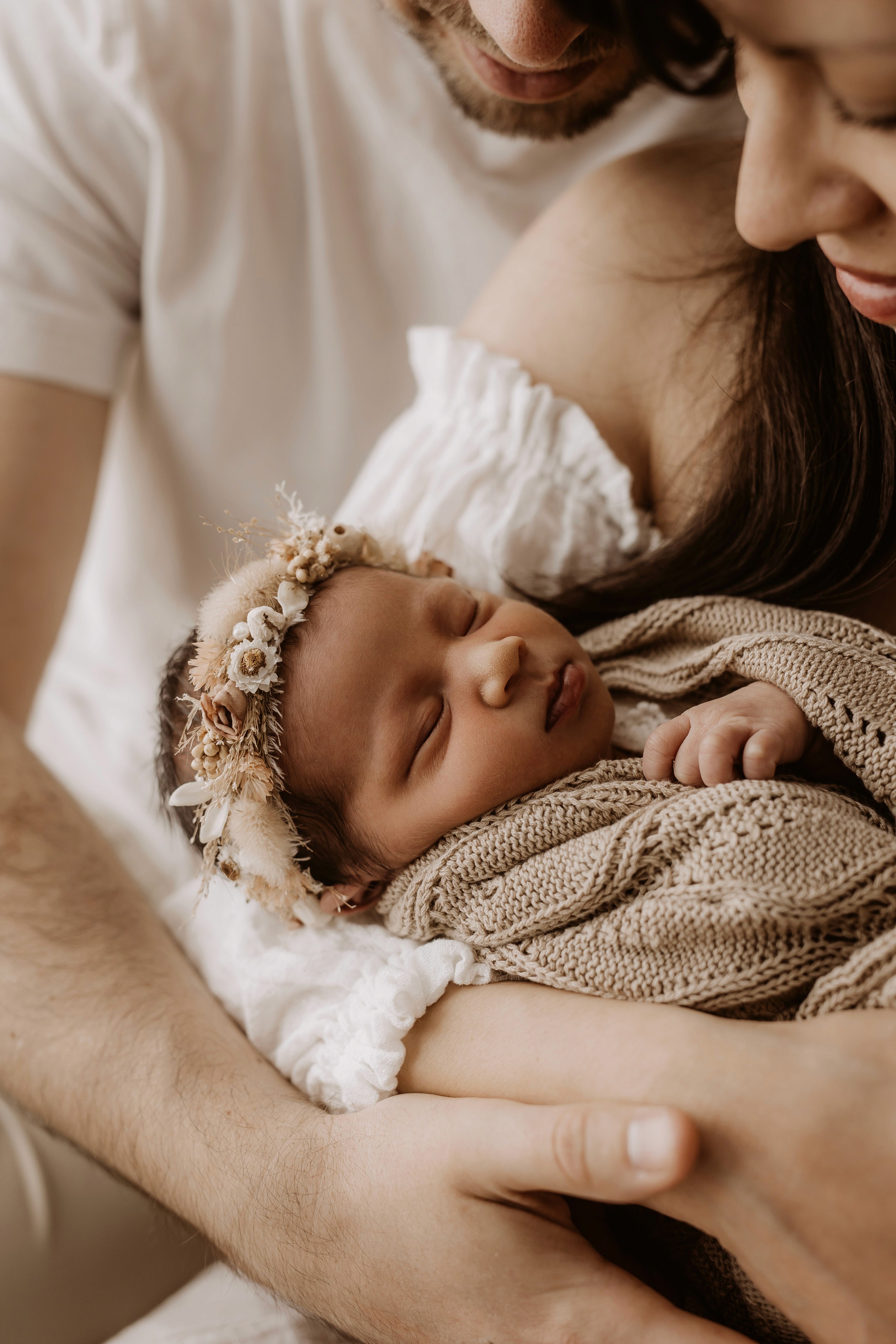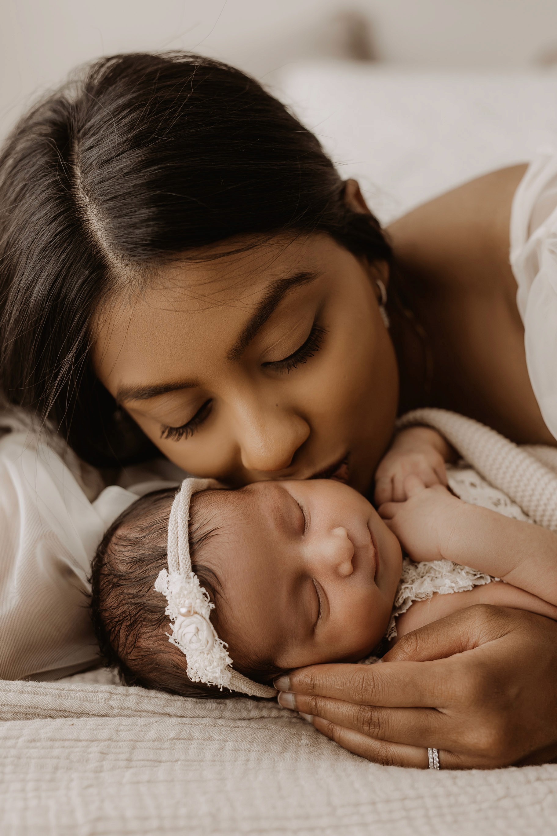 My style is a beautifully balanced blend of posed and lifestyle photography. My lifestyle space for newborn photos is decorated in earthy muted neutral tones with boho florals. To match this vibe I provide neutral baby outfits, headbands, wraps and blankets. Not to mention the most incredible selection of dresses for mamas and lots of options for children! I want you to walk away having had a wonderful, stress-free experience. I am here for the laughs and chats and I promise to make you feel comfortable!